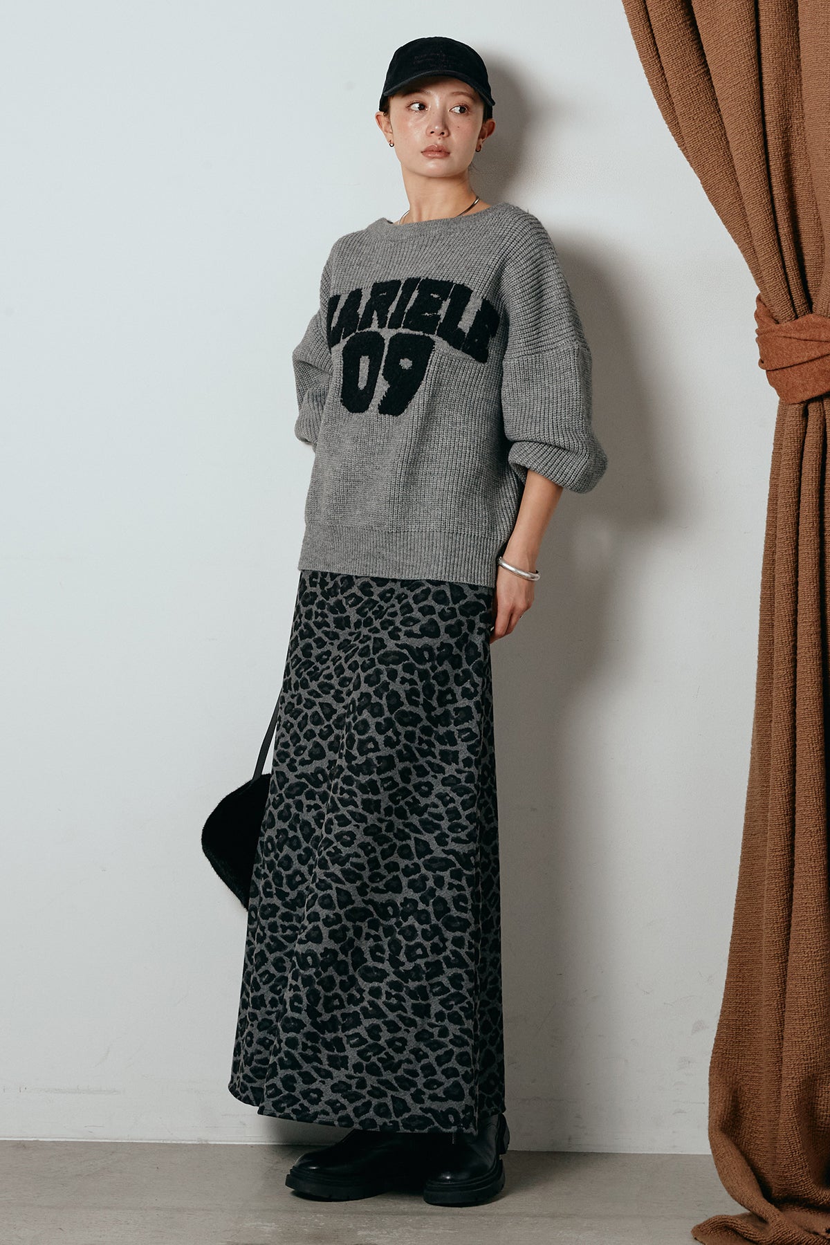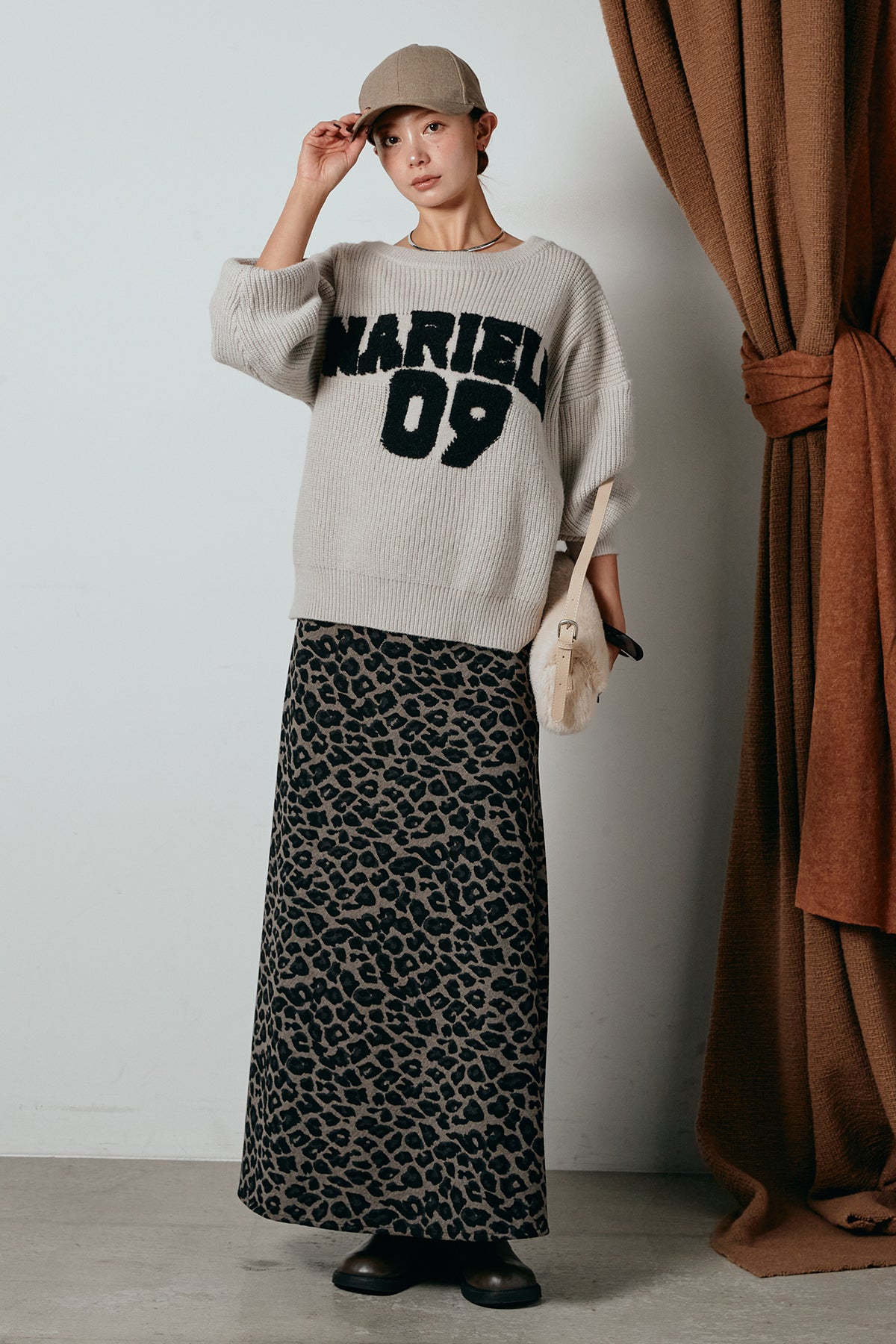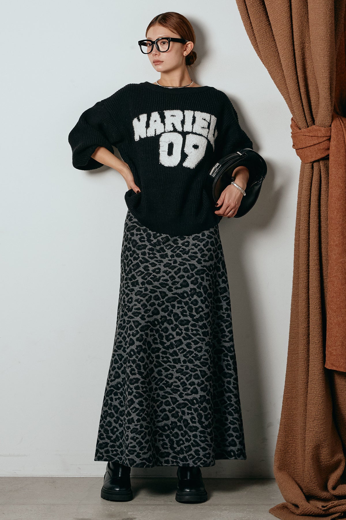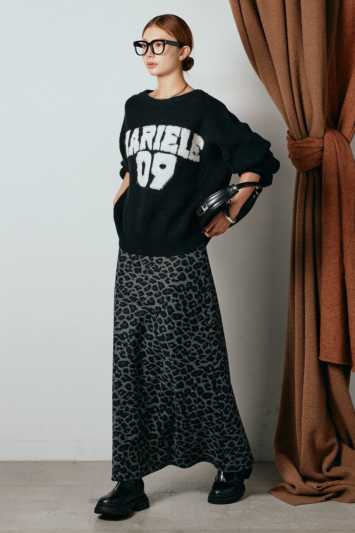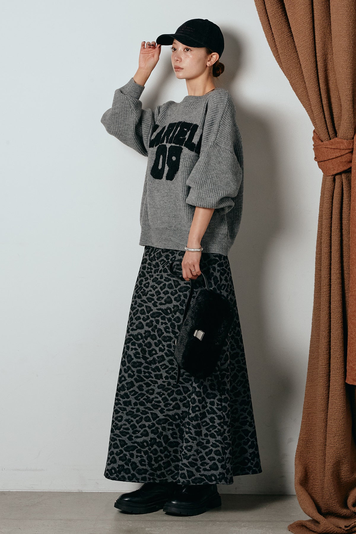 [SET]ロゴジャガードニットトップス+レオパードロングスカート(2set)