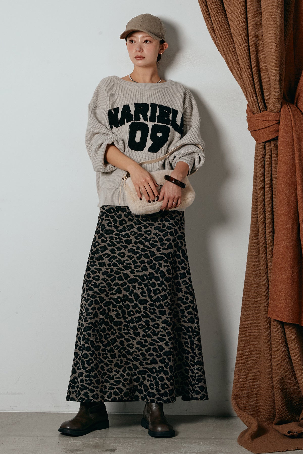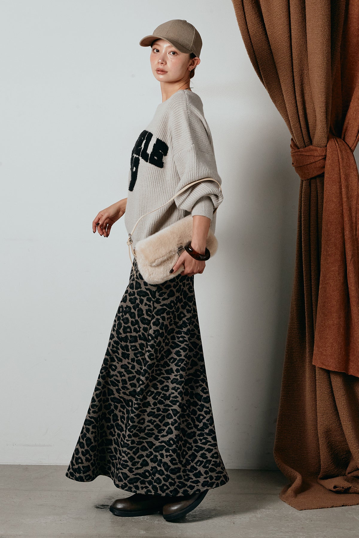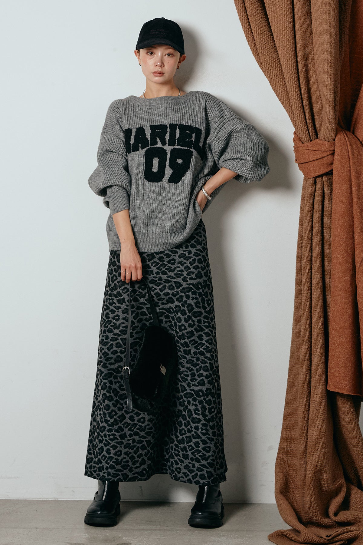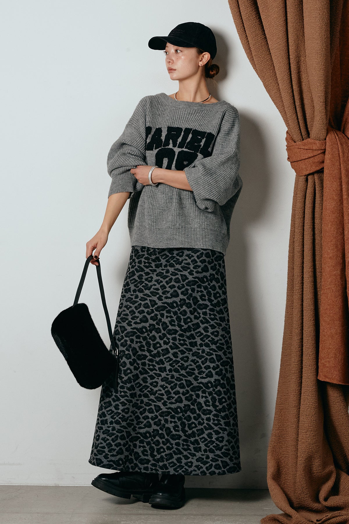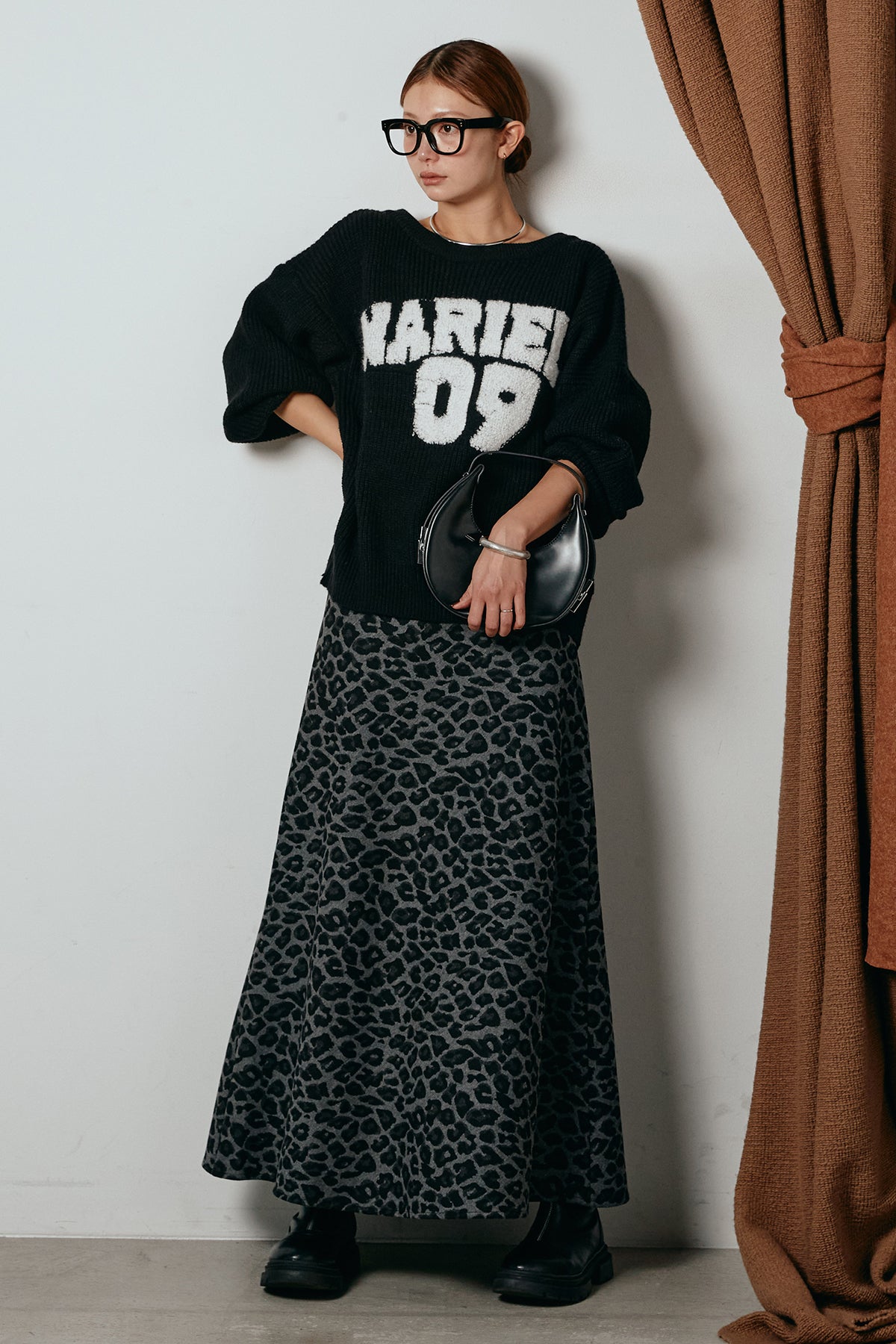 [SET]ロゴジャガードニットトップス+レオパードロングスカート(2set)