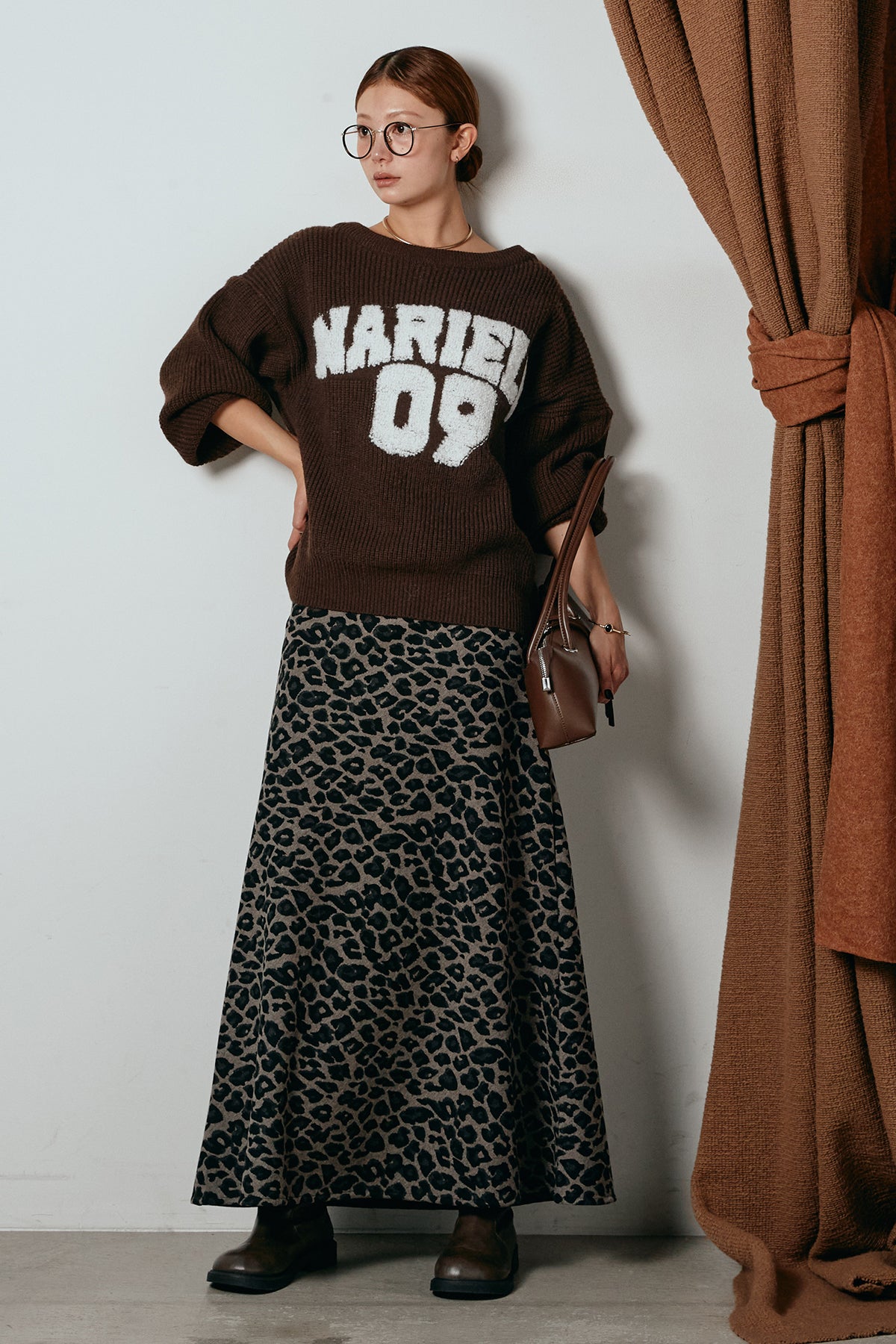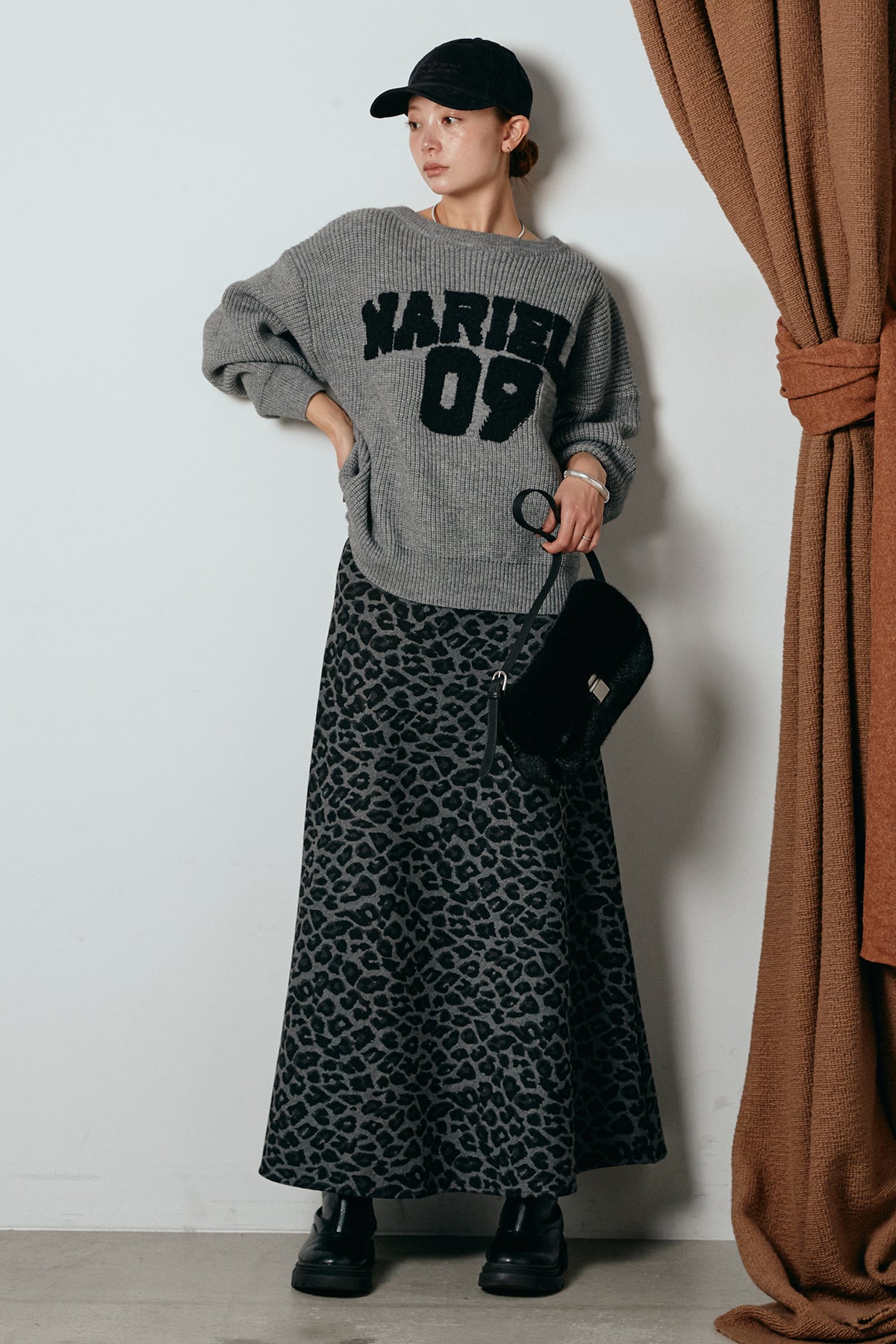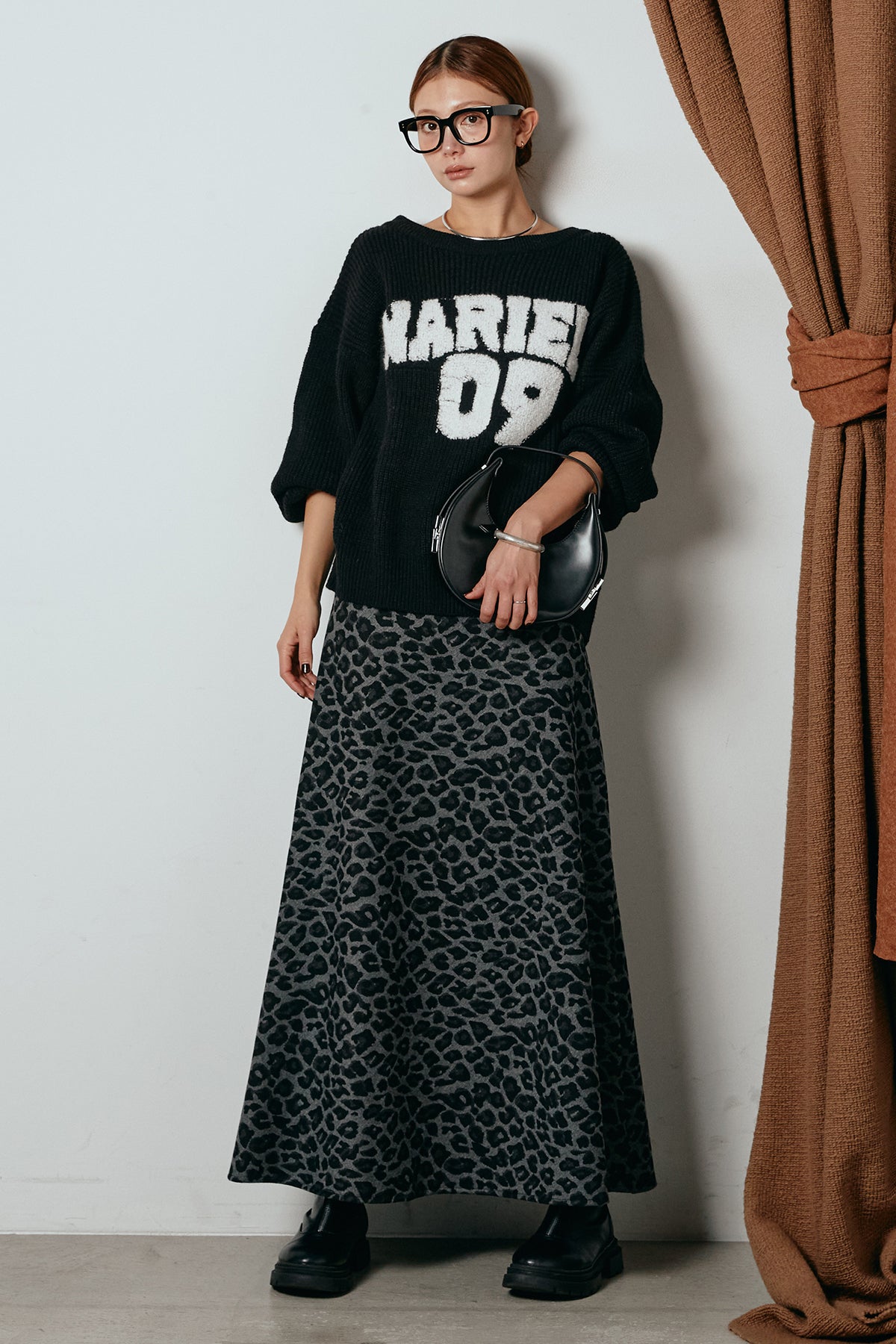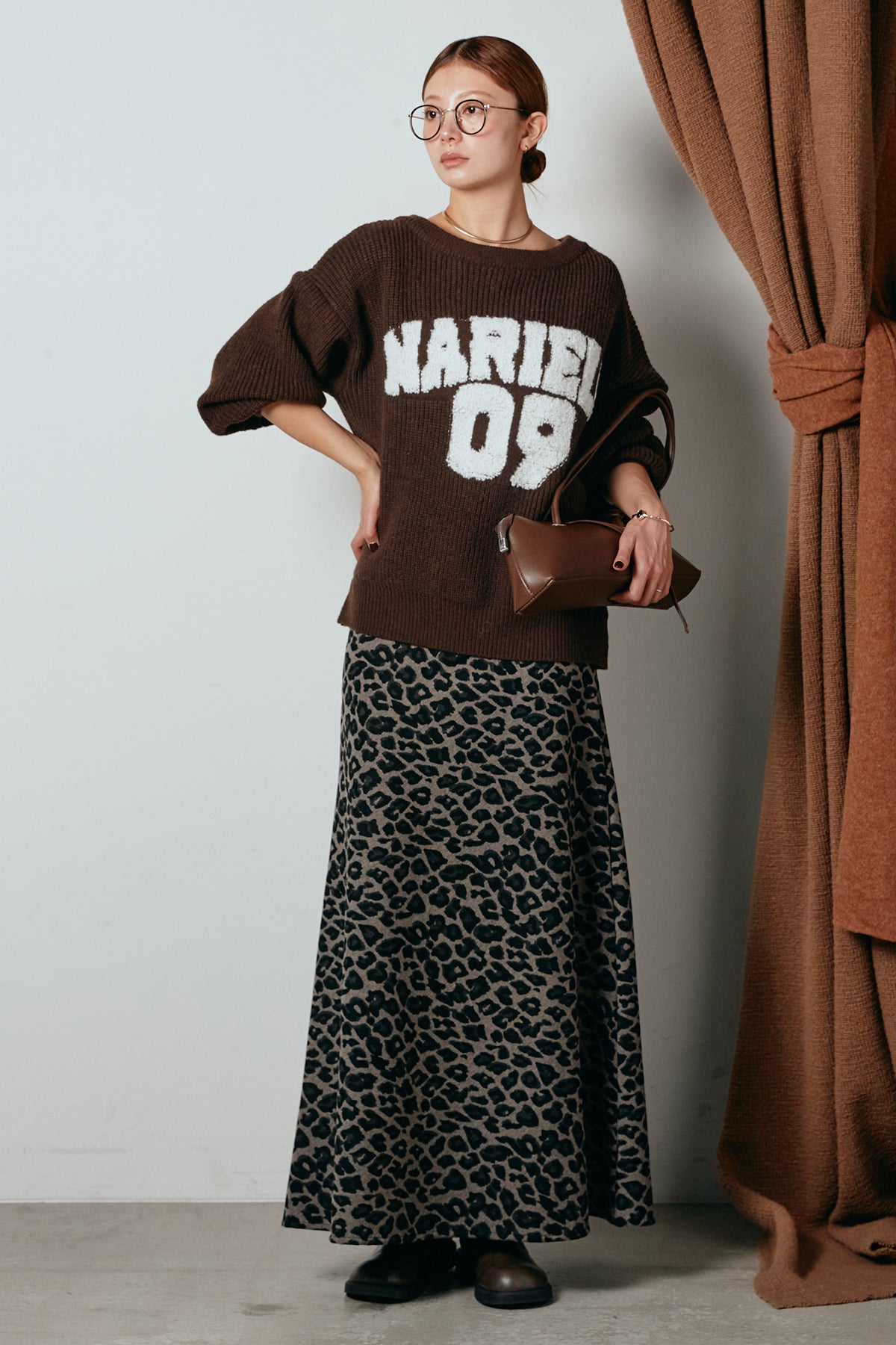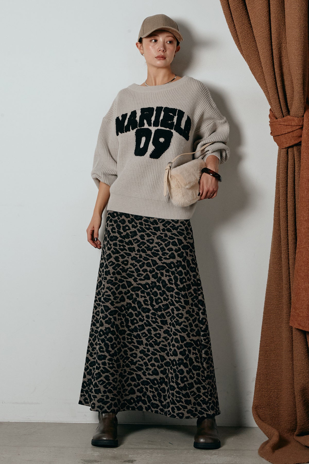 [SET]ロゴジャガードニットトップス+レオパードロングスカート(2set)