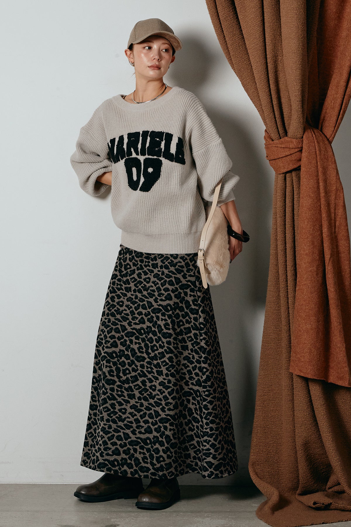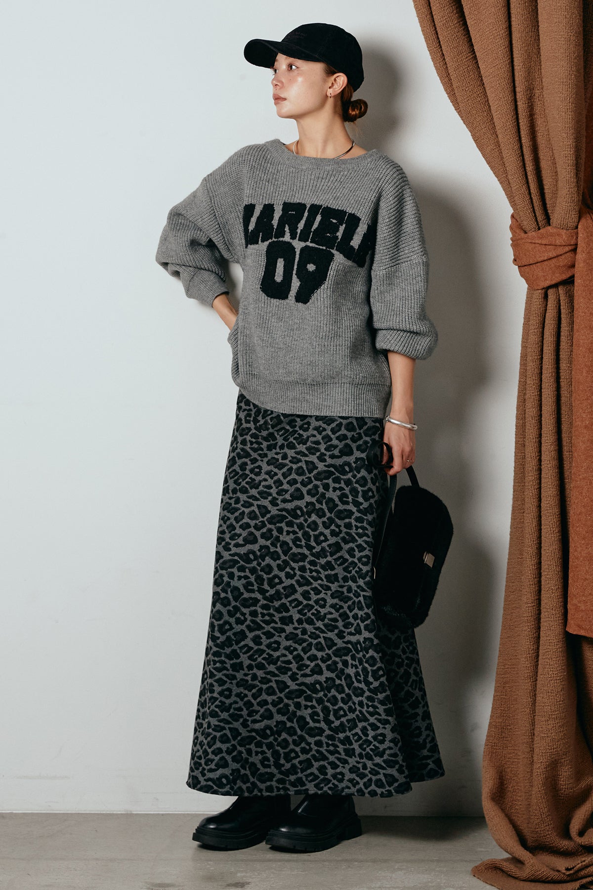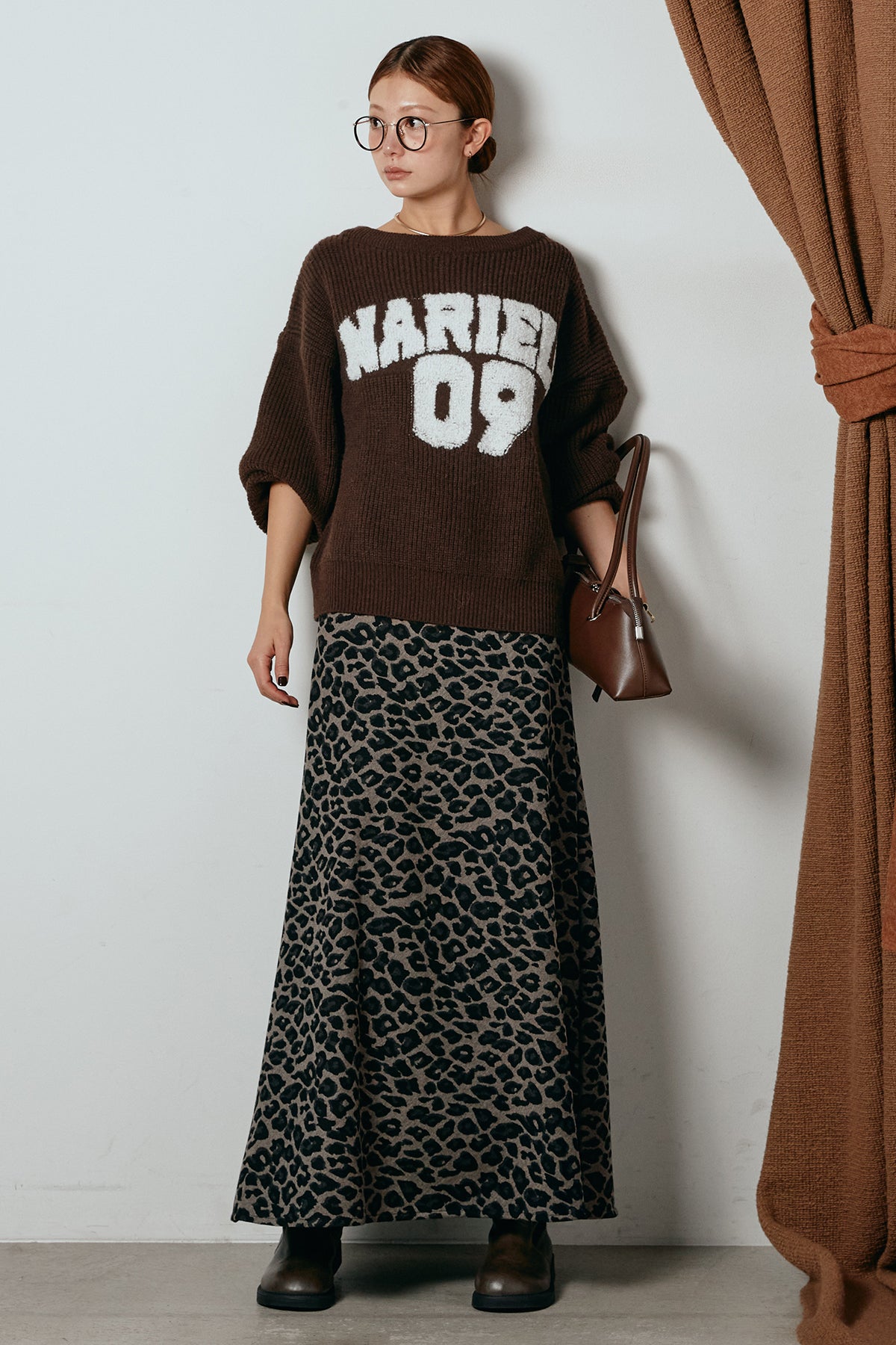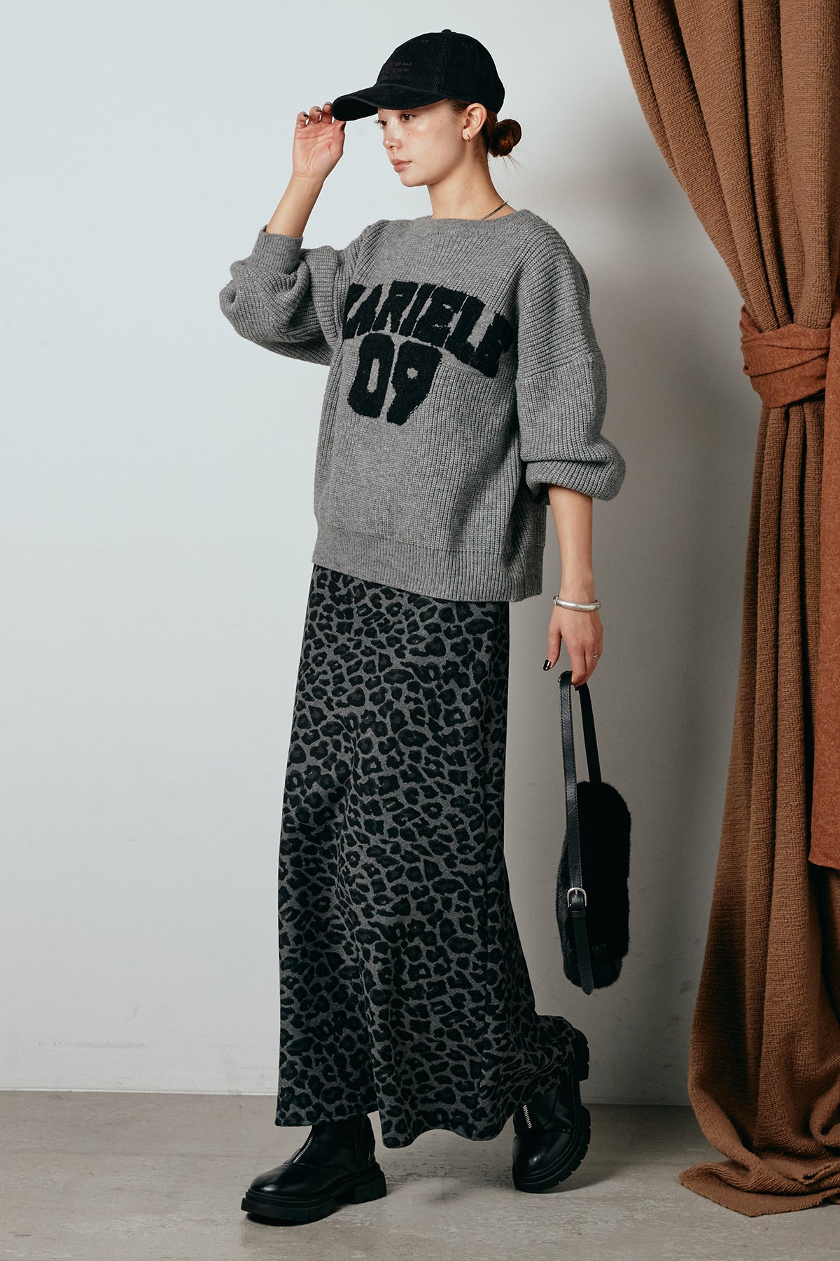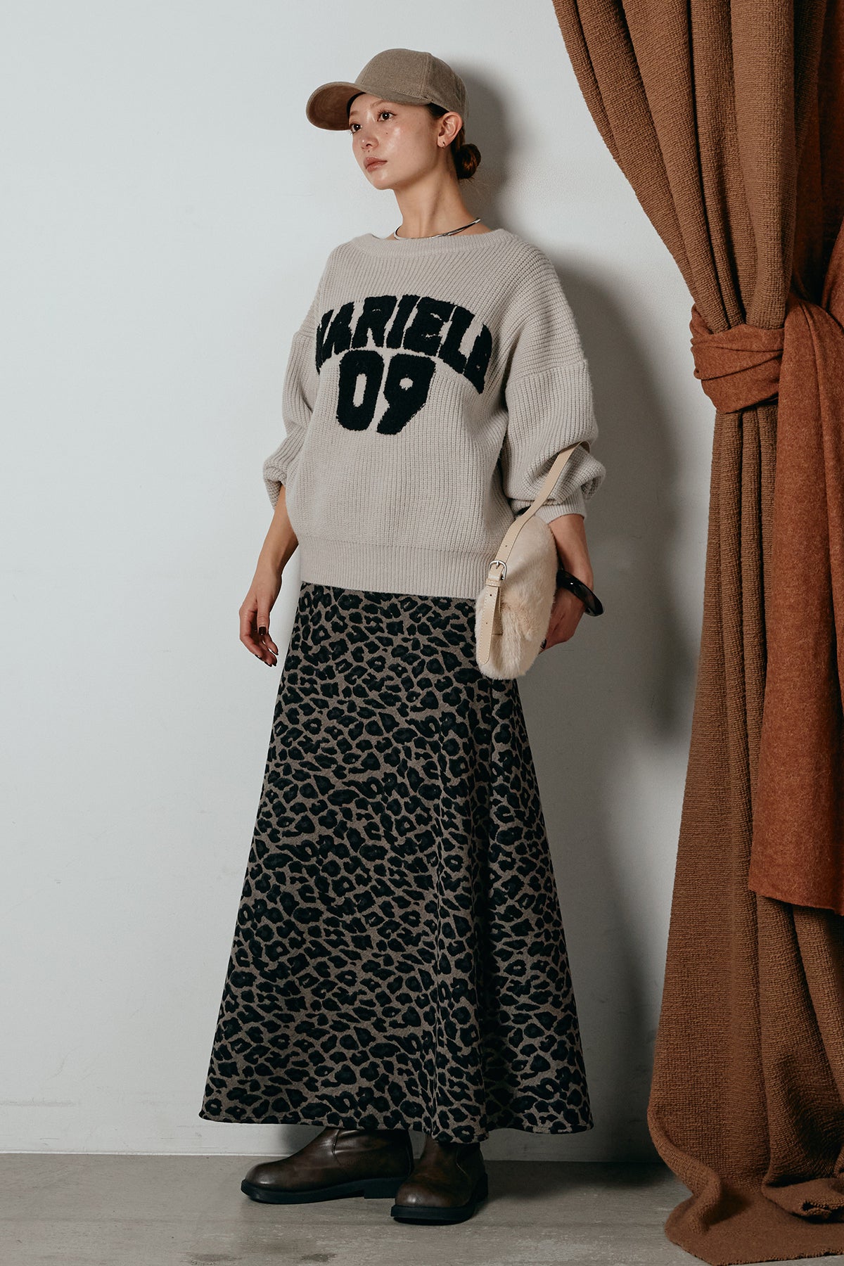 [SET]ロゴジャガードニットトップス+レオパードロングスカート(2set)