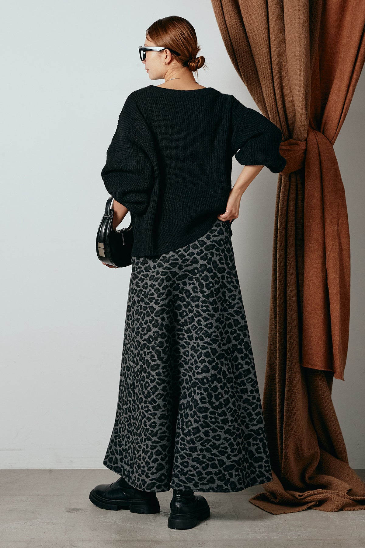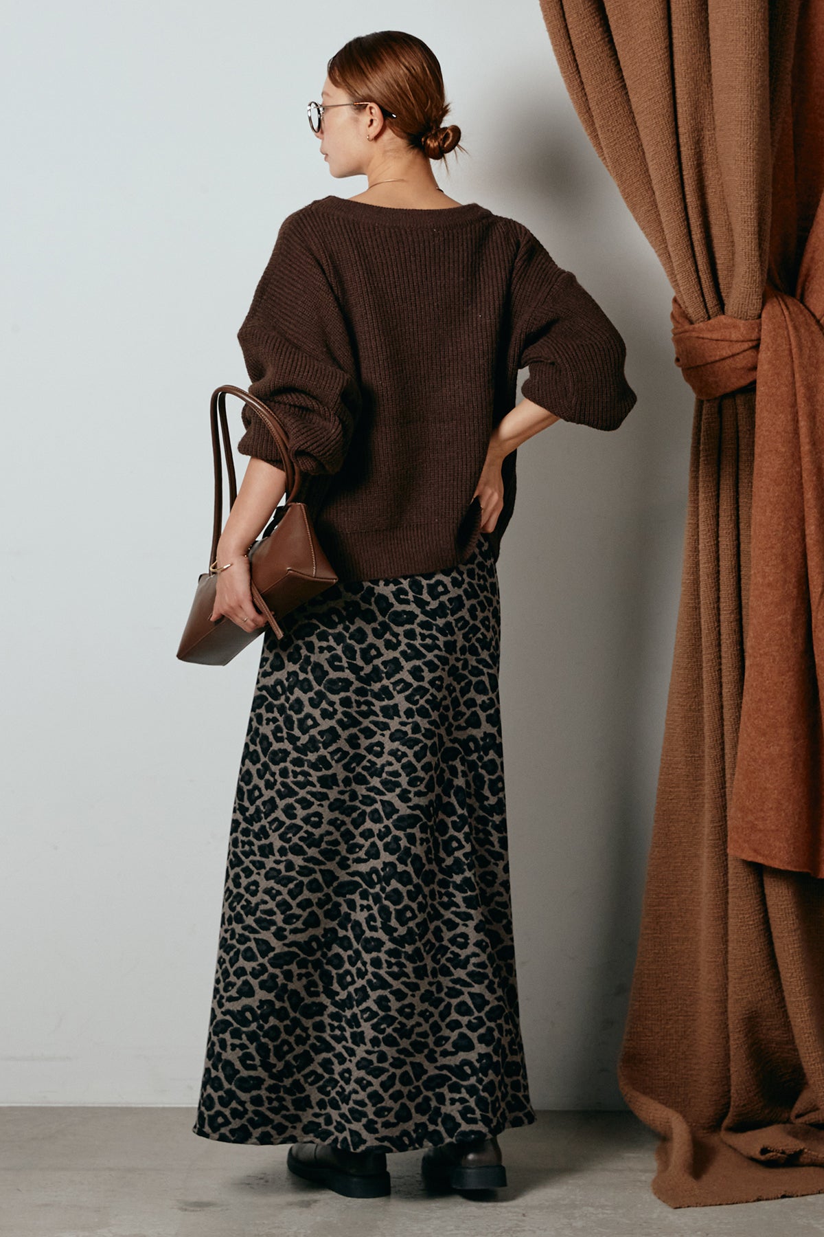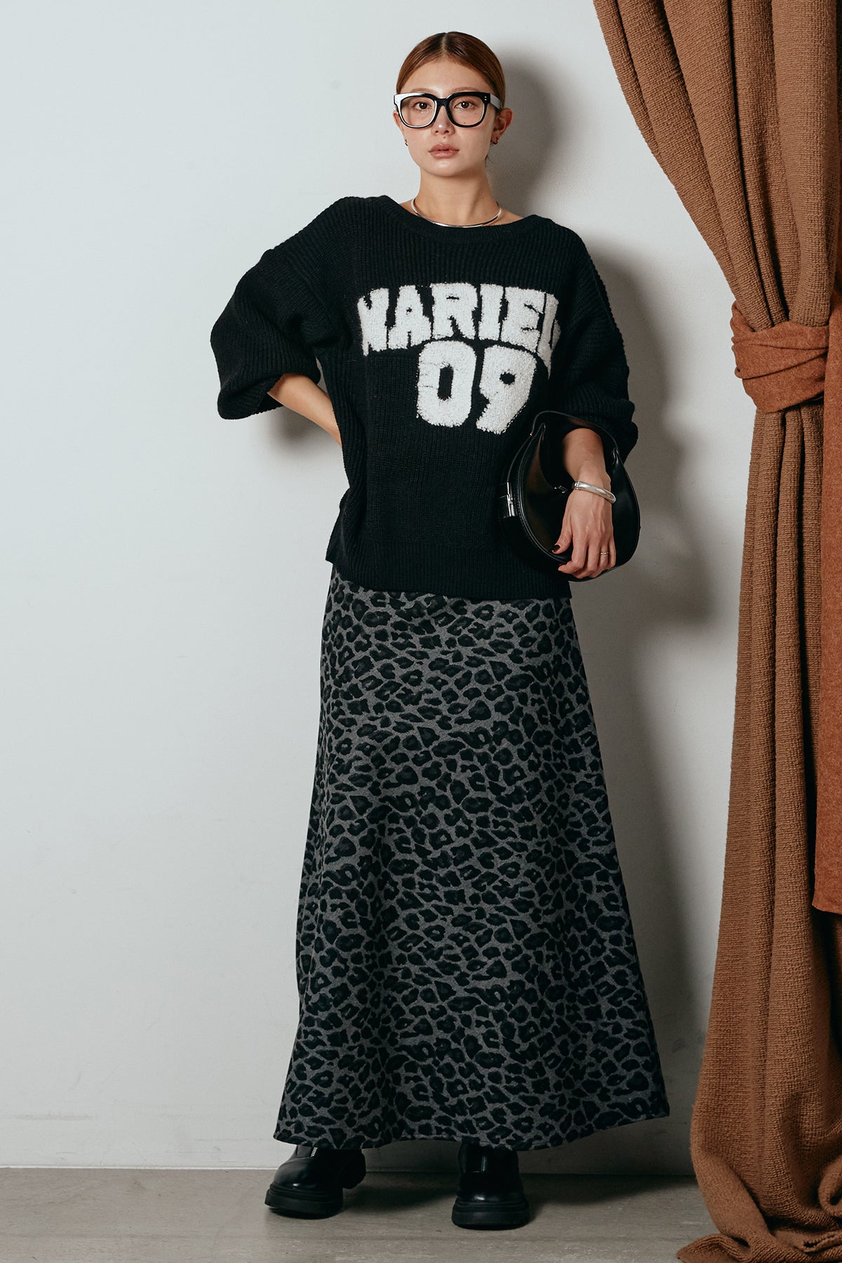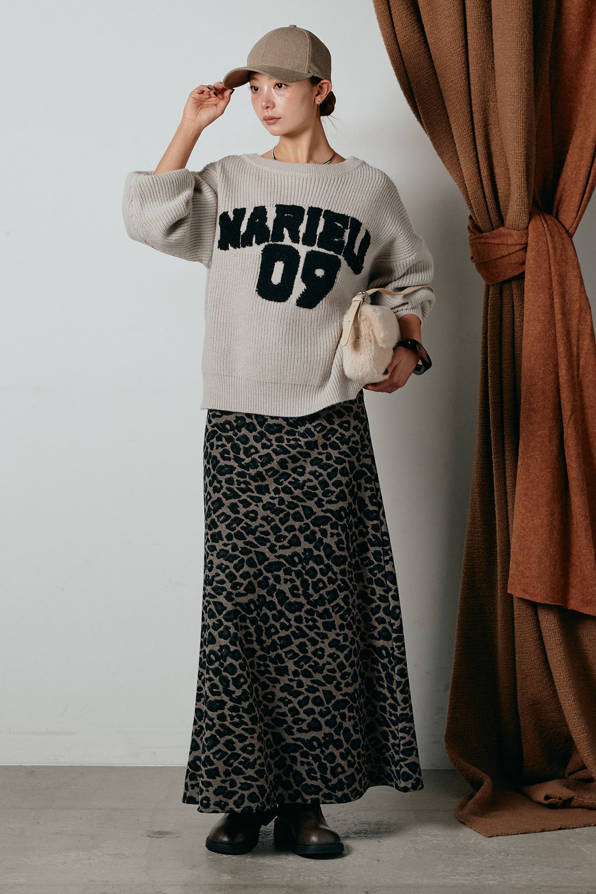 [SET]ロゴジャガードニットトップス+レオパードロングスカート(2set)