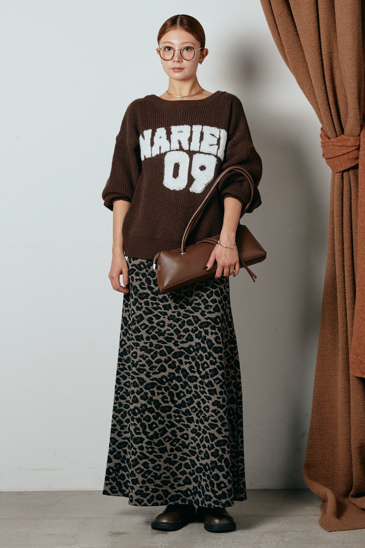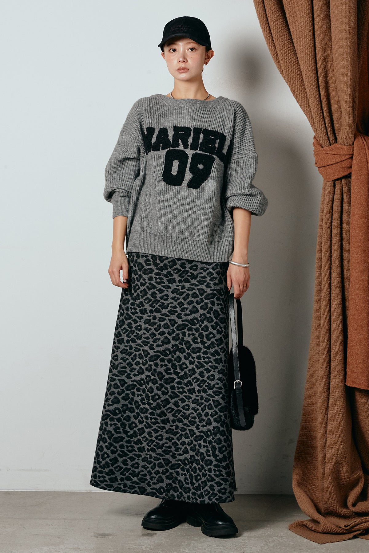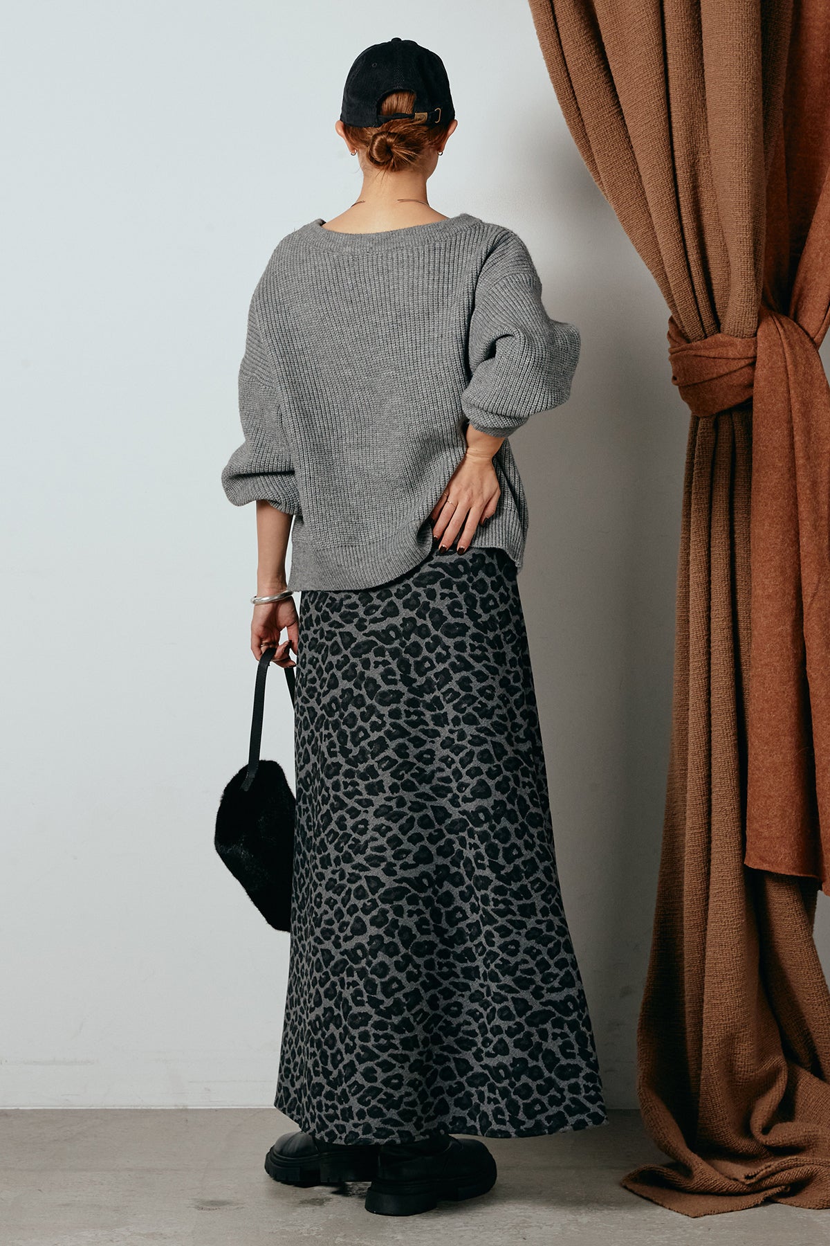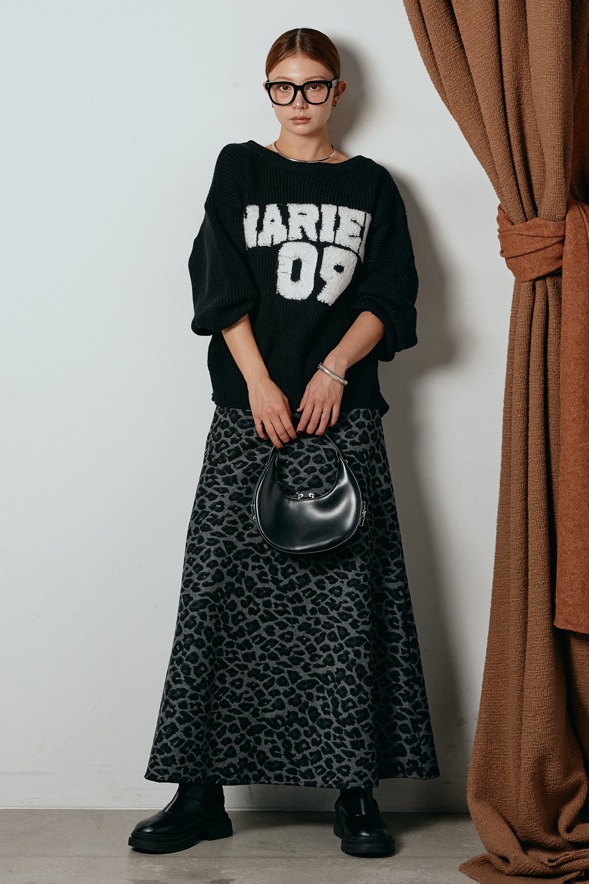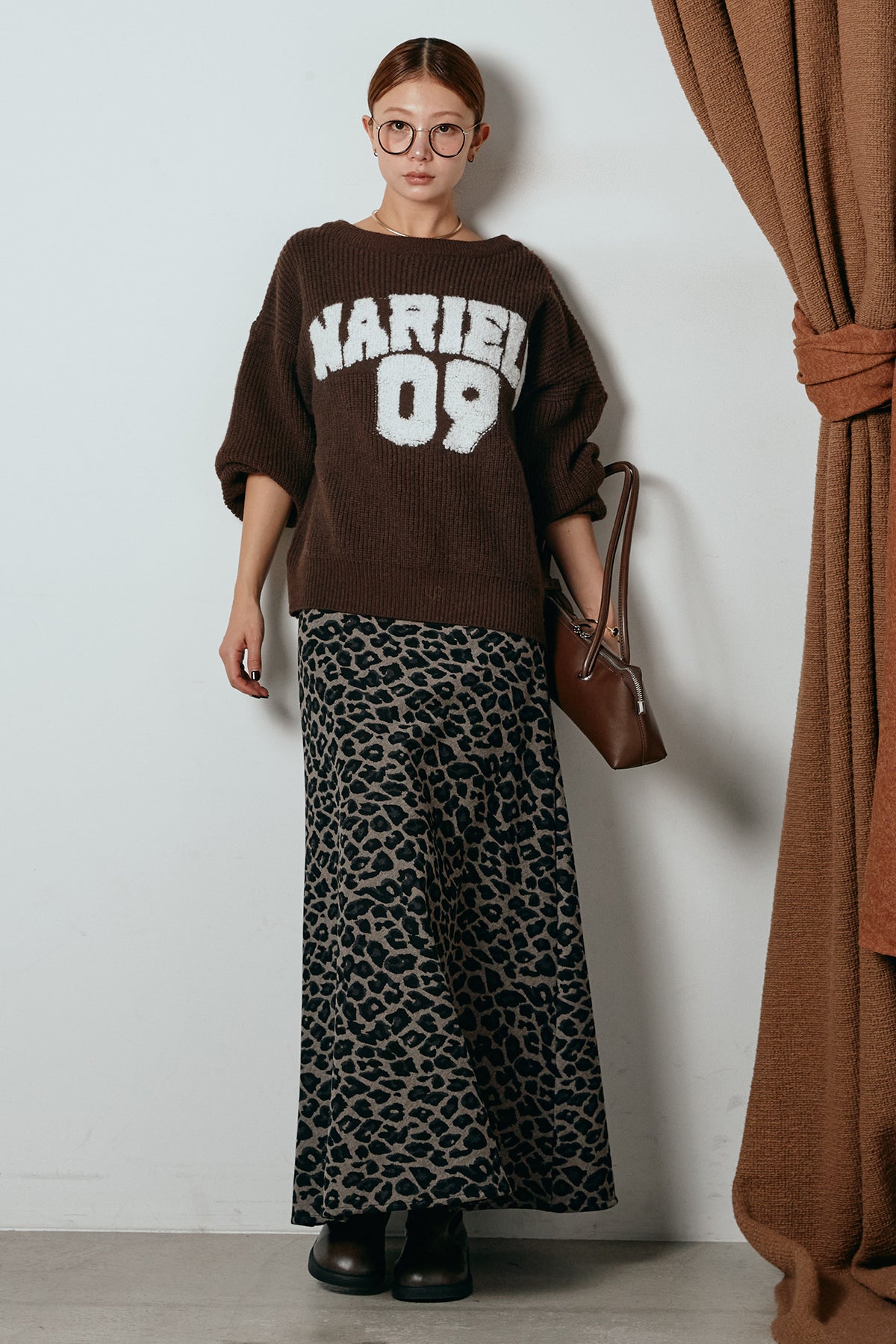 [SET]ロゴジャガードニットトップス+レオパードロングスカート(2set)