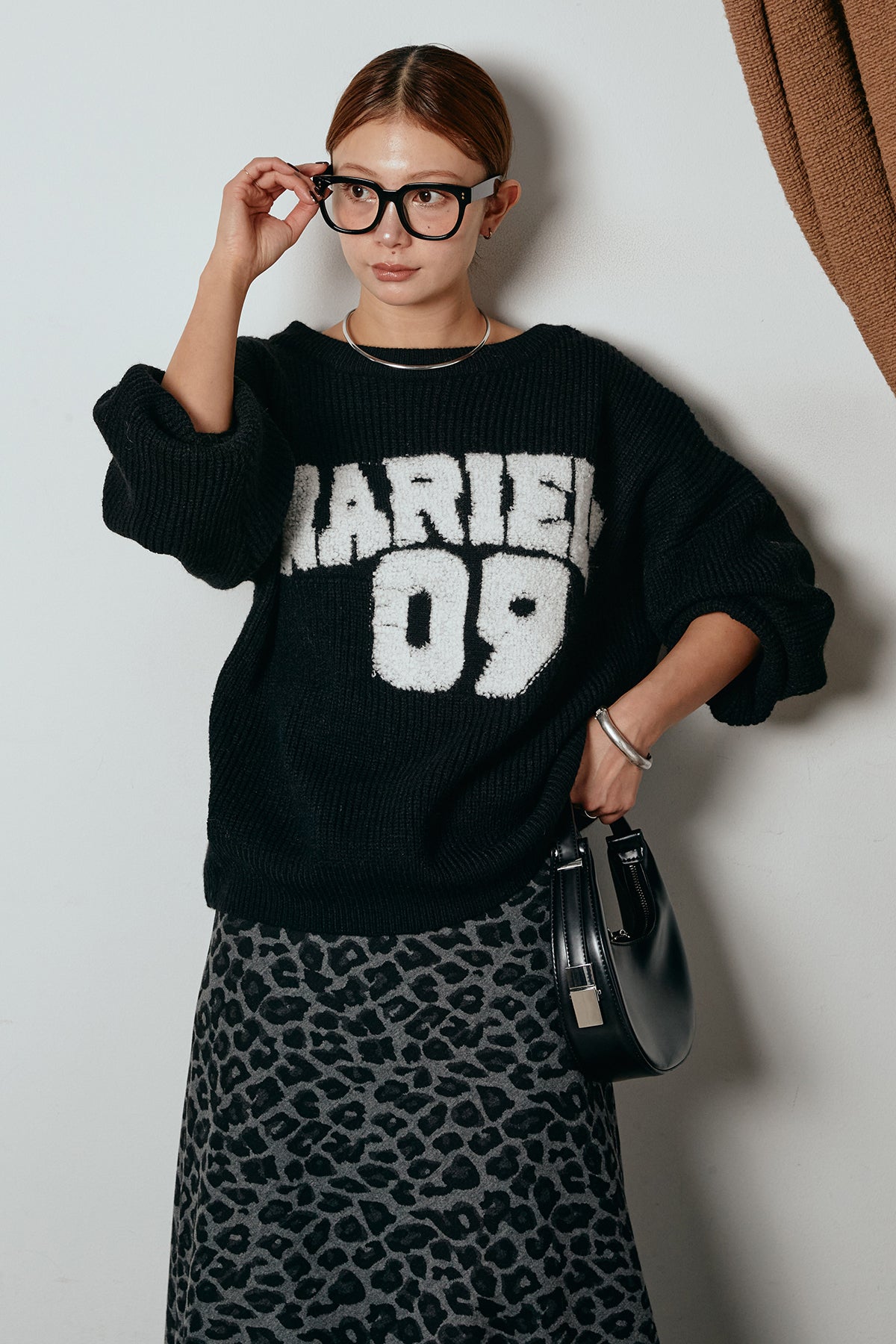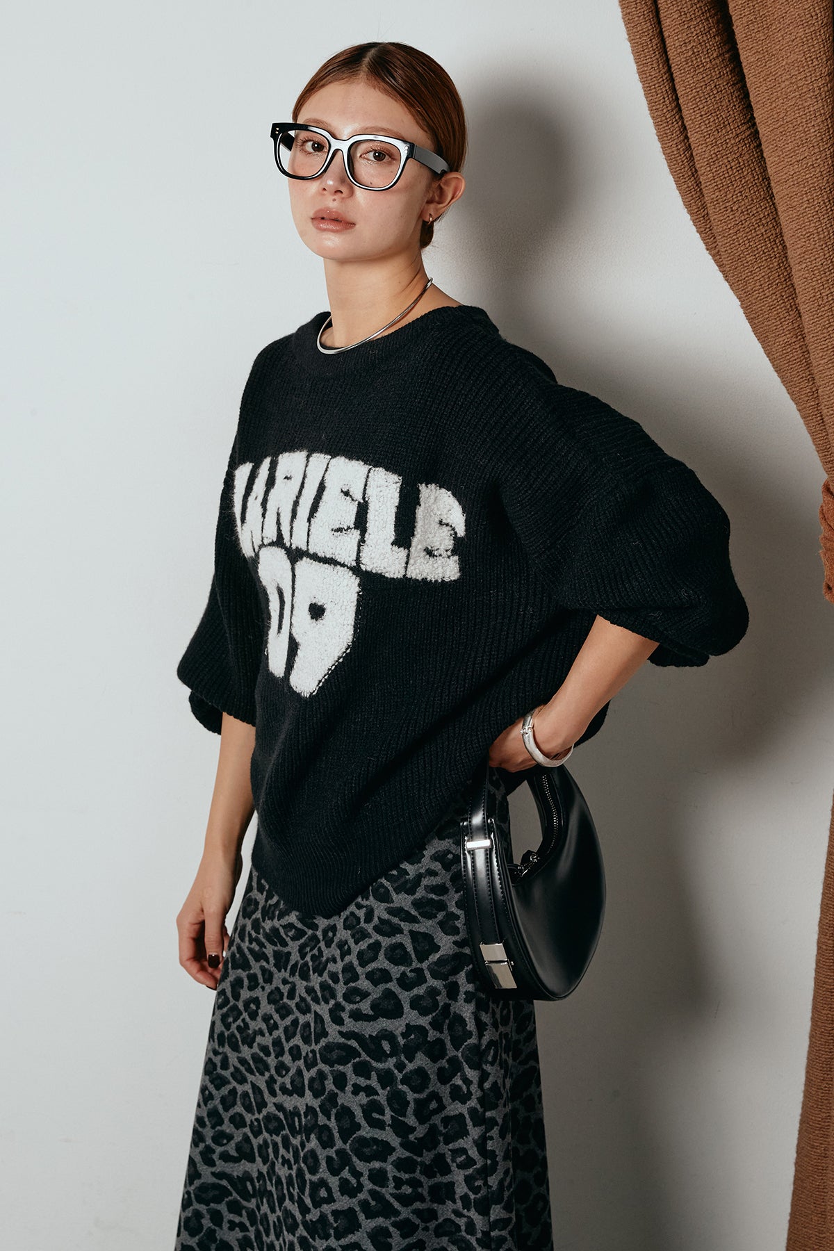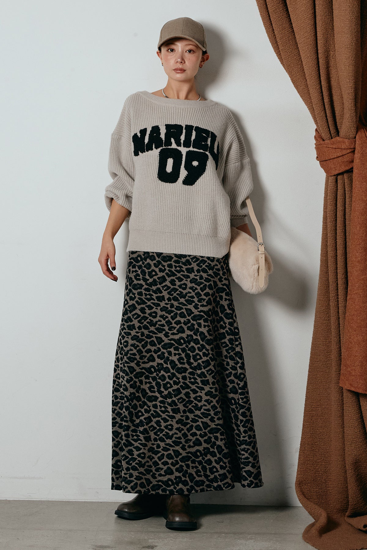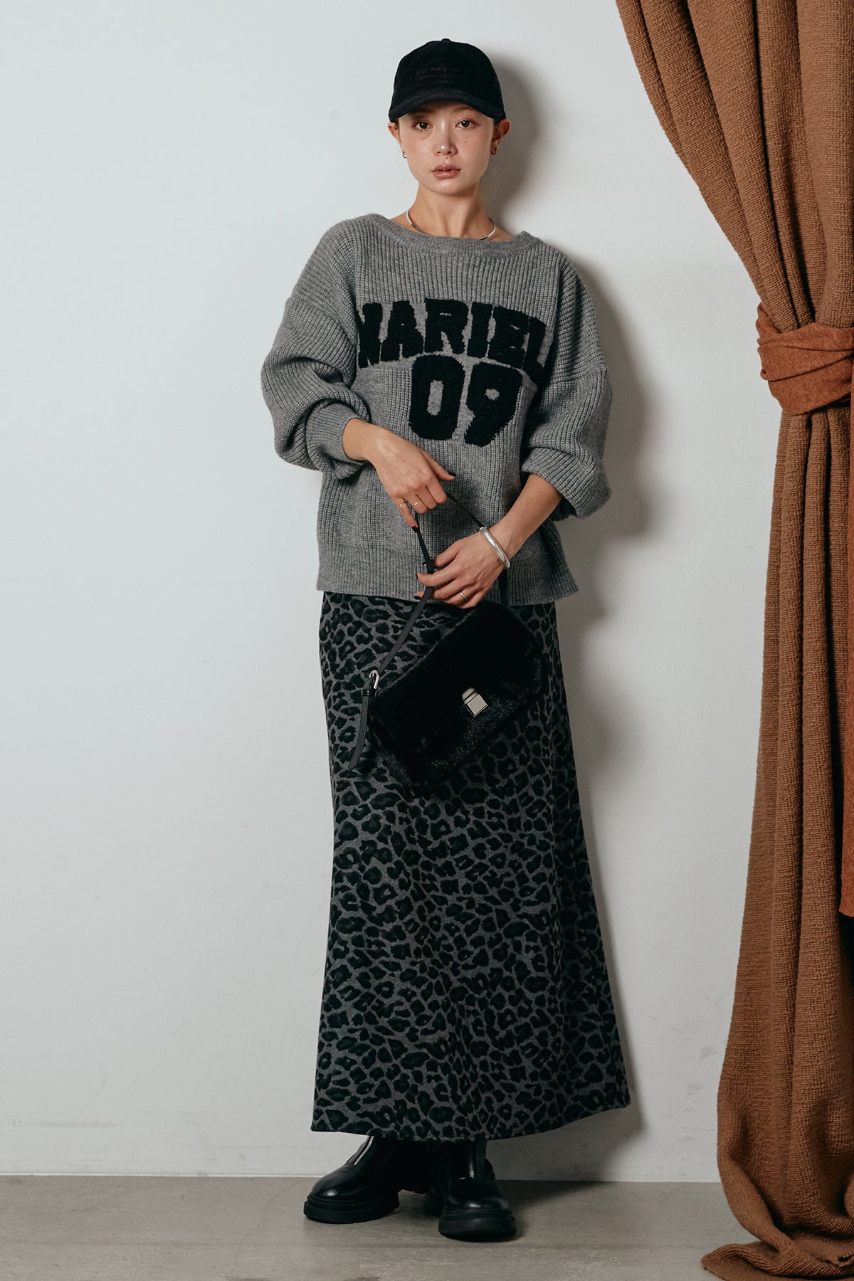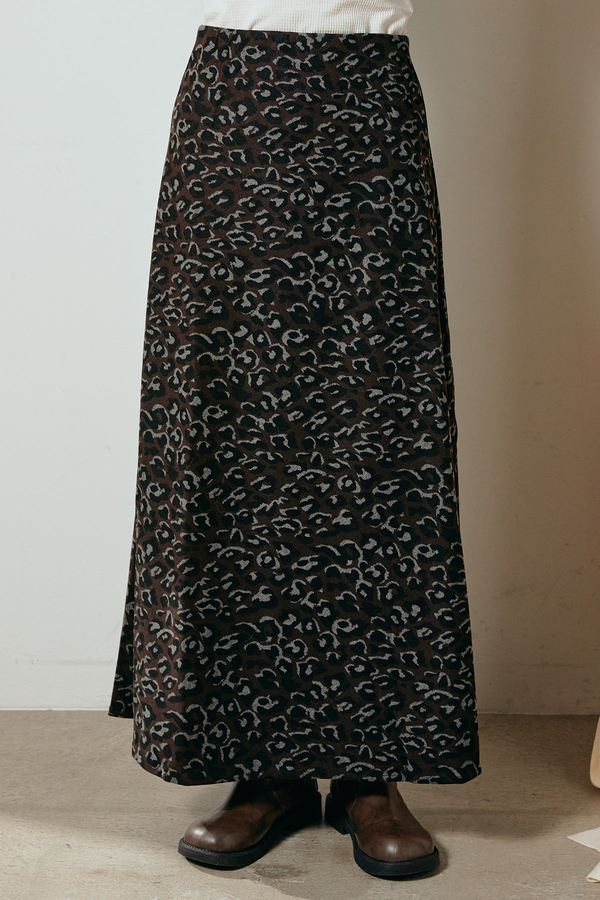 [SET]ロゴジャガードニットトップス+レオパードロングスカート(2set)
