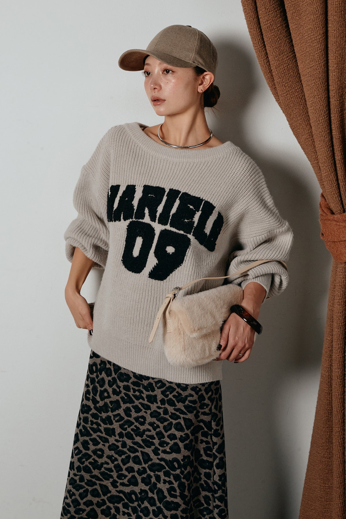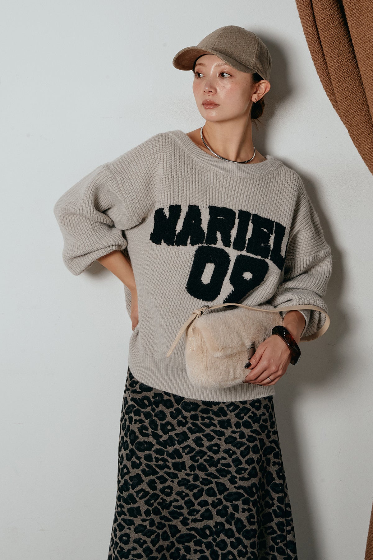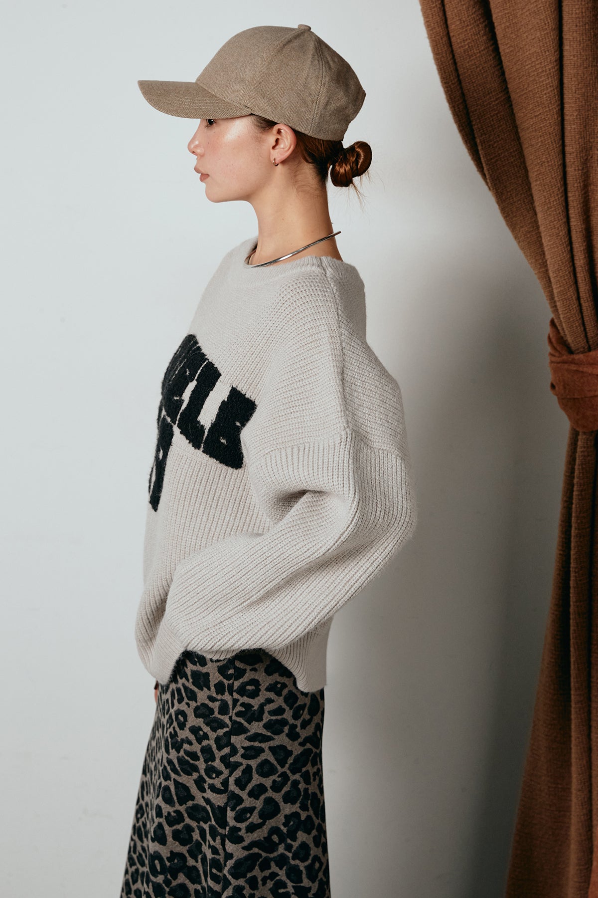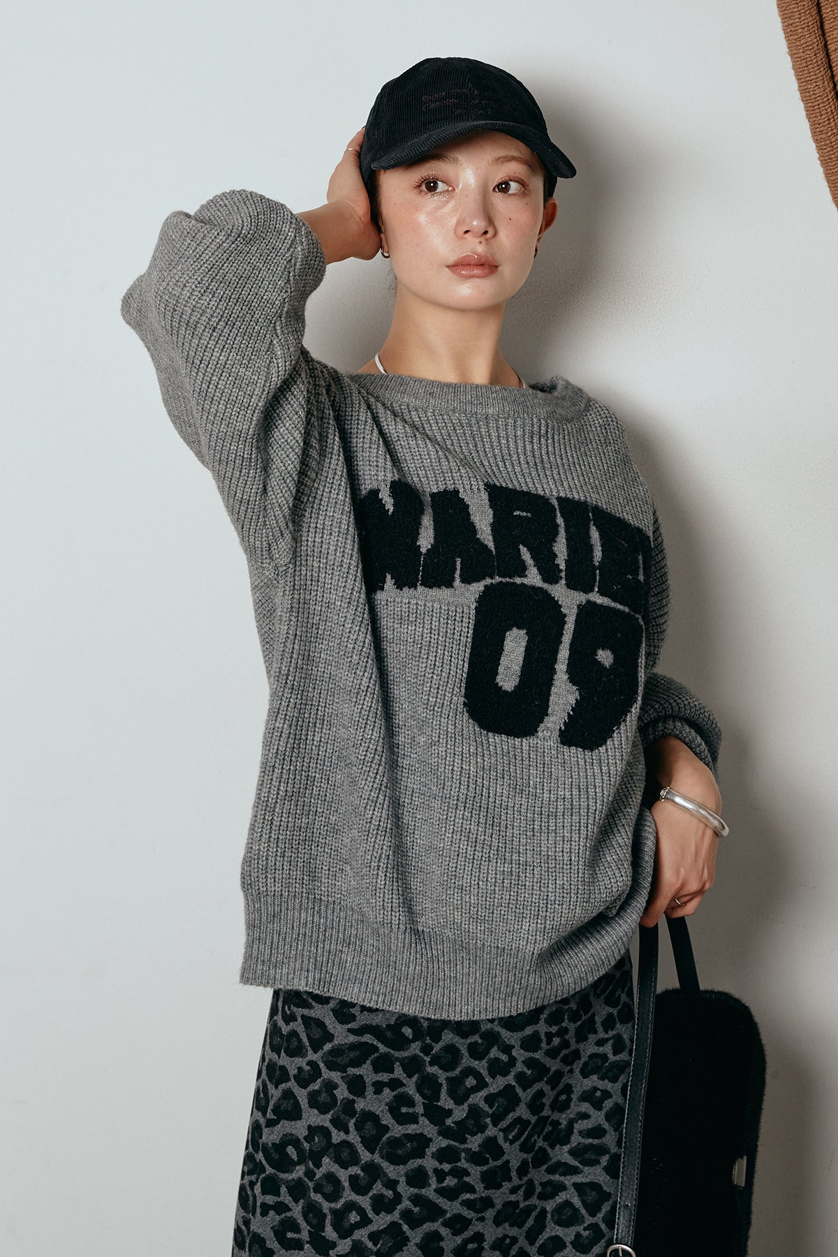 程よくゆとりのあるフォルムがこなれ感を高めるロゴジャガードニットトップス。 存在感のあるフロントロゴが、シンプルなボトムを合わせるだけで雰囲気のある着こなしに導きます。 柔らかなタッチで着心地も快適。首元は抜け感のある程よい広さで、レイヤードも楽しめるデザイン。 デニムやスカート、柄ボトムともバランスが取りやすく、デイリーに活躍する1枚です。