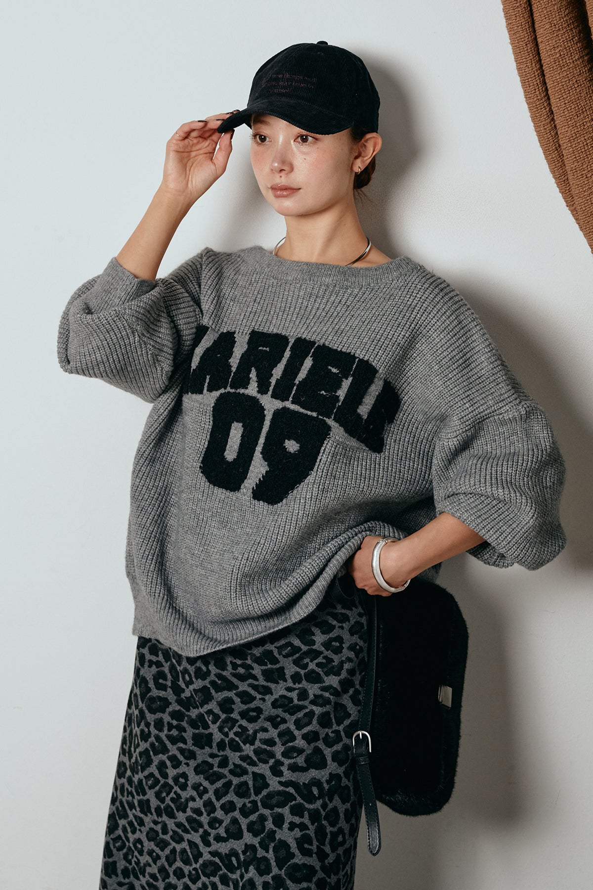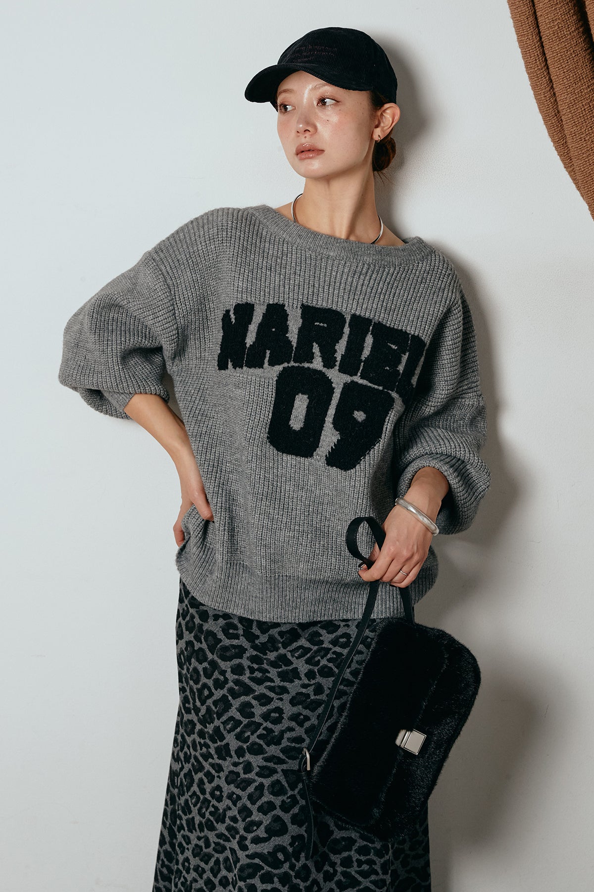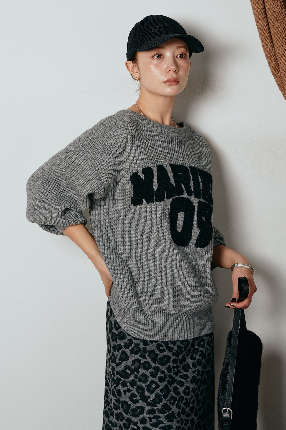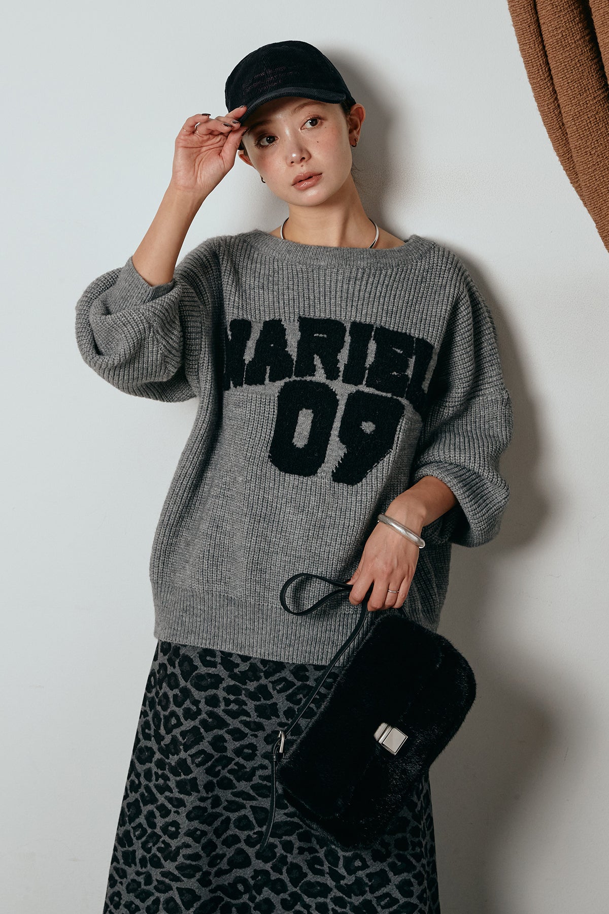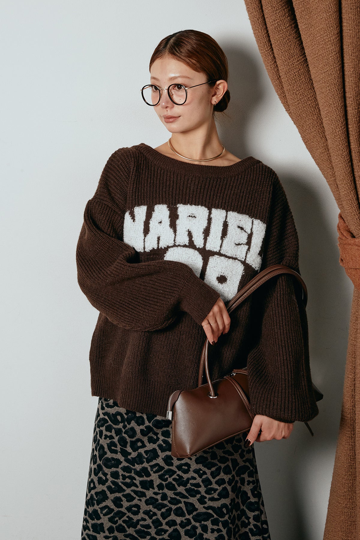 程よくゆとりのあるフォルムがこなれ感を高めるロゴジャガードニットトップス。 存在感のあるフロントロゴが、シンプルなボトムを合わせるだけで雰囲気のある着こなしに導きます。 柔らかなタッチで着心地も快適。首元は抜け感のある程よい広さで、レイヤードも楽しめるデザイン。 デニムやスカート、柄ボトムともバランスが取りやすく、デイリーに活躍する1枚です。