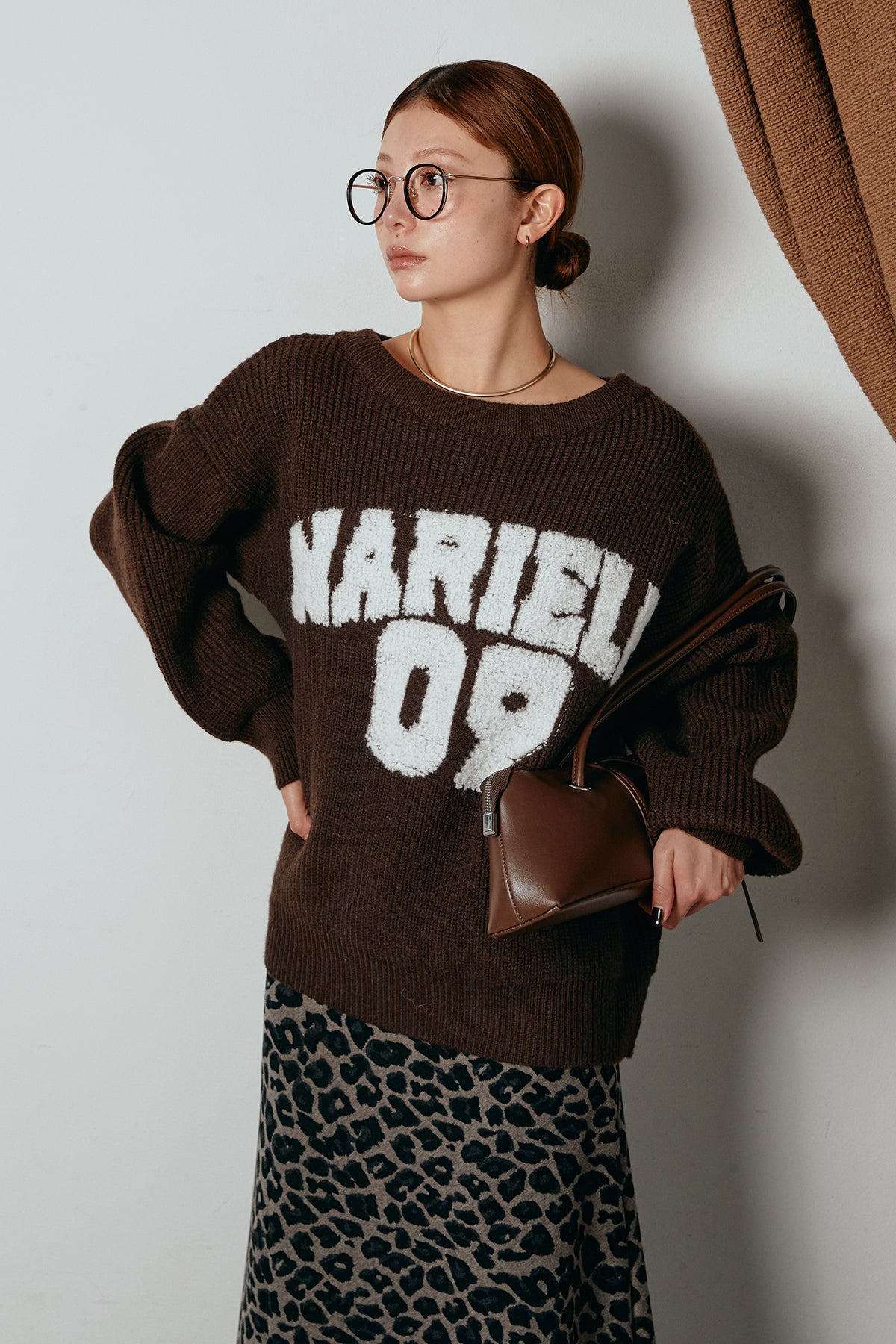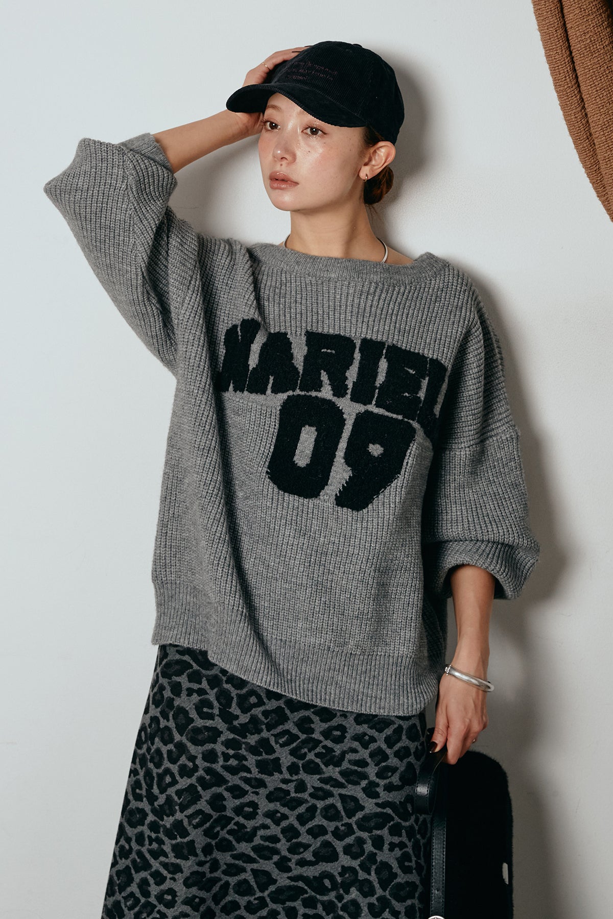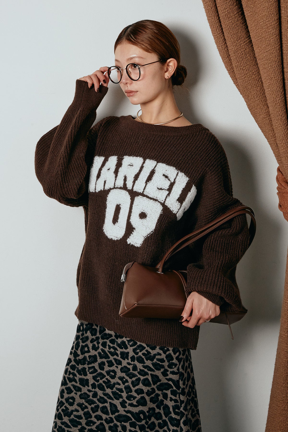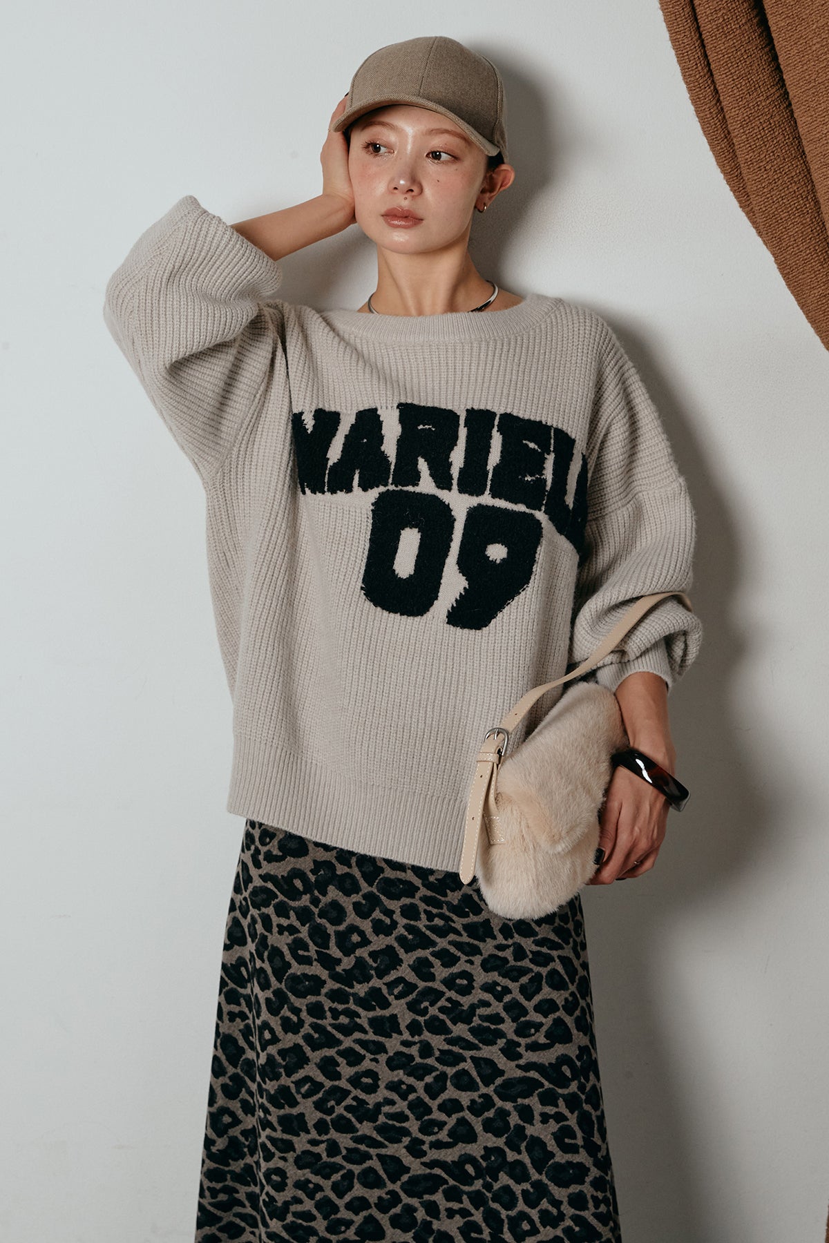 程よくゆとりのあるフォルムがこなれ感を高めるロゴジャガードニットトップス。 存在感のあるフロントロゴが、シンプルなボトムを合わせるだけで雰囲気のある着こなしに導きます。 柔らかなタッチで着心地も快適。首元は抜け感のある程よい広さで、レイヤードも楽しめるデザイン。 デニムやスカート、柄ボトムともバランスが取りやすく、デイリーに活躍する1枚です。