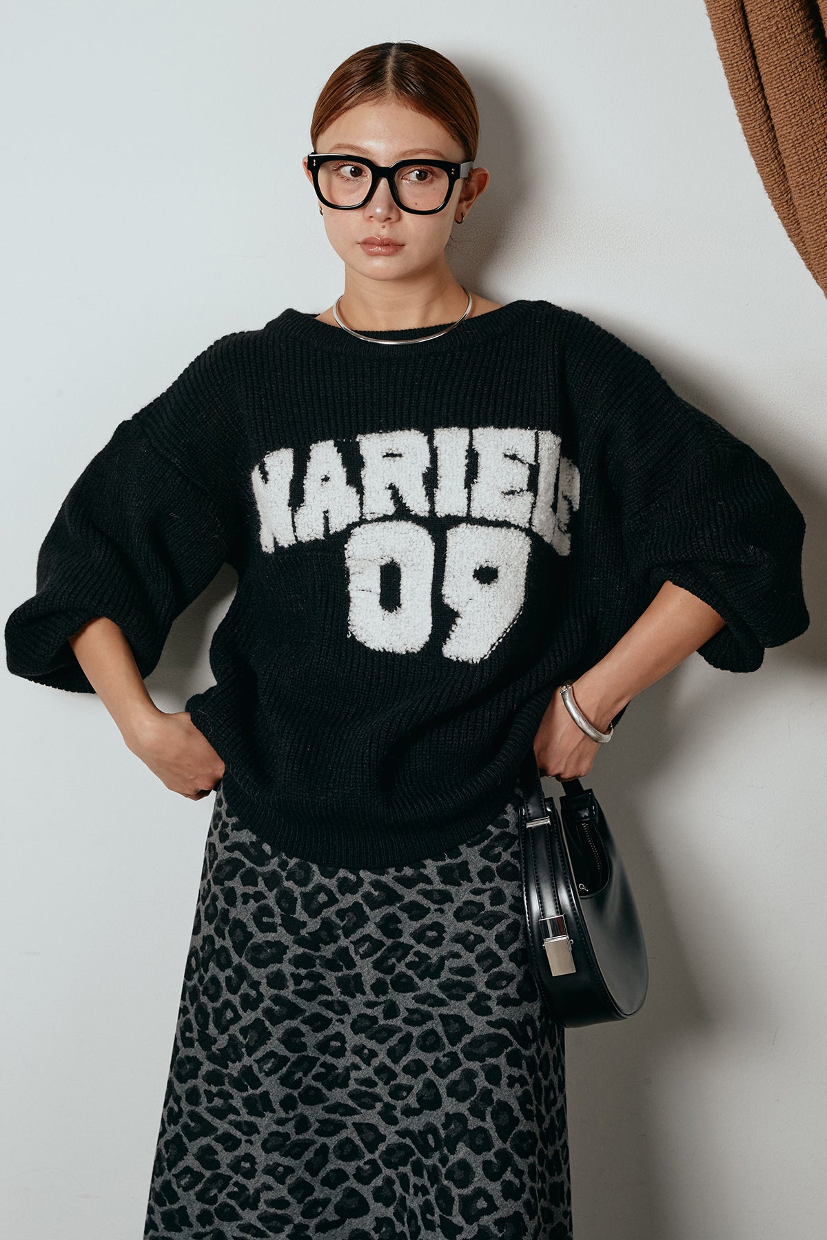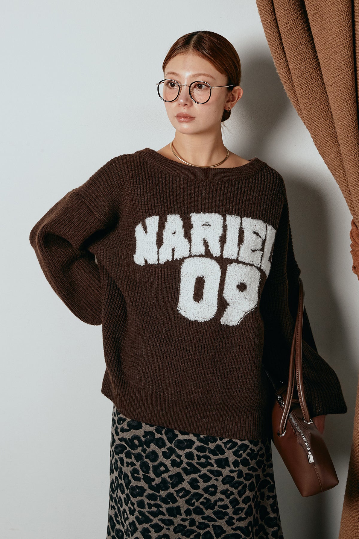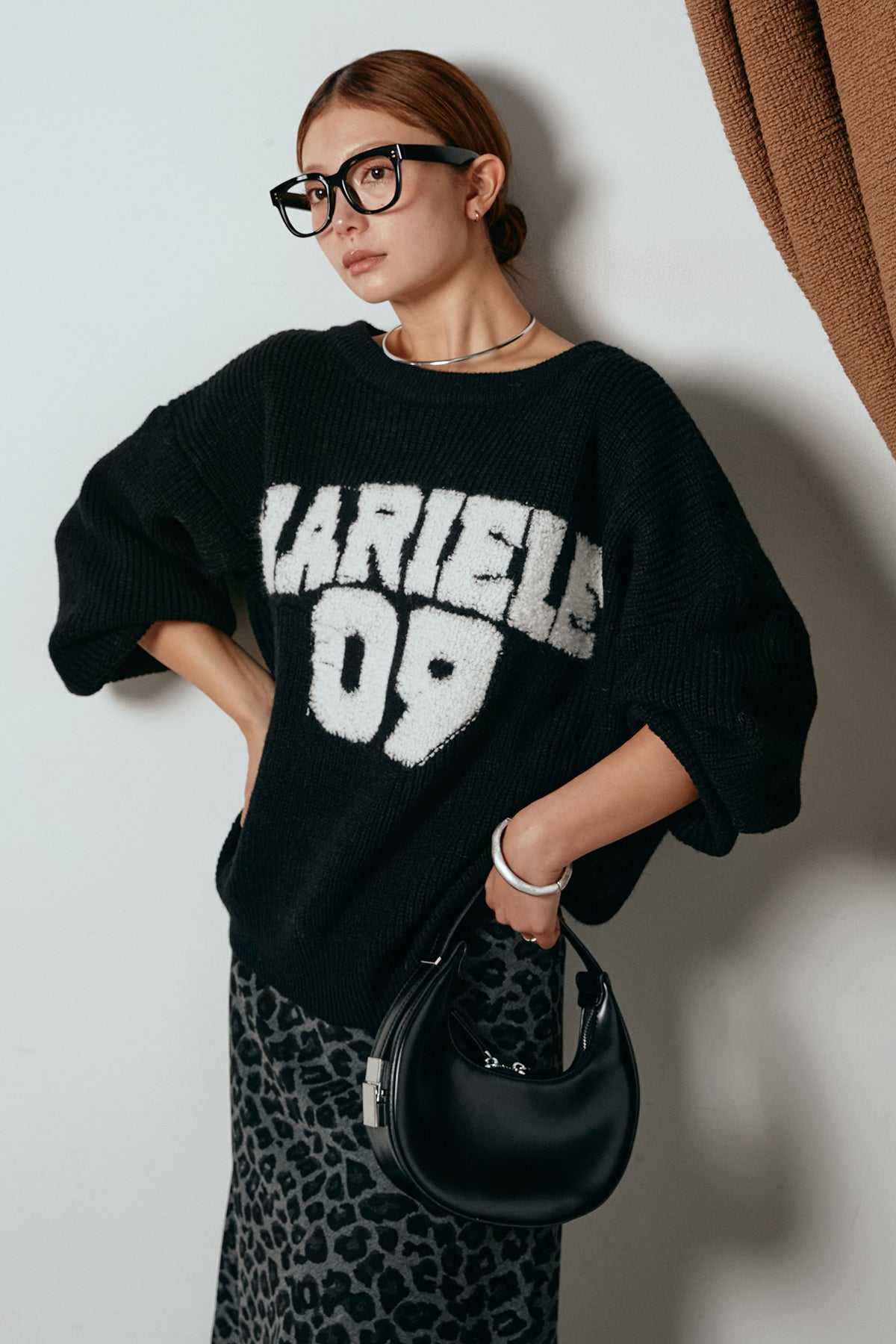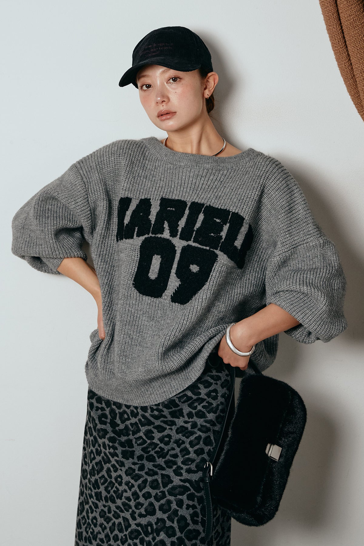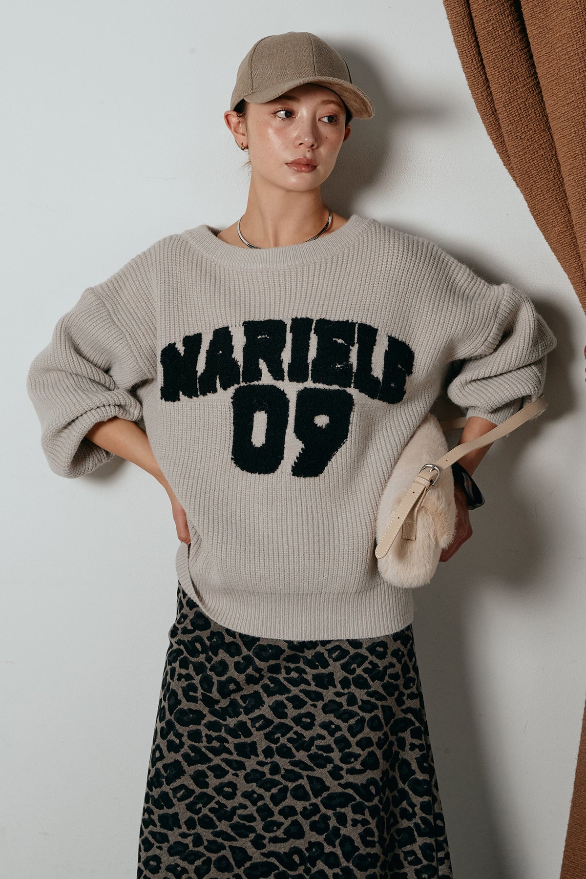 程よくゆとりのあるフォルムがこなれ感を高めるロゴジャガードニットトップス。 存在感のあるフロントロゴが、シンプルなボトムを合わせるだけで雰囲気のある着こなしに導きます。 柔らかなタッチで着心地も快適。首元は抜け感のある程よい広さで、レイヤードも楽しめるデザイン。 デニムやスカート、柄ボトムともバランスが取りやすく、デイリーに活躍する1枚です。