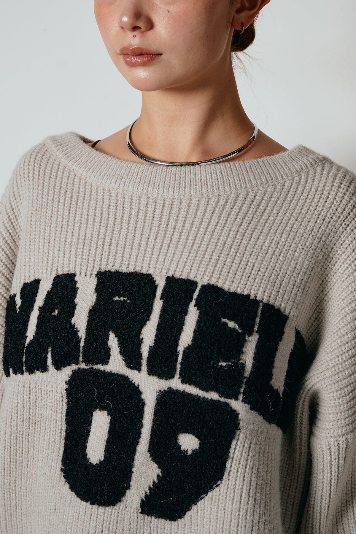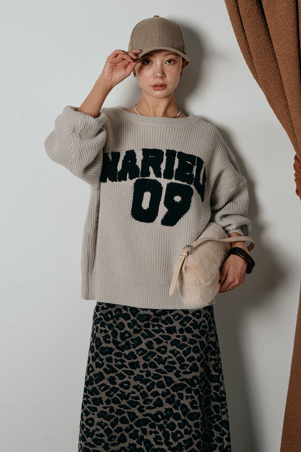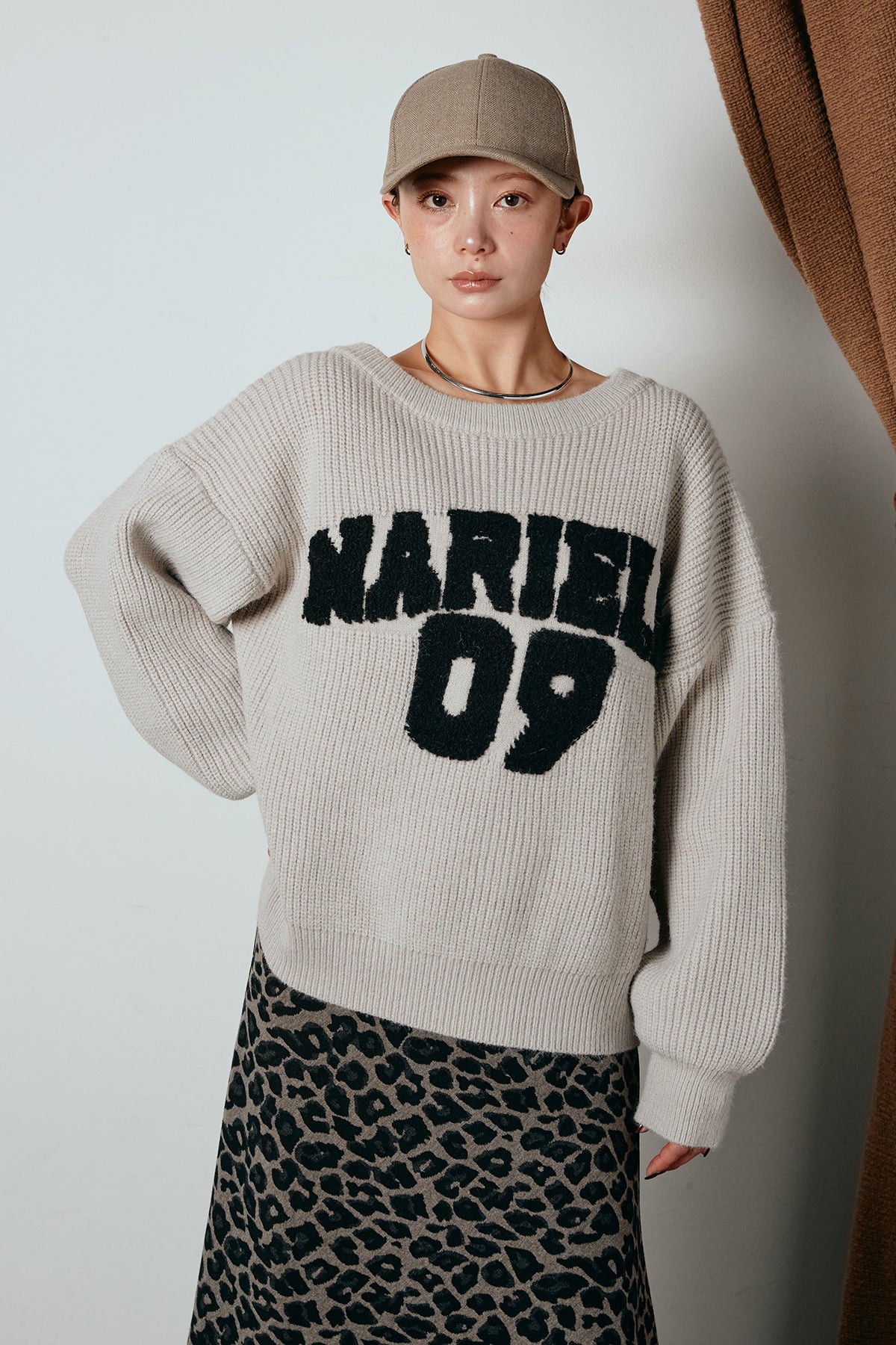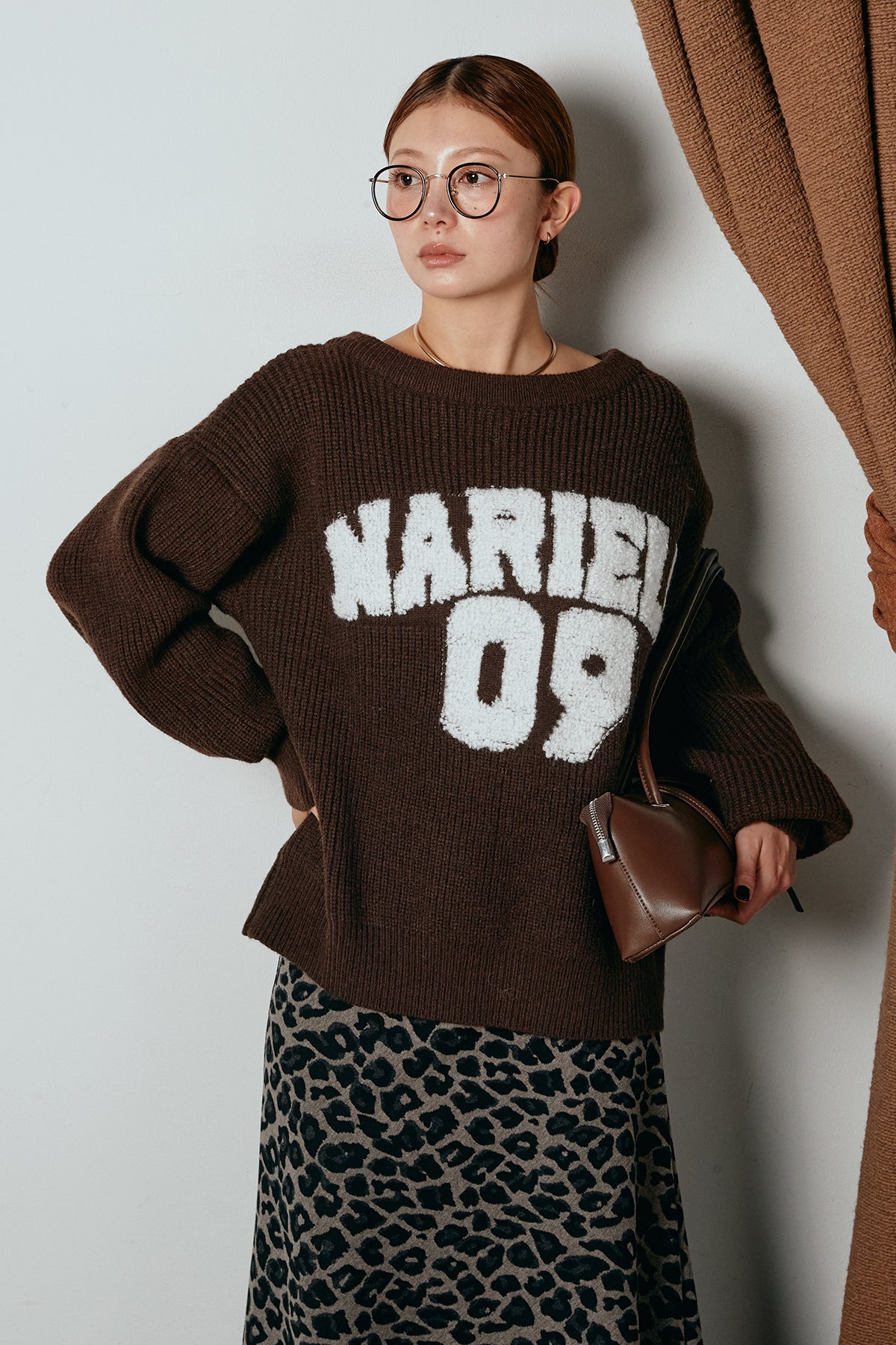 程よくゆとりのあるフォルムがこなれ感を高めるロゴジャガードニットトップス。 存在感のあるフロントロゴが、シンプルなボトムを合わせるだけで雰囲気のある着こなしに導きます。 柔らかなタッチで着心地も快適。首元は抜け感のある程よい広さで、レイヤードも楽しめるデザイン。 デニムやスカート、柄ボトムともバランスが取りやすく、デイリーに活躍する1枚です。