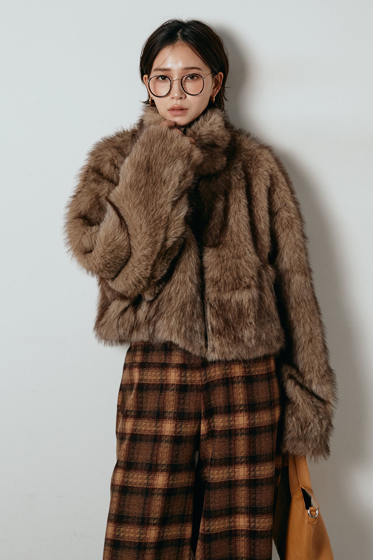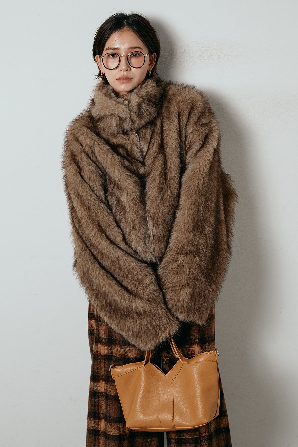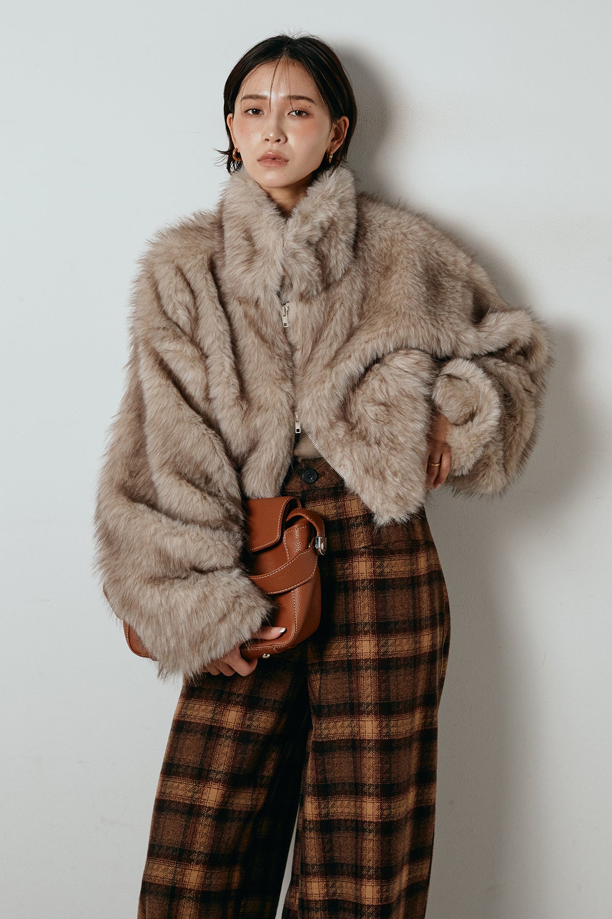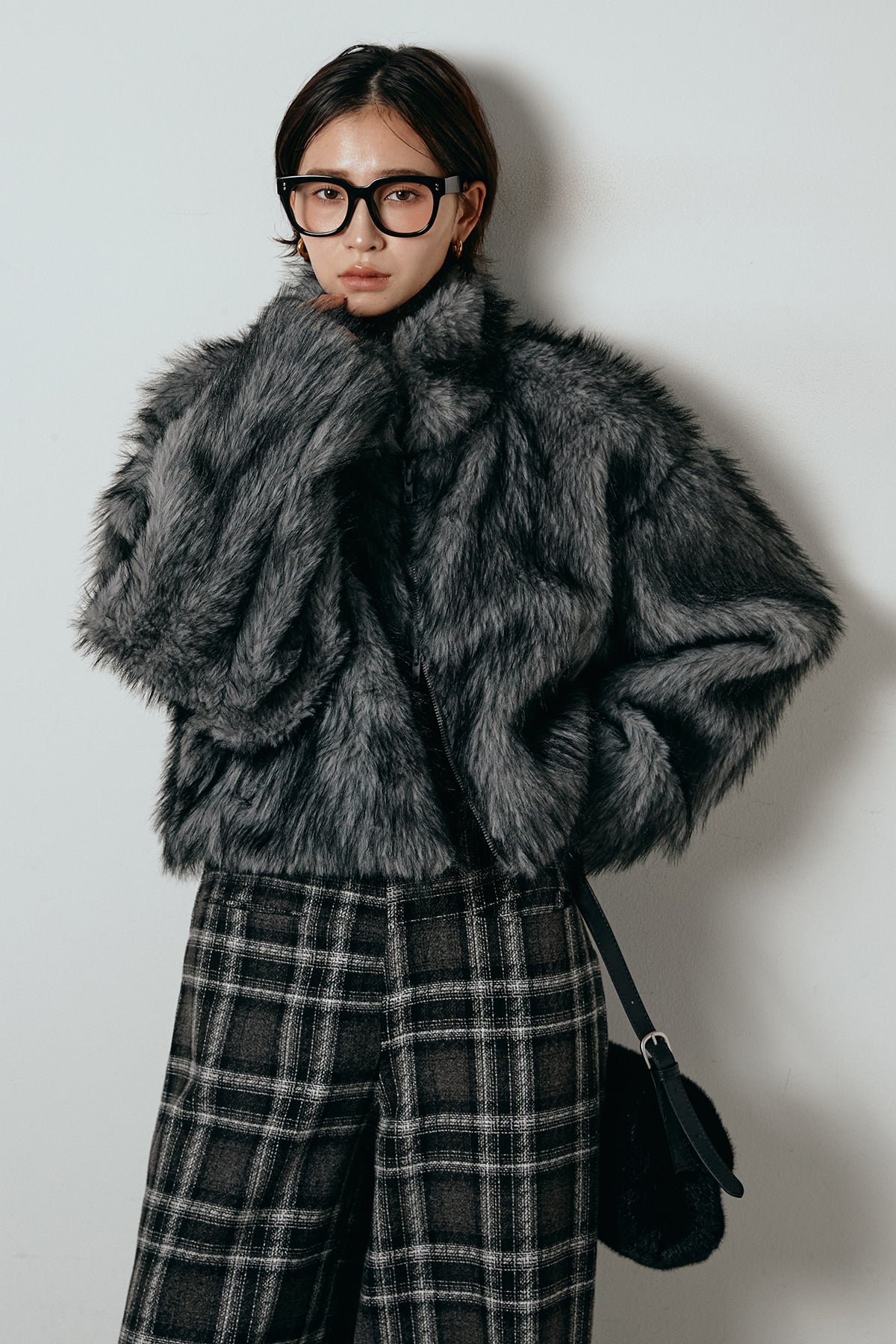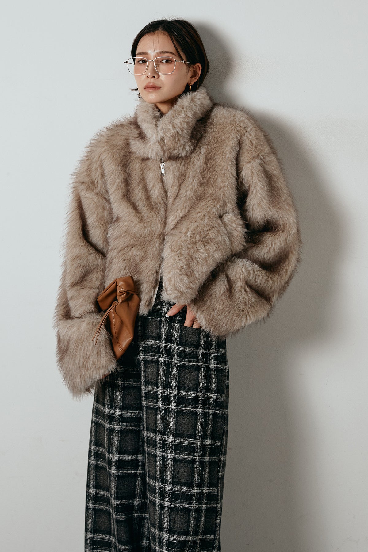 ふんわりとした毛足が魅力のエコファーショート丈ブルゾン。 軽やかな着心地ながら暖かく、ボリューム感のあるフォルムが華やかな印象を与えます。 コンパクトな丈感でバランスが取りやすく、ワイドパンツやロングスカートとも好相性。 シンプルなコーデにプラスするだけで、シーズンムードを引き立てる主役アウターです。