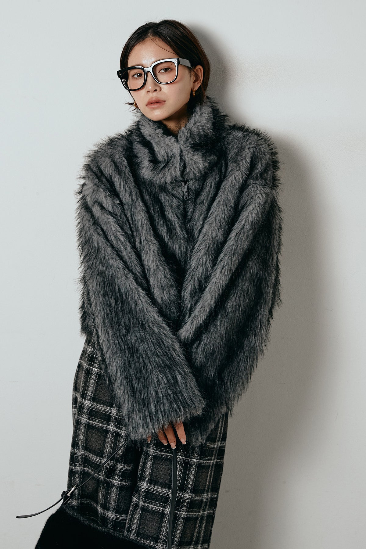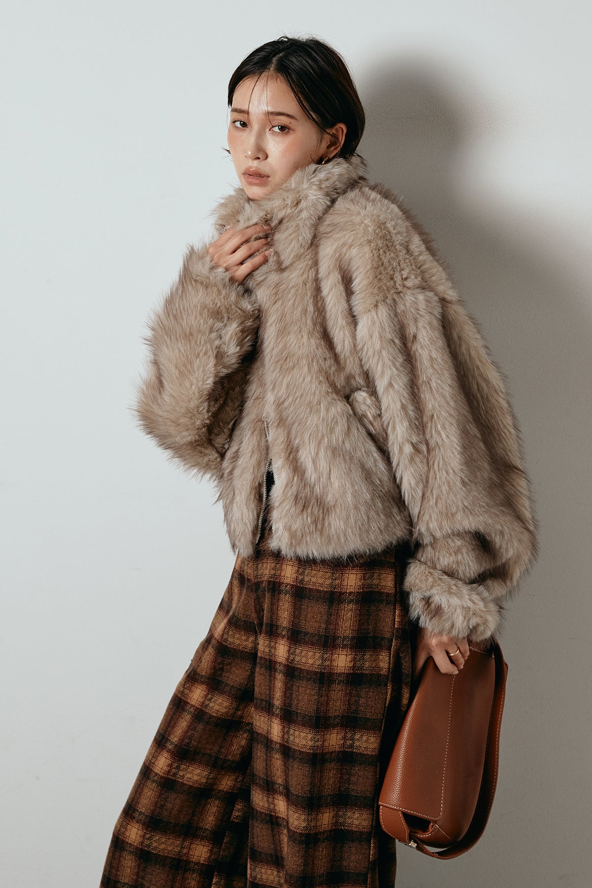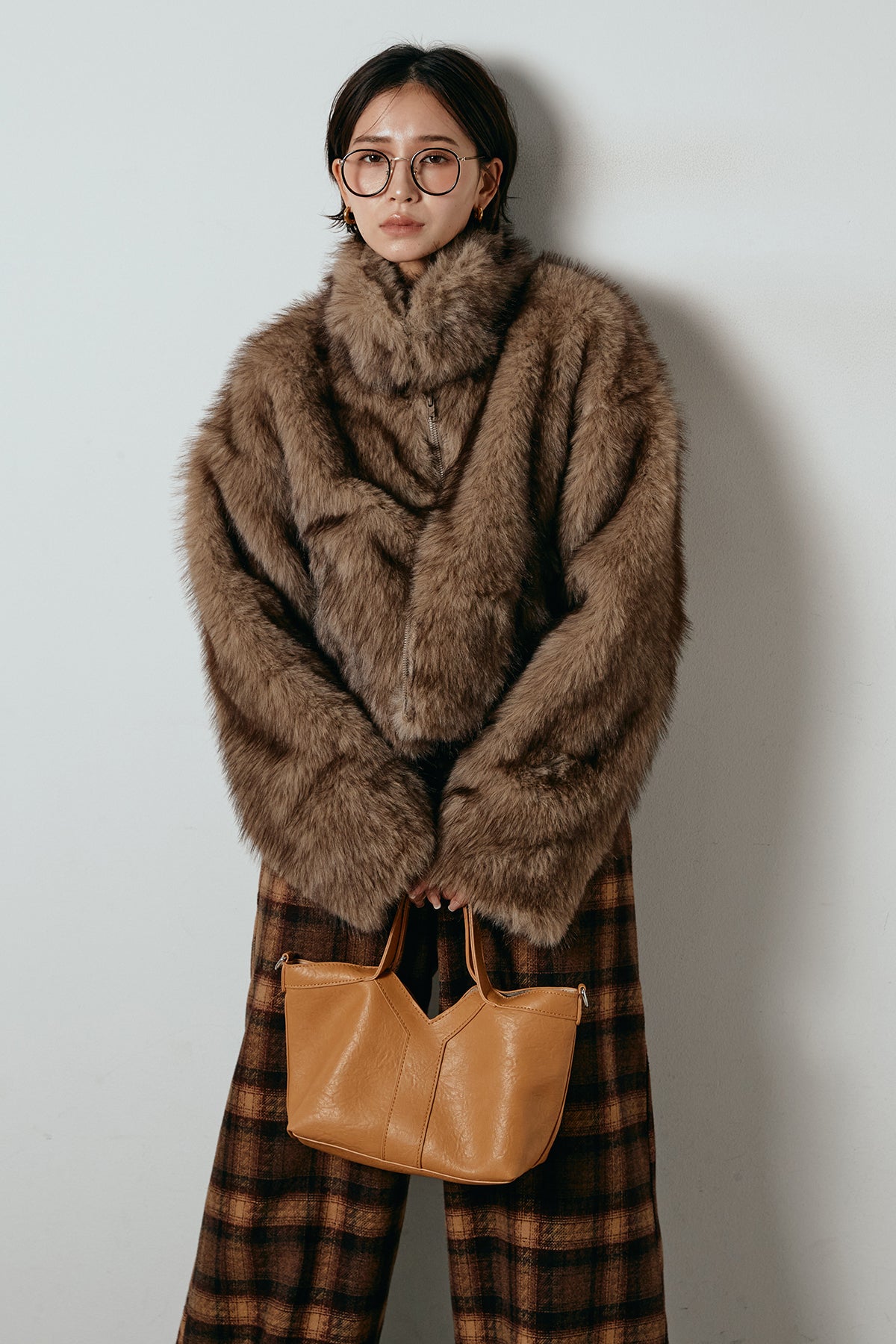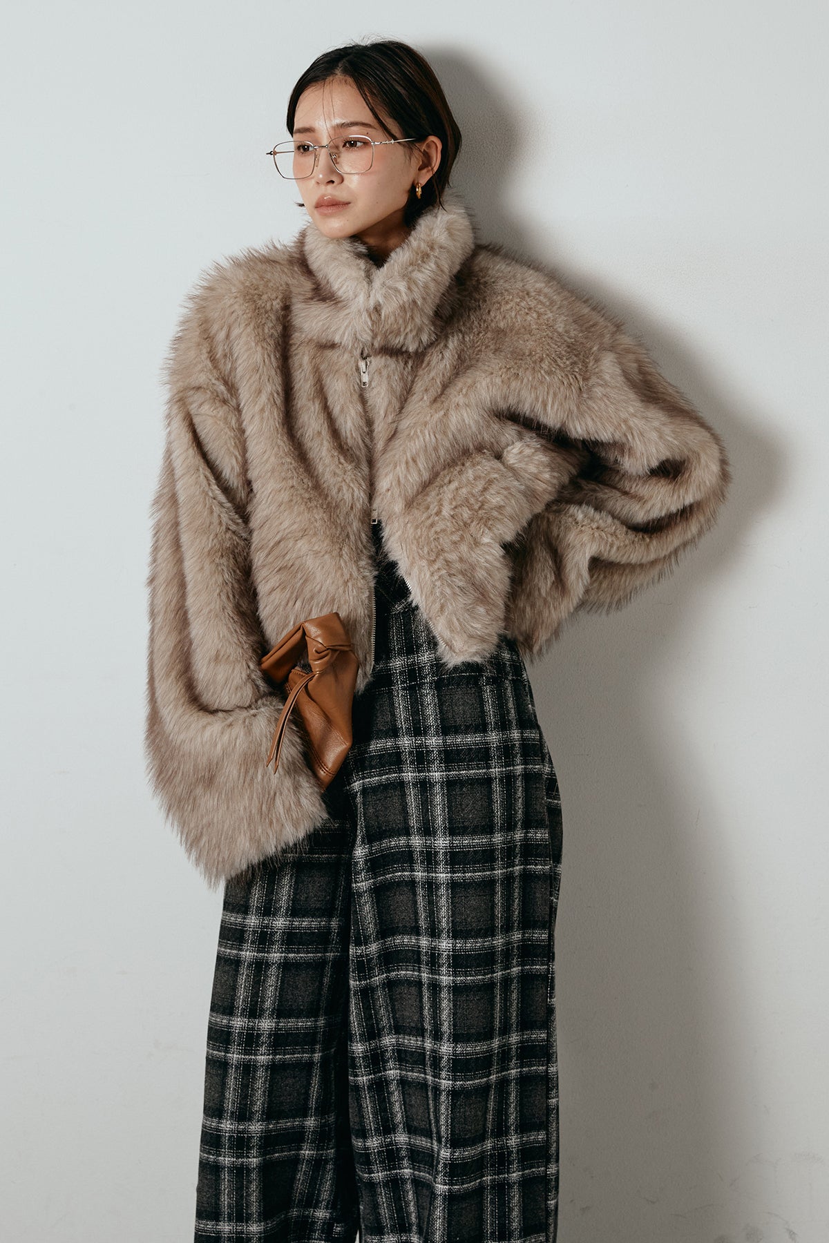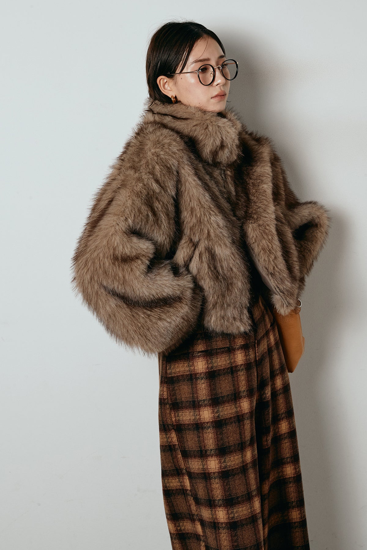 ふんわりとした毛足が魅力のエコファーショート丈ブルゾン。 軽やかな着心地ながら暖かく、ボリューム感のあるフォルムが華やかな印象を与えます。 コンパクトな丈感でバランスが取りやすく、ワイドパンツやロングスカートとも好相性。 シンプルなコーデにプラスするだけで、シーズンムードを引き立てる主役アウターです。