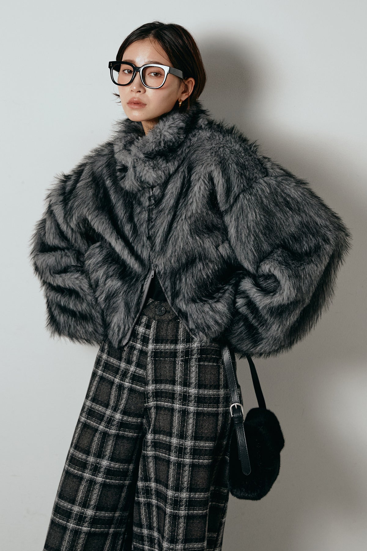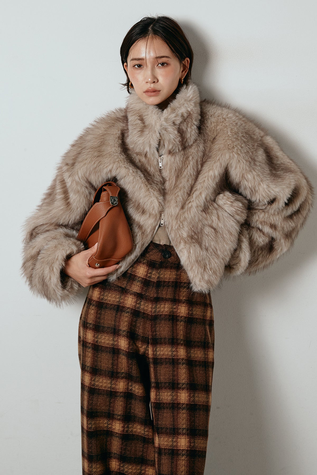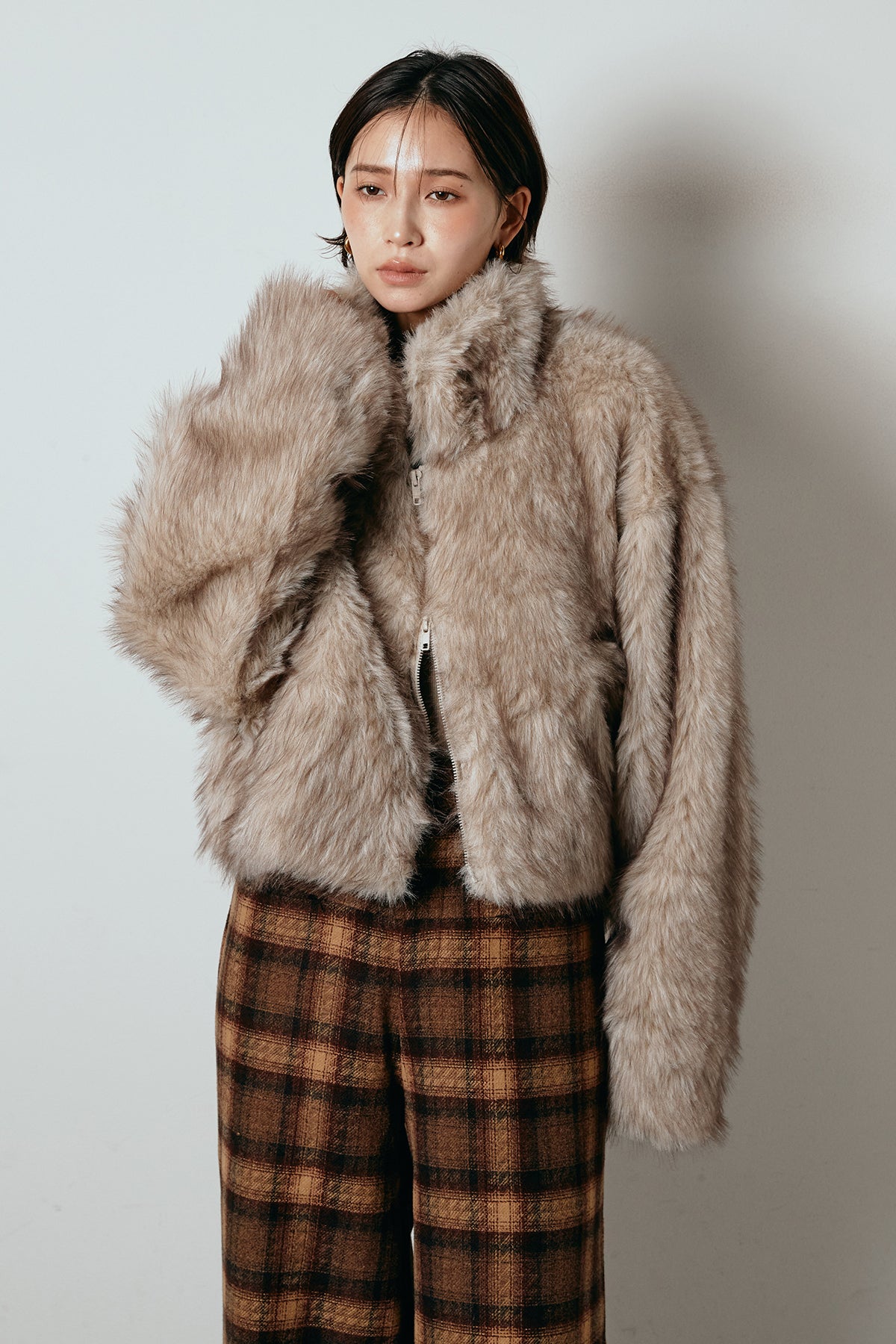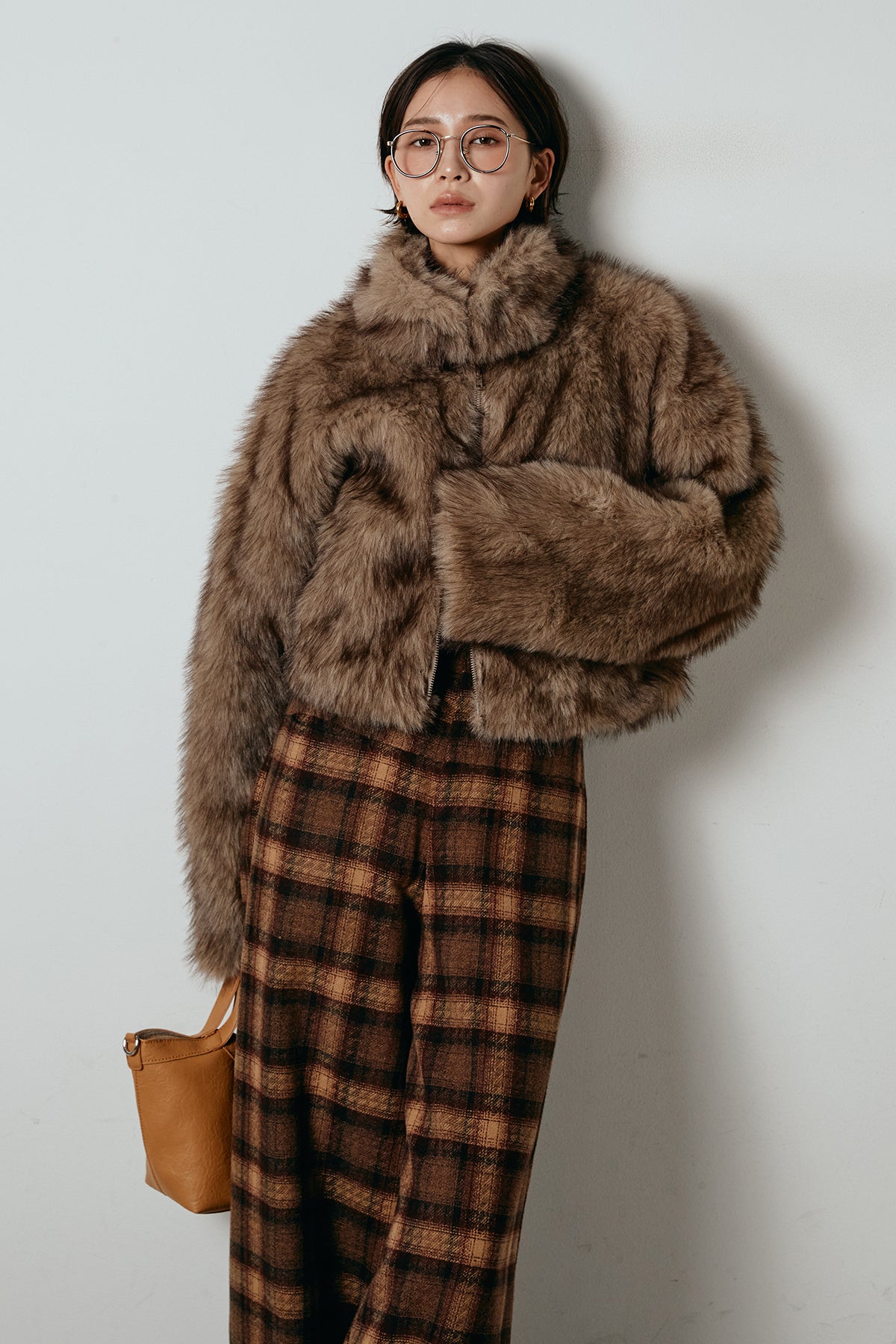 ふんわりとした毛足が魅力のエコファーショート丈ブルゾン。 軽やかな着心地ながら暖かく、ボリューム感のあるフォルムが華やかな印象を与えます。 コンパクトな丈感でバランスが取りやすく、ワイドパンツやロングスカートとも好相性。 シンプルなコーデにプラスするだけで、シーズンムードを引き立てる主役アウターです。