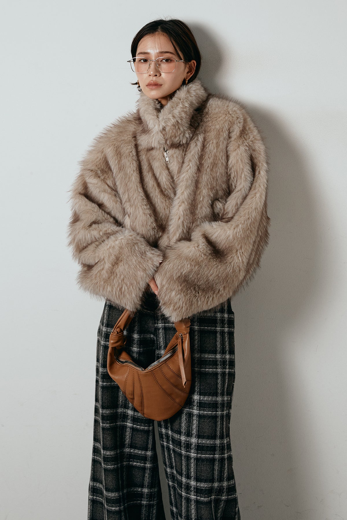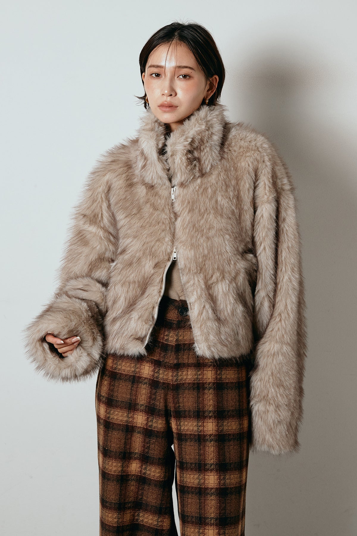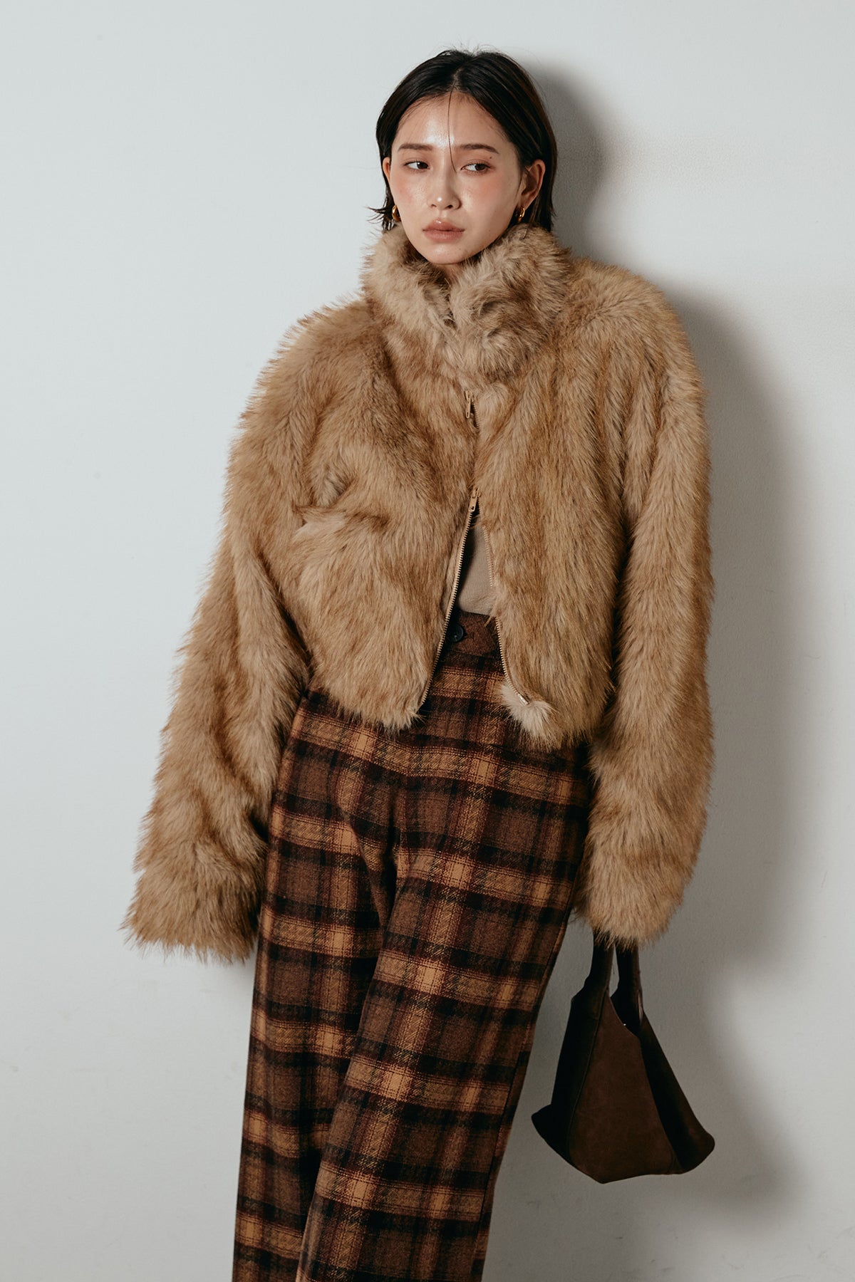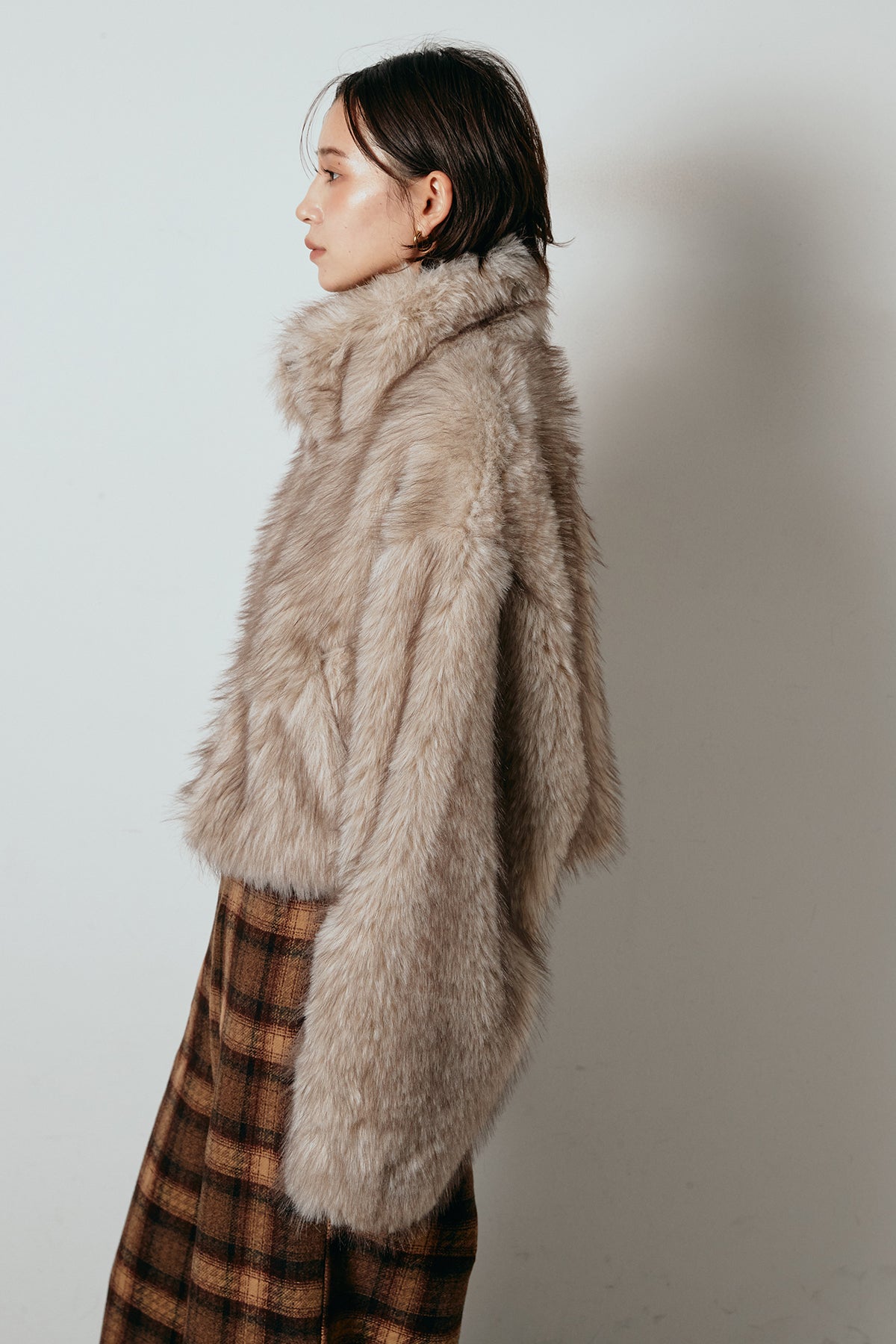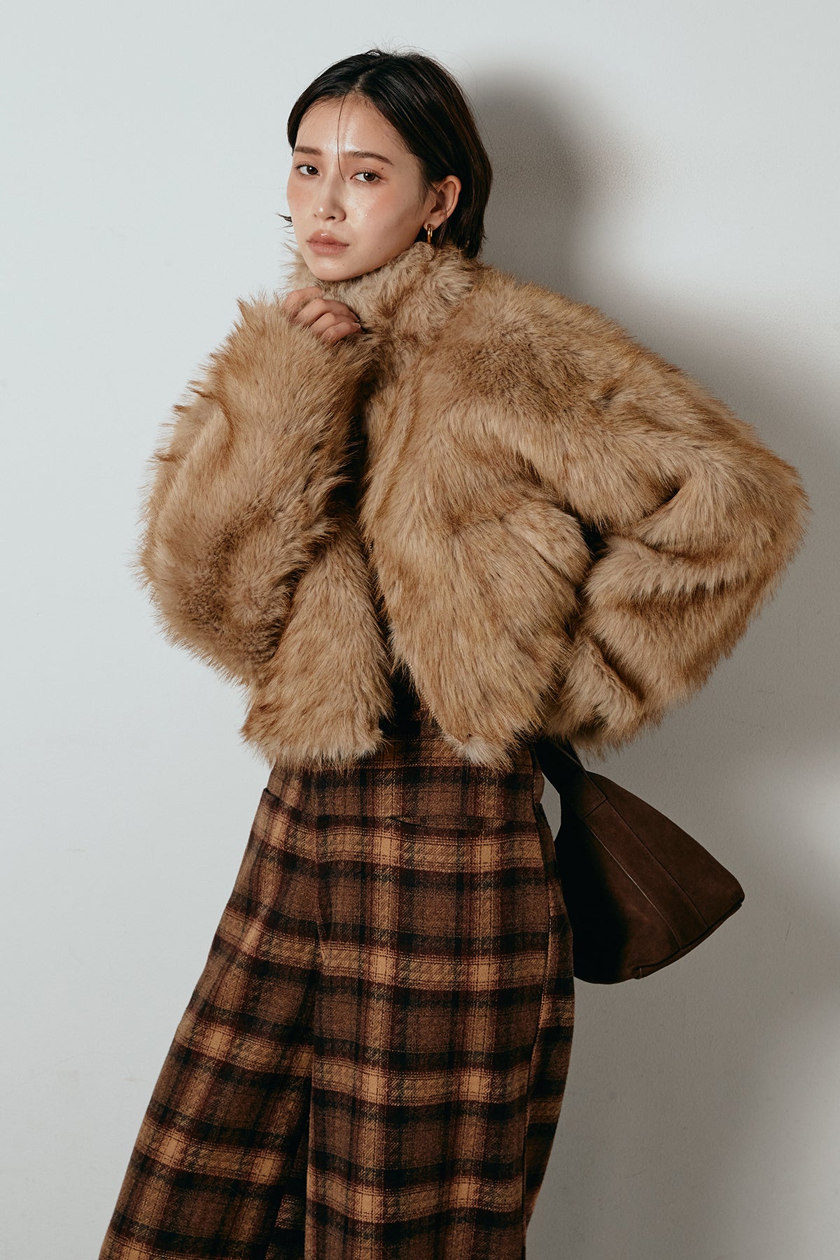 ふんわりとした毛足が魅力のエコファーショート丈ブルゾン。 軽やかな着心地ながら暖かく、ボリューム感のあるフォルムが華やかな印象を与えます。 コンパクトな丈感でバランスが取りやすく、ワイドパンツやロングスカートとも好相性。 シンプルなコーデにプラスするだけで、シーズンムードを引き立てる主役アウターです。