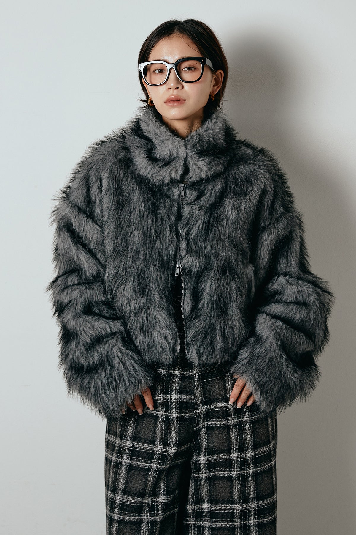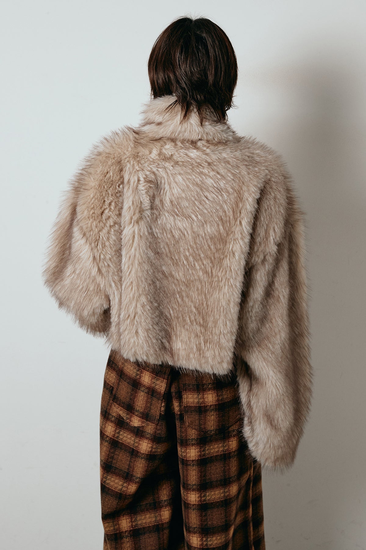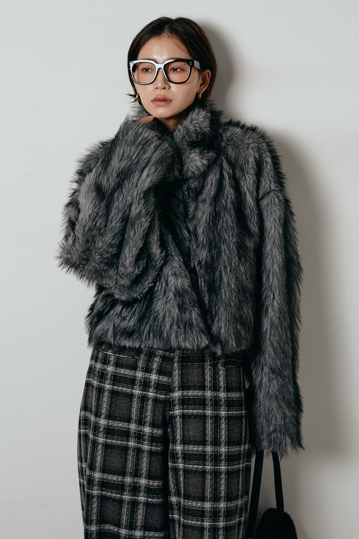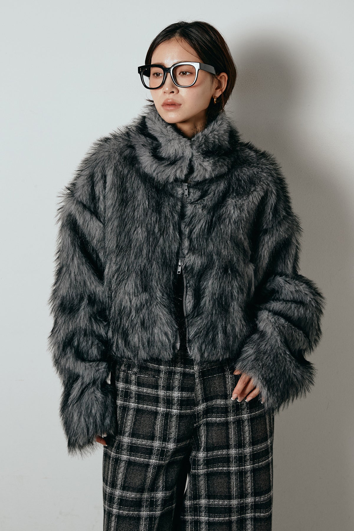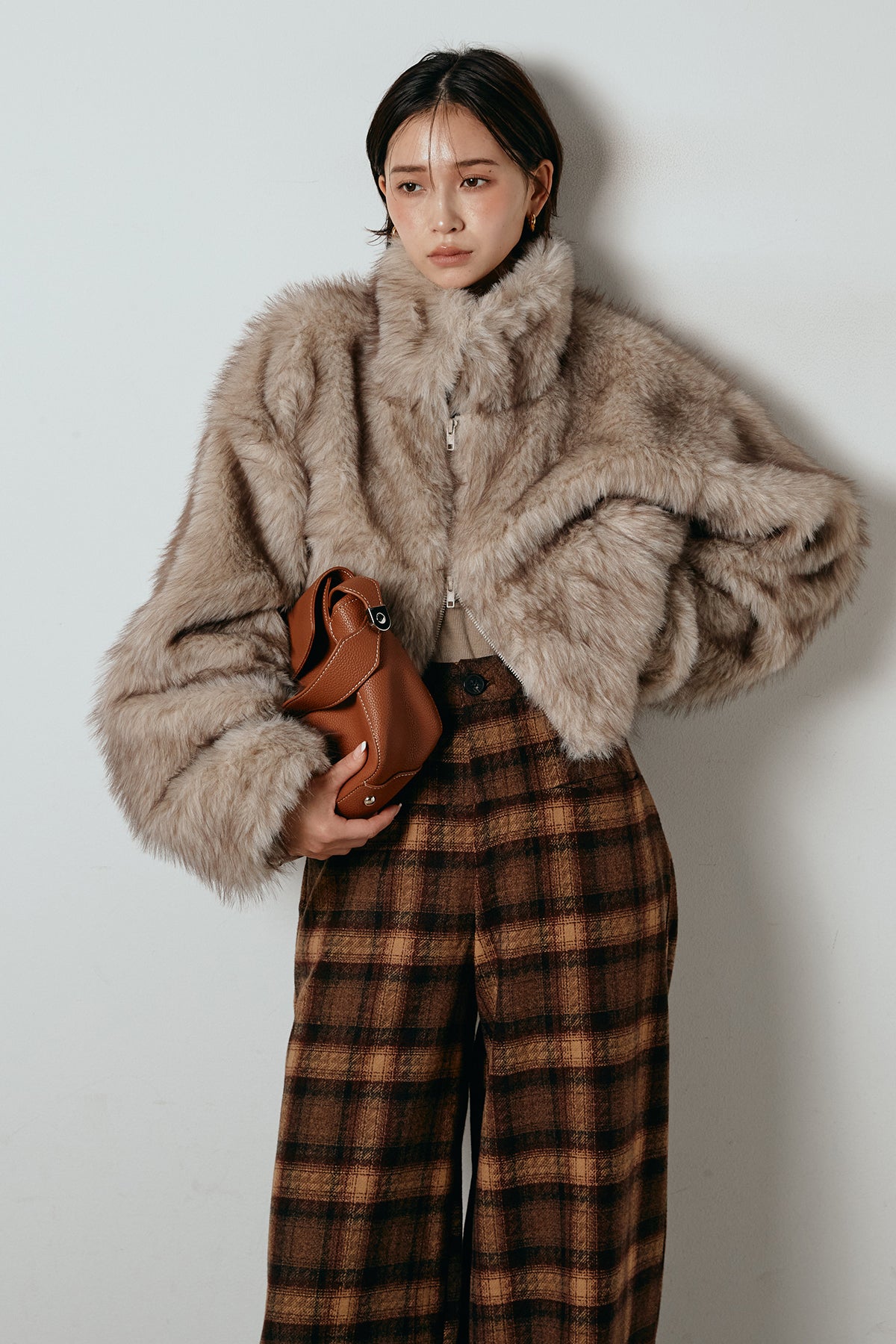 ふんわりとした毛足が魅力のエコファーショート丈ブルゾン。 軽やかな着心地ながら暖かく、ボリューム感のあるフォルムが華やかな印象を与えます。 コンパクトな丈感でバランスが取りやすく、ワイドパンツやロングスカートとも好相性。 シンプルなコーデにプラスするだけで、シーズンムードを引き立てる主役アウターです。