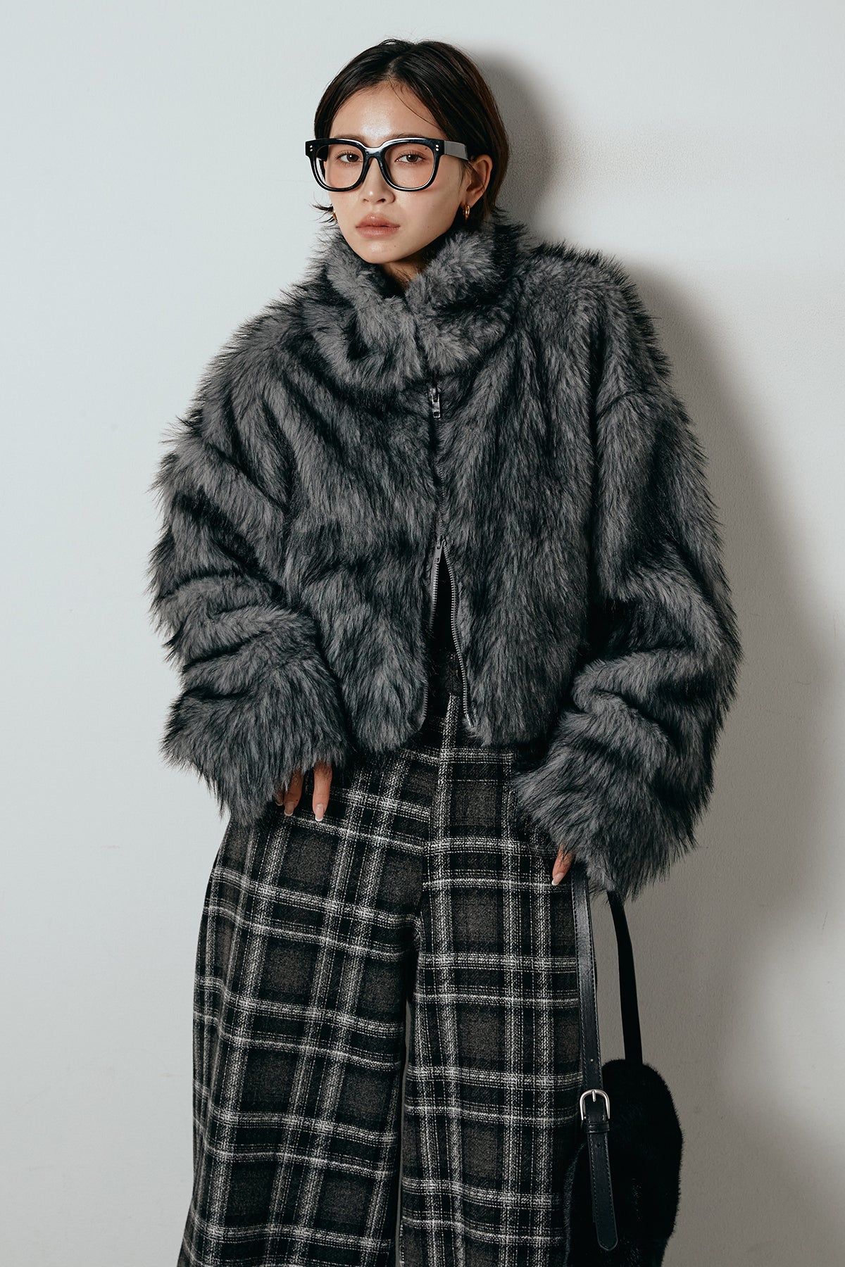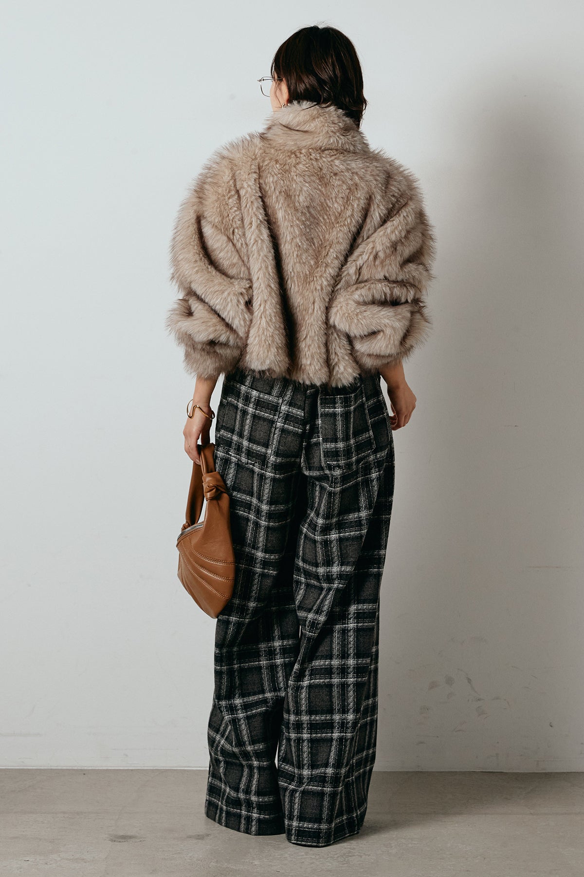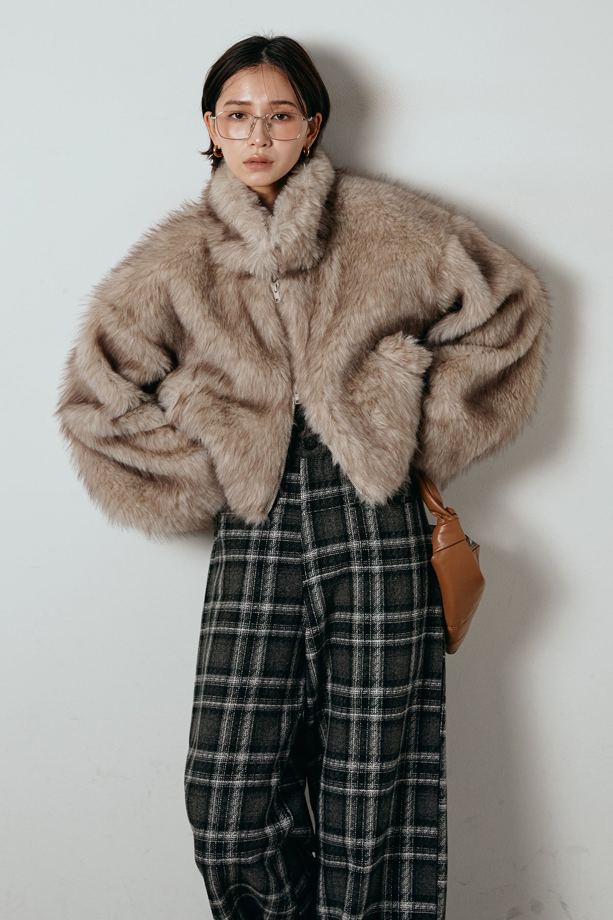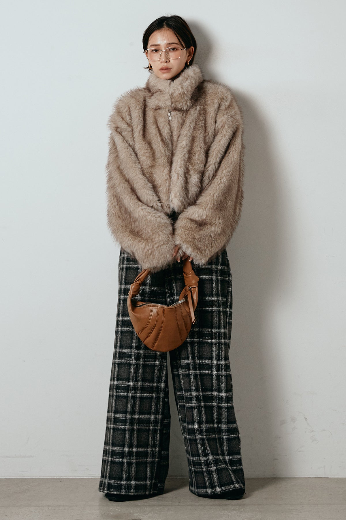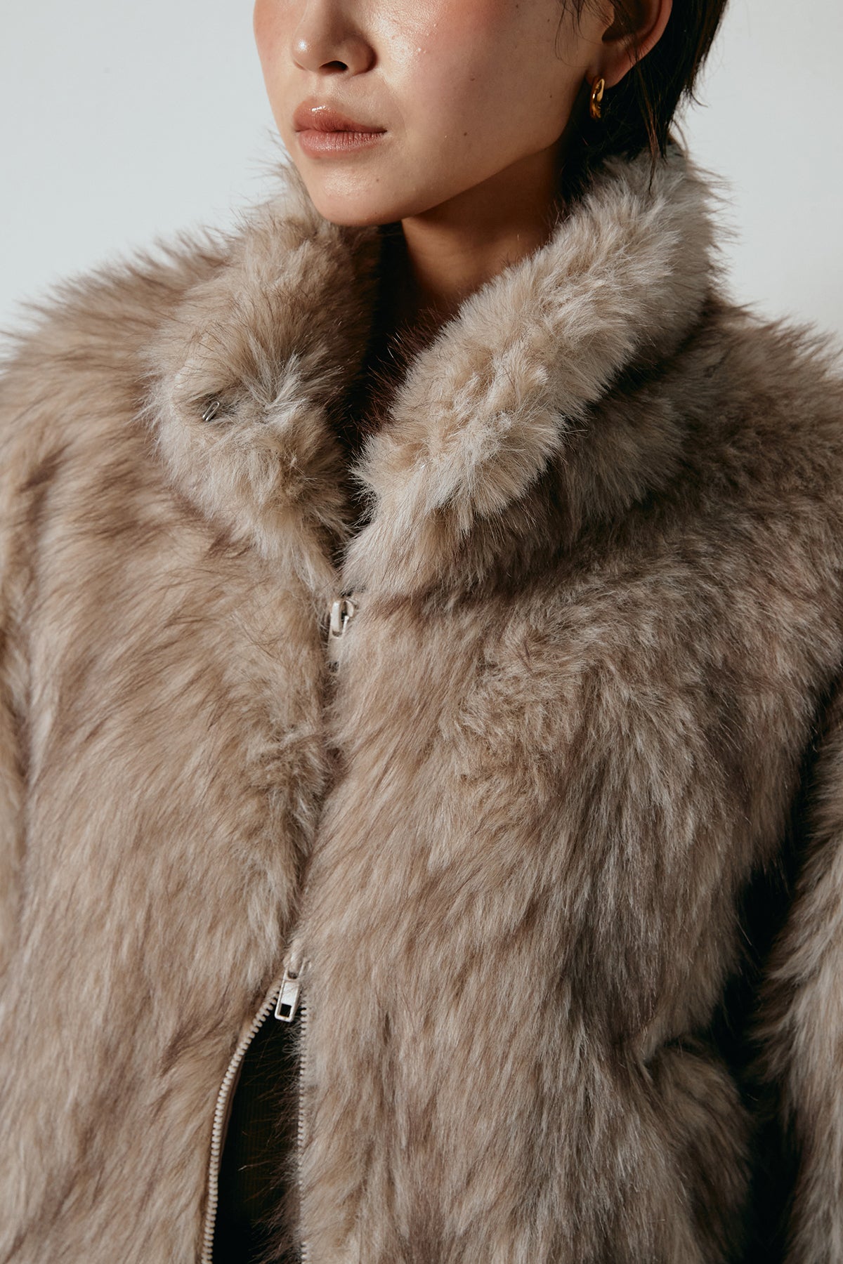 ふんわりとした毛足が魅力のエコファーショート丈ブルゾン。 軽やかな着心地ながら暖かく、ボリューム感のあるフォルムが華やかな印象を与えます。 コンパクトな丈感でバランスが取りやすく、ワイドパンツやロングスカートとも好相性。 シンプルなコーデにプラスするだけで、シーズンムードを引き立てる主役アウターです。