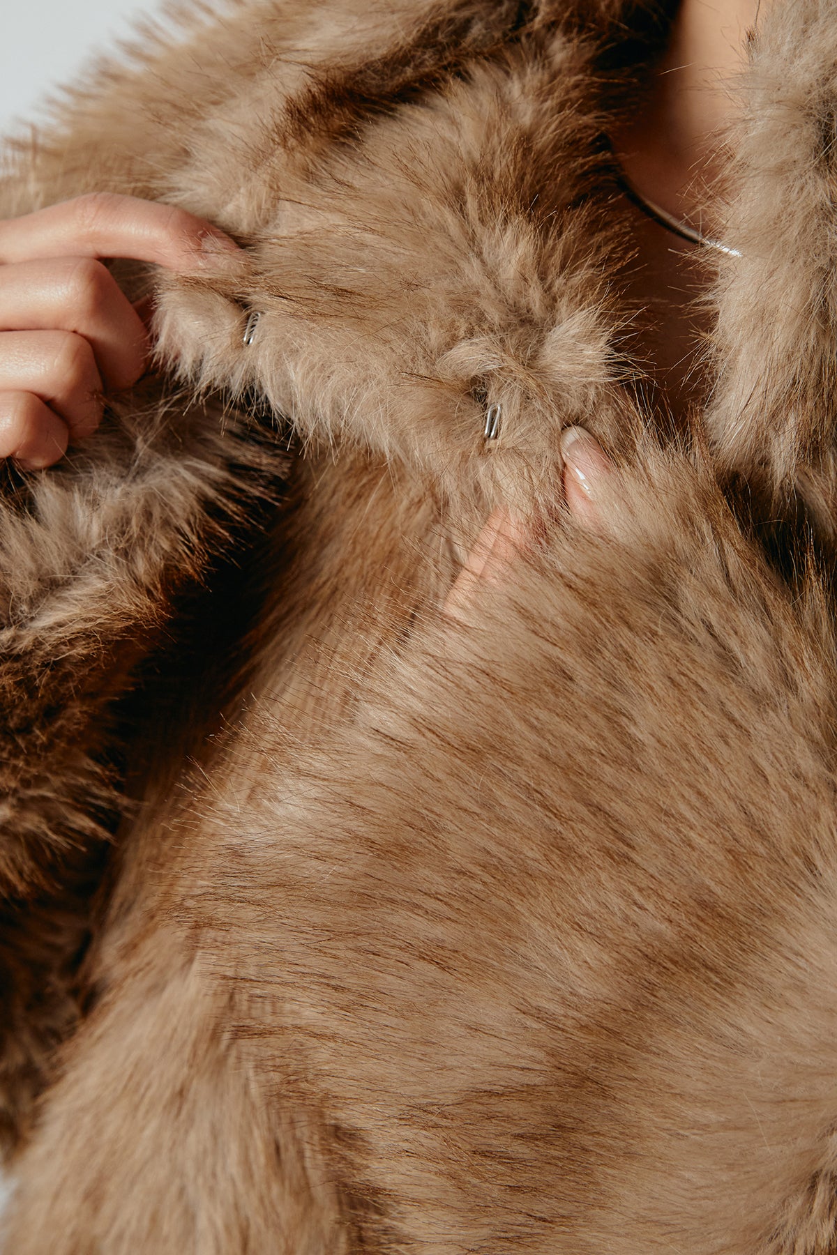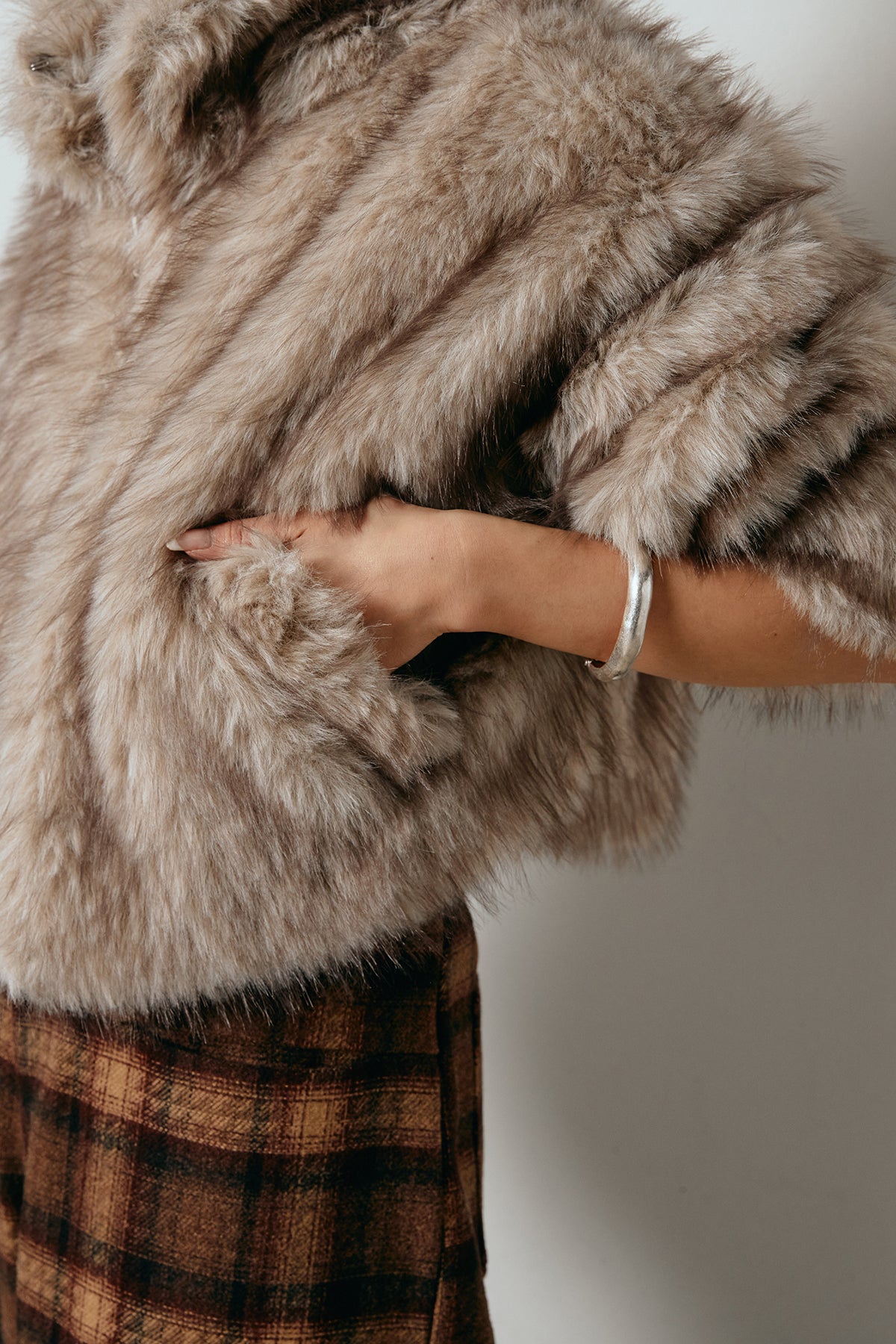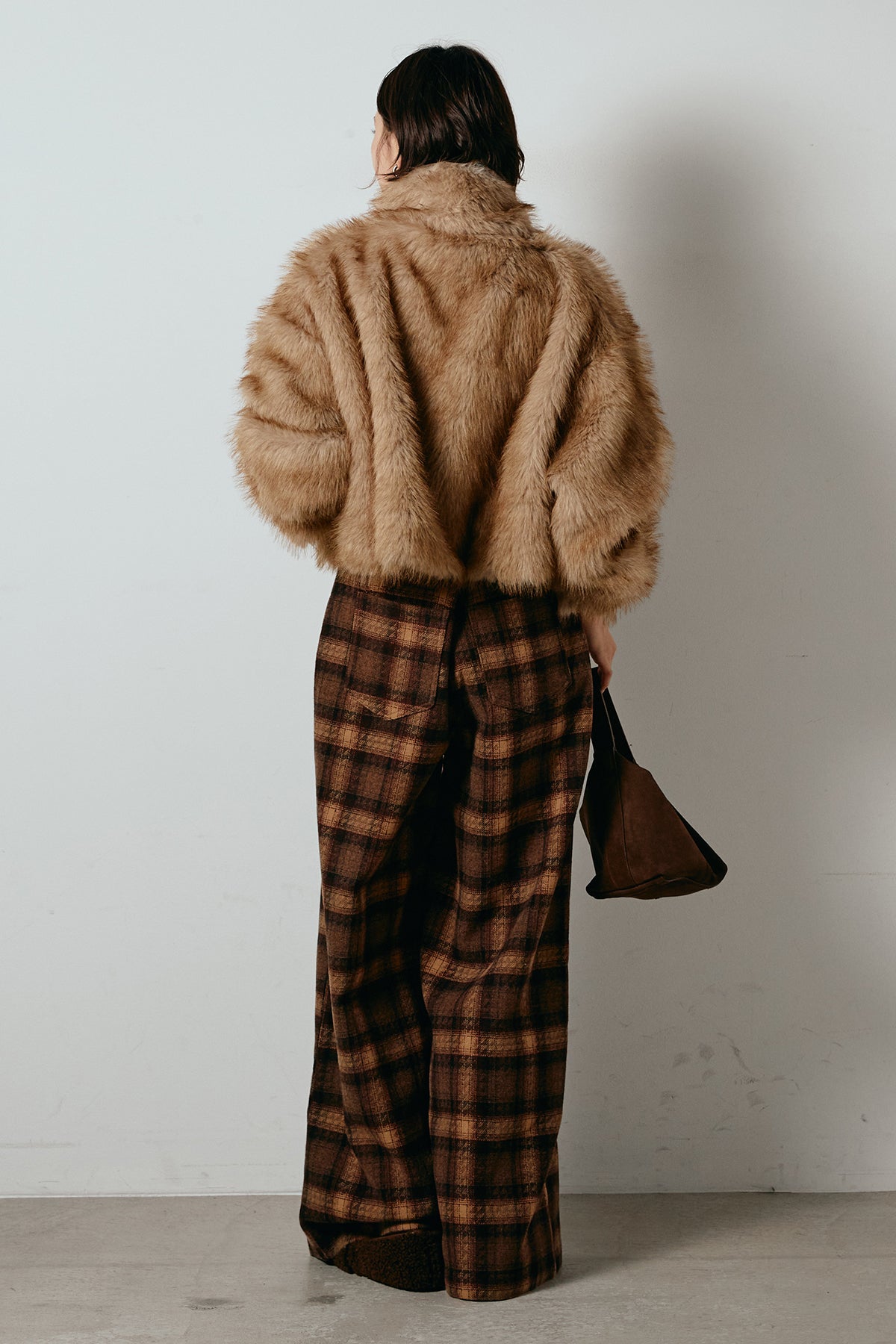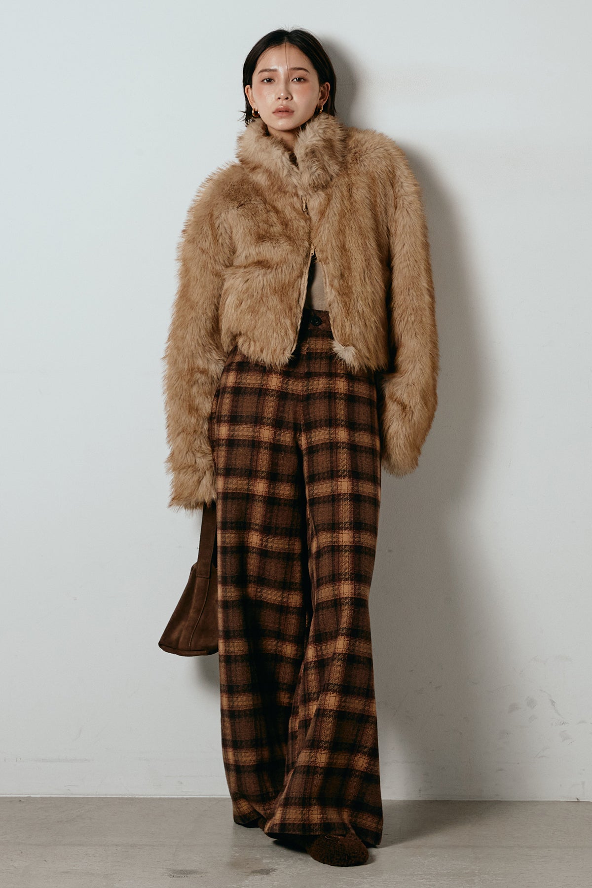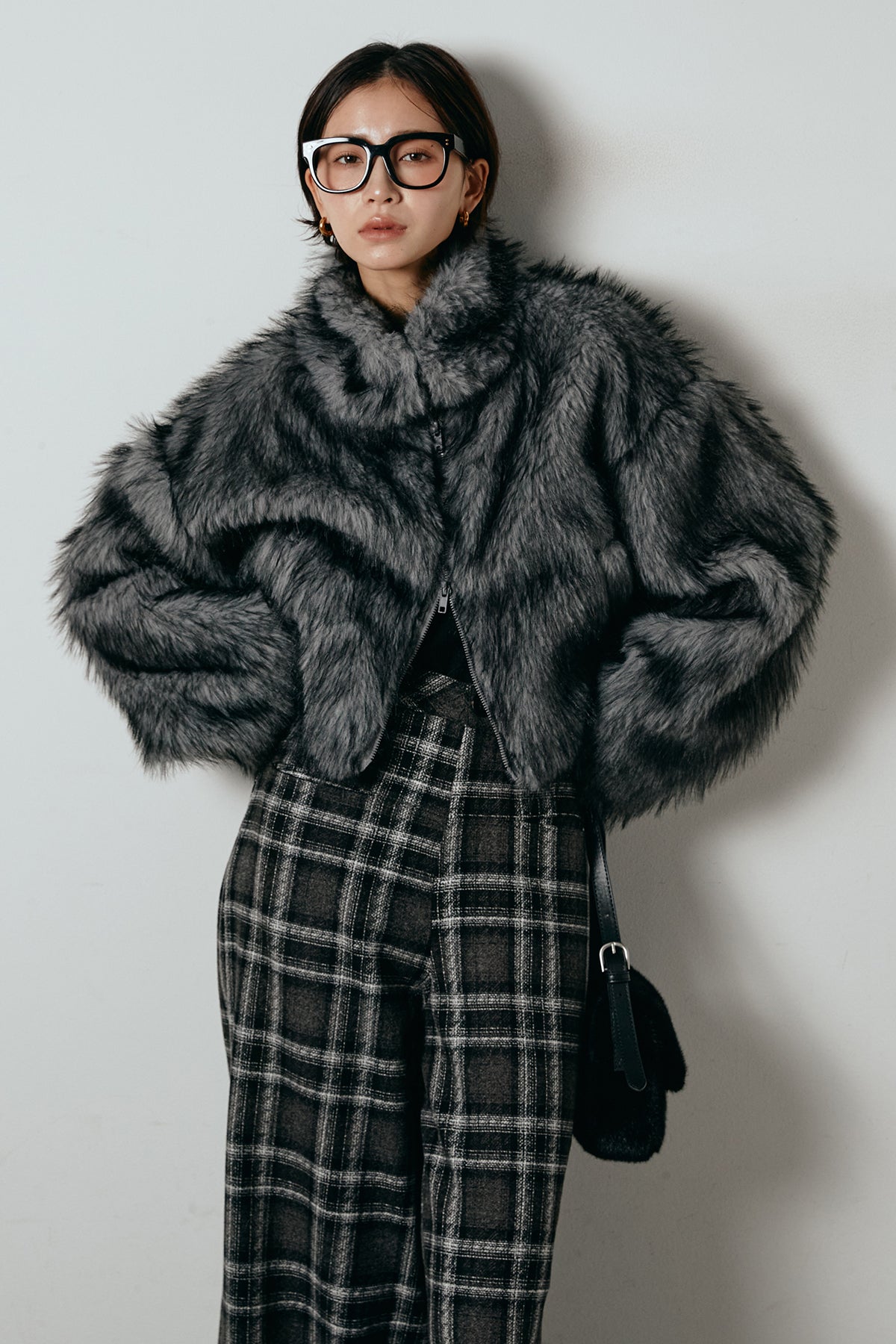 ふんわりとした毛足が魅力のエコファーショート丈ブルゾン。 軽やかな着心地ながら暖かく、ボリューム感のあるフォルムが華やかな印象を与えます。 コンパクトな丈感でバランスが取りやすく、ワイドパンツやロングスカートとも好相性。 シンプルなコーデにプラスするだけで、シーズンムードを引き立てる主役アウターです。