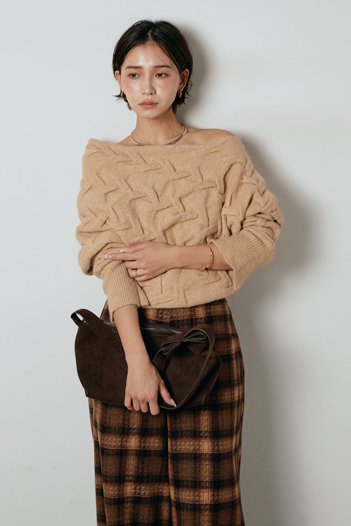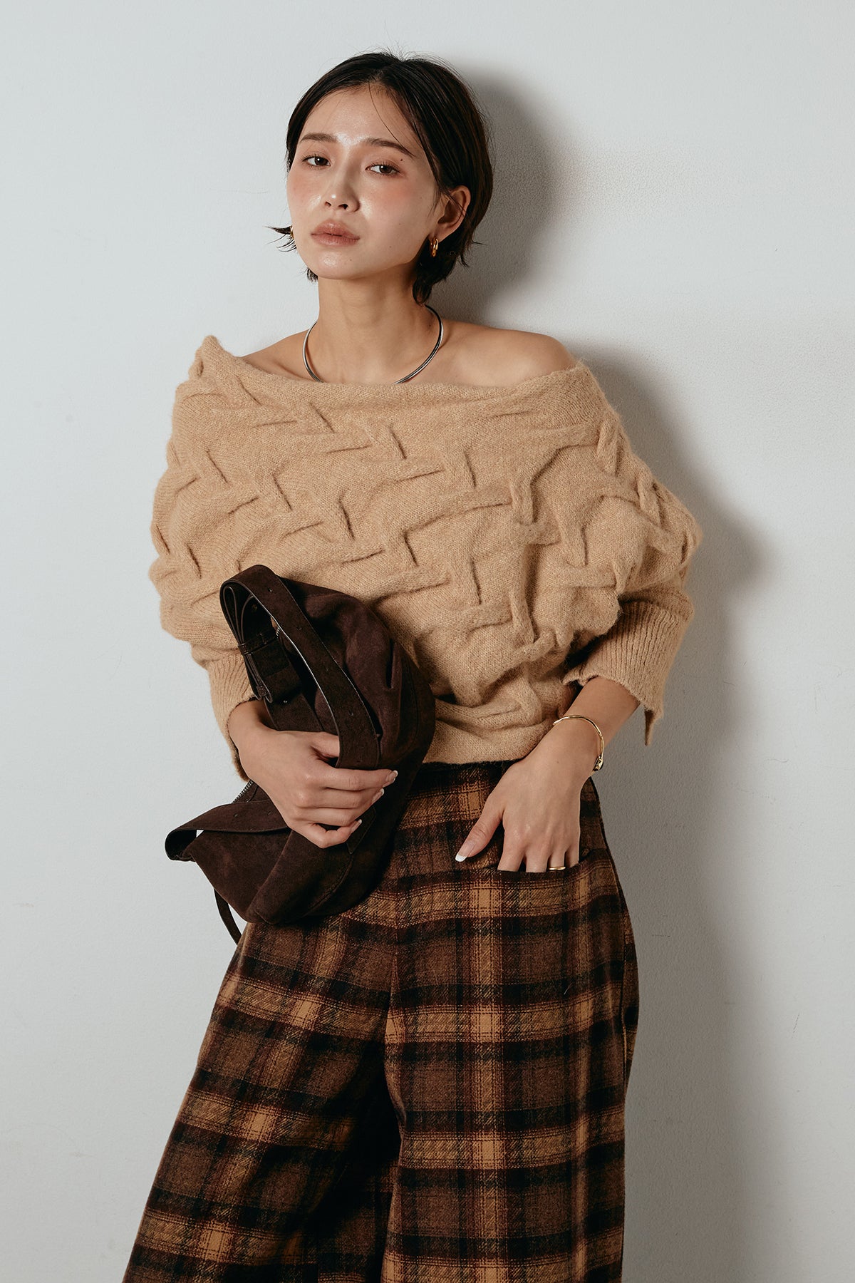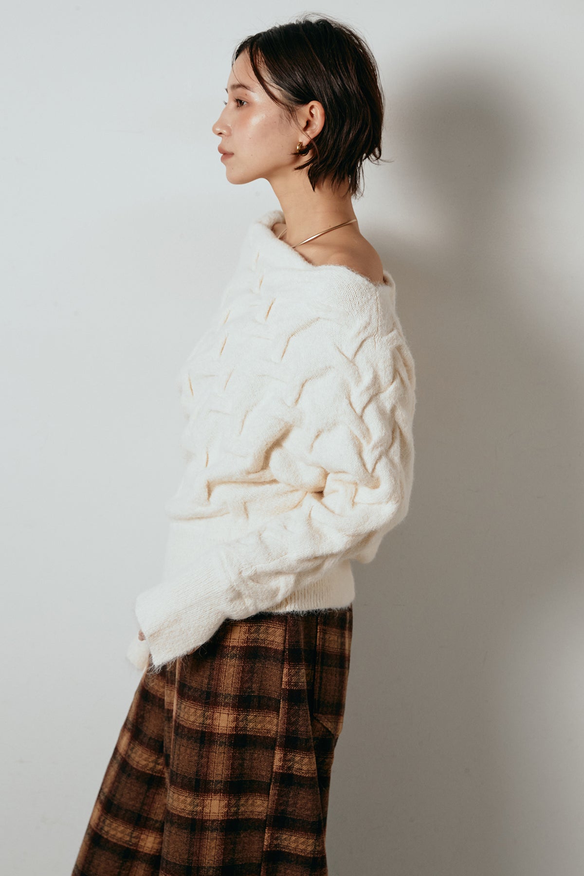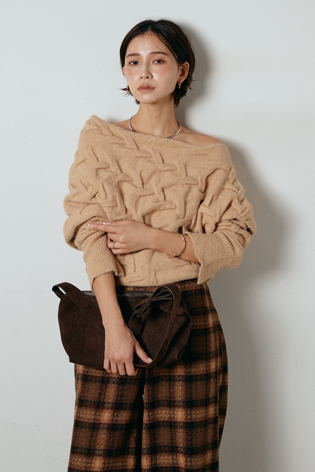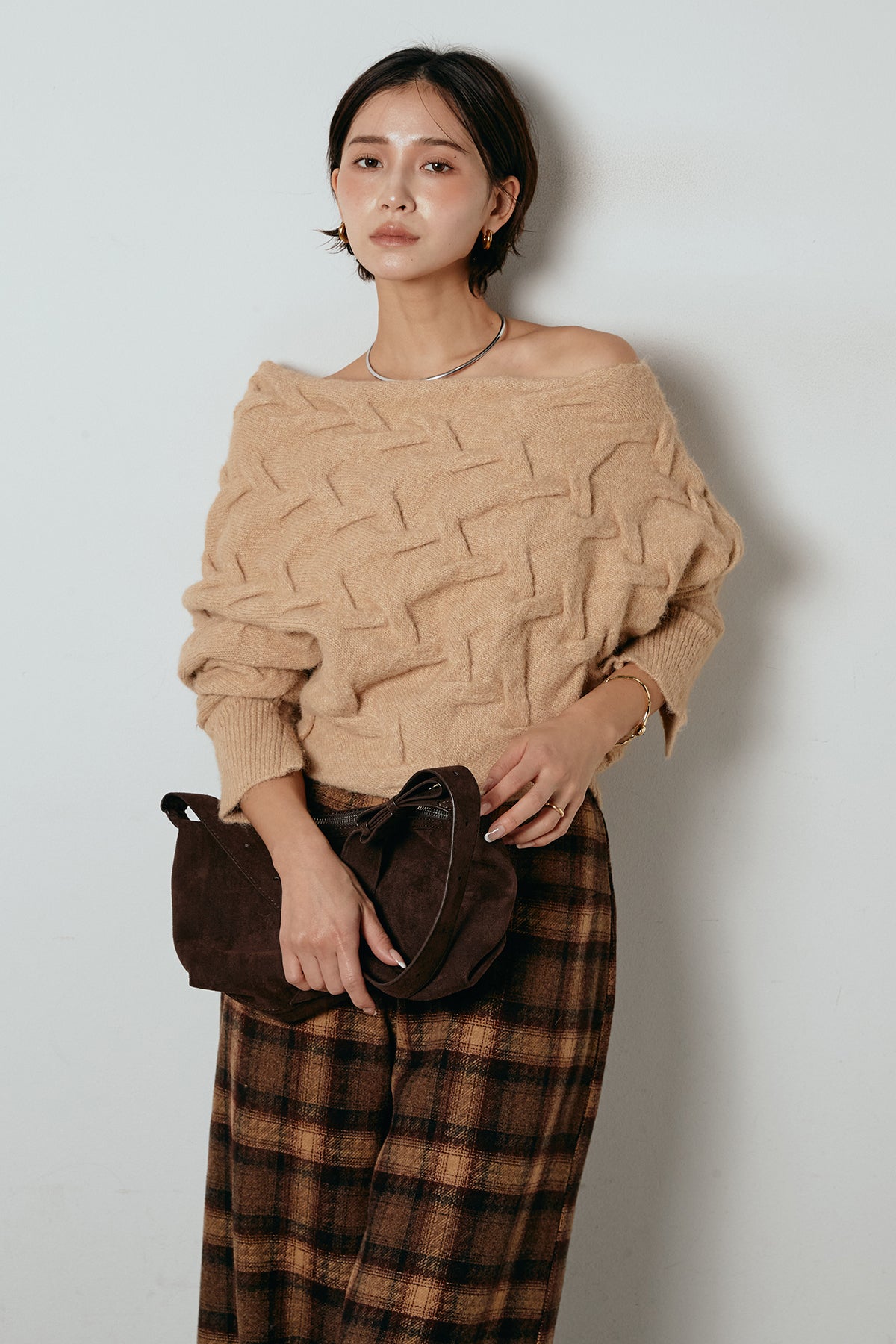 ふっくらとした立体的な編地が印象的なニットトップス。