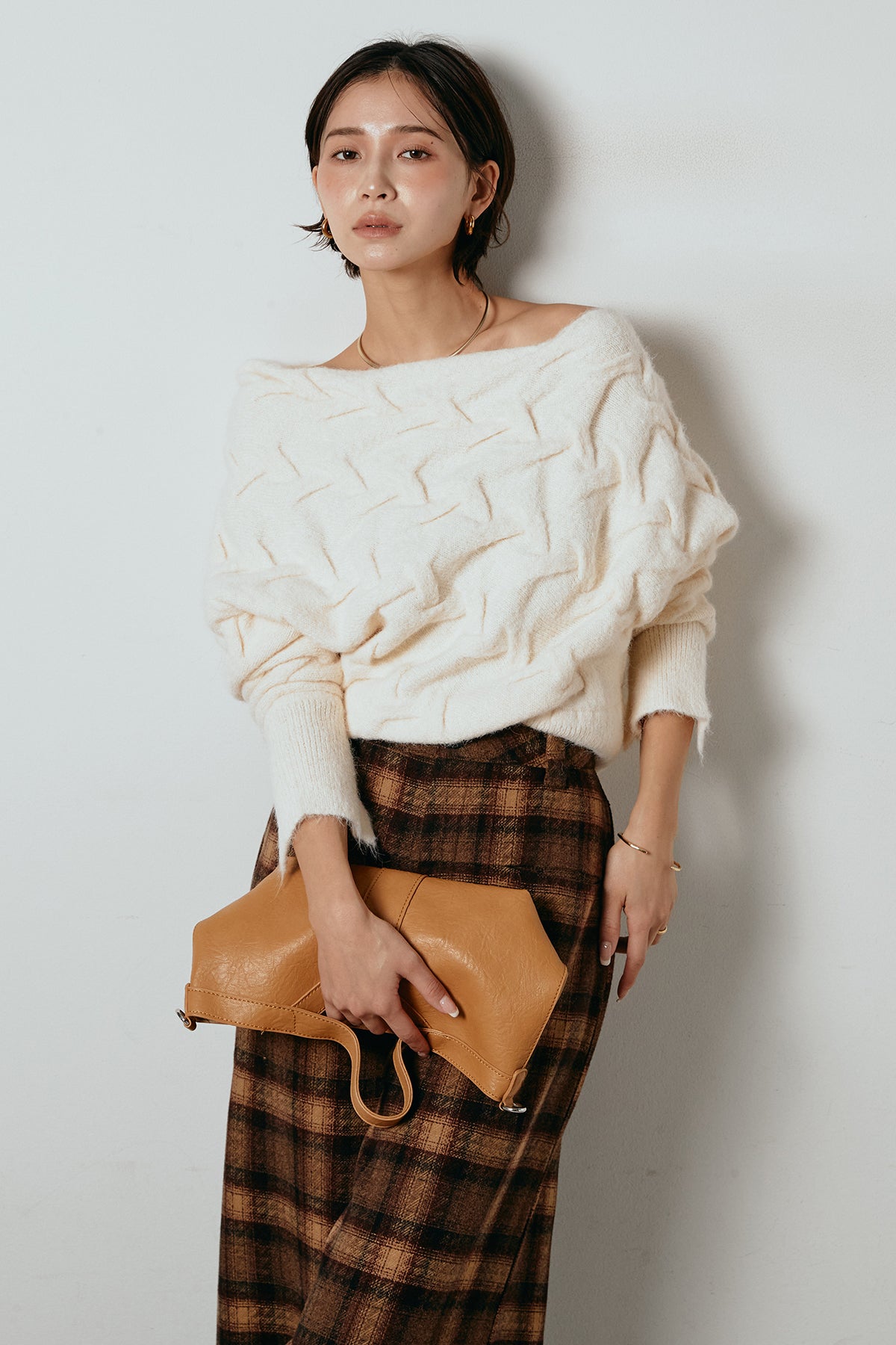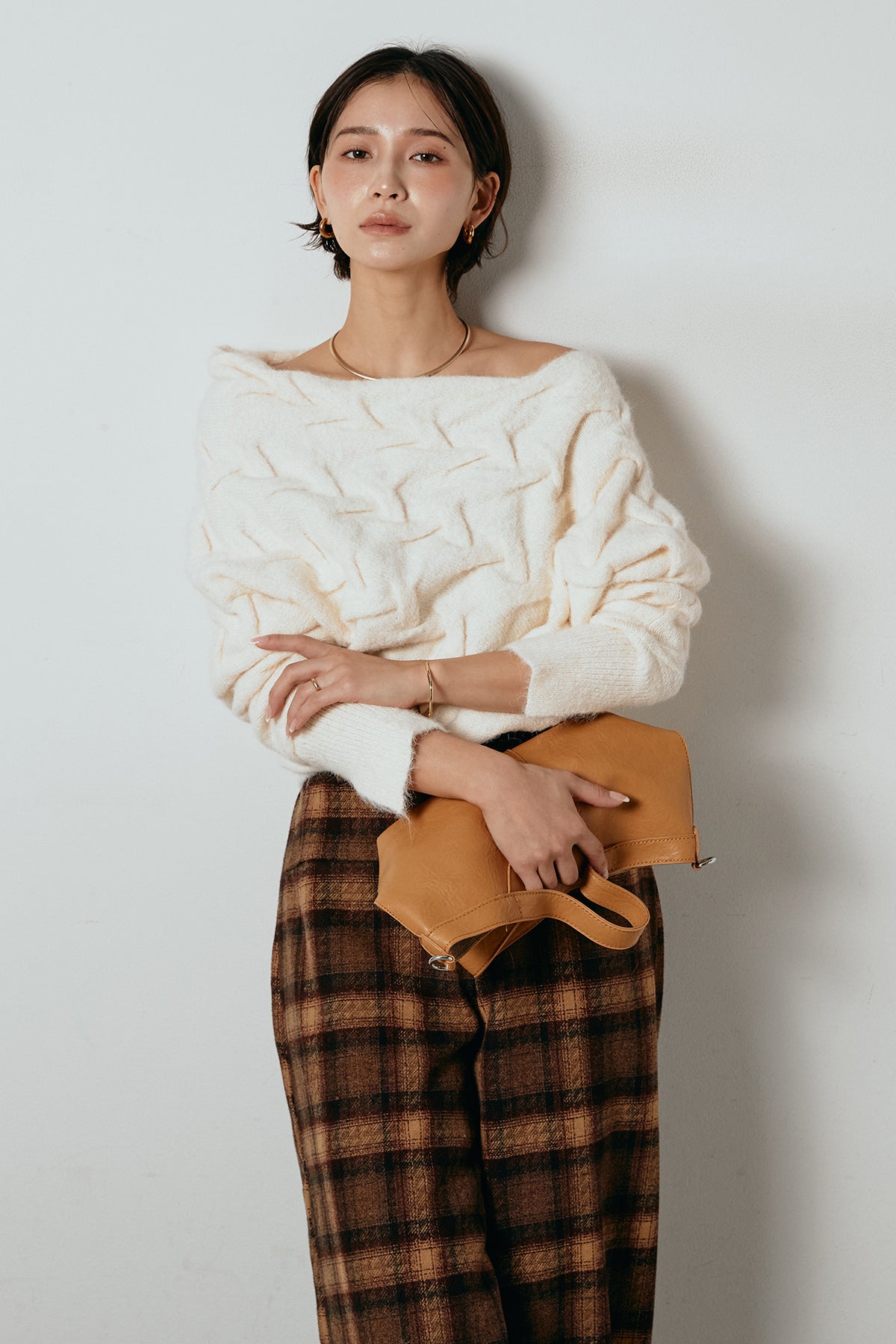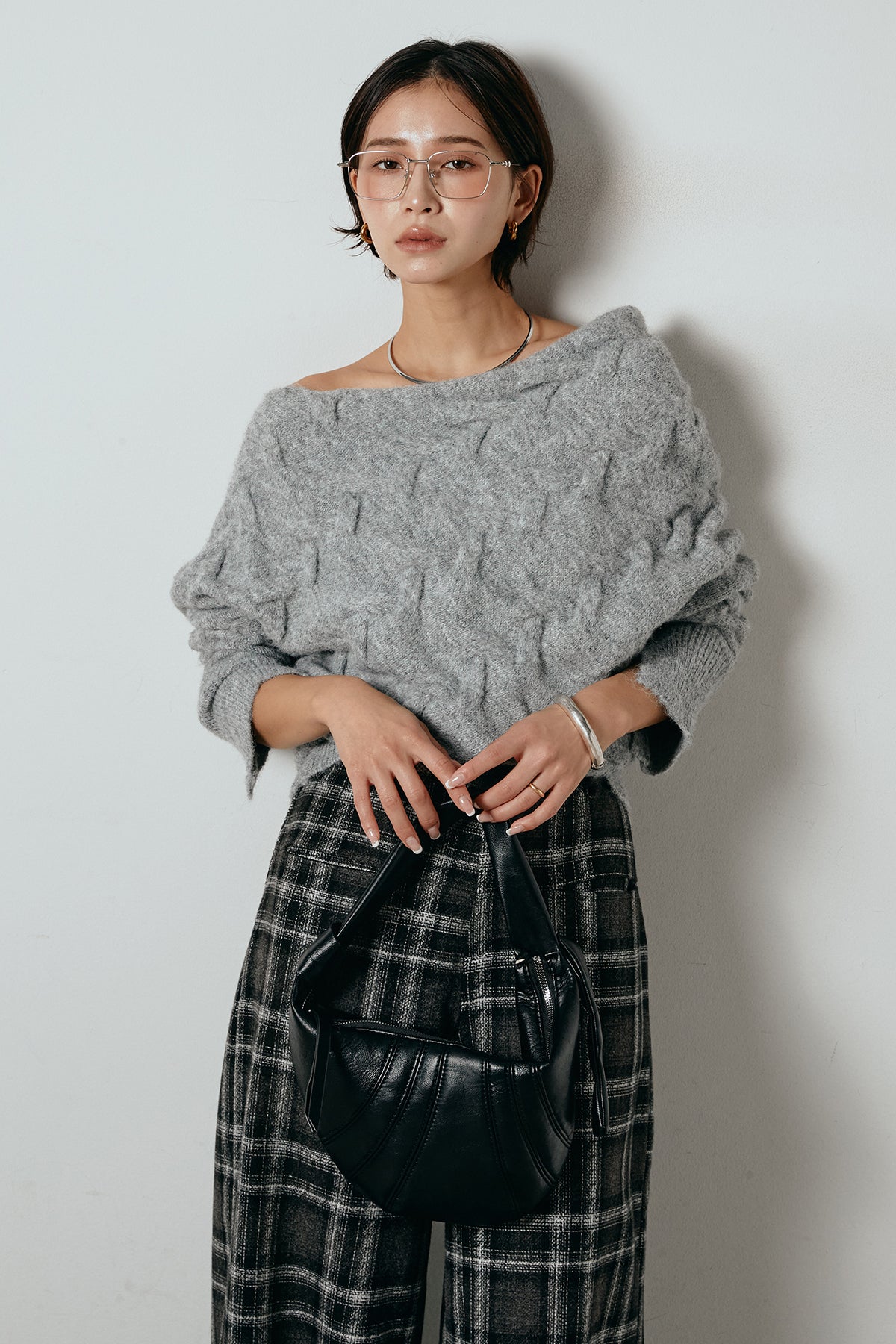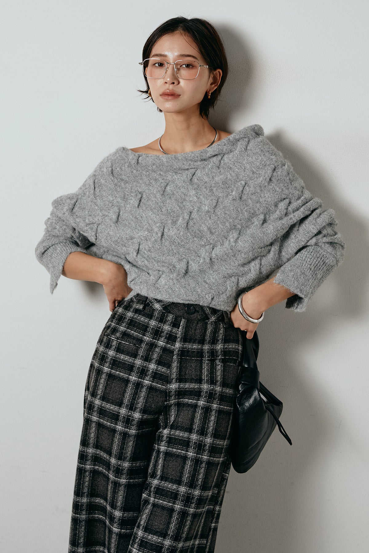 ふっくらとした立体的な編地が印象的なニットトップス。