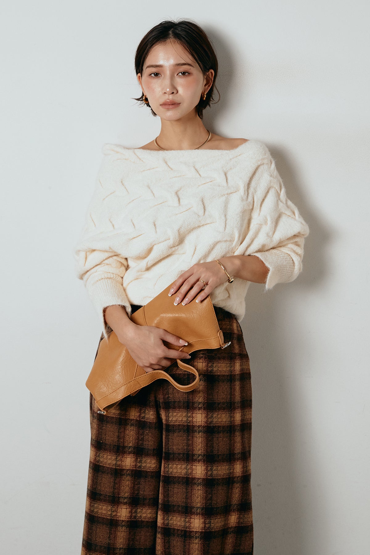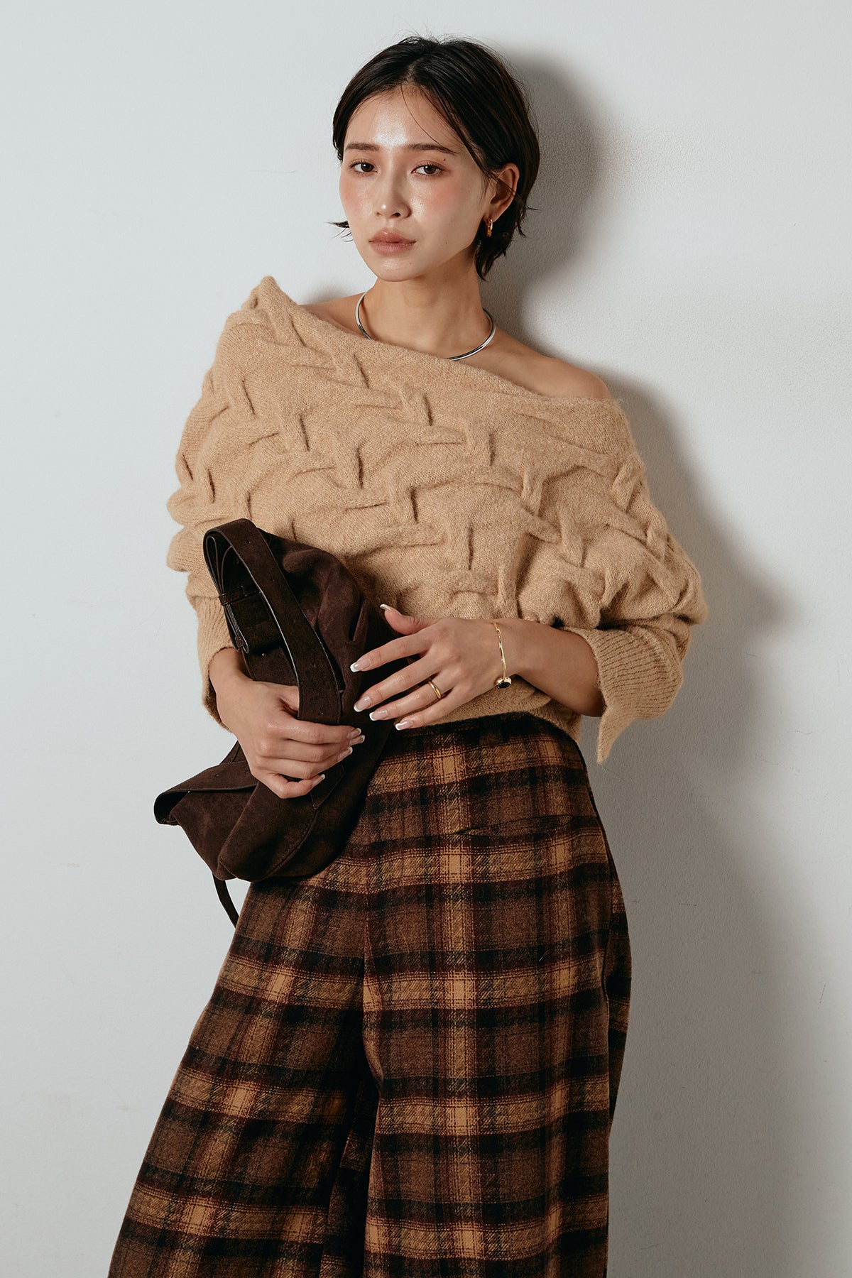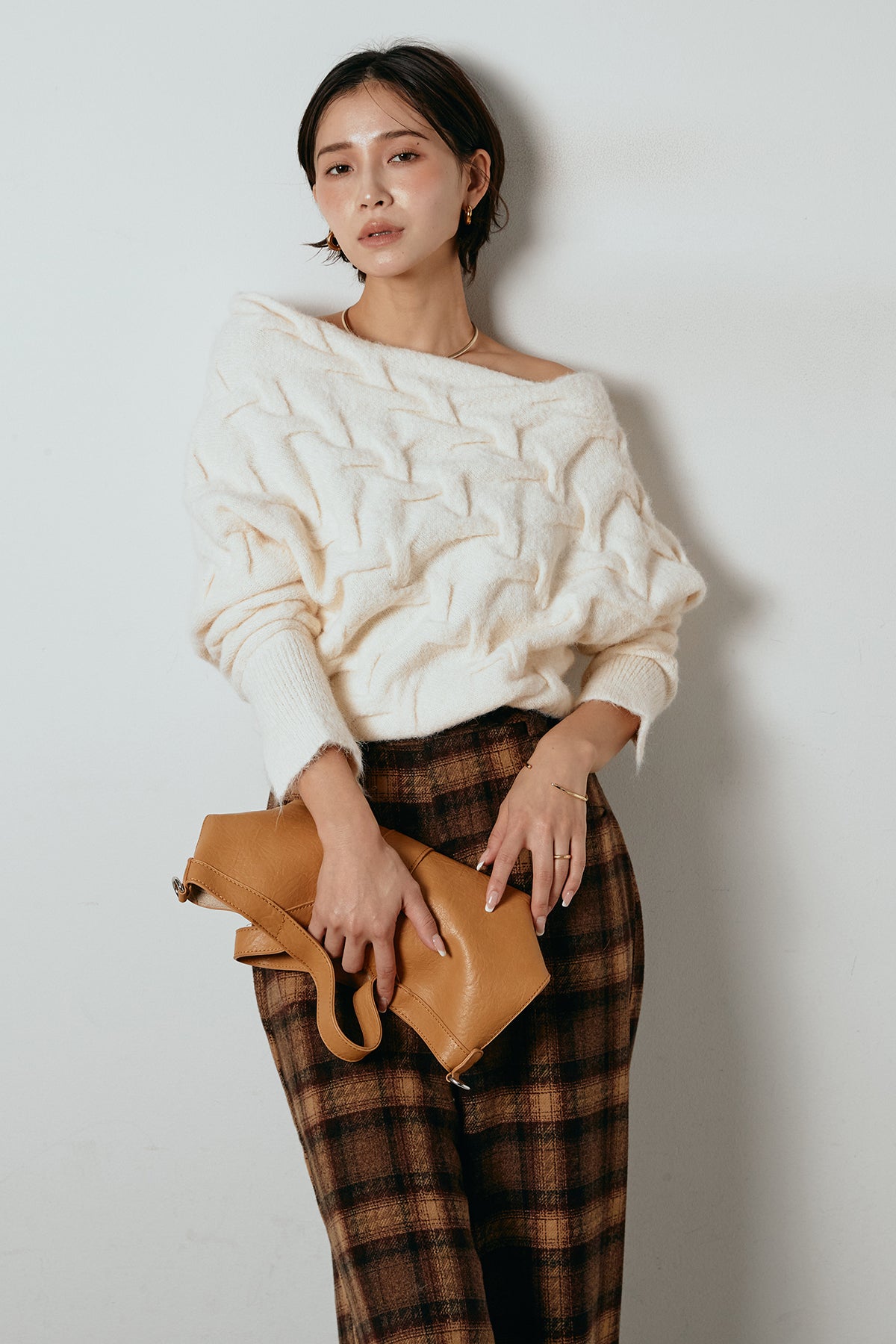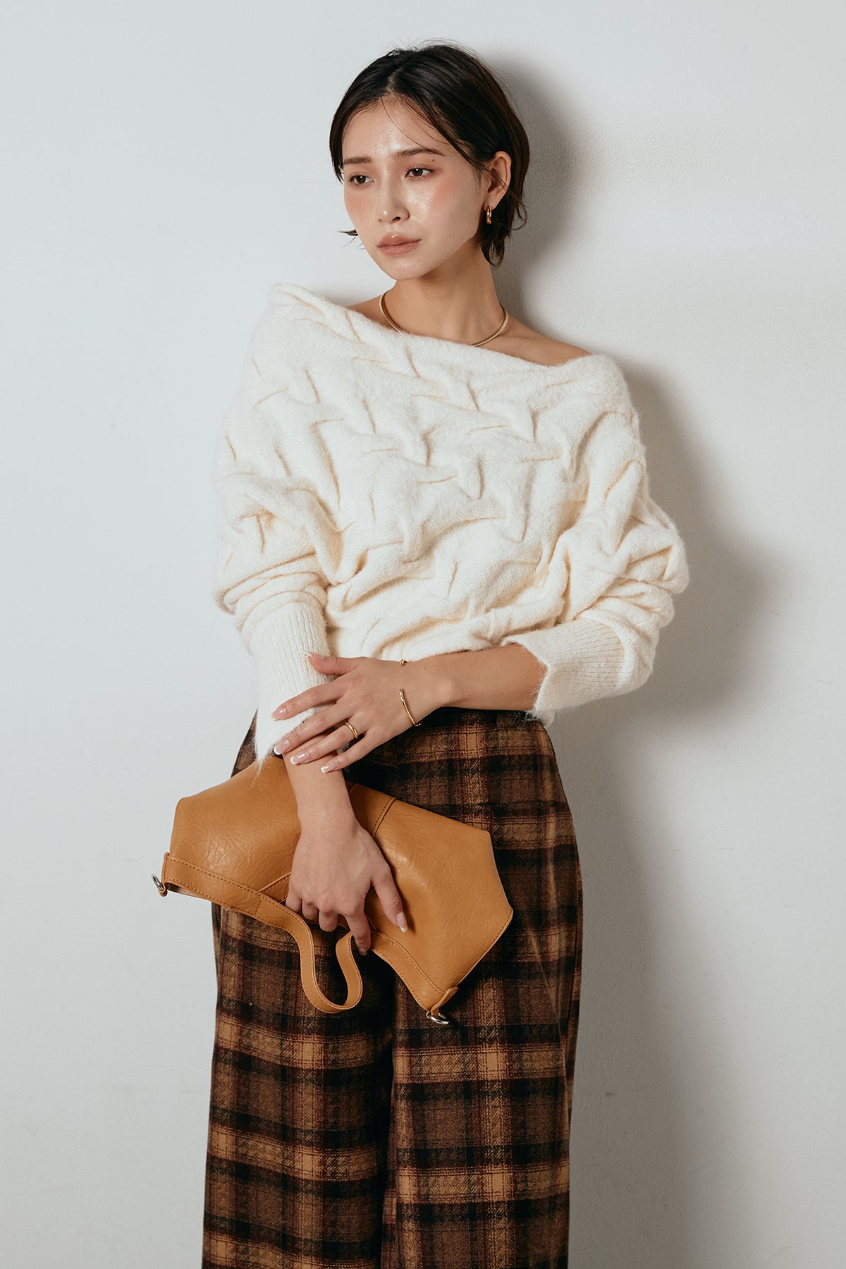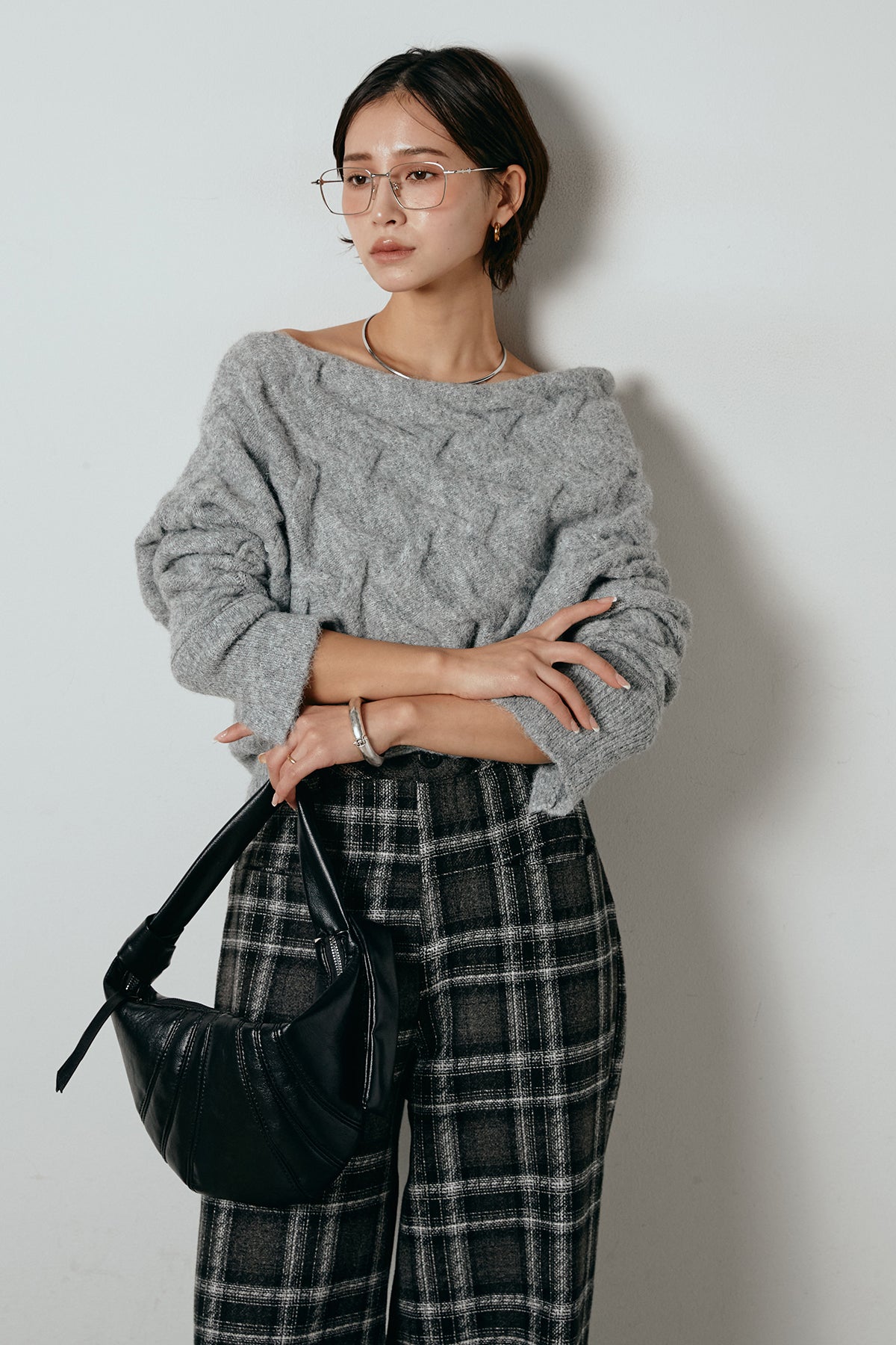 ふっくらとした立体的な編地が印象的なニットトップス。