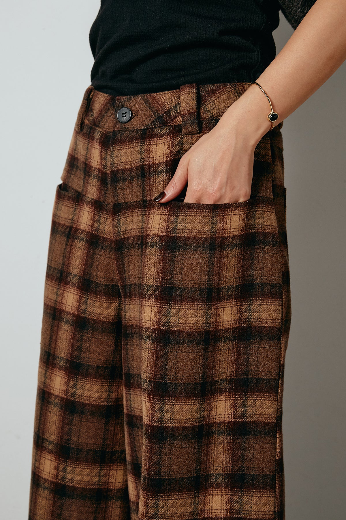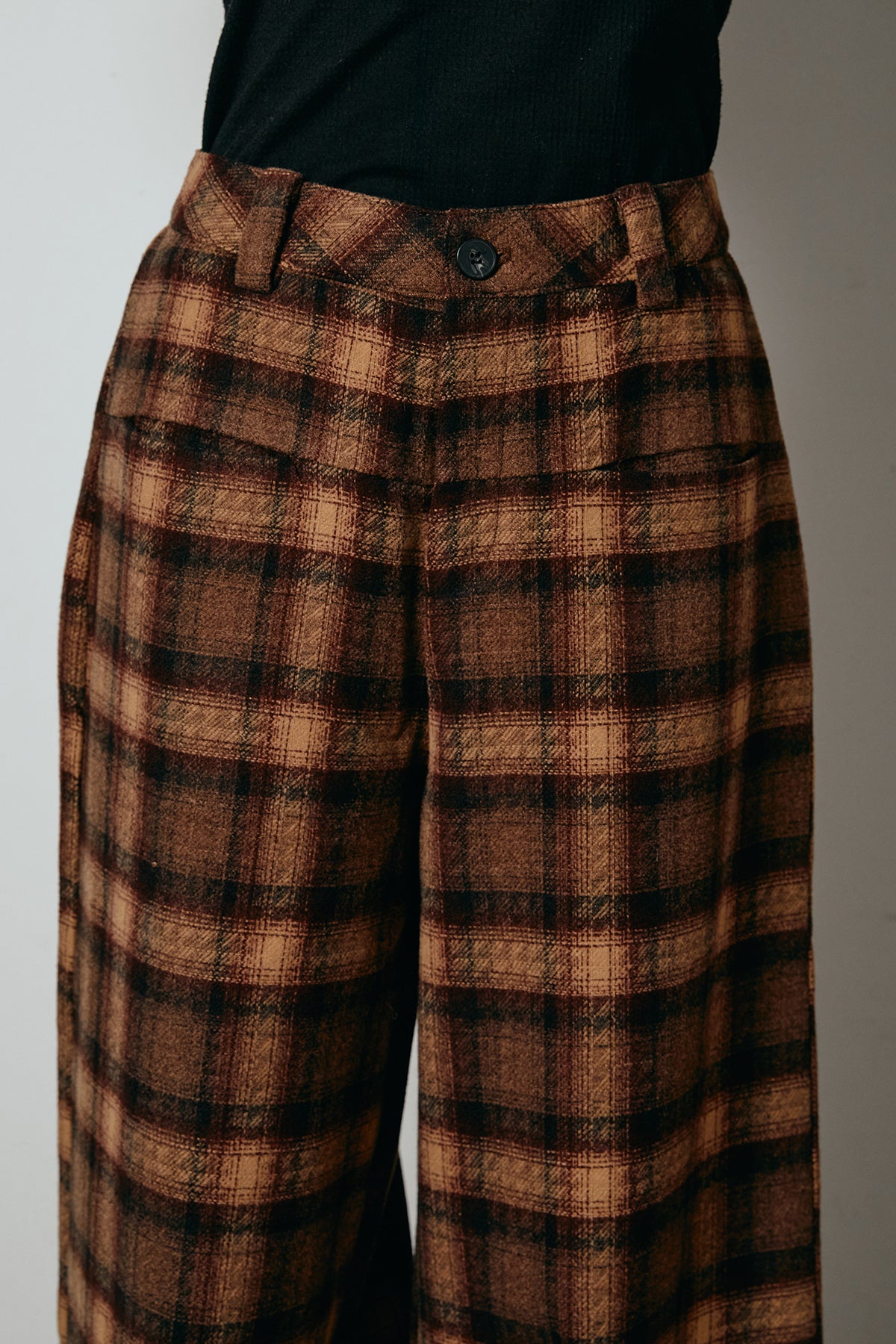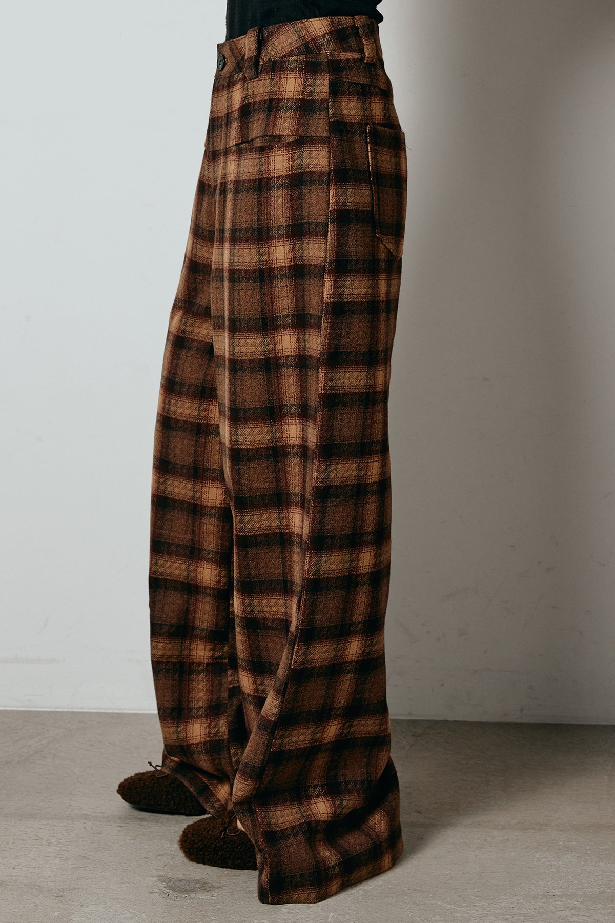 着こなしにクラシックな遊び心を添えるタータンチェックのワイドパンツ。