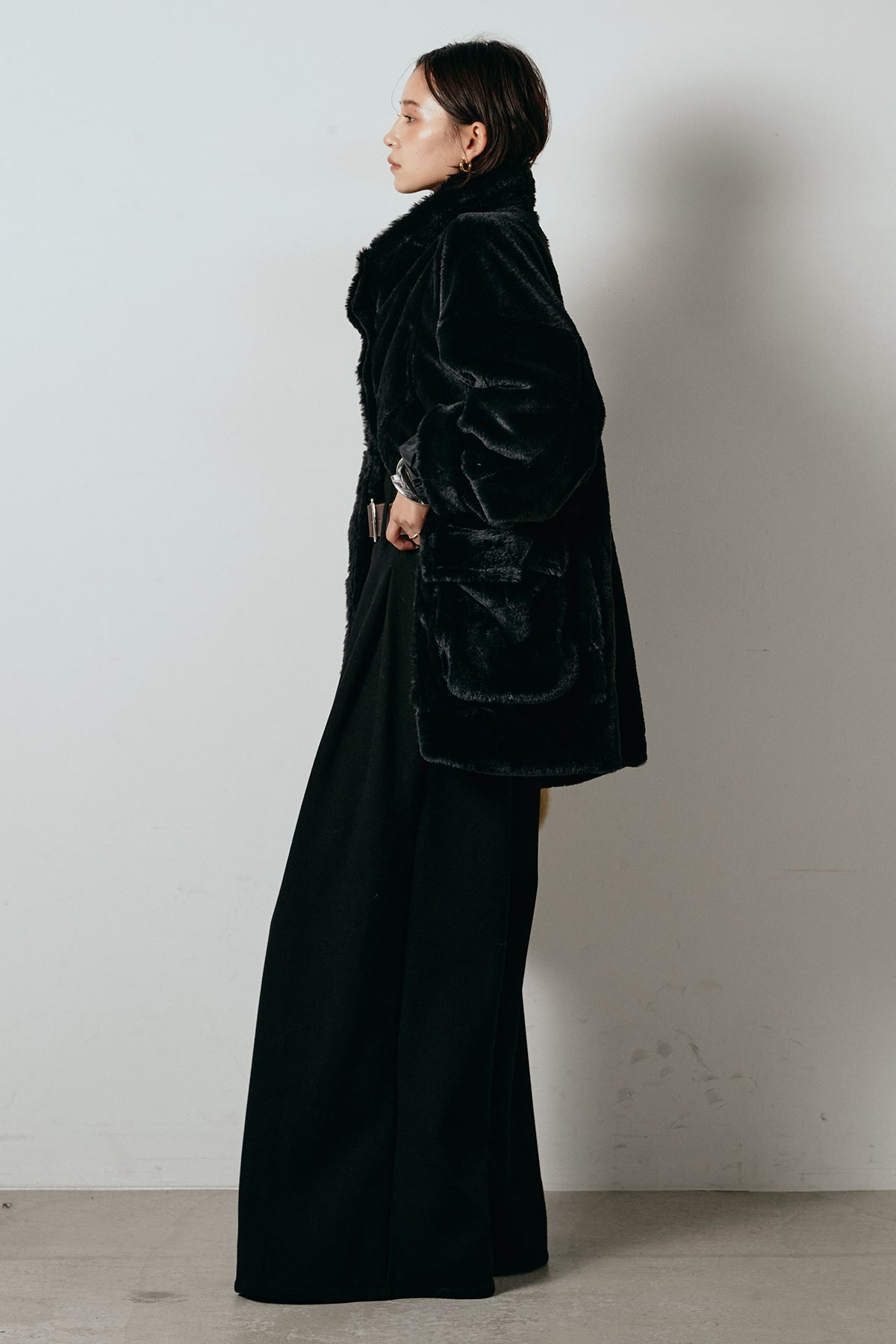 いつものスタイリングに羽織るだけで、洗練された冬のムードが完成する一着です。