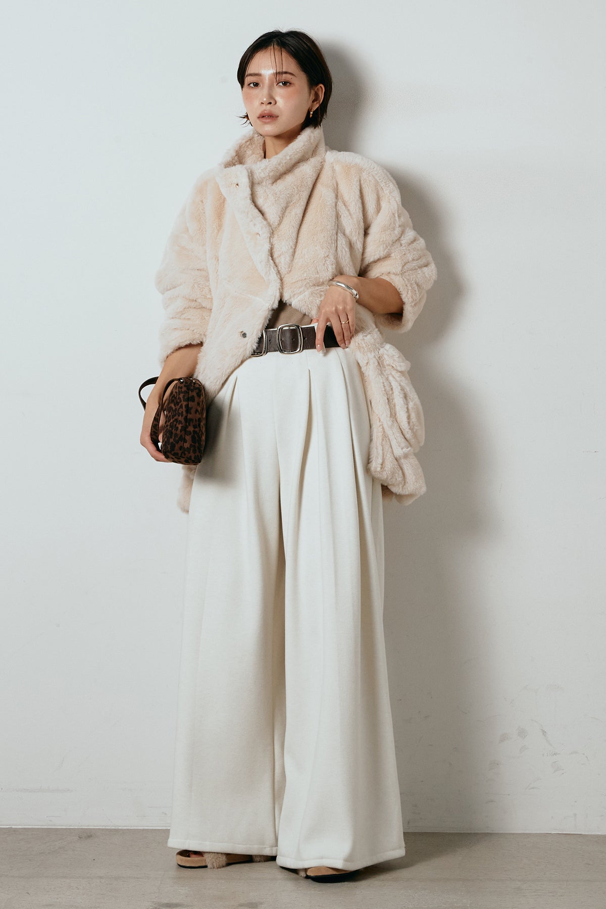 フェイクレザー太ベルト付きタックワイドパンツの他のセットページはこちら