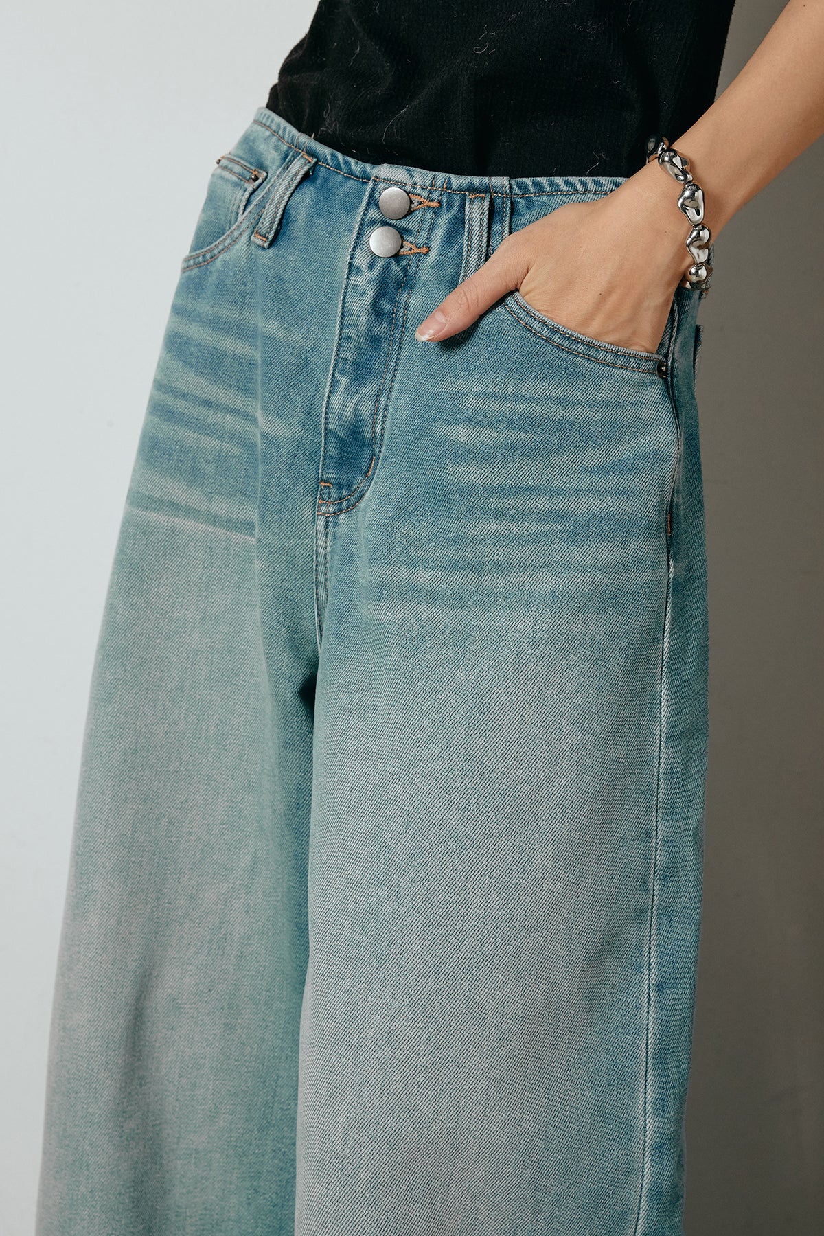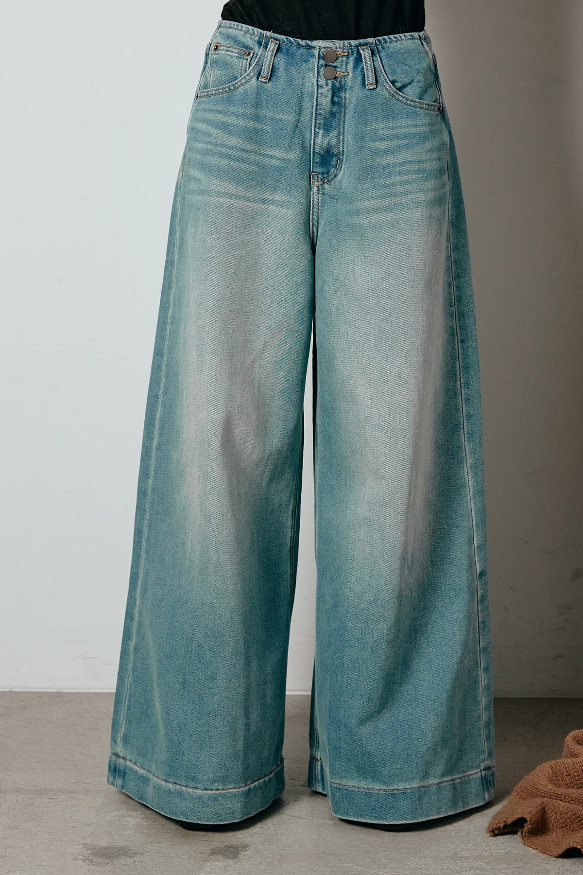 ◆ ウエストダブルボタンワイドデニムパンツ