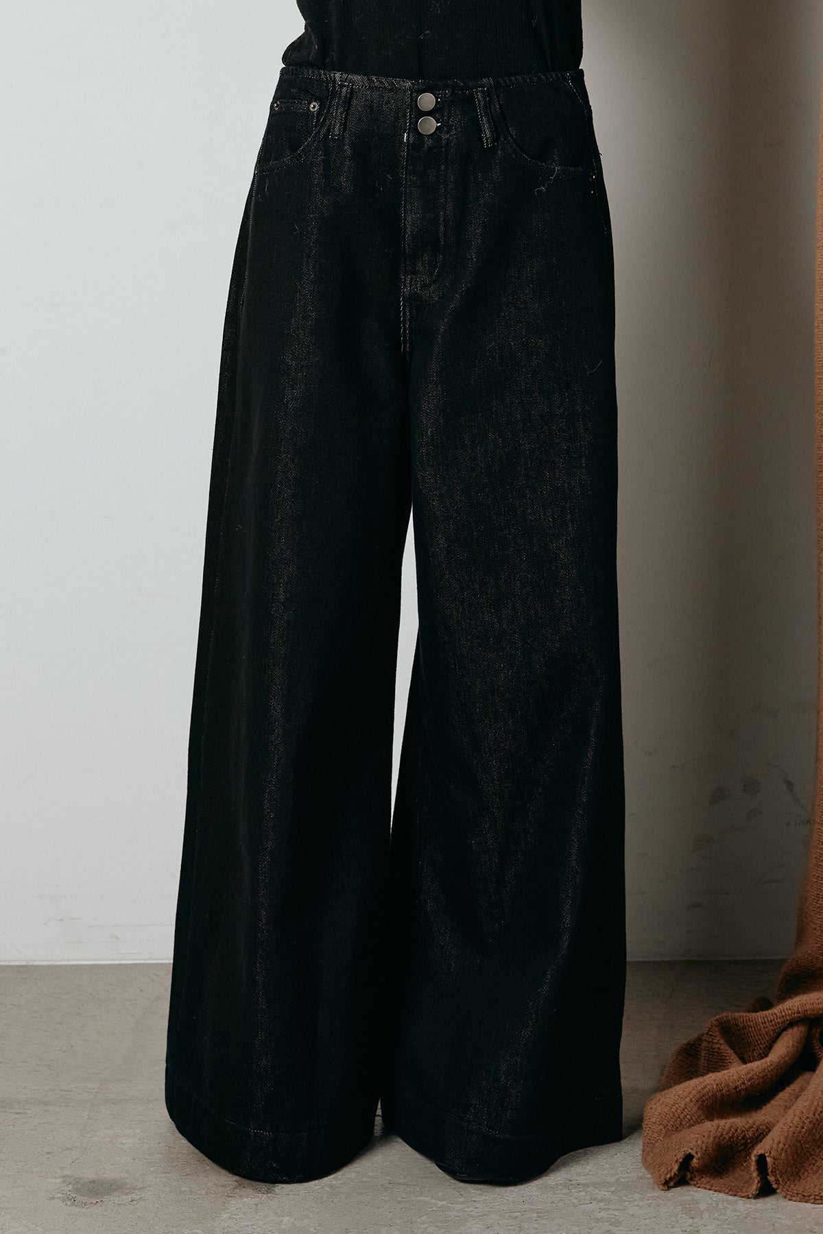 ウエストダブルボタンワイドデニムパンツ