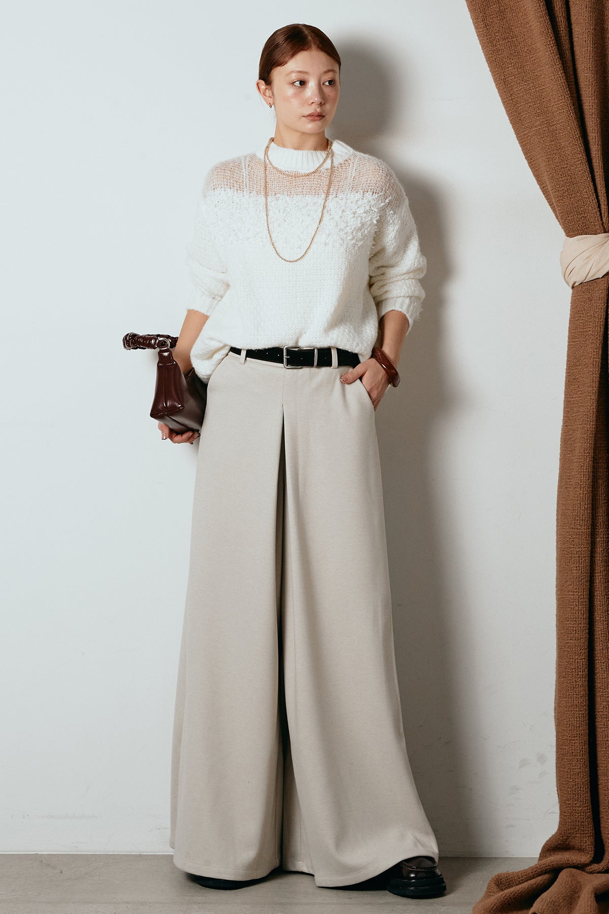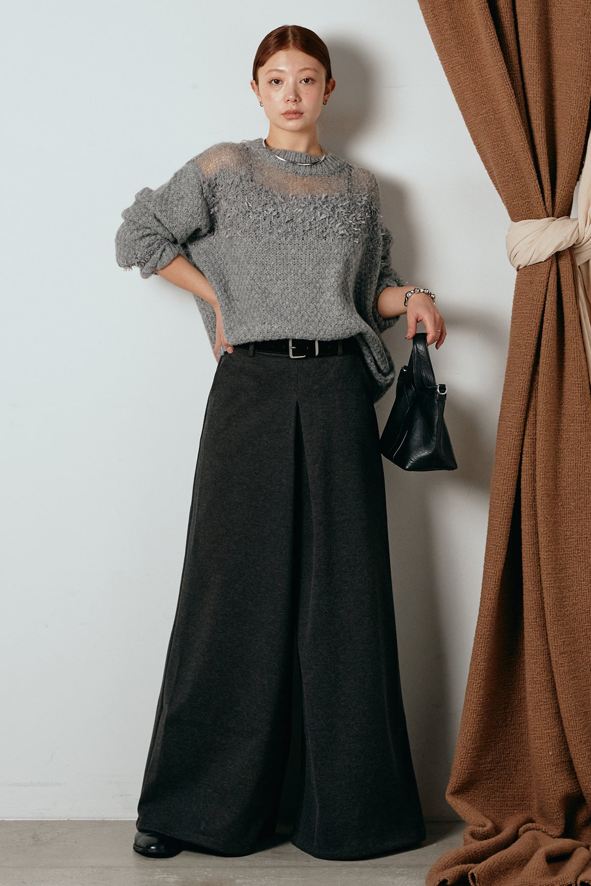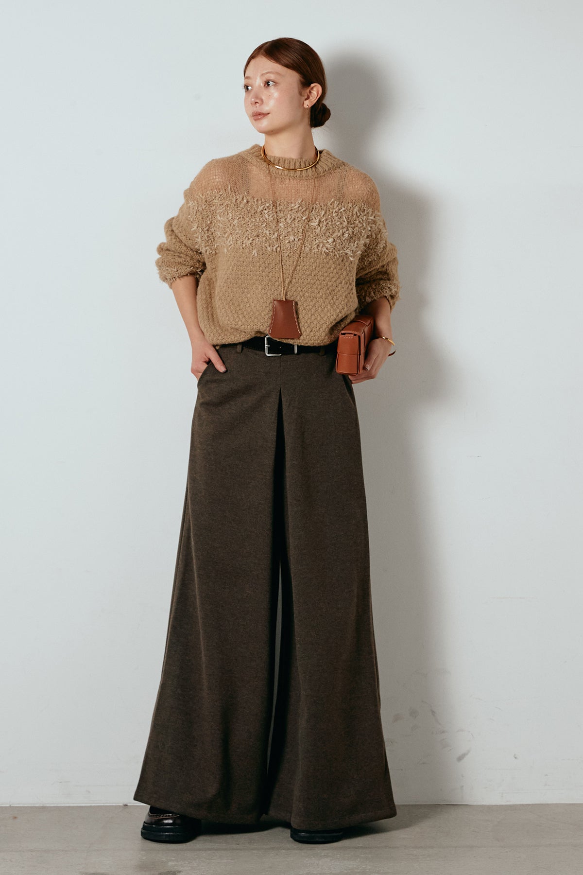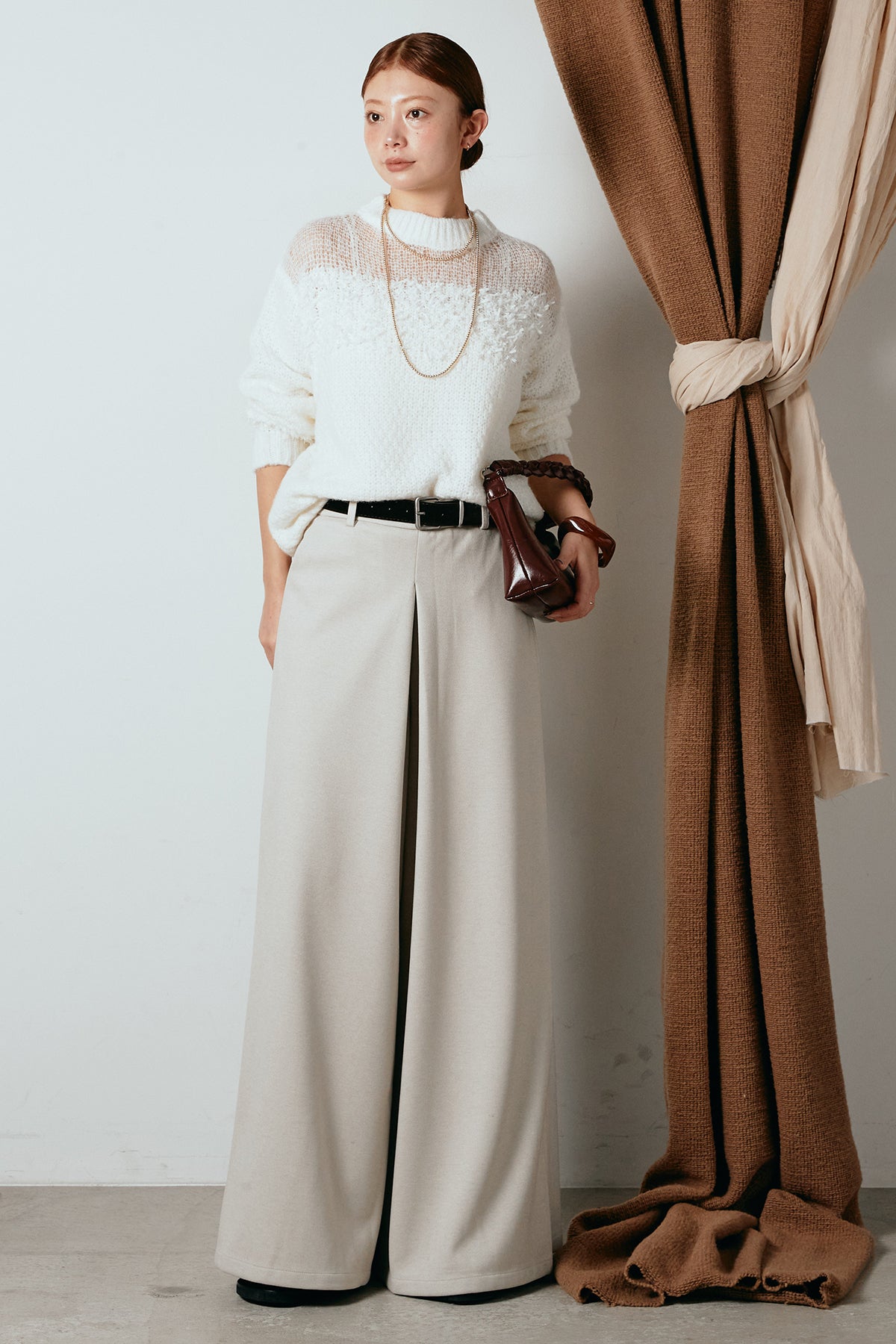 [SET]パターンランダム編みニットトップス+ベルト付きフロントタックデザインパンツ(2set)