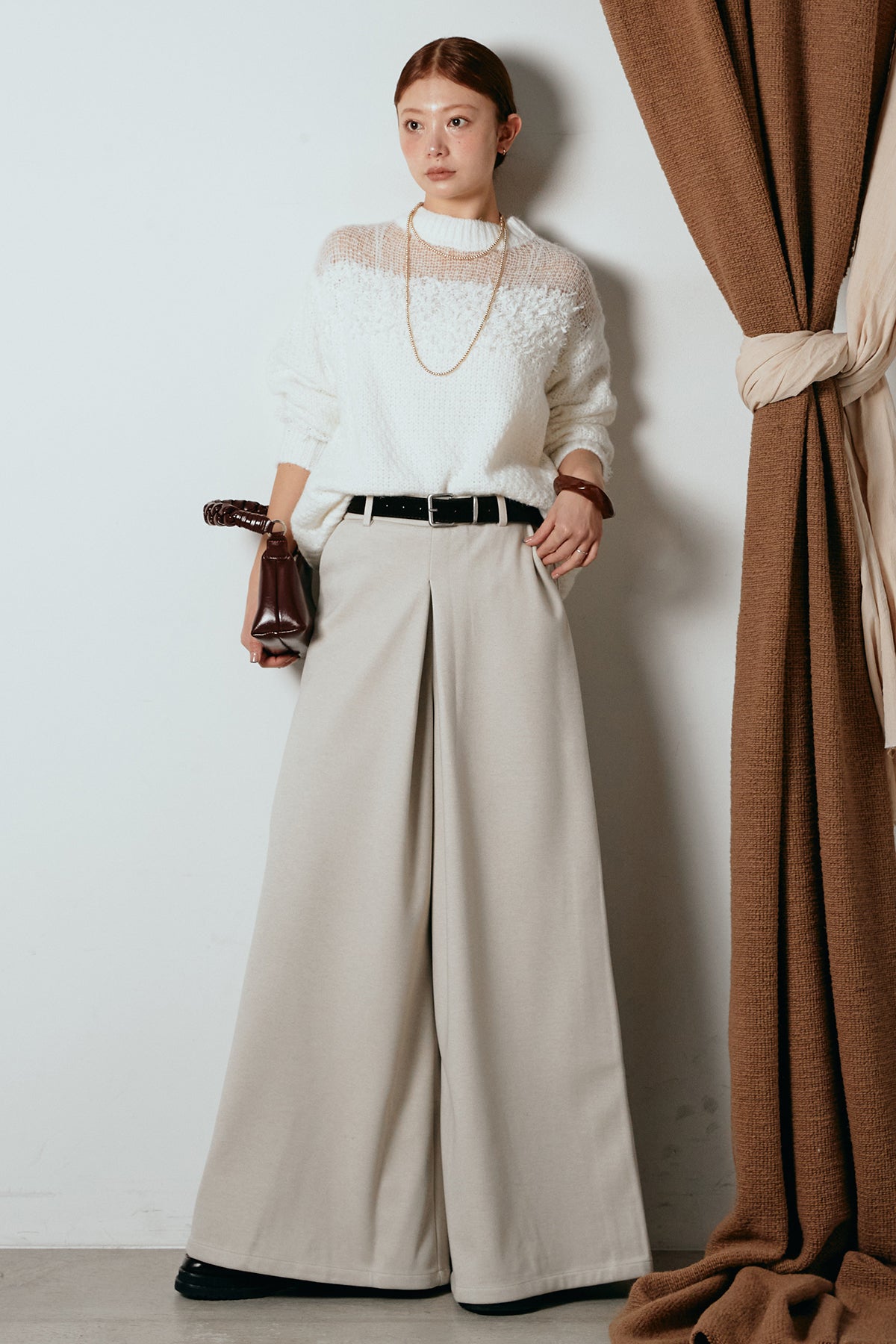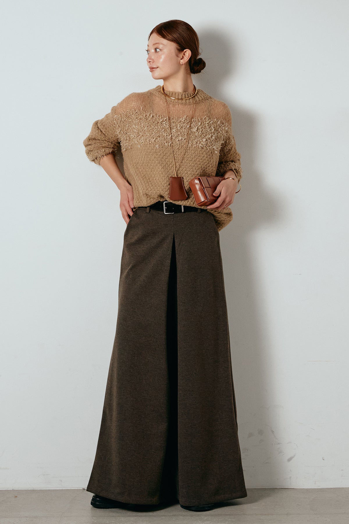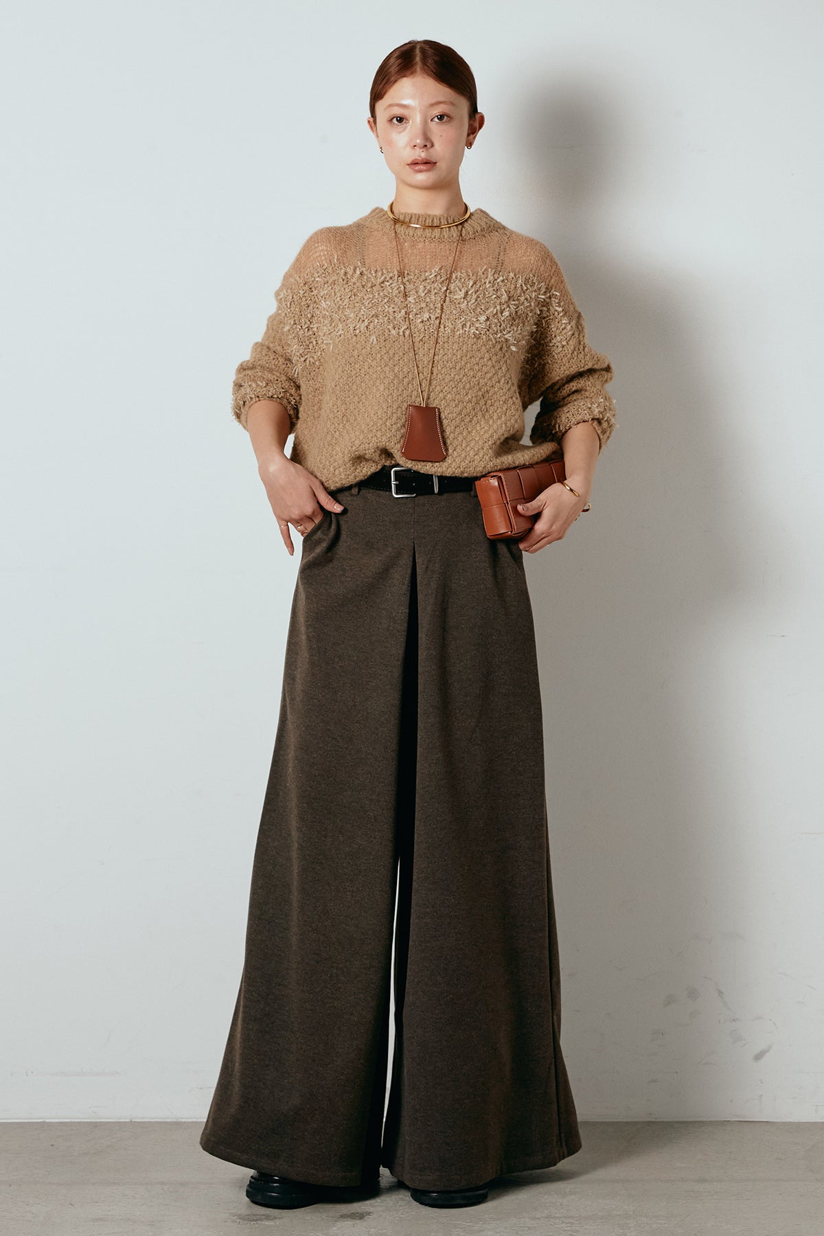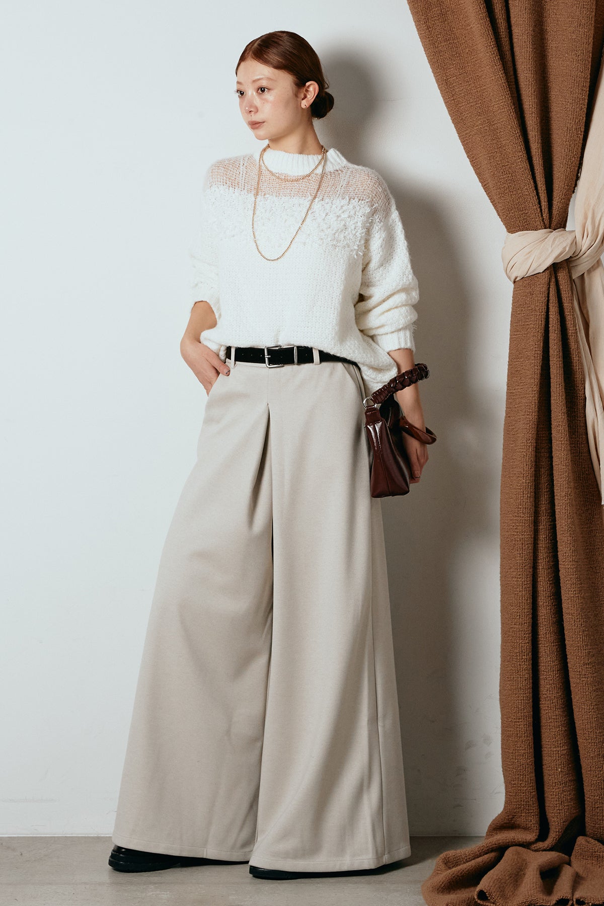 [SET]パターンランダム編みニットトップス+ベルト付きフロントタックデザインパンツ(2set)