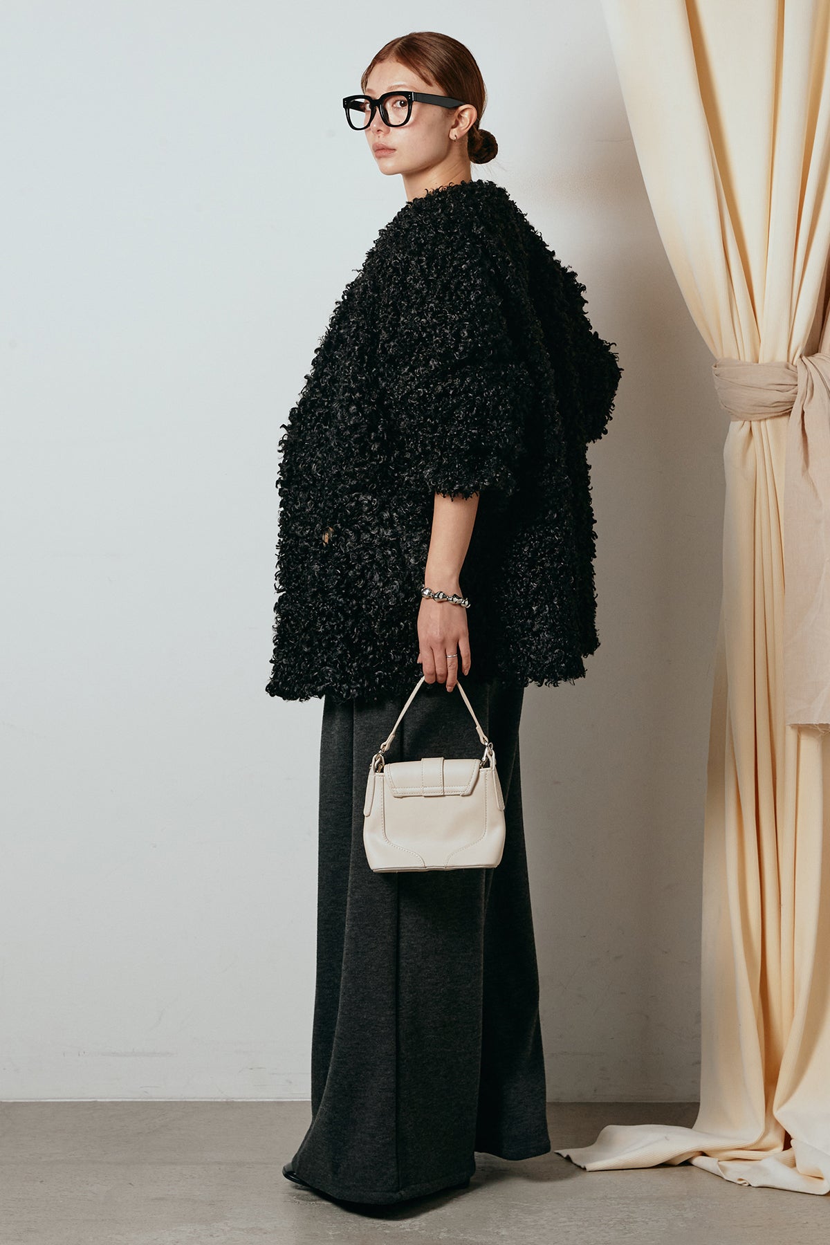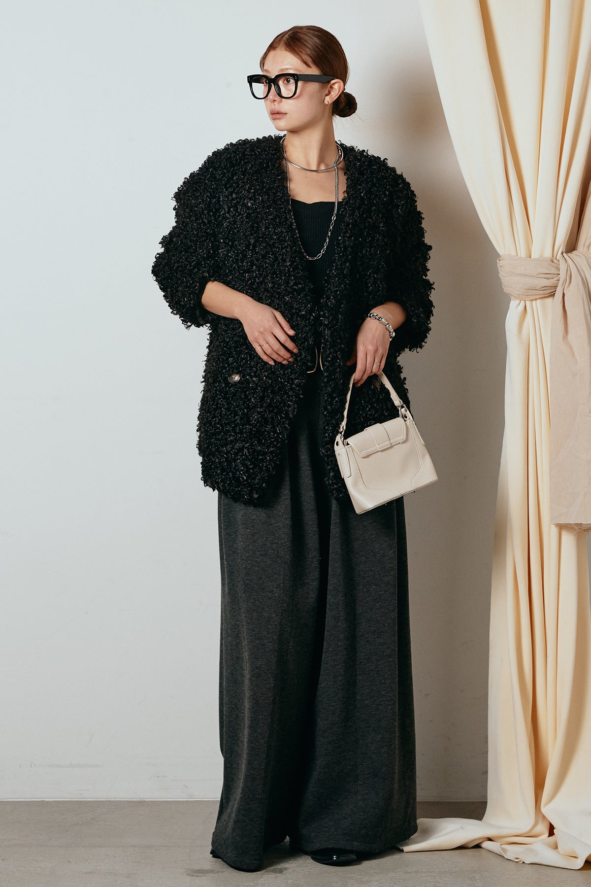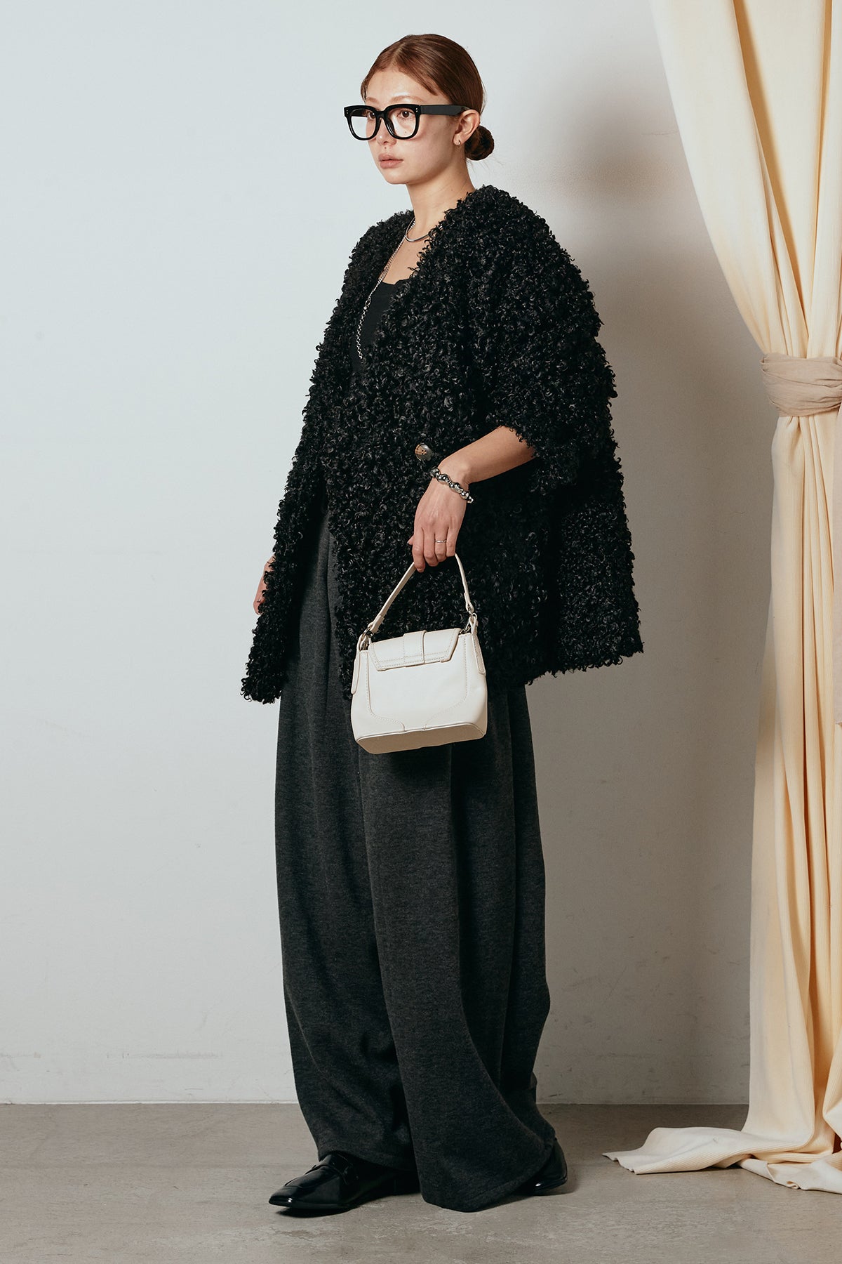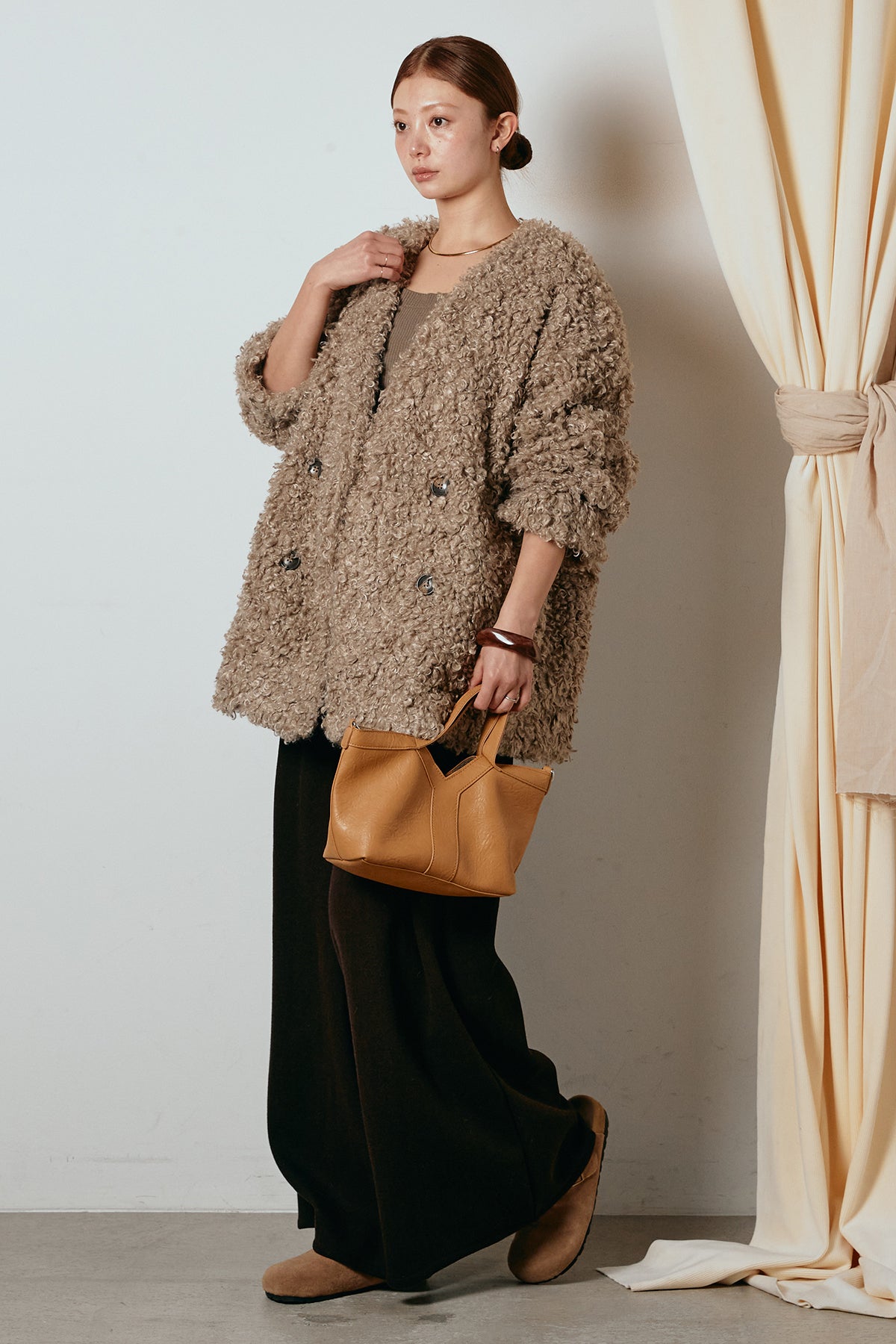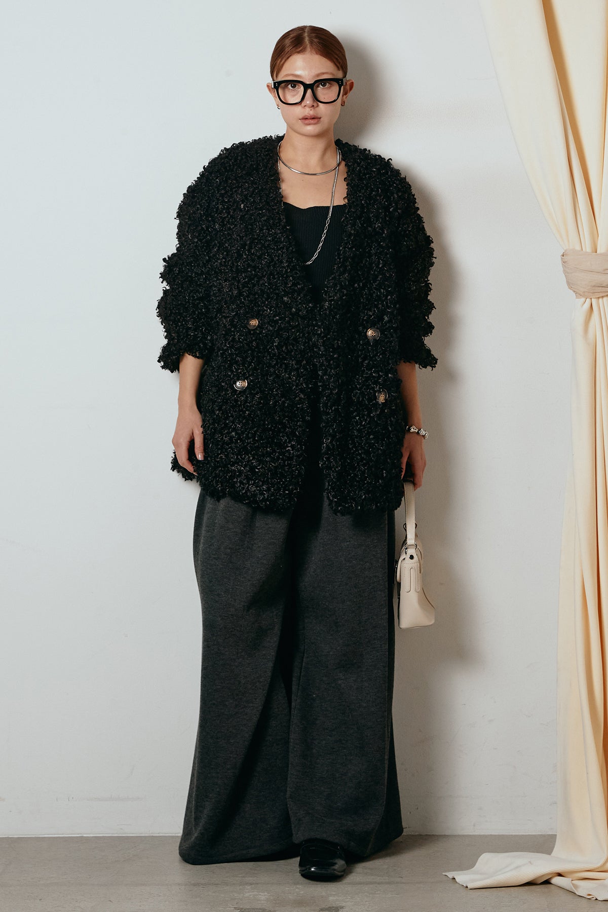 [SET]シープライクファージャケット+フェイクレザー太ベルト付きタックワイドパンツ(2set)