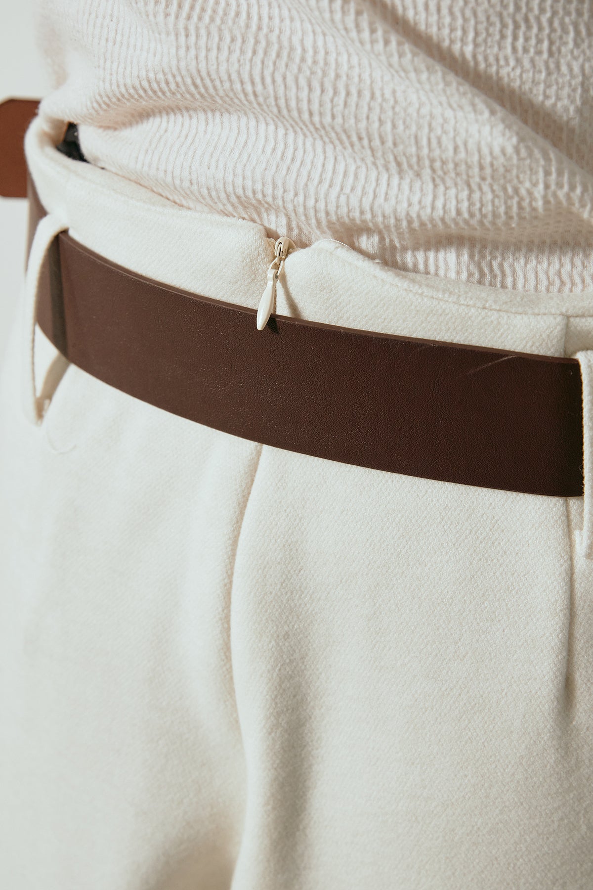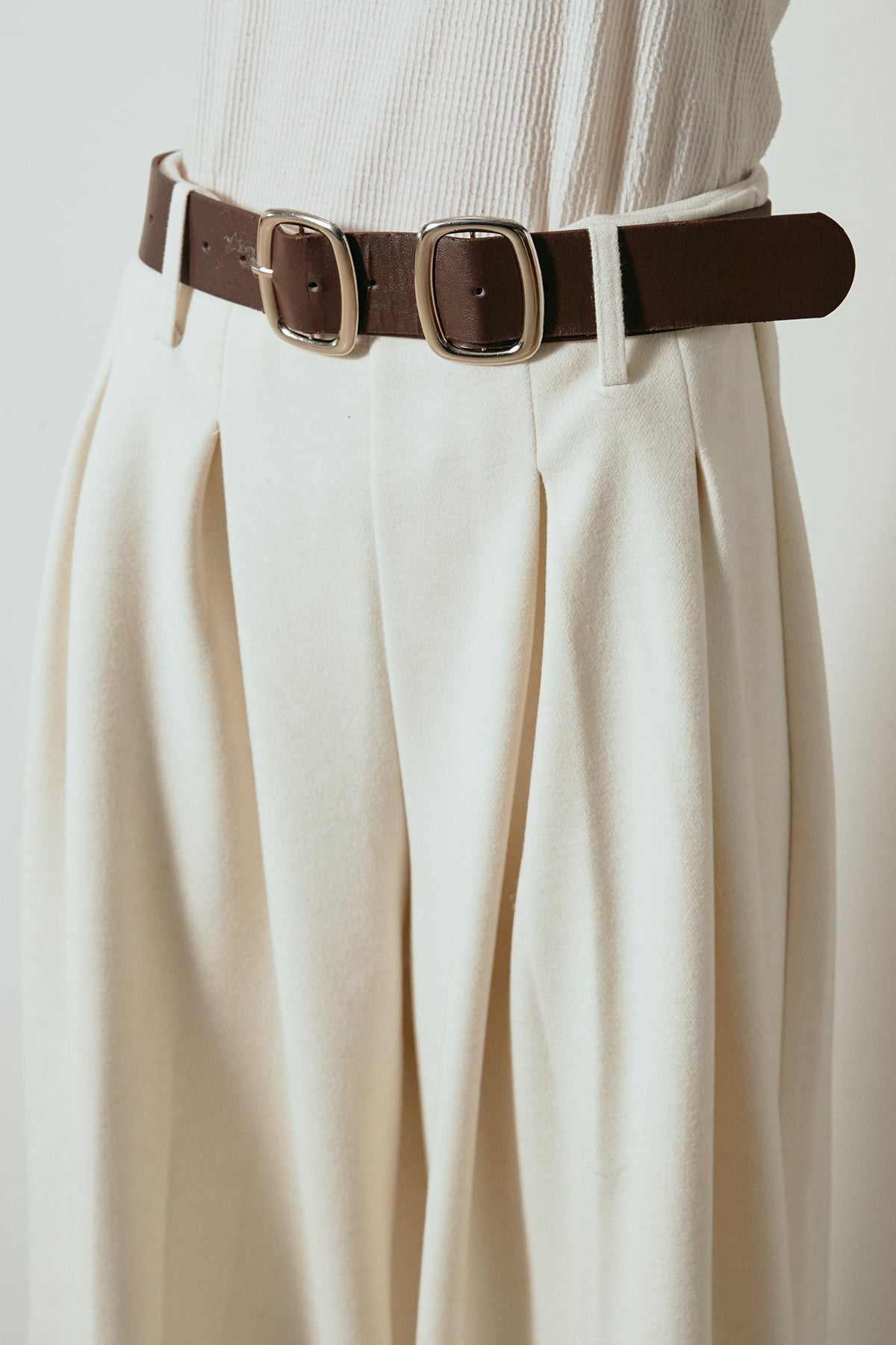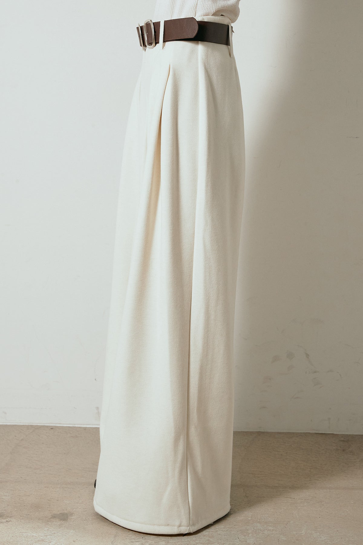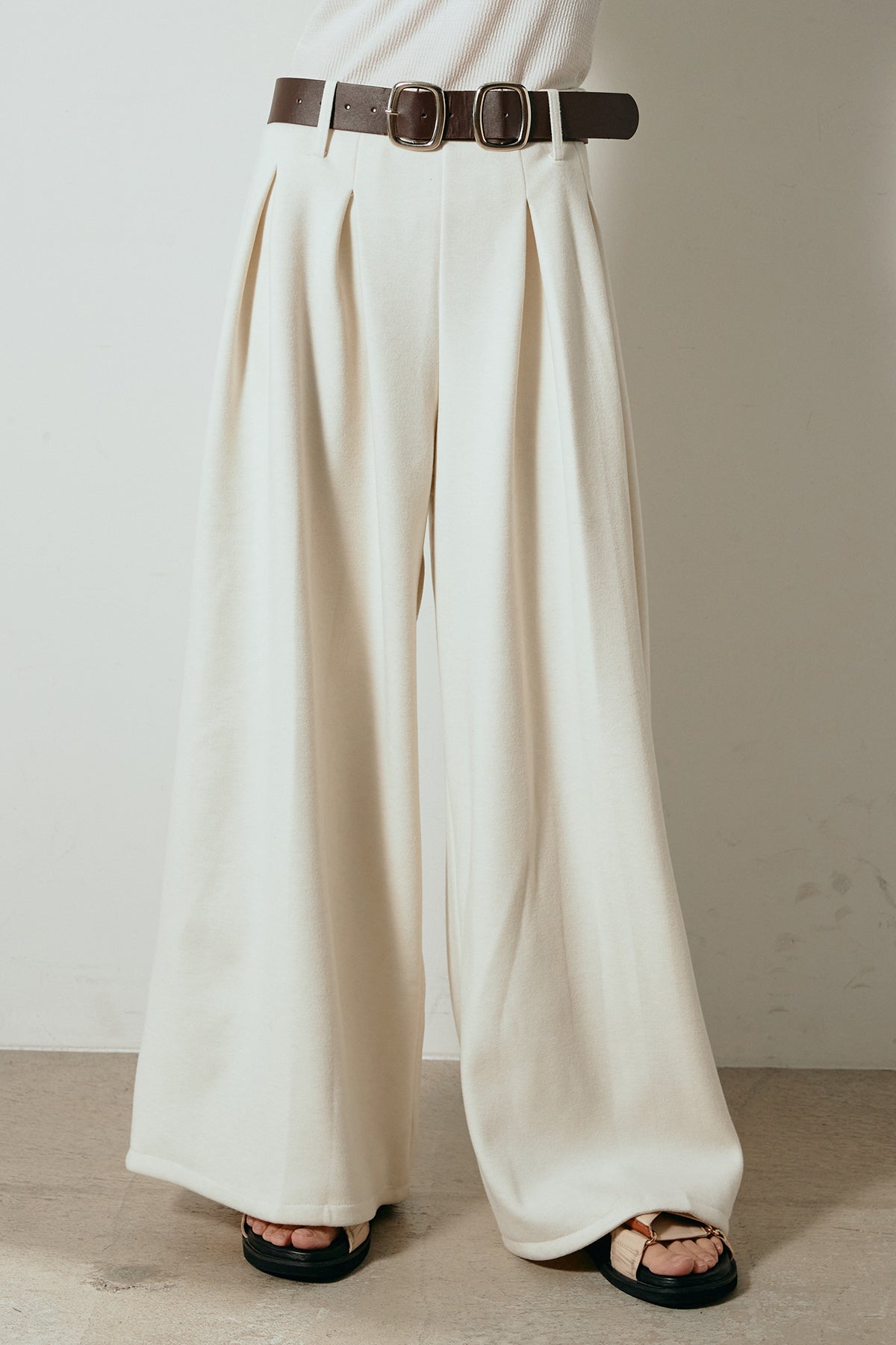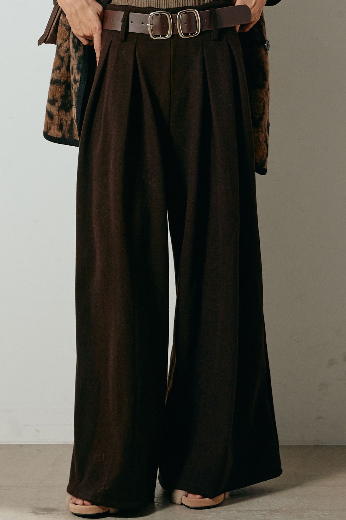 ◆ フェイクレザー太ベルト付きタックワイドパンツ