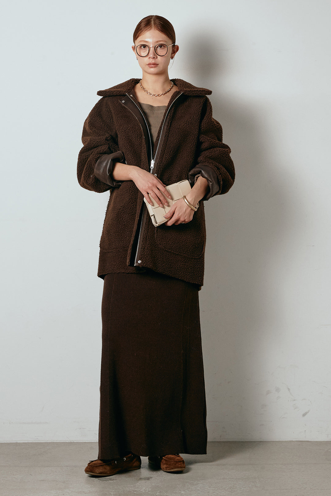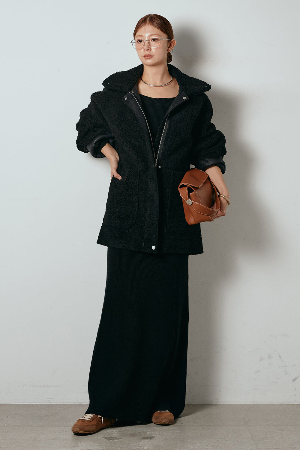 [SET]リバーシブルエコムートンコート+リブナローニットスカート(2set)