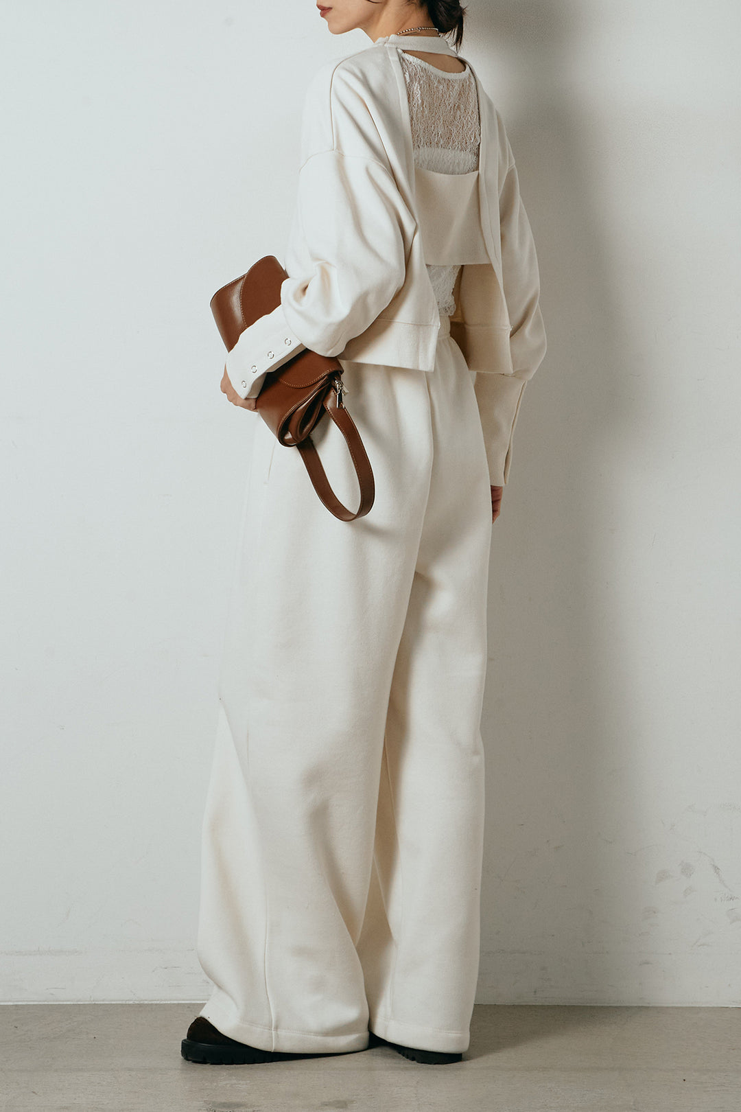 [SET]裏毛バックオープンプルオーバー+ストレッチレースクルーネックインナー+裏起毛スウェットワイドパンツ(3set)