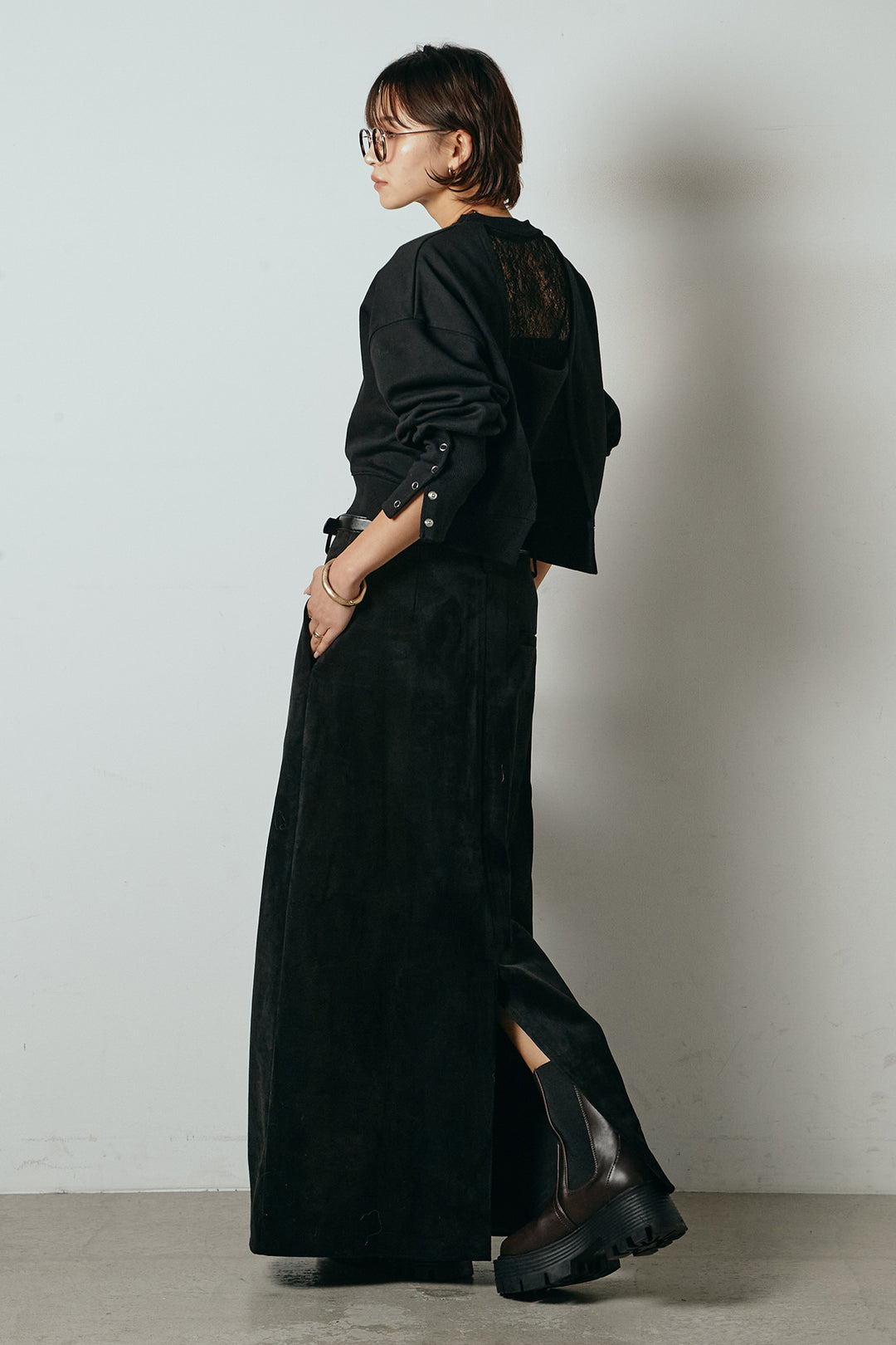 [SET]裏毛バックオープンプルオーバー+エコスウェードワイドスカート(2set)