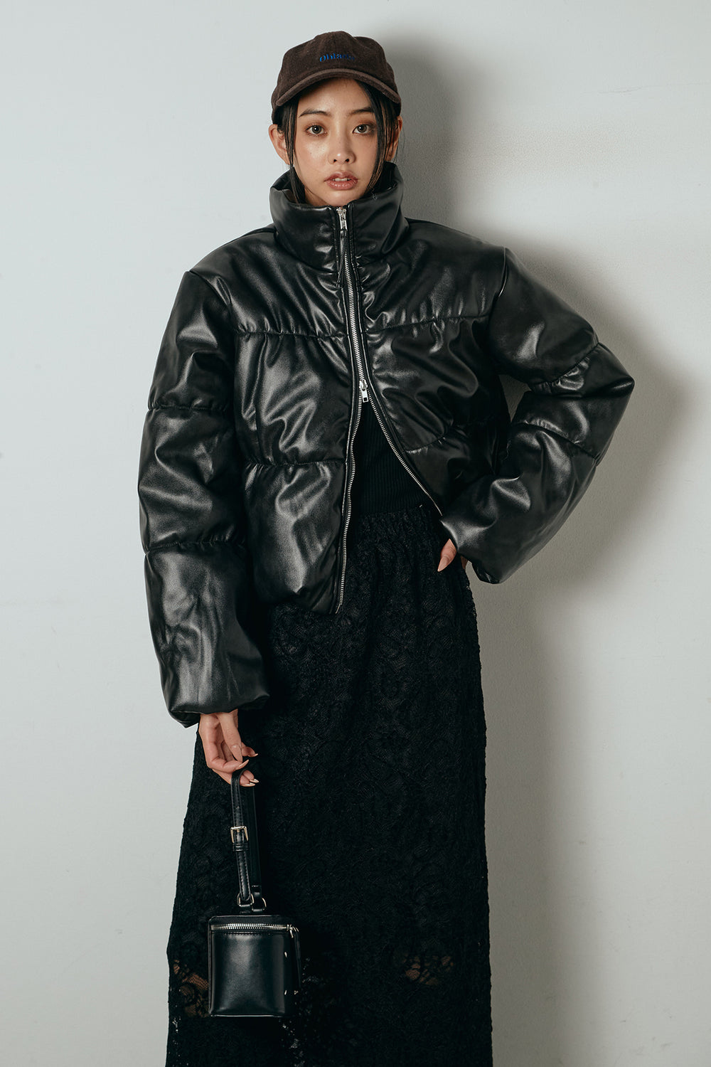 レザーライクWジップスタンドカラー中綿ブルゾン
