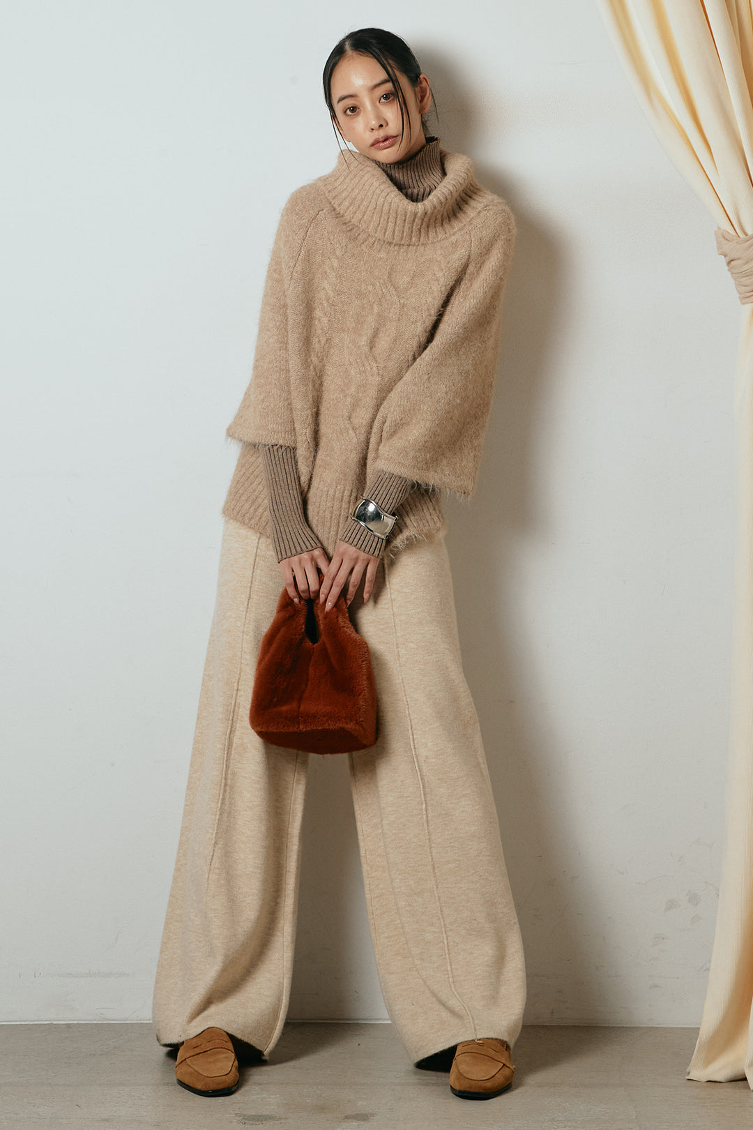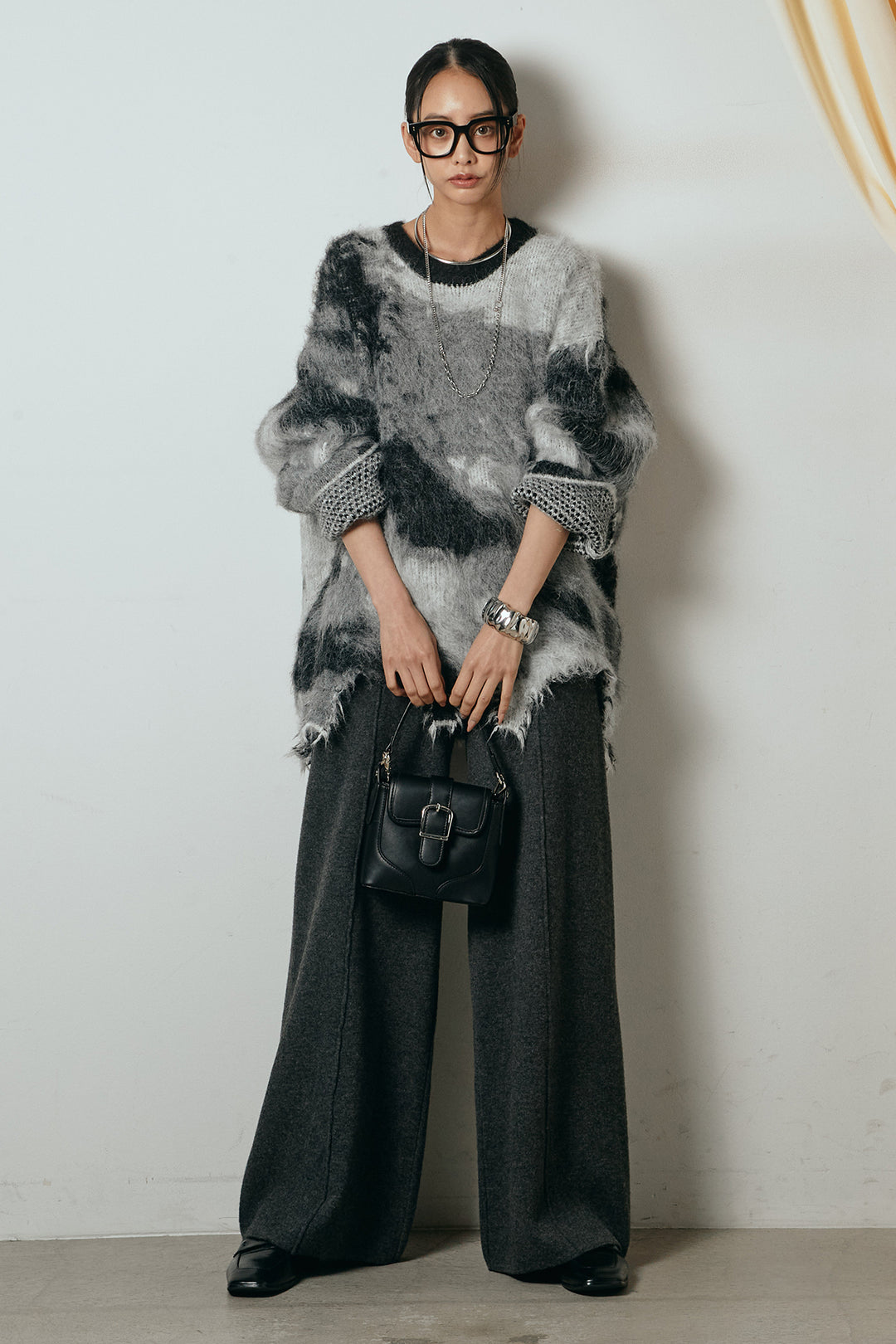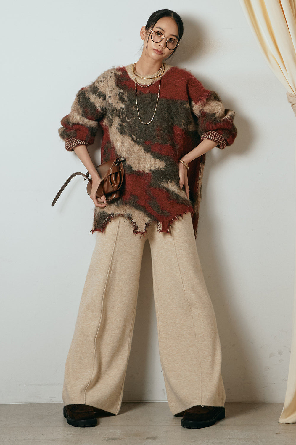 [SET]起毛裾デザインニュアンス柄ニットトップス+センターラインニットパンツ(2set)