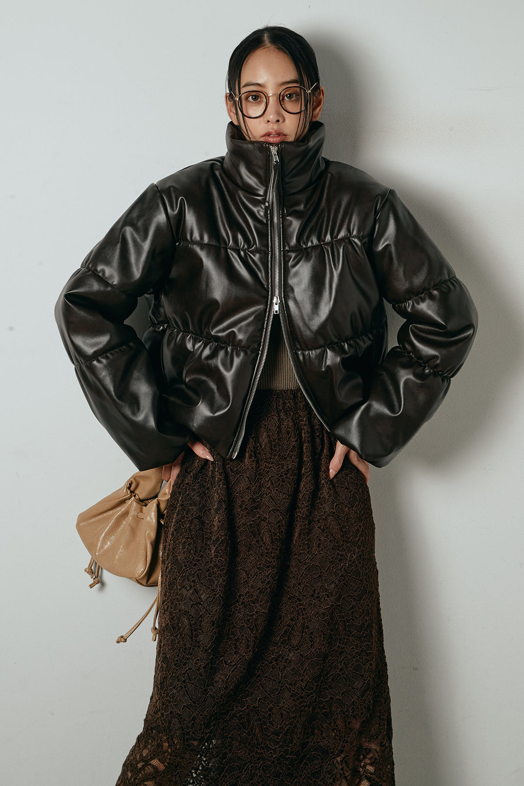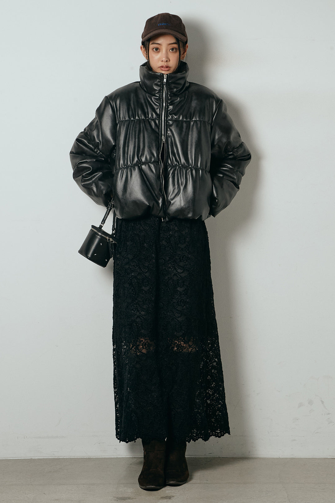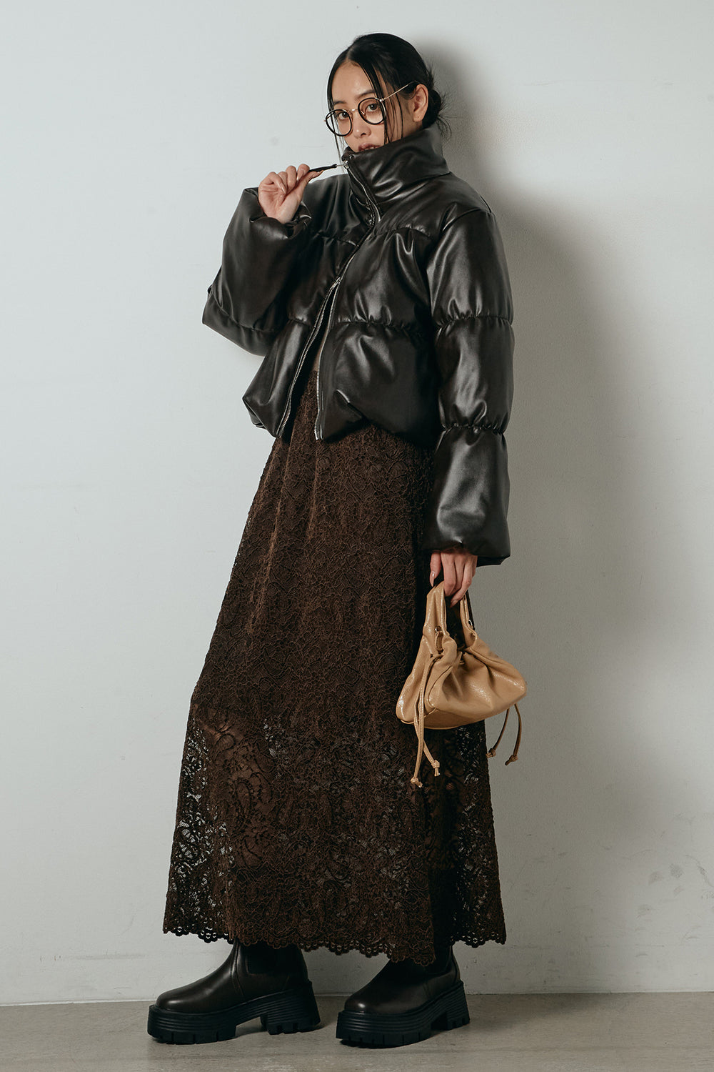 [SET]レザーライクWジップスタンドカラー中綿ブルゾン+総レース刺繍スカート(2set)