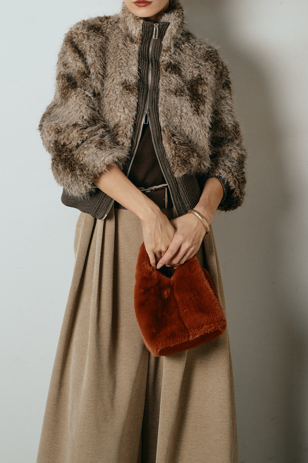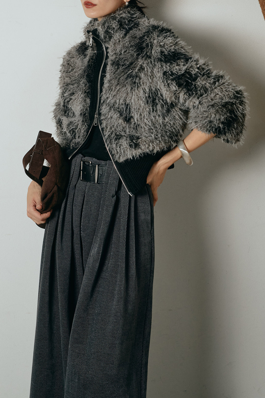[SET]エコファースタンドカラーニュアンス柄ブルゾン+ベルトループコーデュロイワイドパンツ(2set)