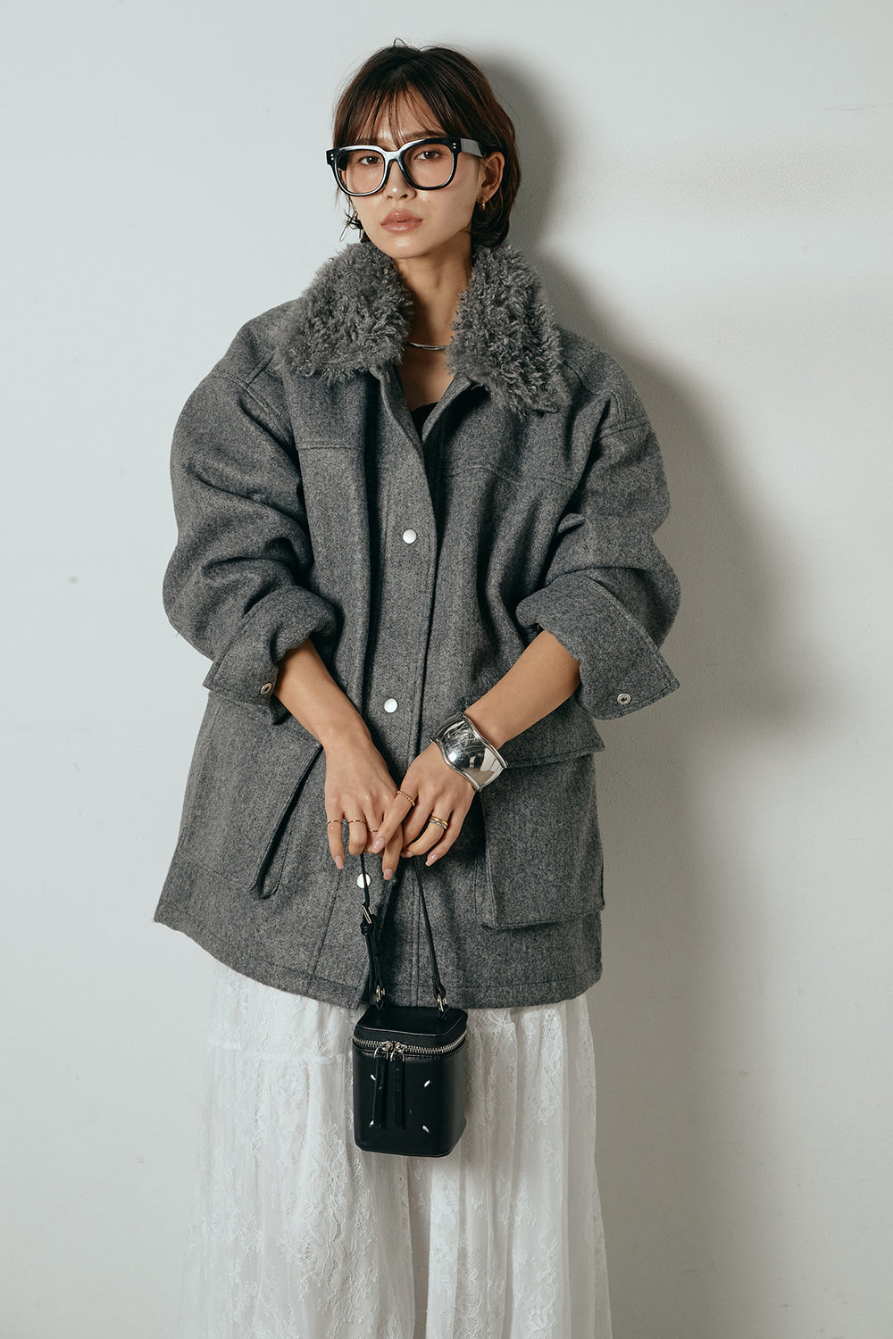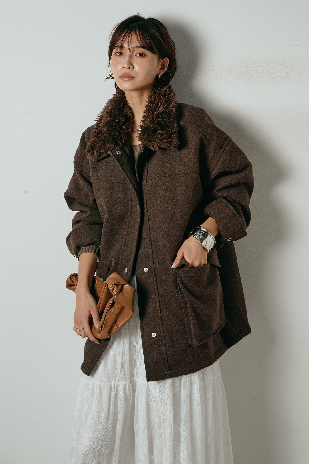エコウール衿ファー薄中綿入りミドルカバーオール