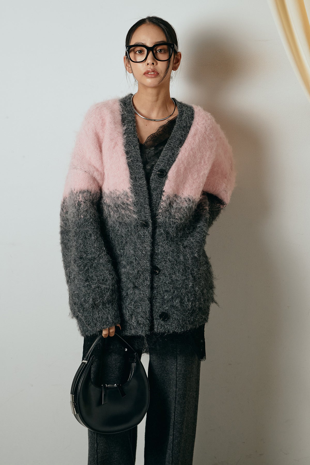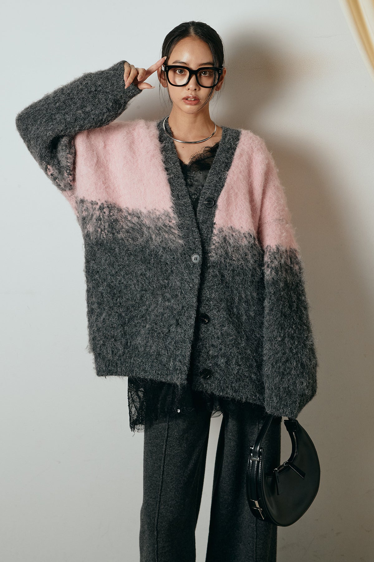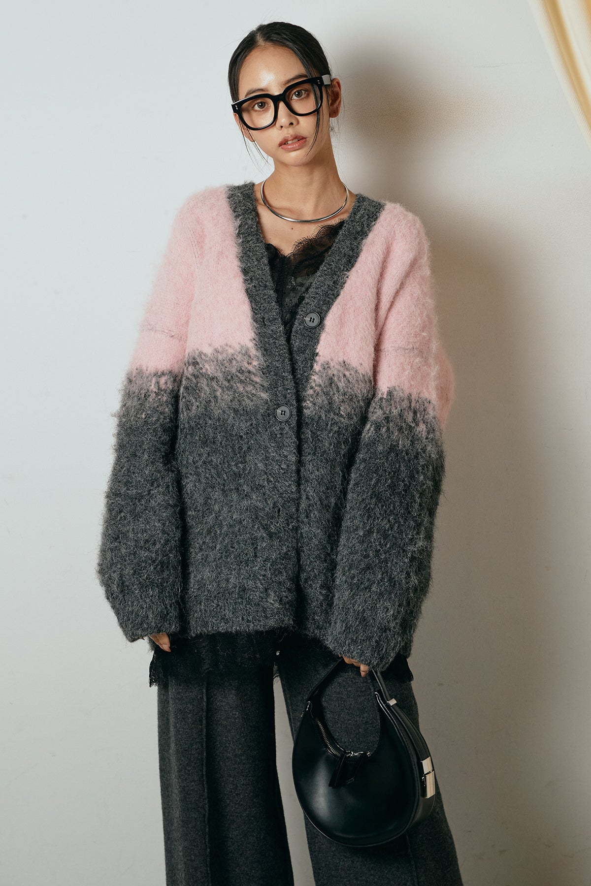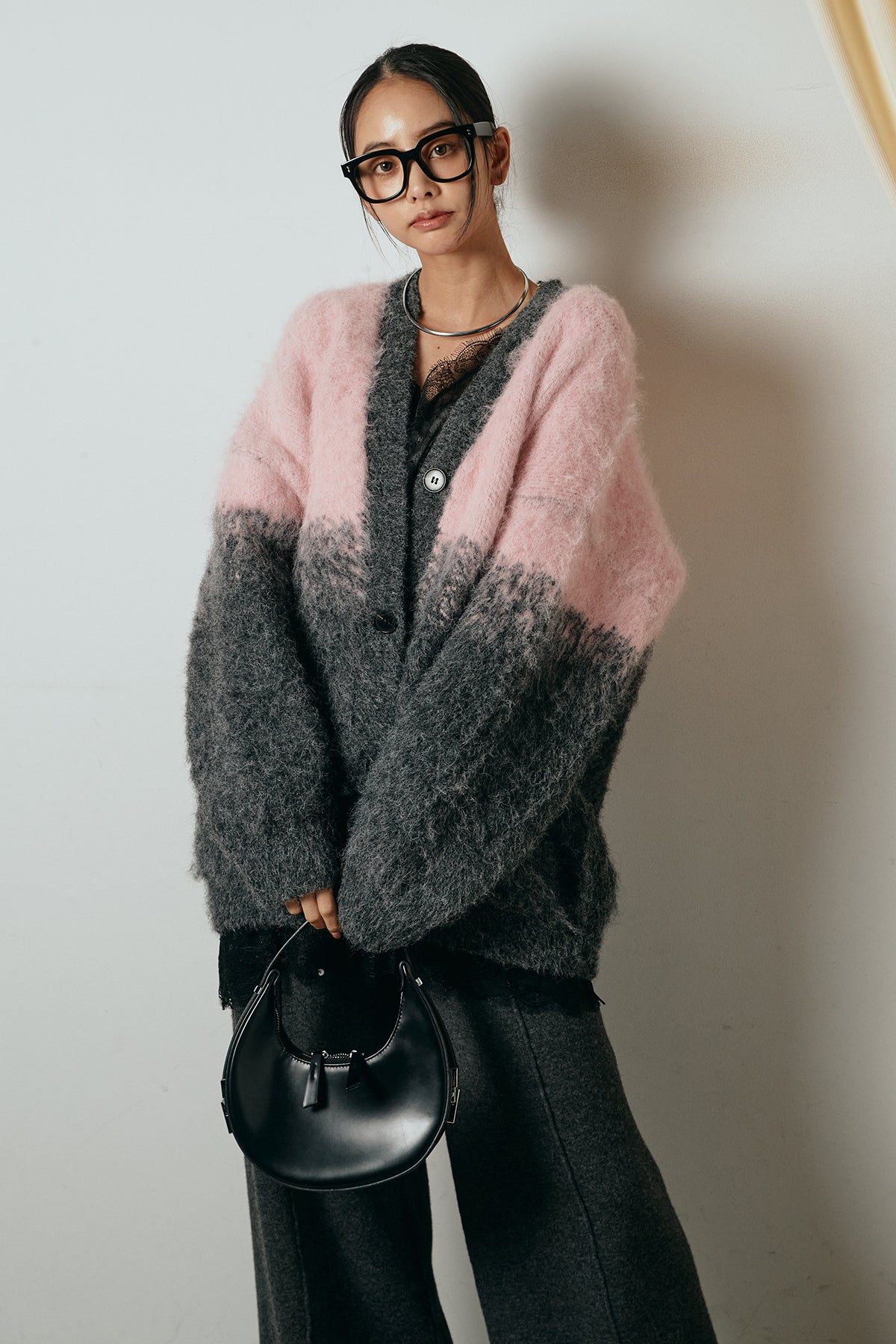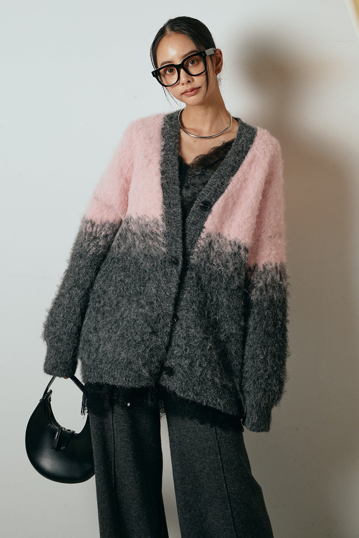 起毛感のある素材にグラデーションデザインを取り入れたニットカーディガン。 自然な色の切り替えがあり、シンプルなスタイリングでも程よくアクセントになります。 ゆとりのあるシルエットで、インナーを選ばず羽織りやすいデザイン。 デイリー使いから外出まで、幅広く取り入れやすい一着です。