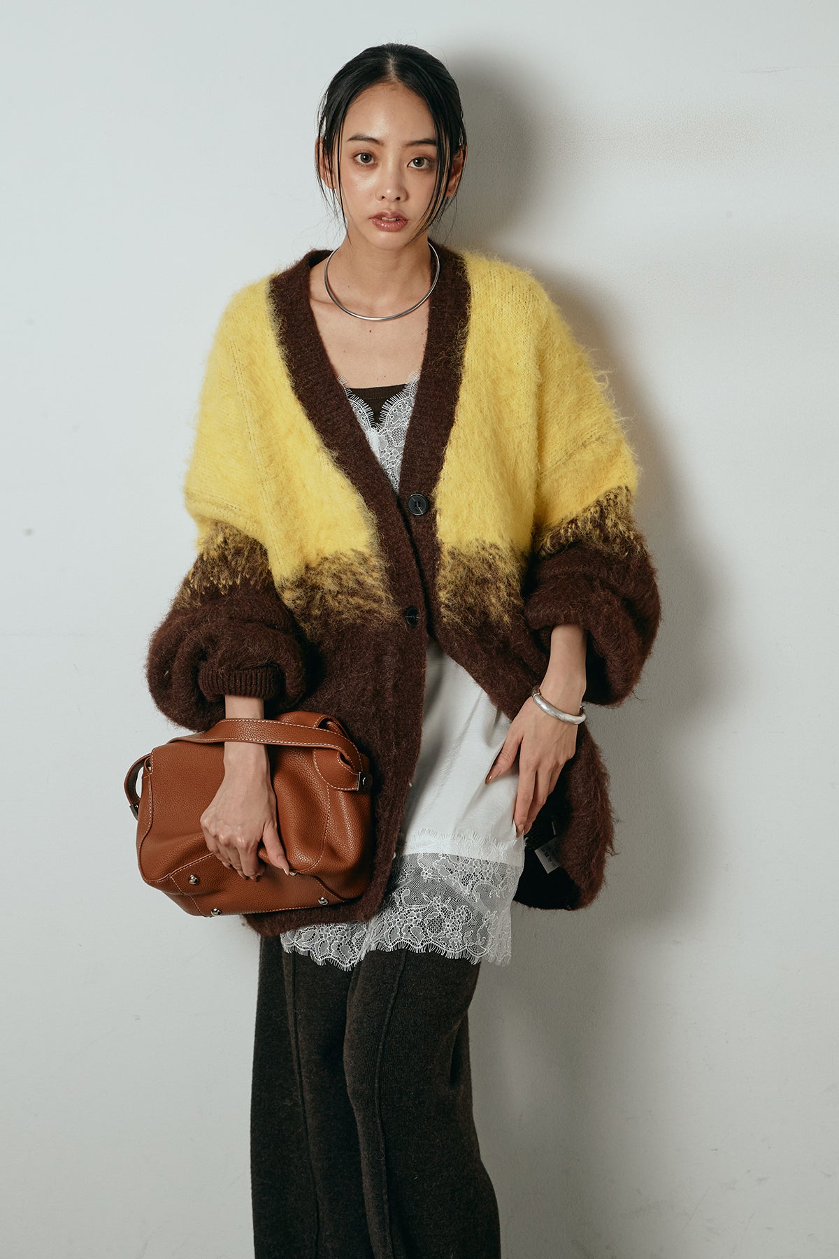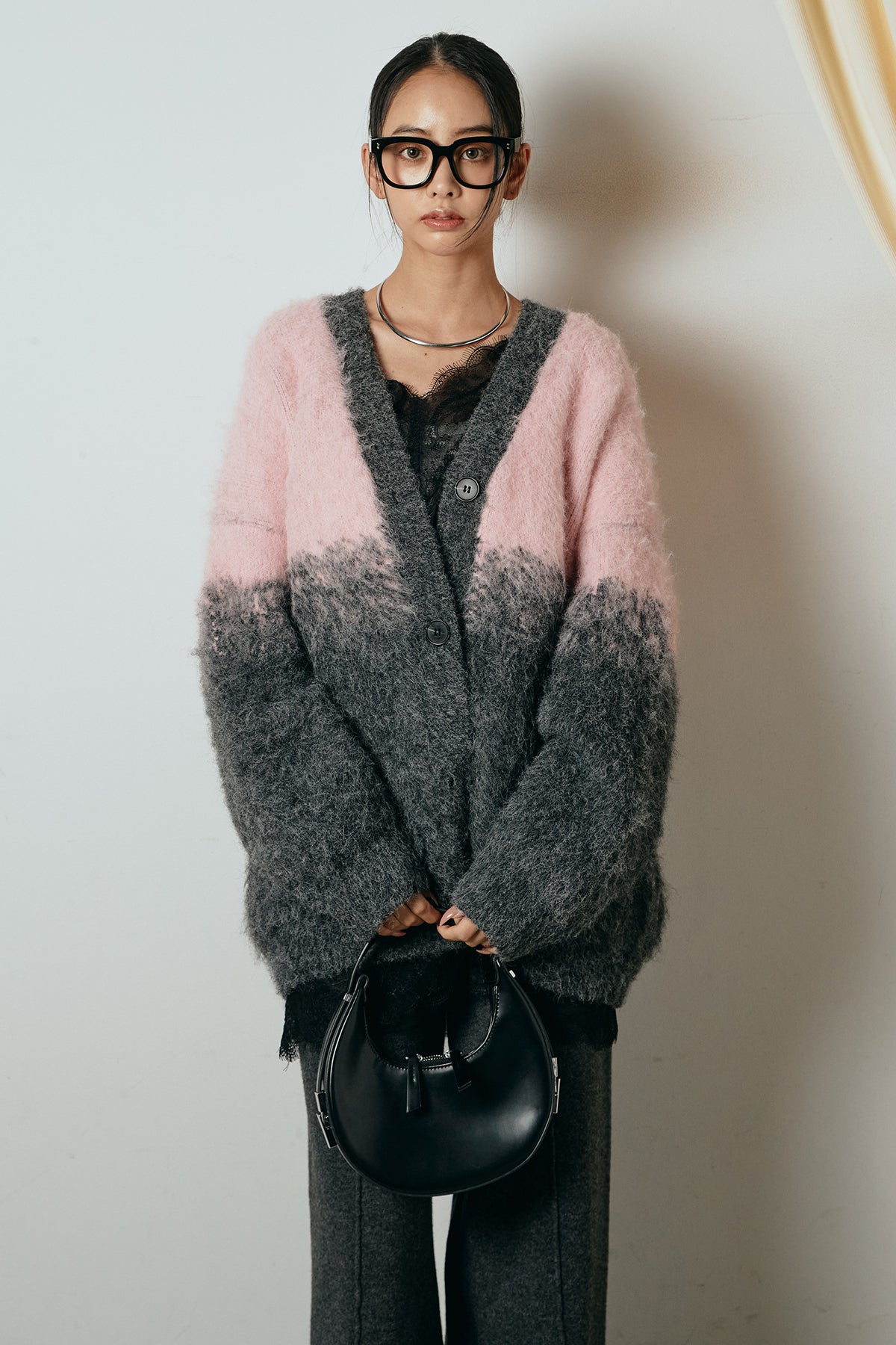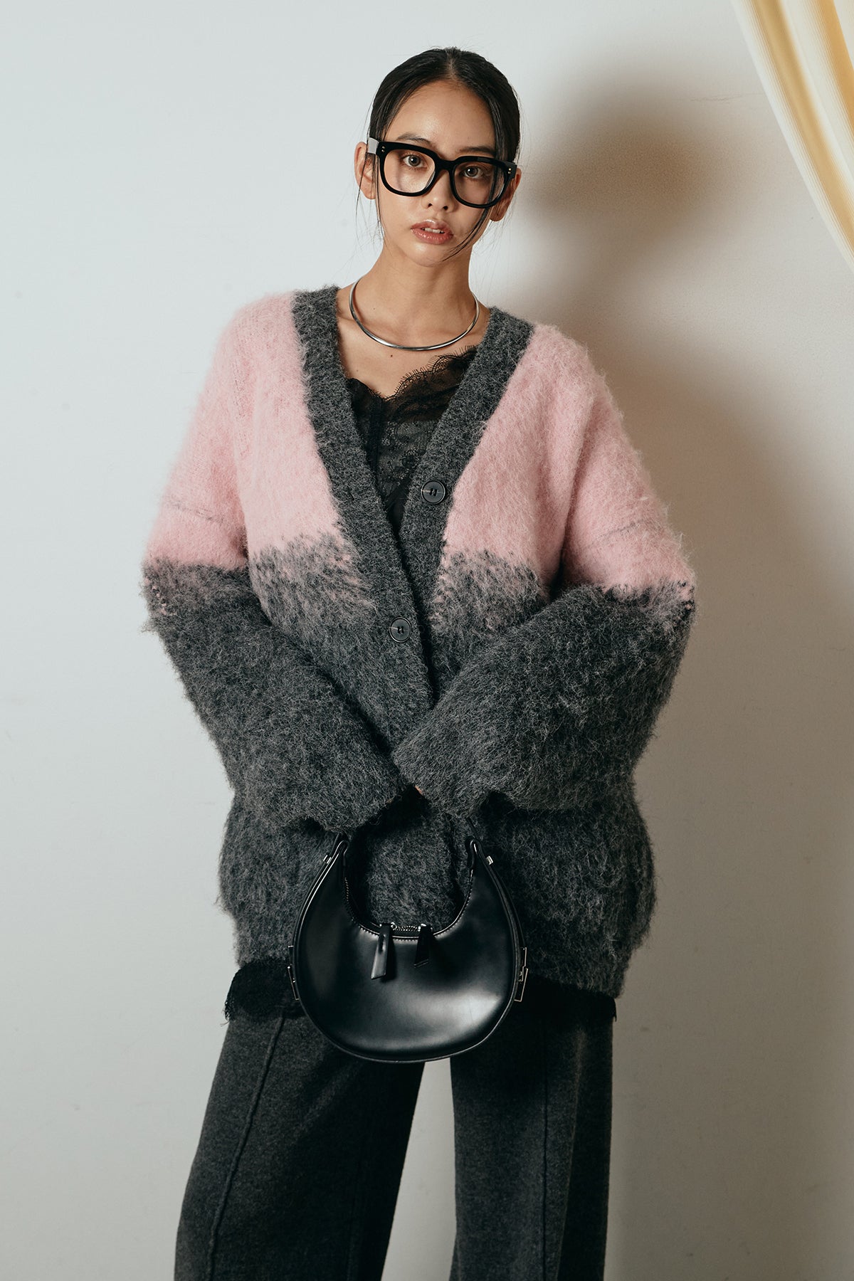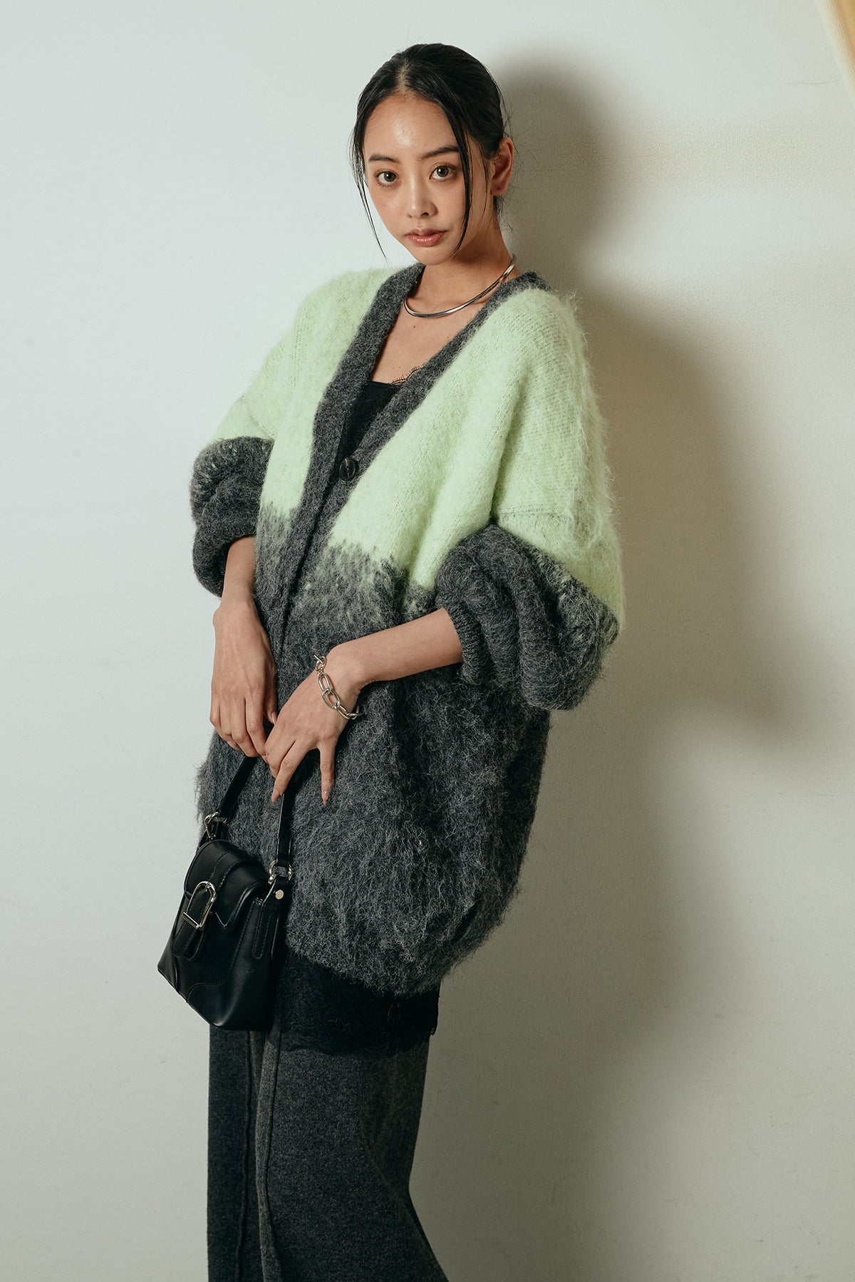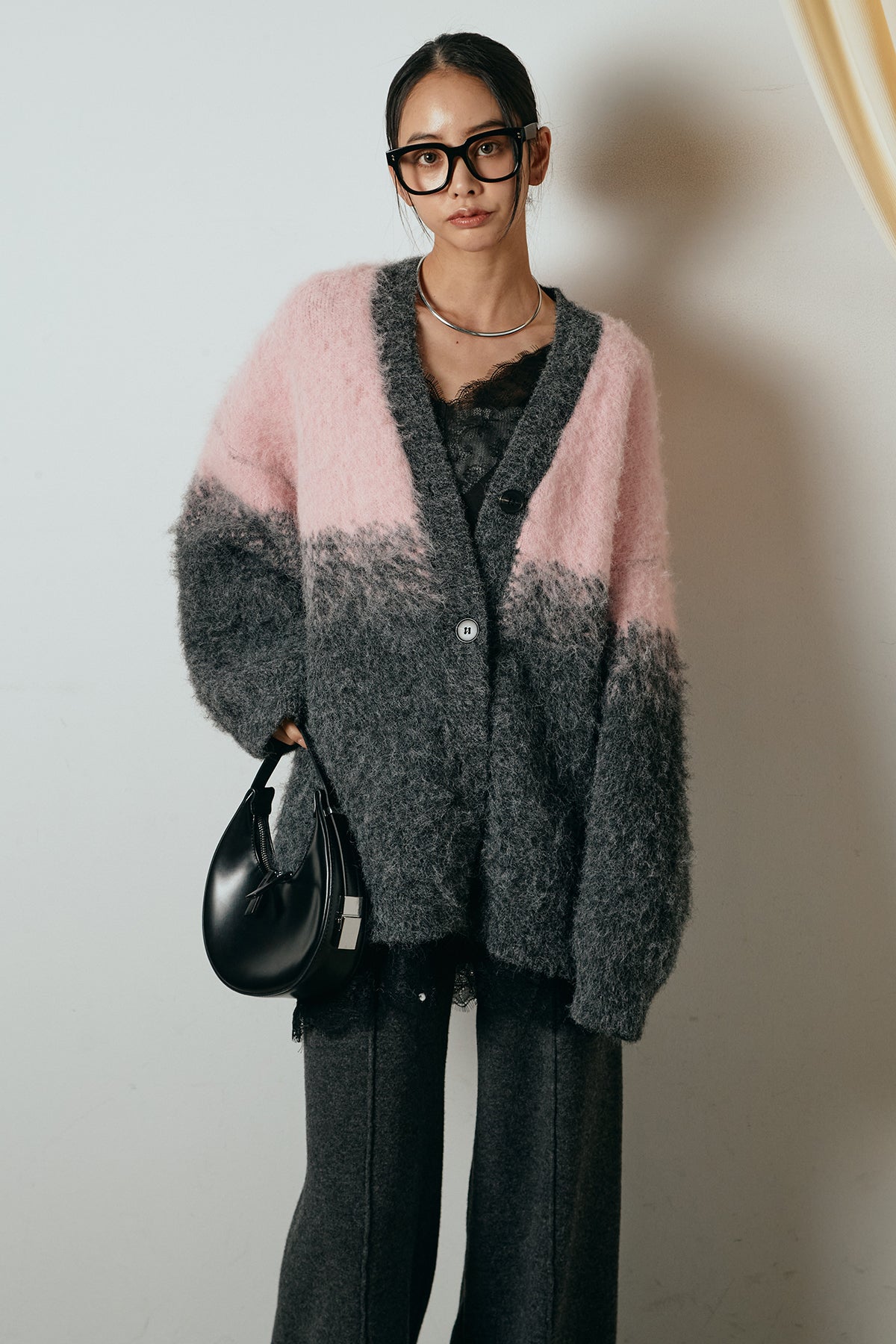 起毛感のある素材にグラデーションデザインを取り入れたニットカーディガン。 自然な色の切り替えがあり、シンプルなスタイリングでも程よくアクセントになります。 ゆとりのあるシルエットで、インナーを選ばず羽織りやすいデザイン。 デイリー使いから外出まで、幅広く取り入れやすい一着です。
