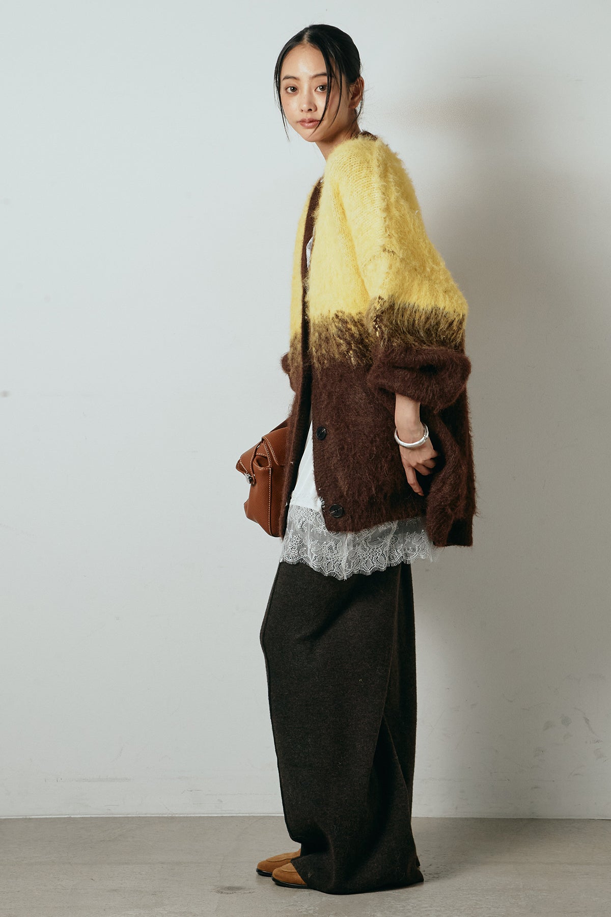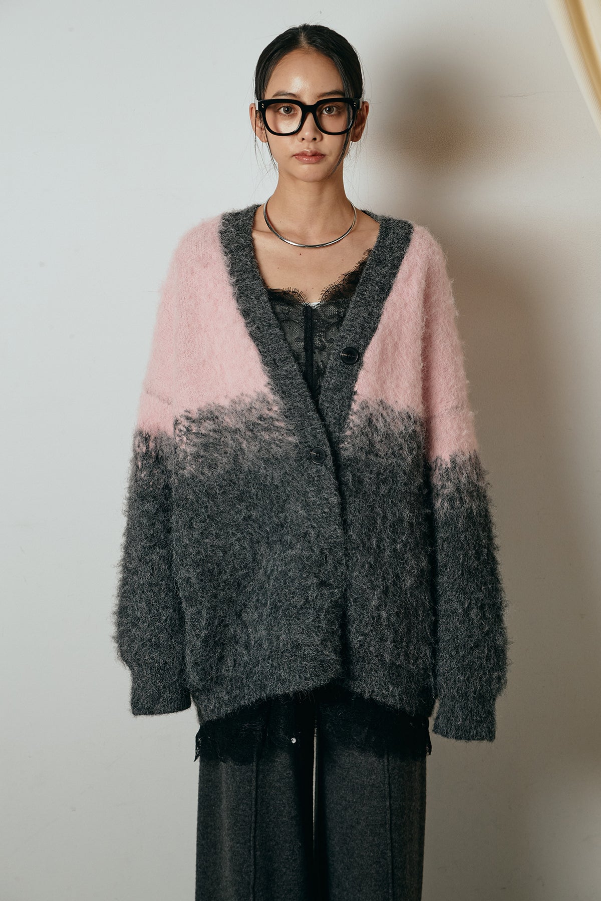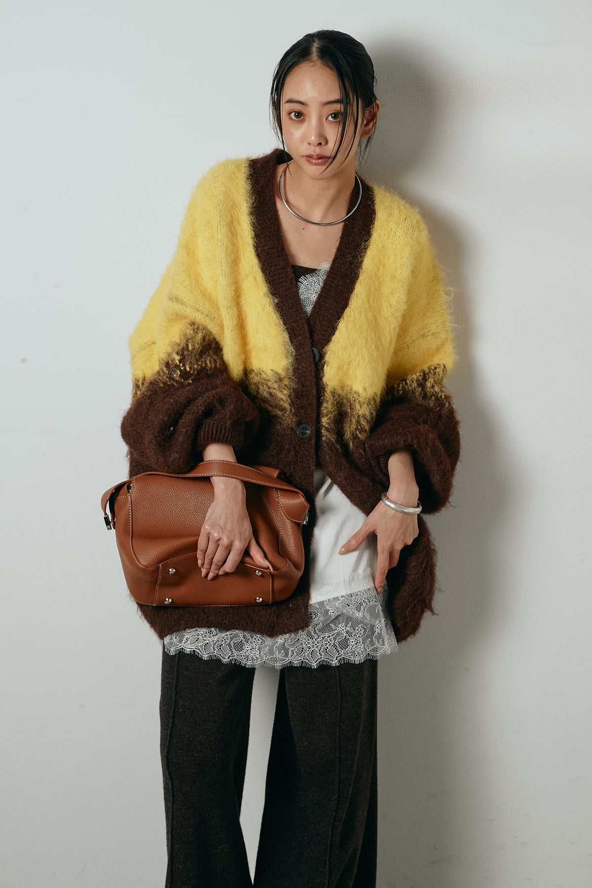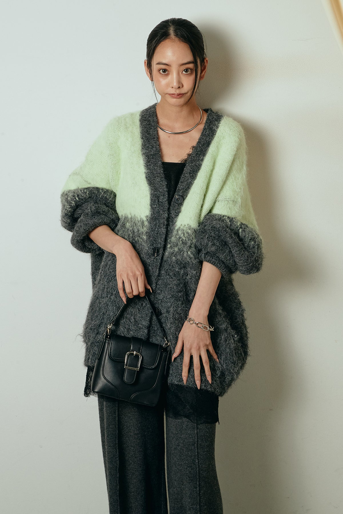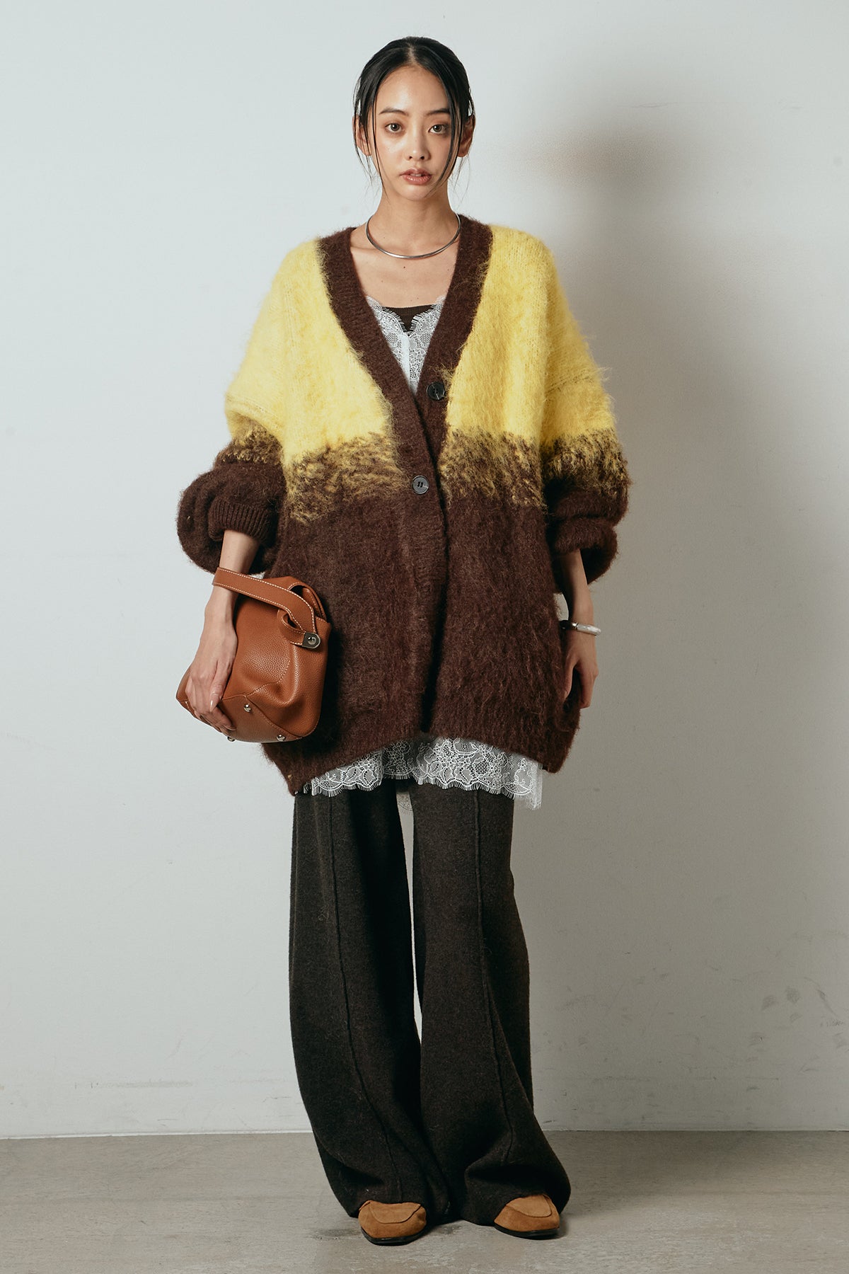 起毛感のある素材にグラデーションデザインを取り入れたニットカーディガン。 自然な色の切り替えがあり、シンプルなスタイリングでも程よくアクセントになります。 ゆとりのあるシルエットで、インナーを選ばず羽織りやすいデザイン。 デイリー使いから外出まで、幅広く取り入れやすい一着です。