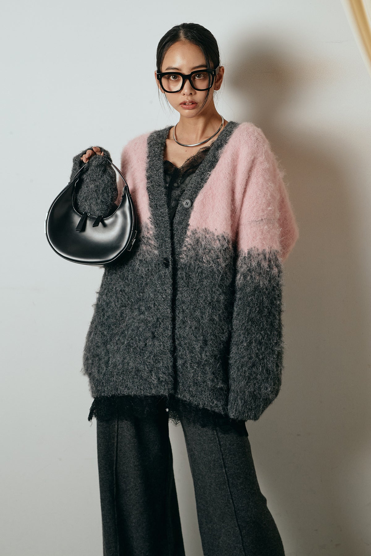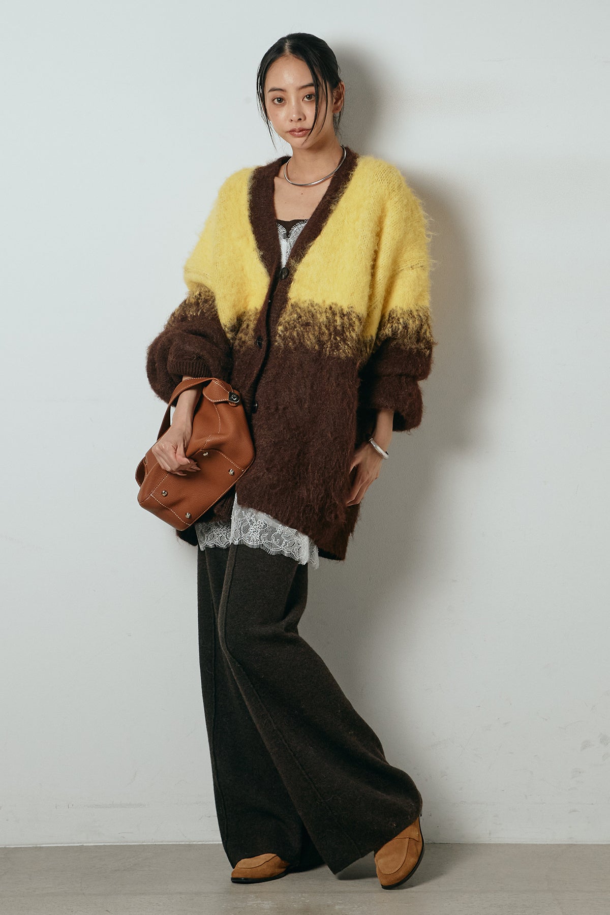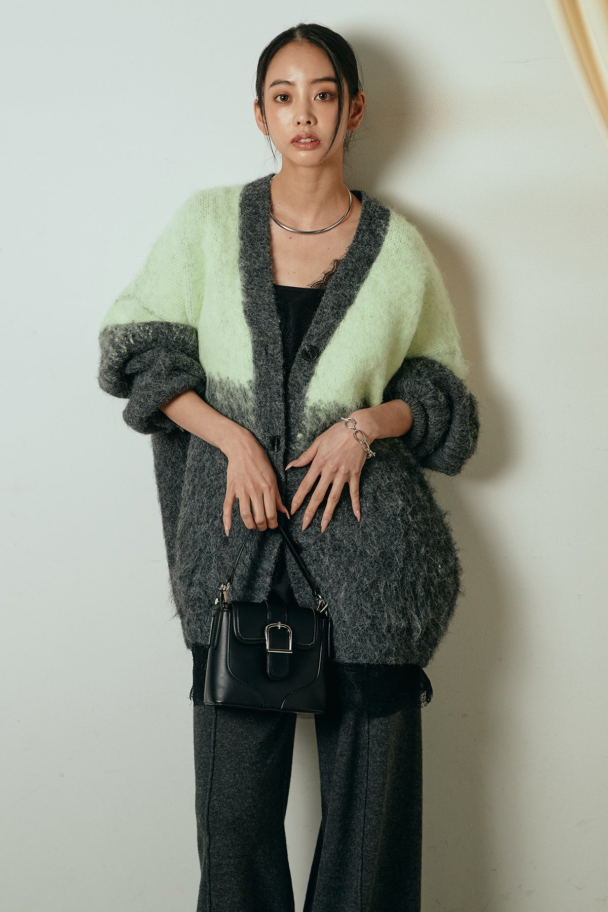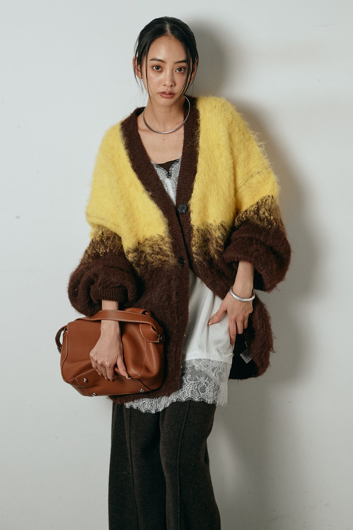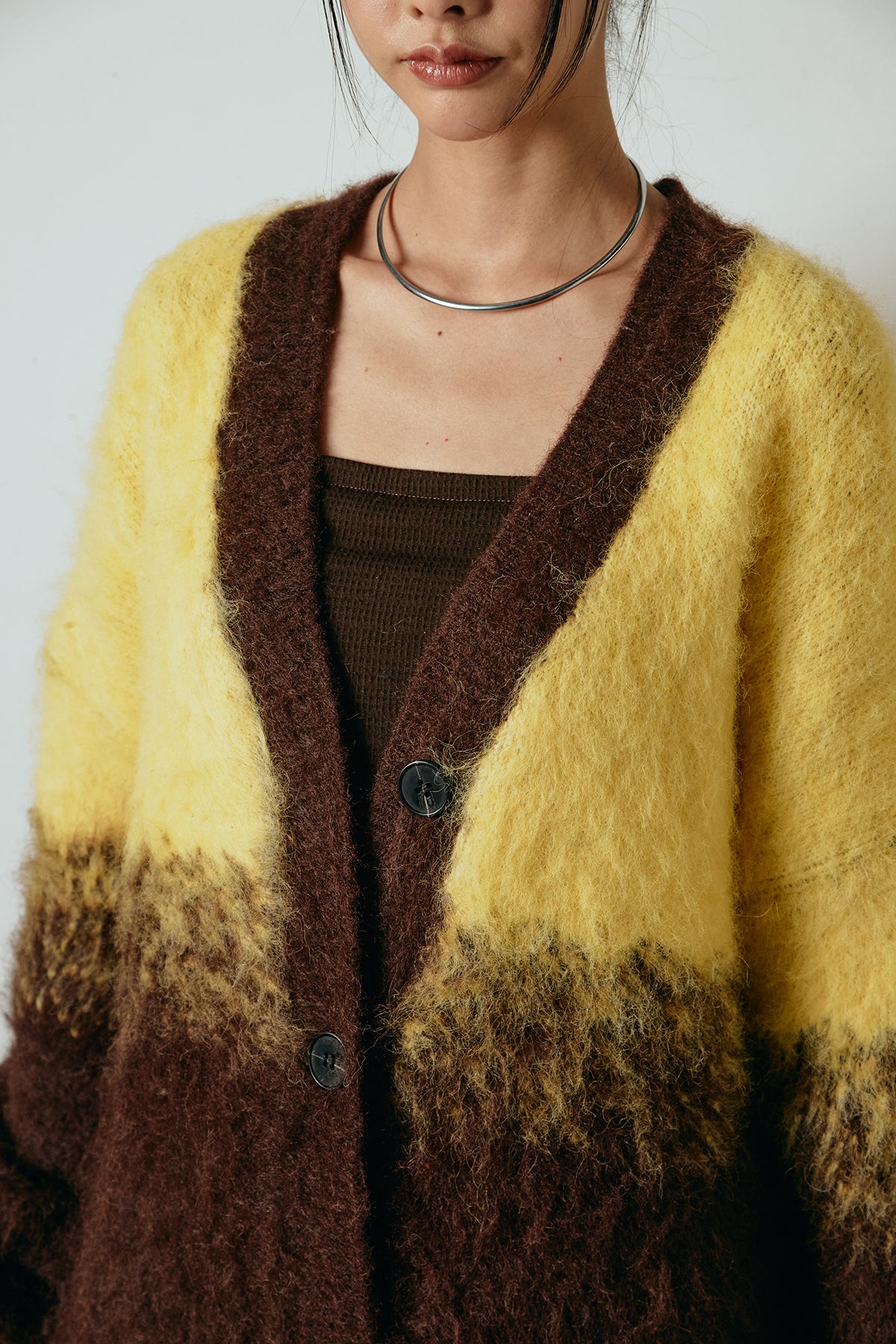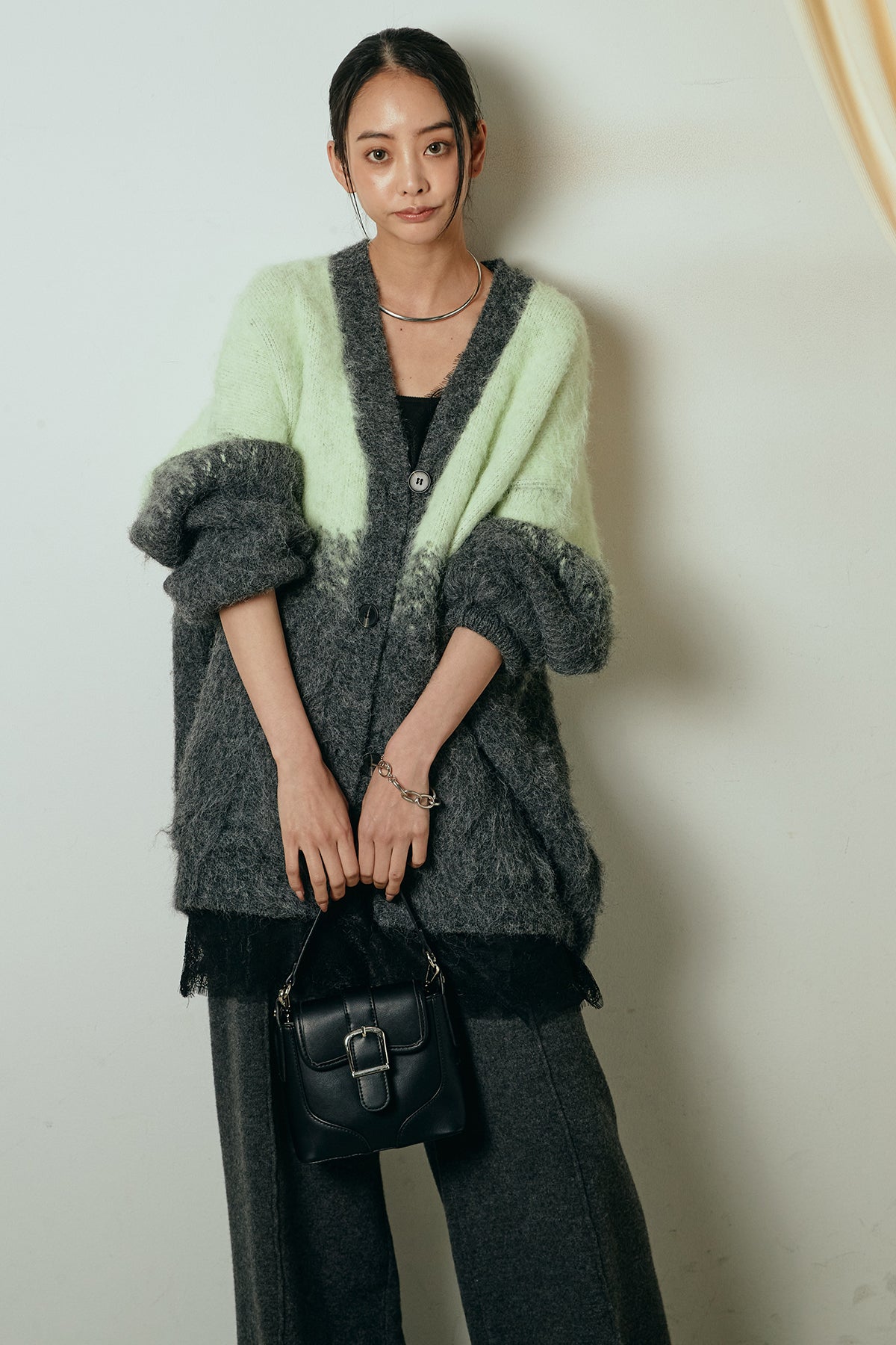 起毛感のある素材にグラデーションデザインを取り入れたニットカーディガン。 自然な色の切り替えがあり、シンプルなスタイリングでも程よくアクセントになります。 ゆとりのあるシルエットで、インナーを選ばず羽織りやすいデザイン。 デイリー使いから外出まで、幅広く取り入れやすい一着です。