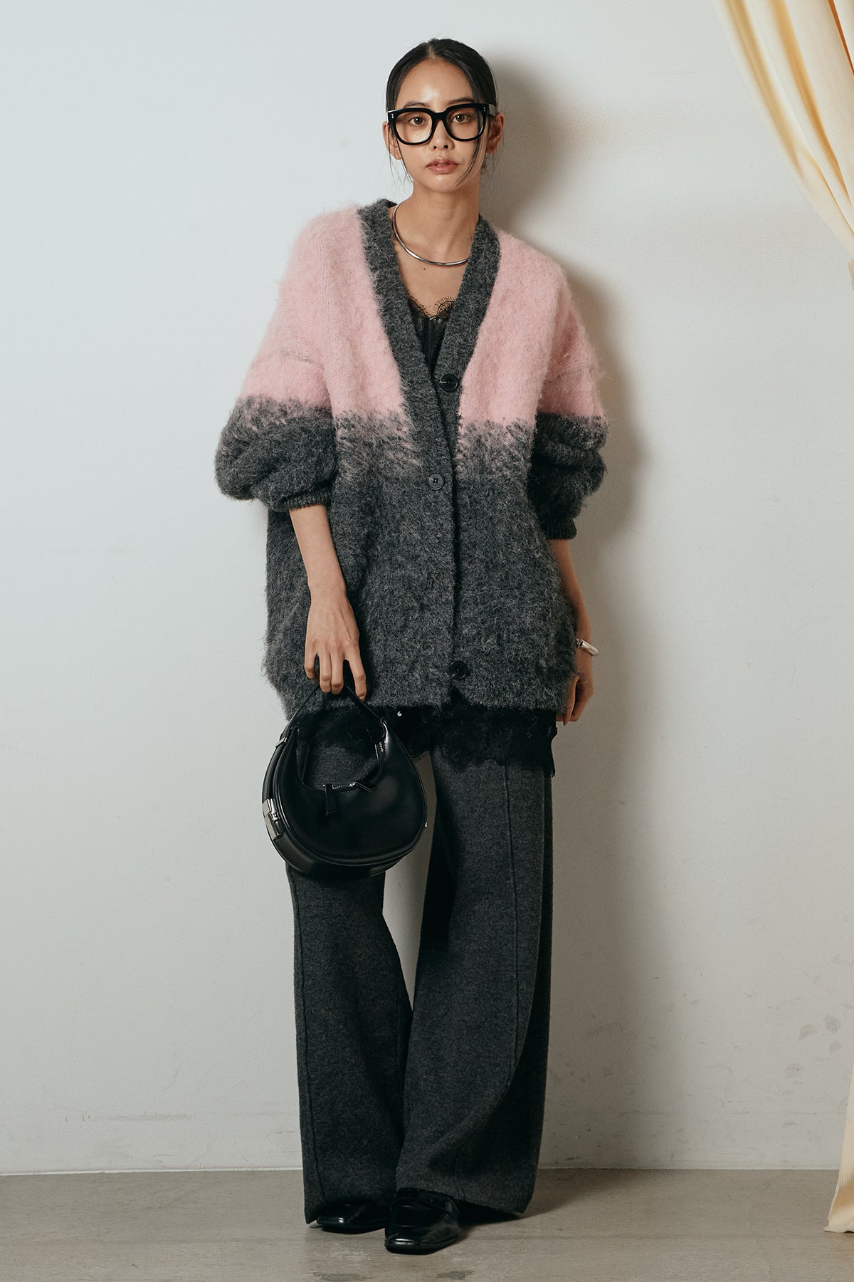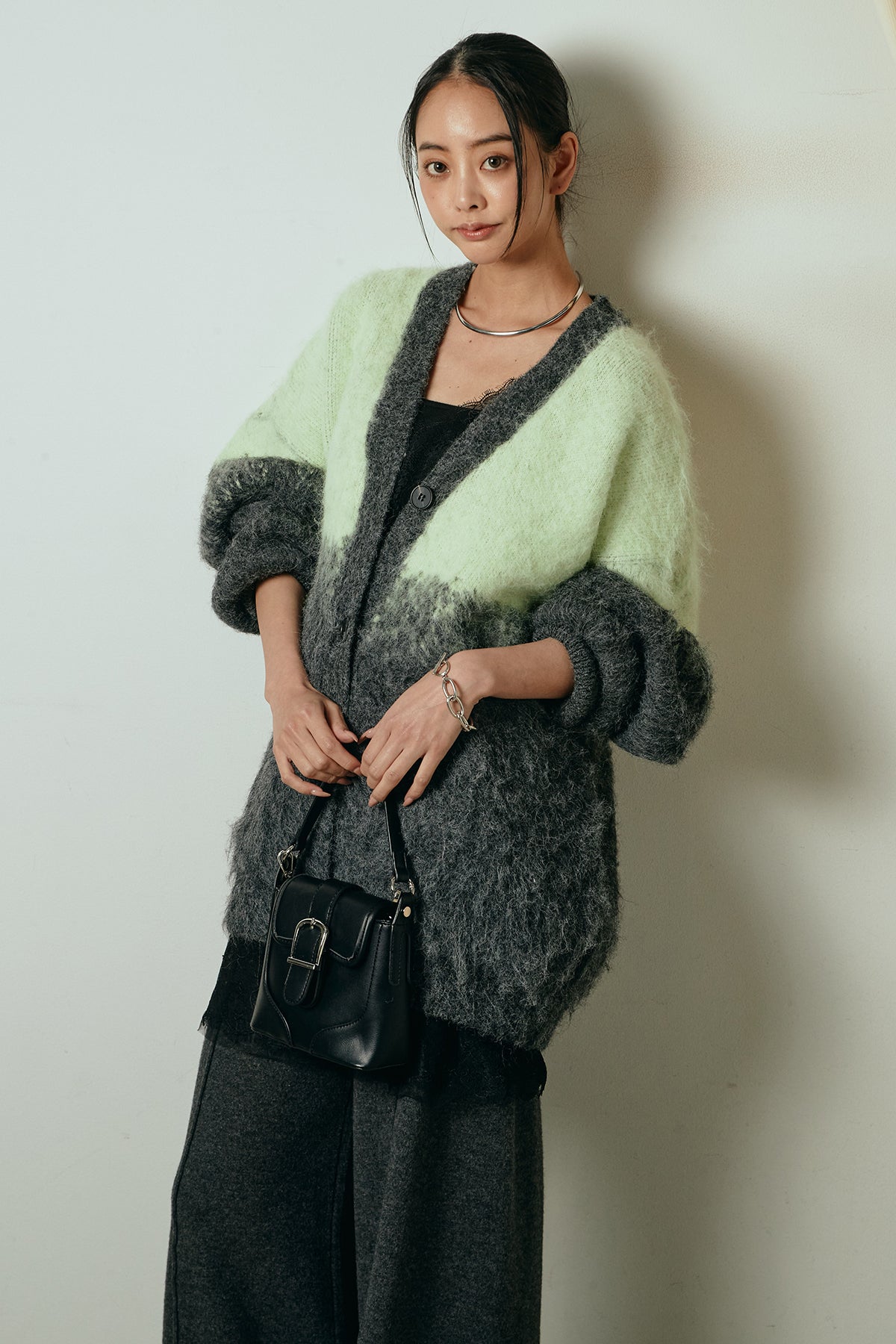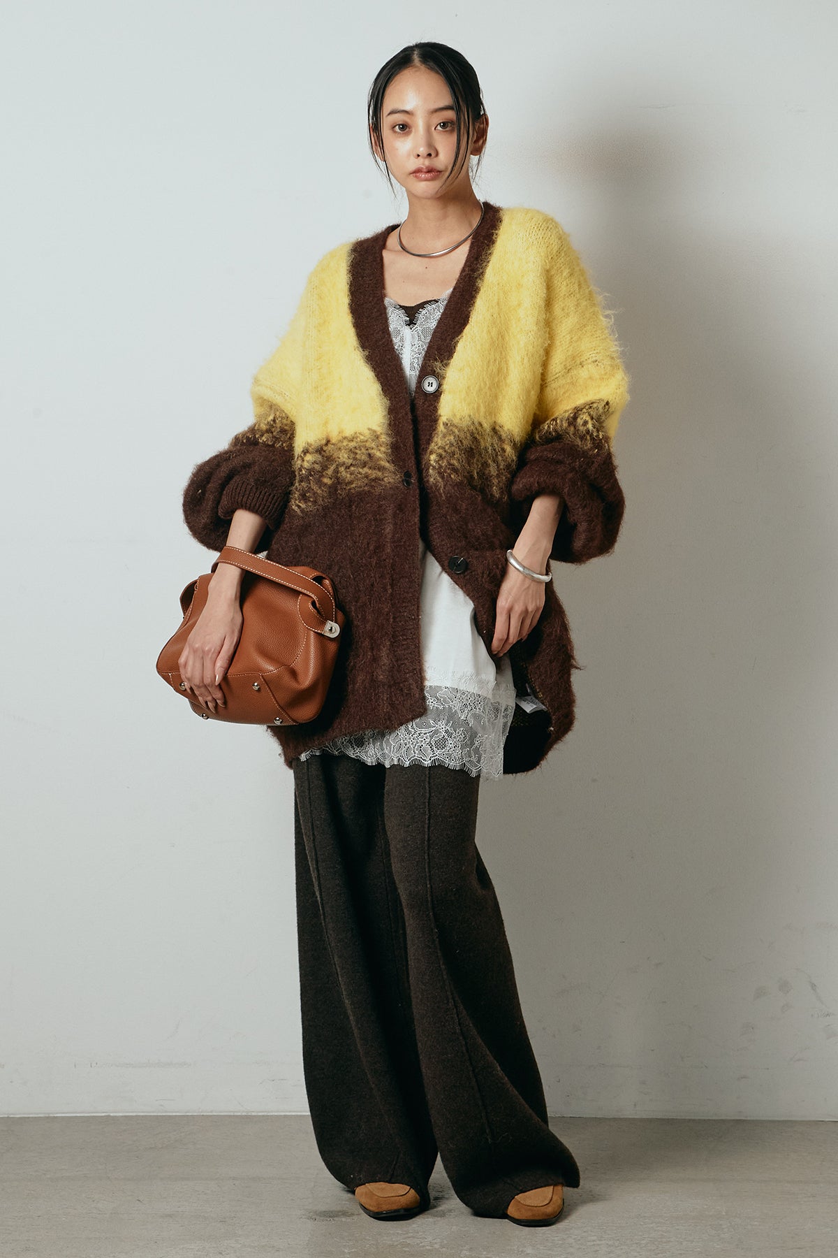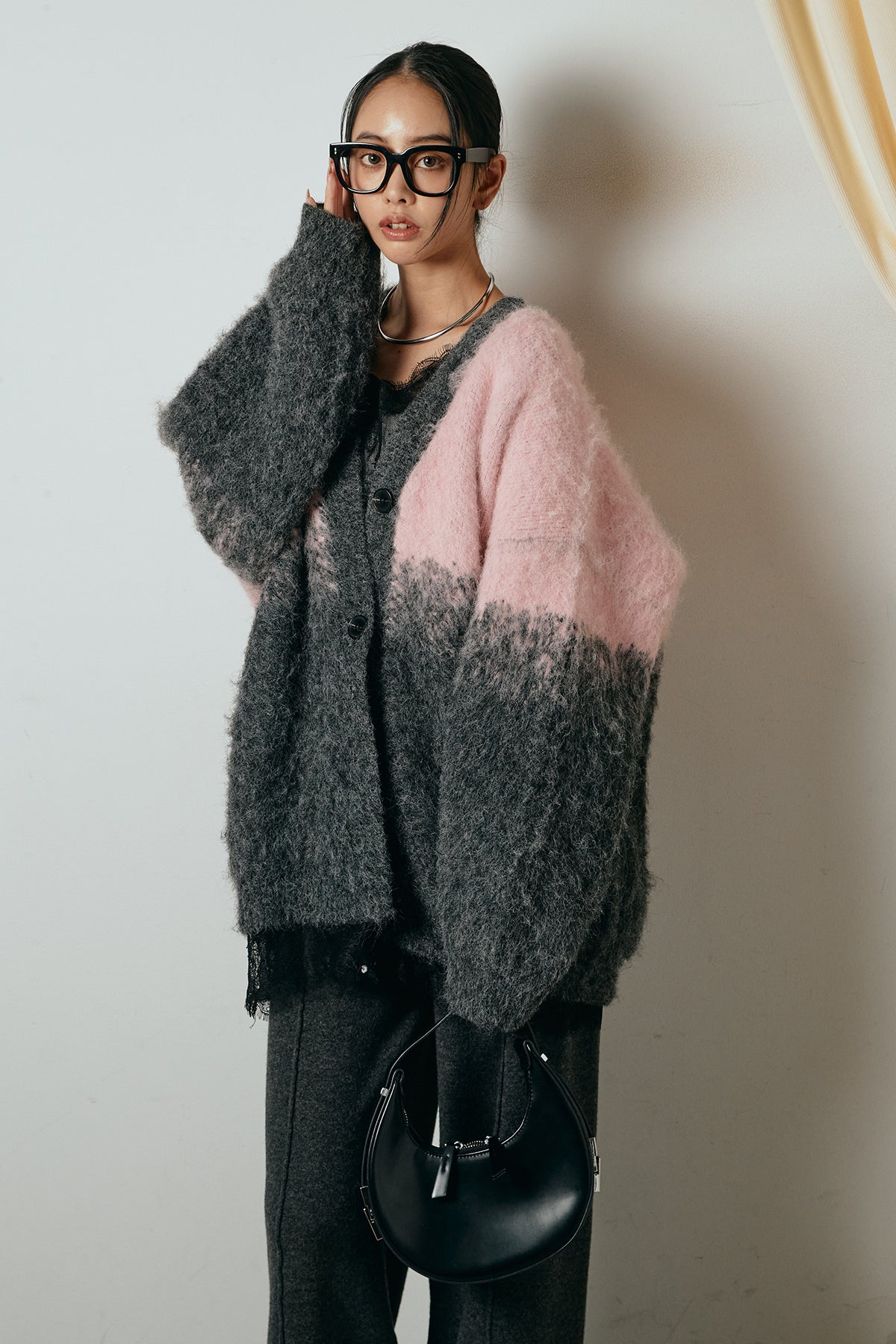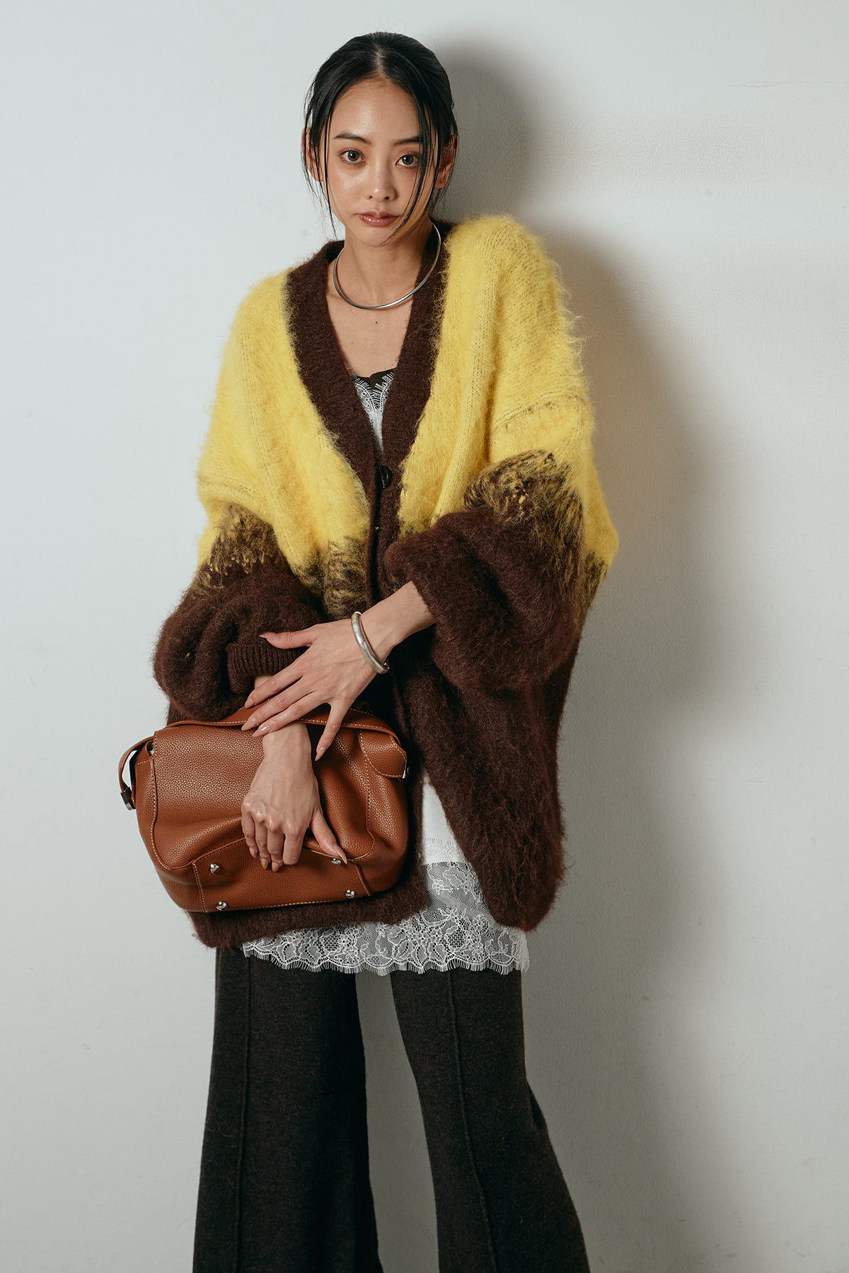 起毛感のある素材にグラデーションデザインを取り入れたニットカーディガン。 自然な色の切り替えがあり、シンプルなスタイリングでも程よくアクセントになります。 ゆとりのあるシルエットで、インナーを選ばず羽織りやすいデザイン。 デイリー使いから外出まで、幅広く取り入れやすい一着です。