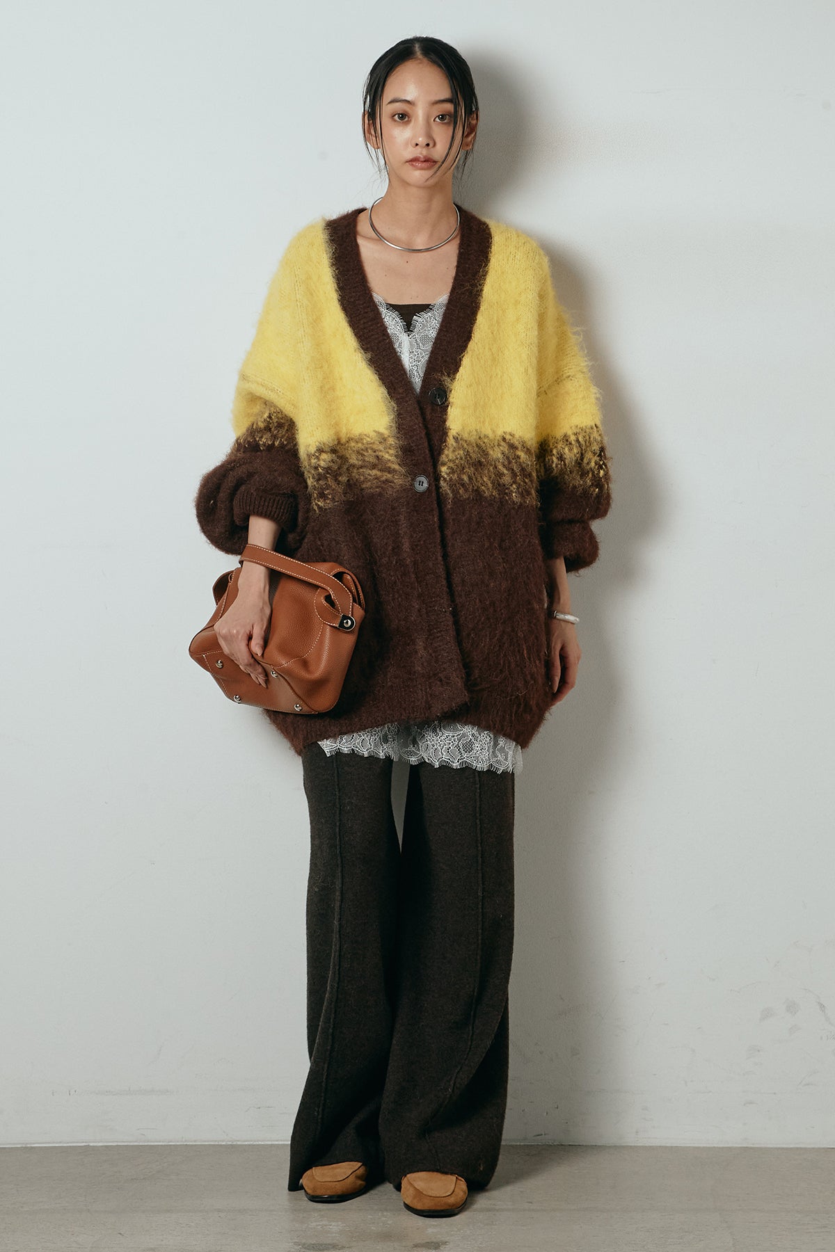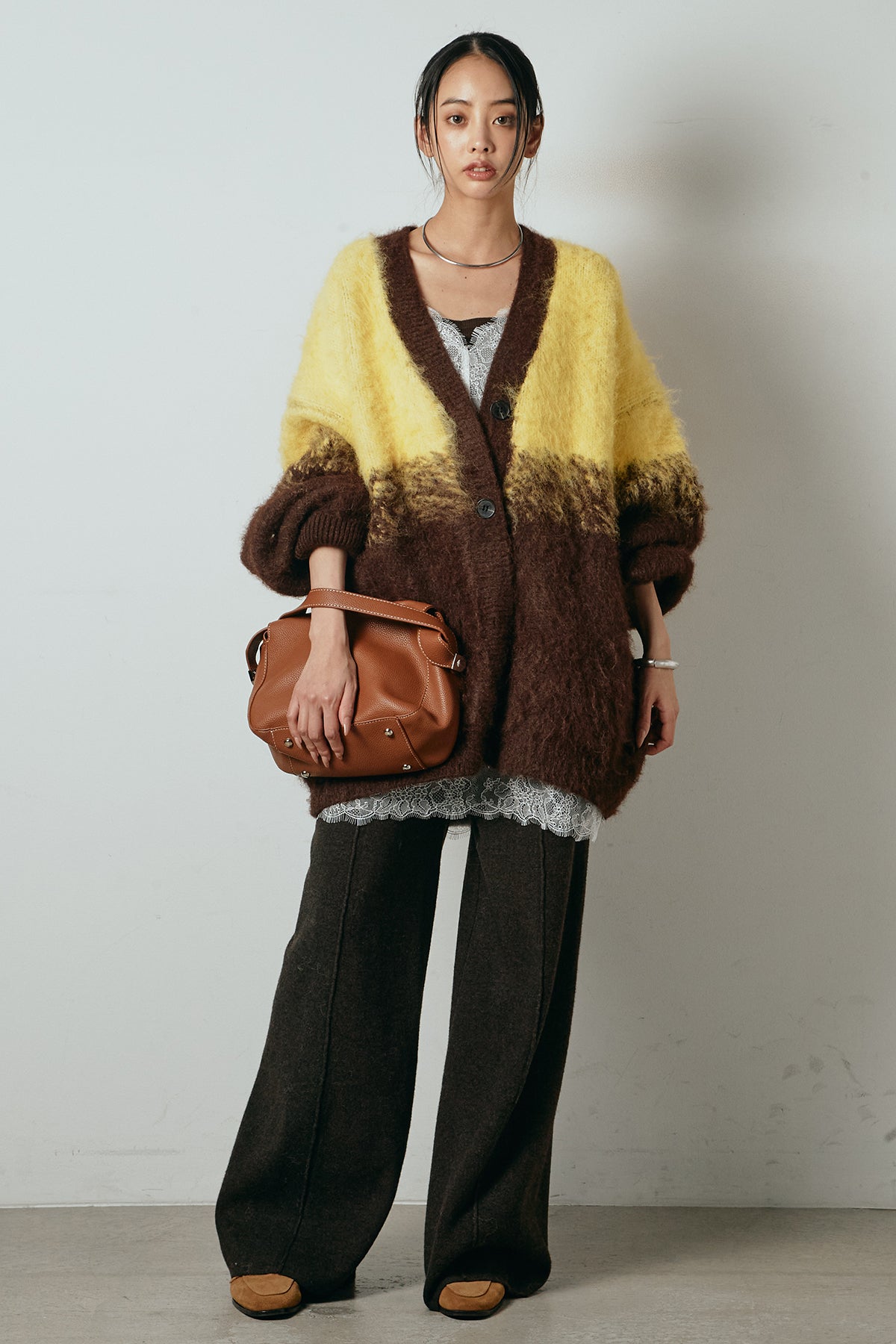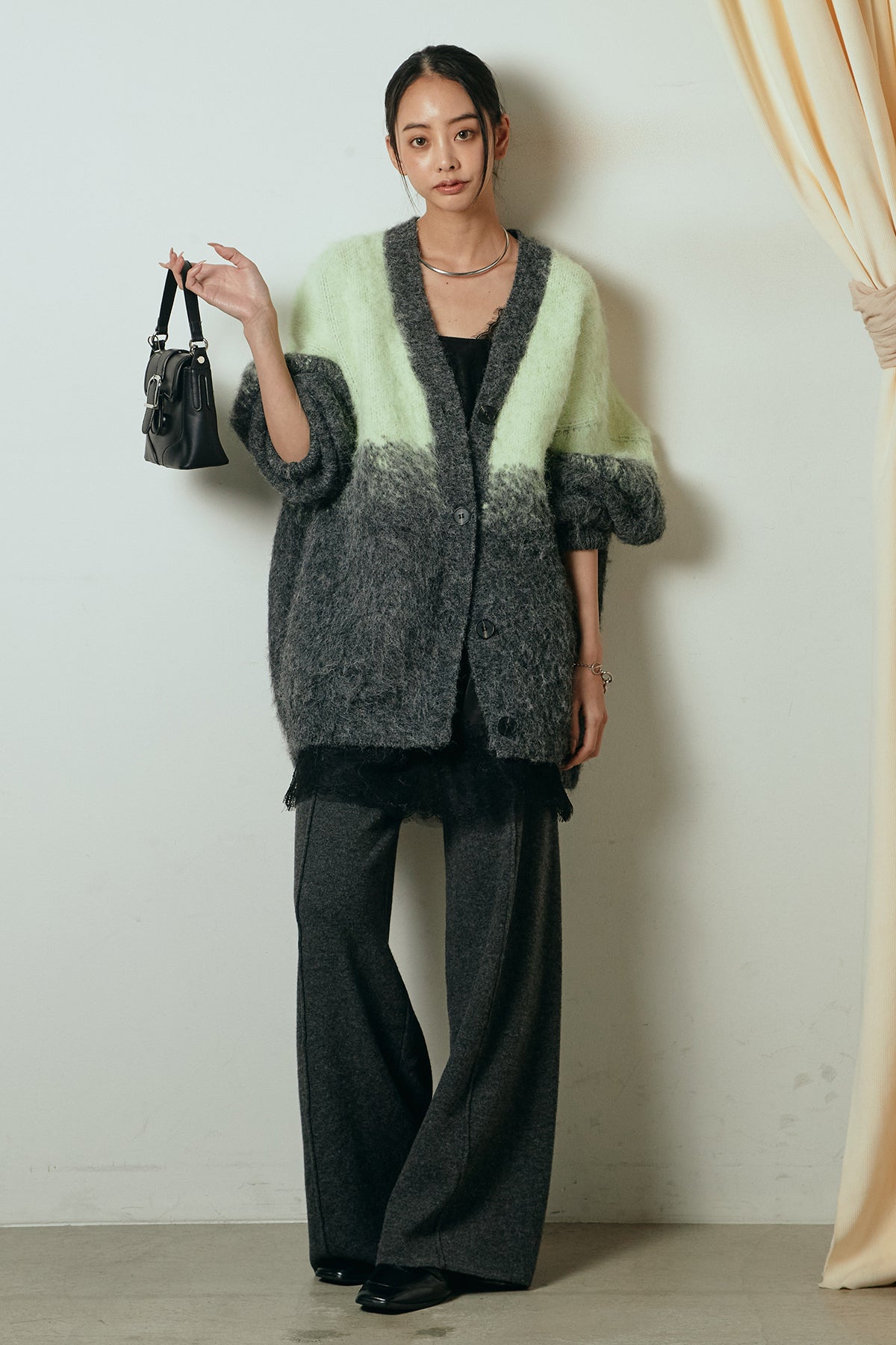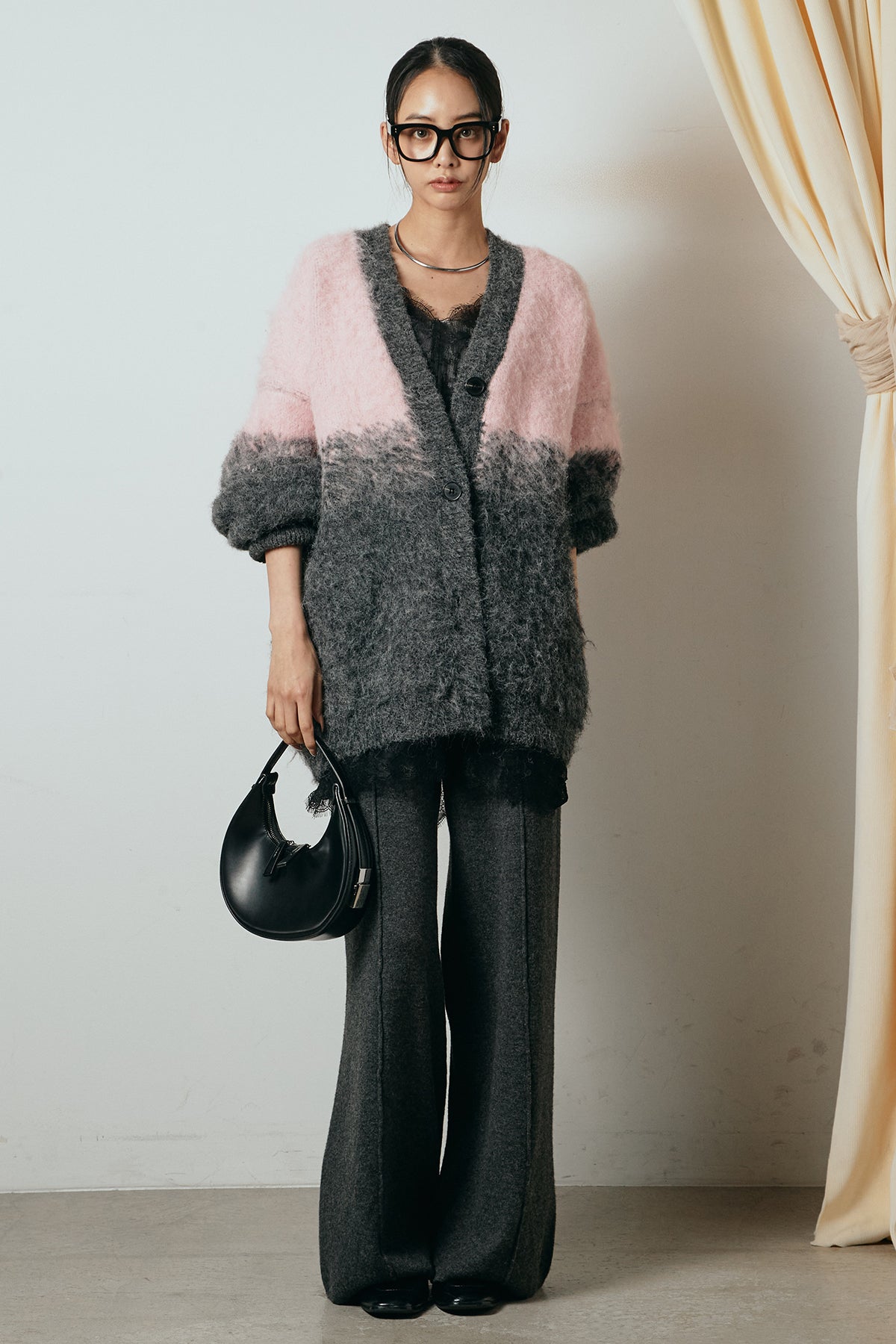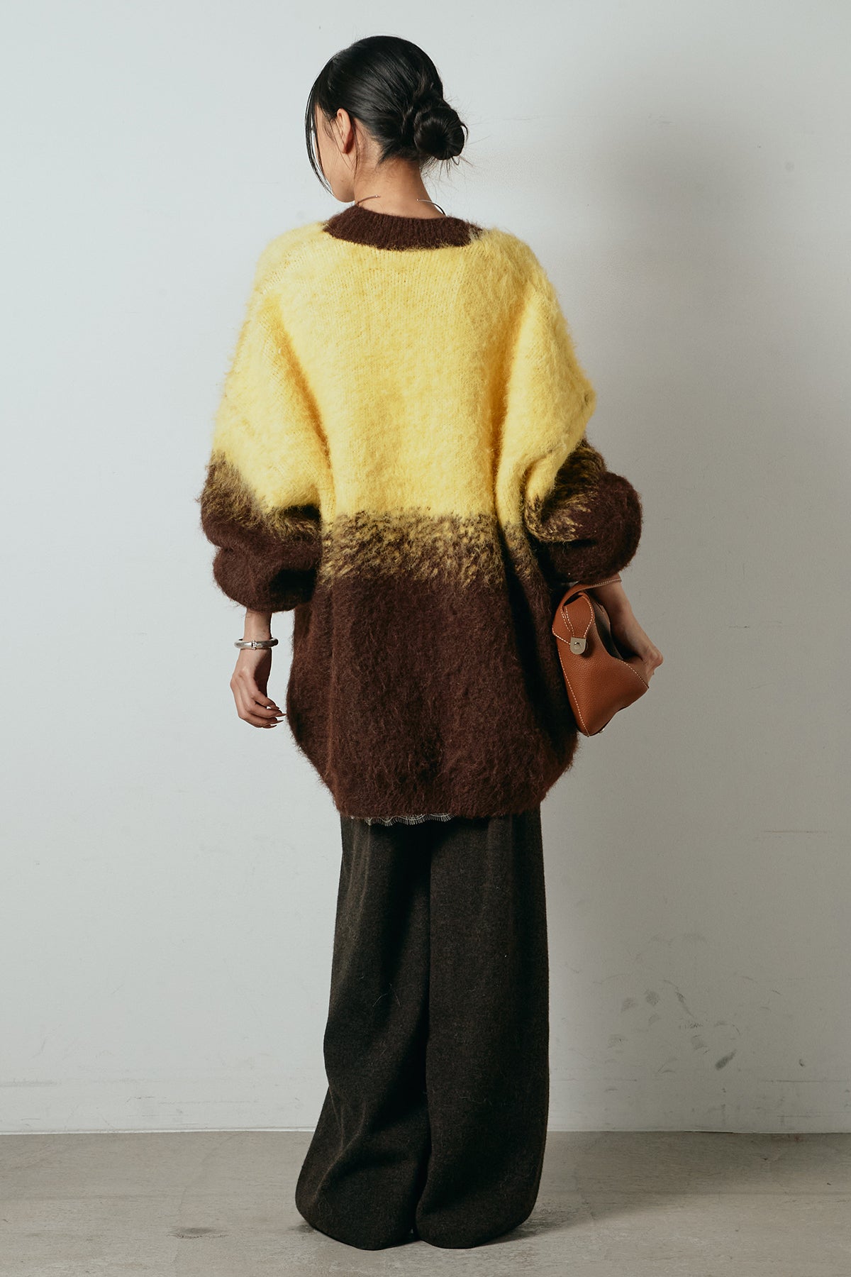 起毛感のある素材にグラデーションデザインを取り入れたニットカーディガン。 自然な色の切り替えがあり、シンプルなスタイリングでも程よくアクセントになります。 ゆとりのあるシルエットで、インナーを選ばず羽織りやすいデザイン。 デイリー使いから外出まで、幅広く取り入れやすい一着です。