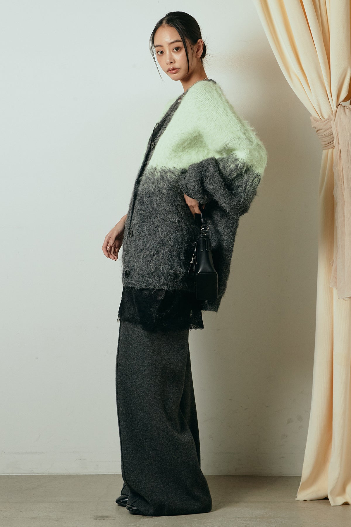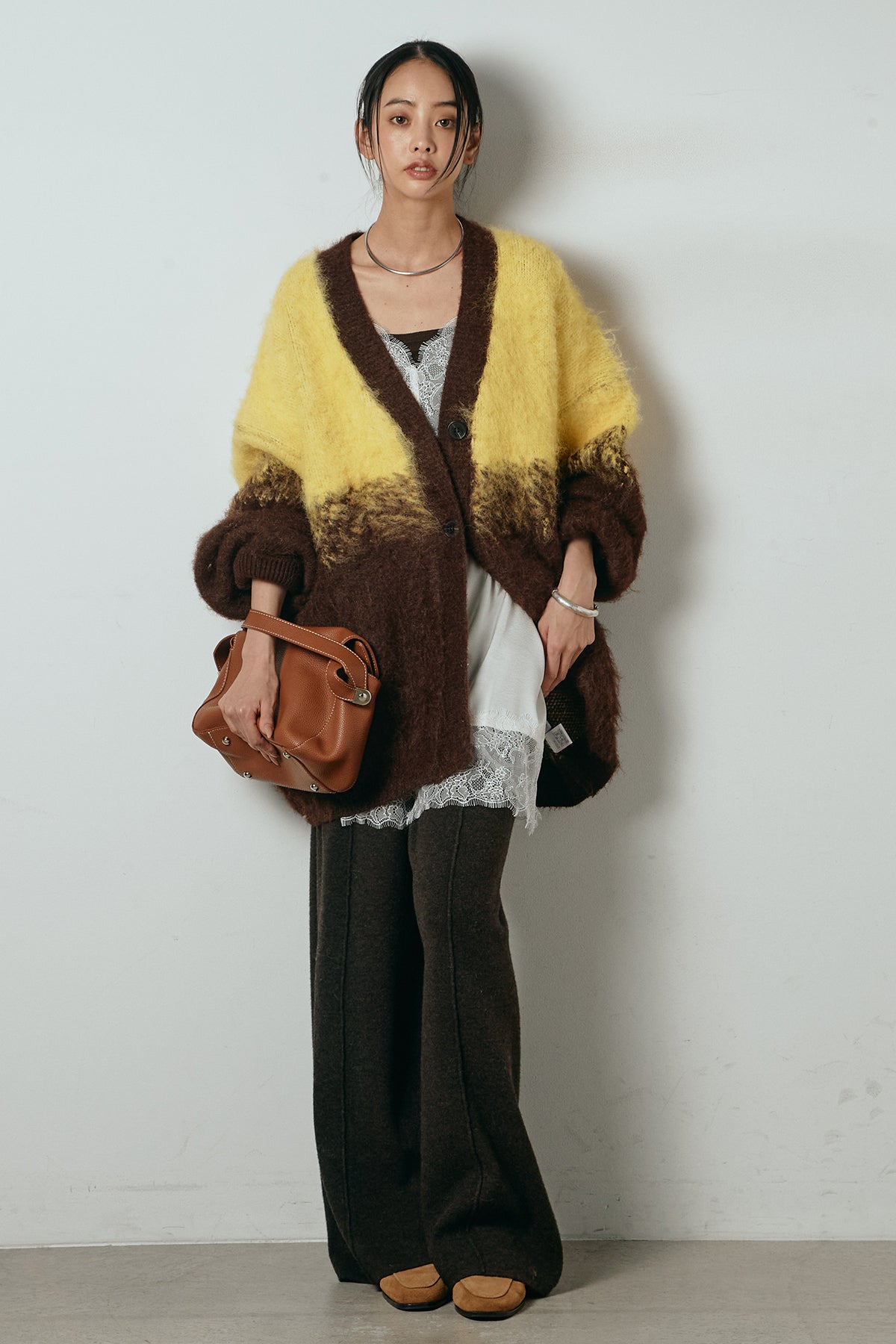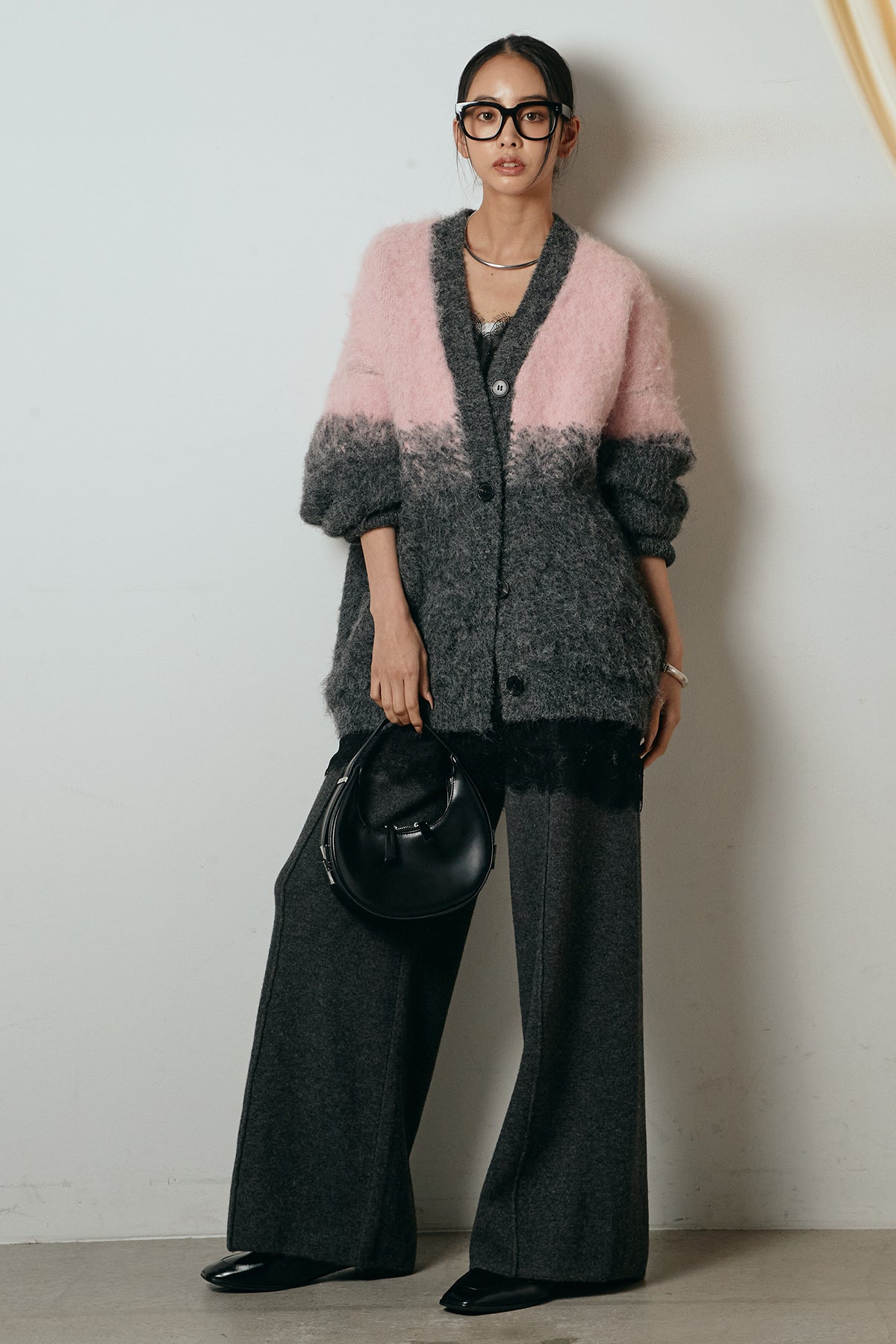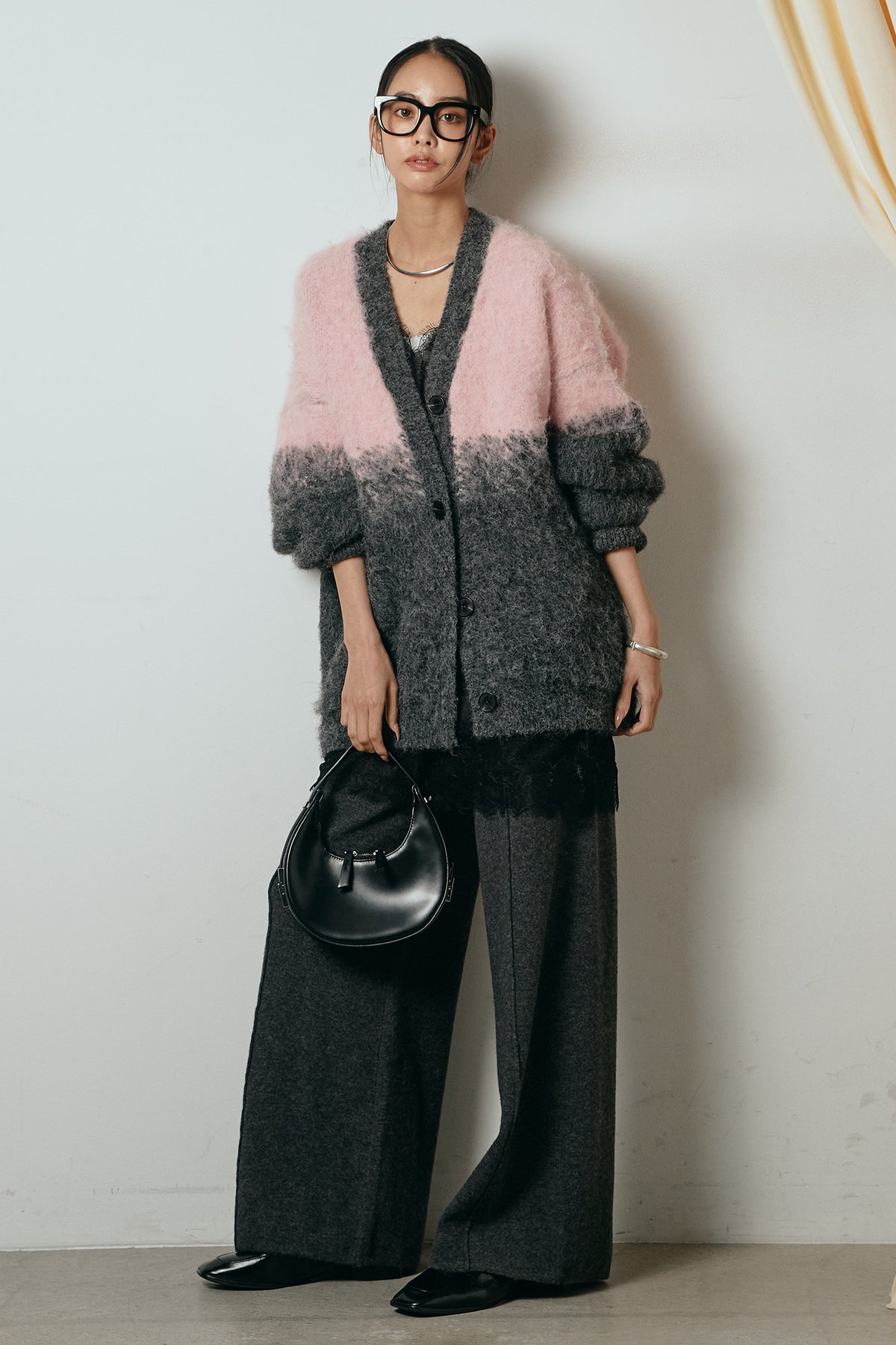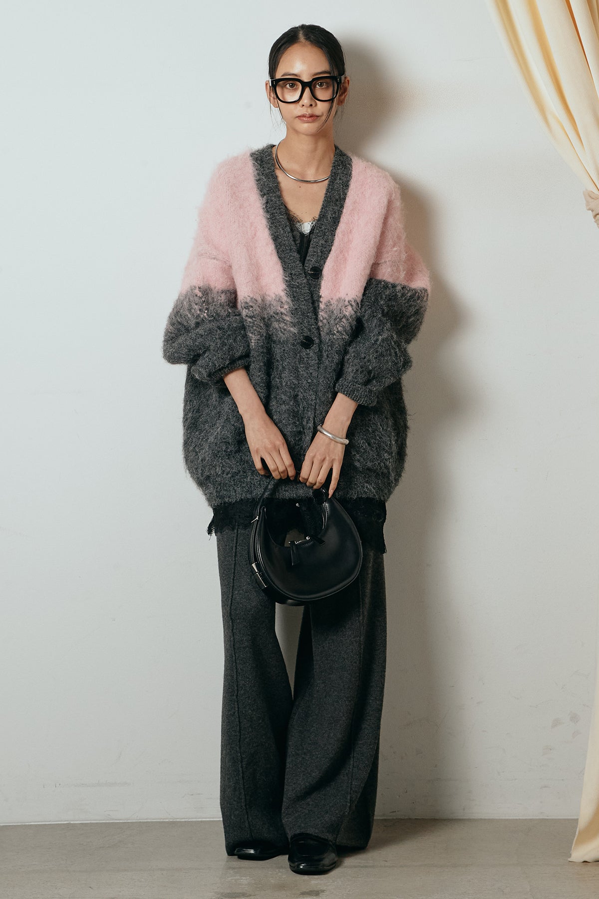 起毛感のある素材にグラデーションデザインを取り入れたニットカーディガン。 自然な色の切り替えがあり、シンプルなスタイリングでも程よくアクセントになります。 ゆとりのあるシルエットで、インナーを選ばず羽織りやすいデザイン。 デイリー使いから外出まで、幅広く取り入れやすい一着です。