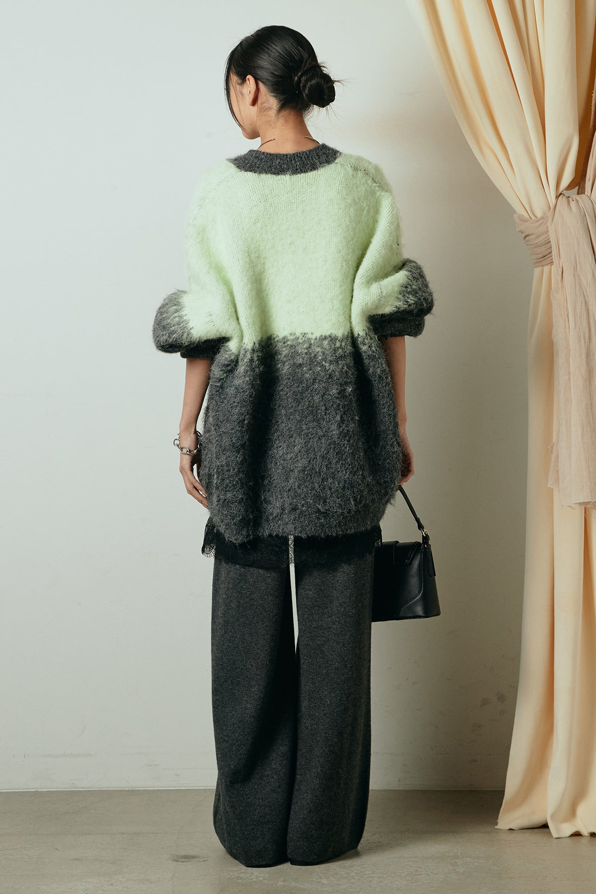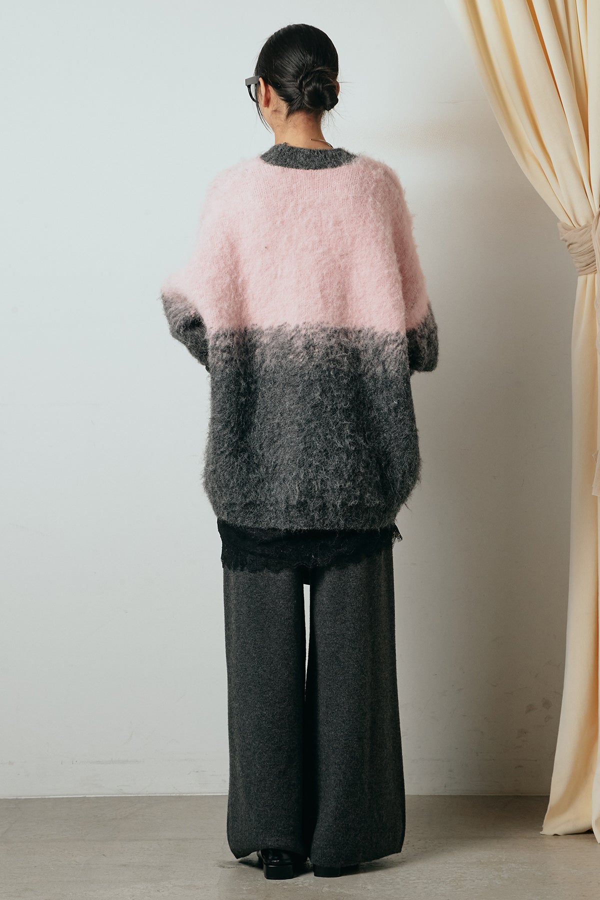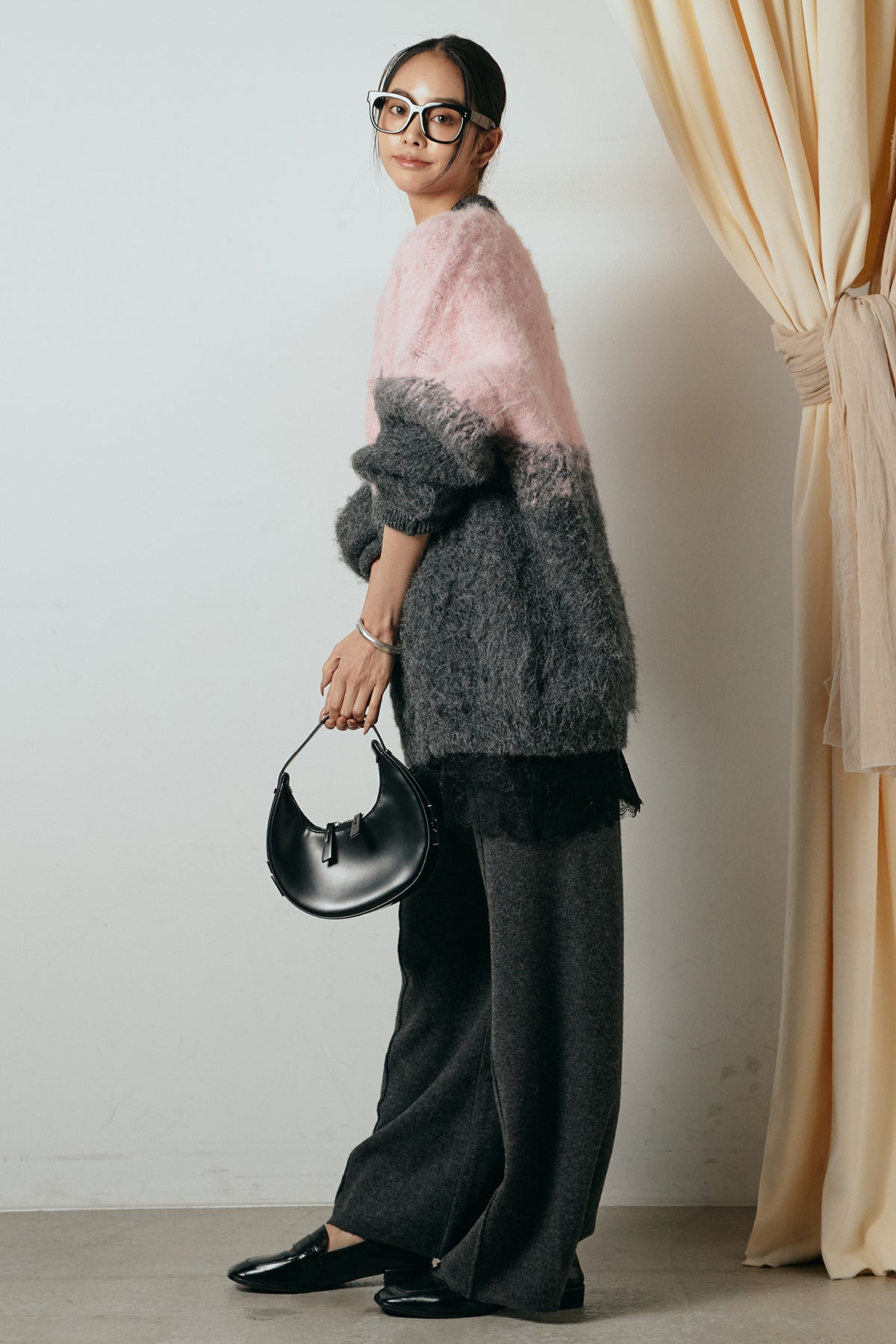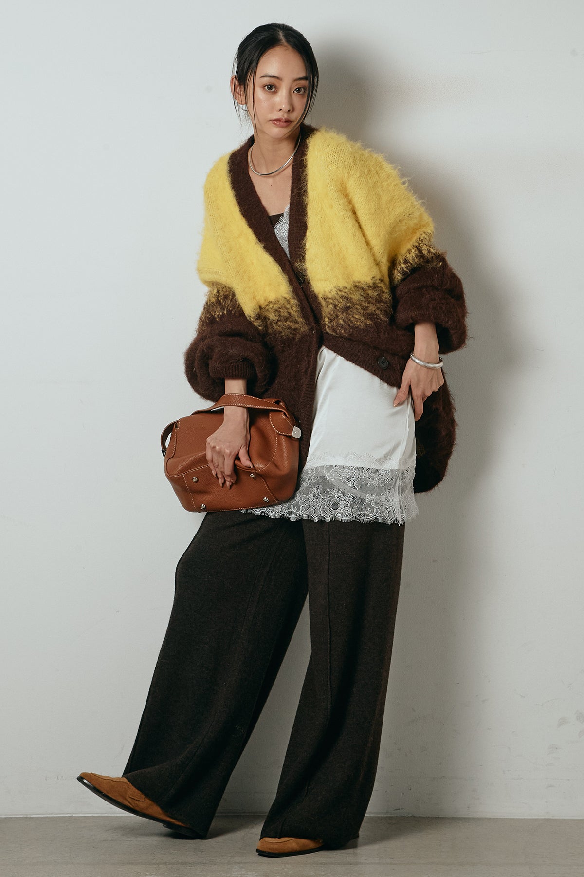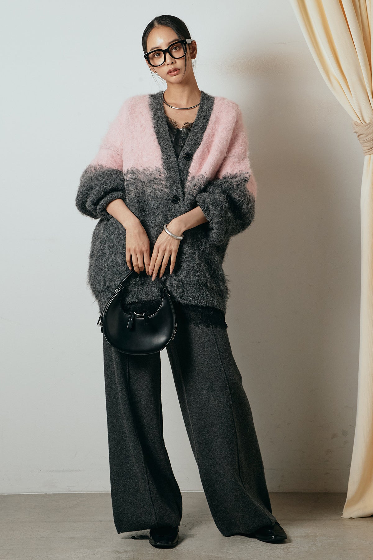 起毛感のある素材にグラデーションデザインを取り入れたニットカーディガン。 自然な色の切り替えがあり、シンプルなスタイリングでも程よくアクセントになります。 ゆとりのあるシルエットで、インナーを選ばず羽織りやすいデザイン。 デイリー使いから外出まで、幅広く取り入れやすい一着です。
