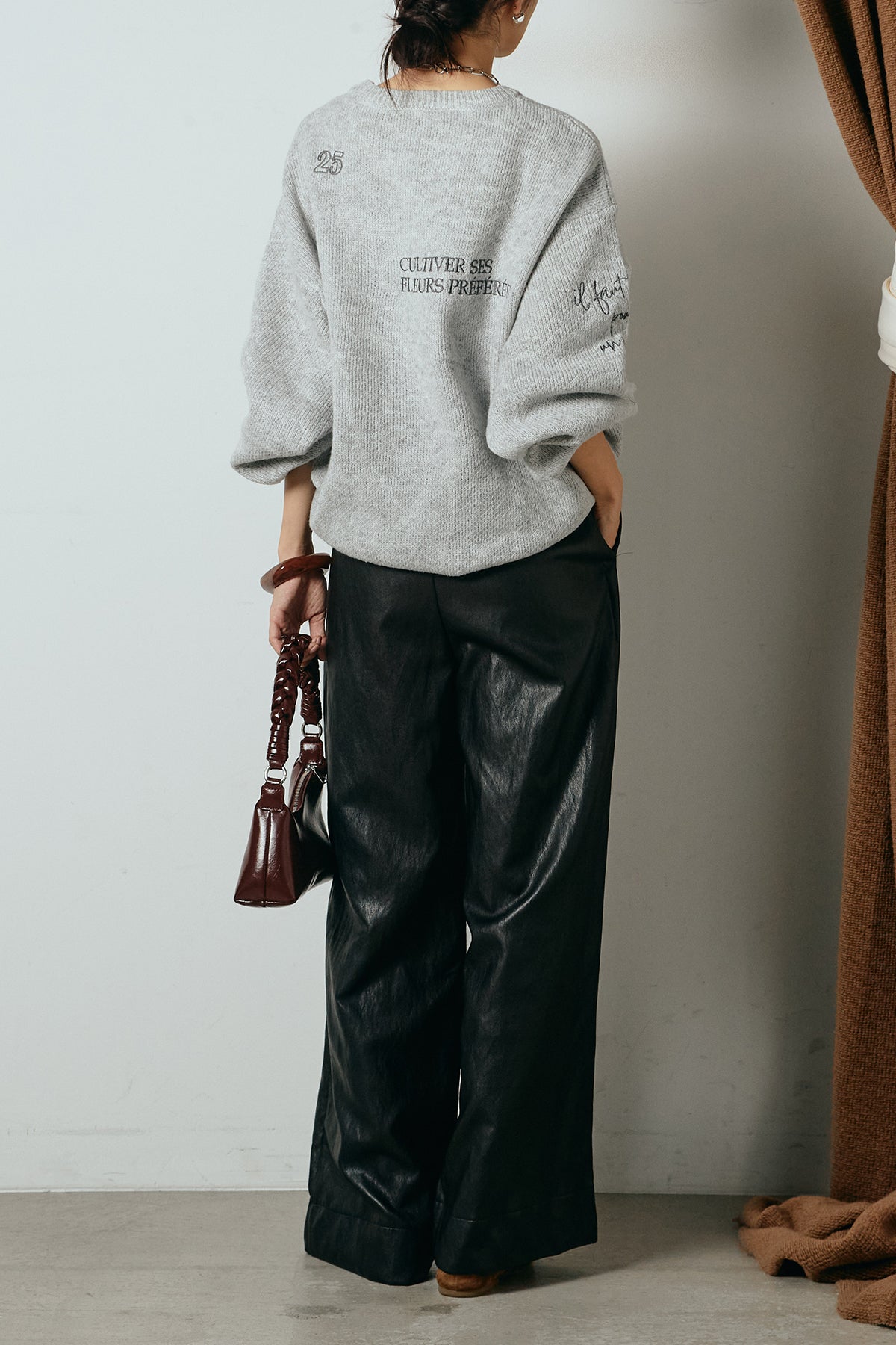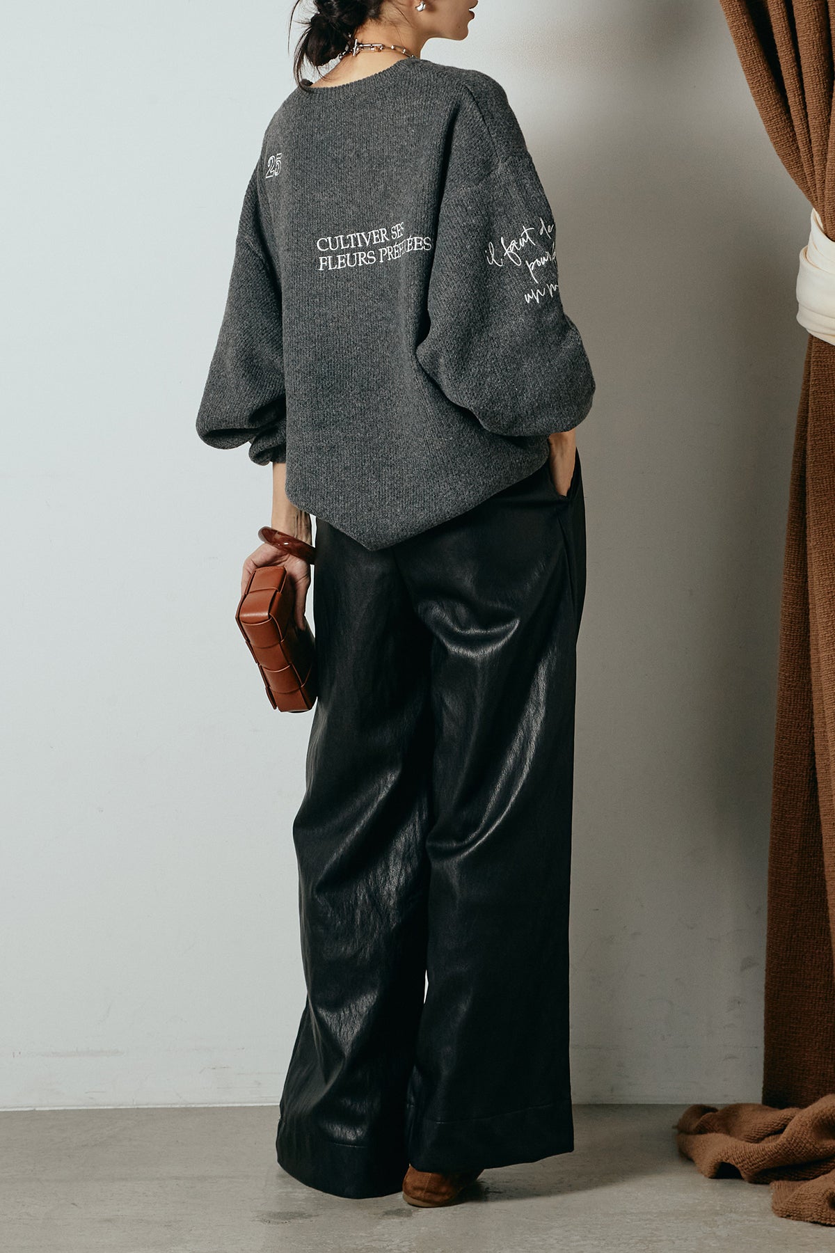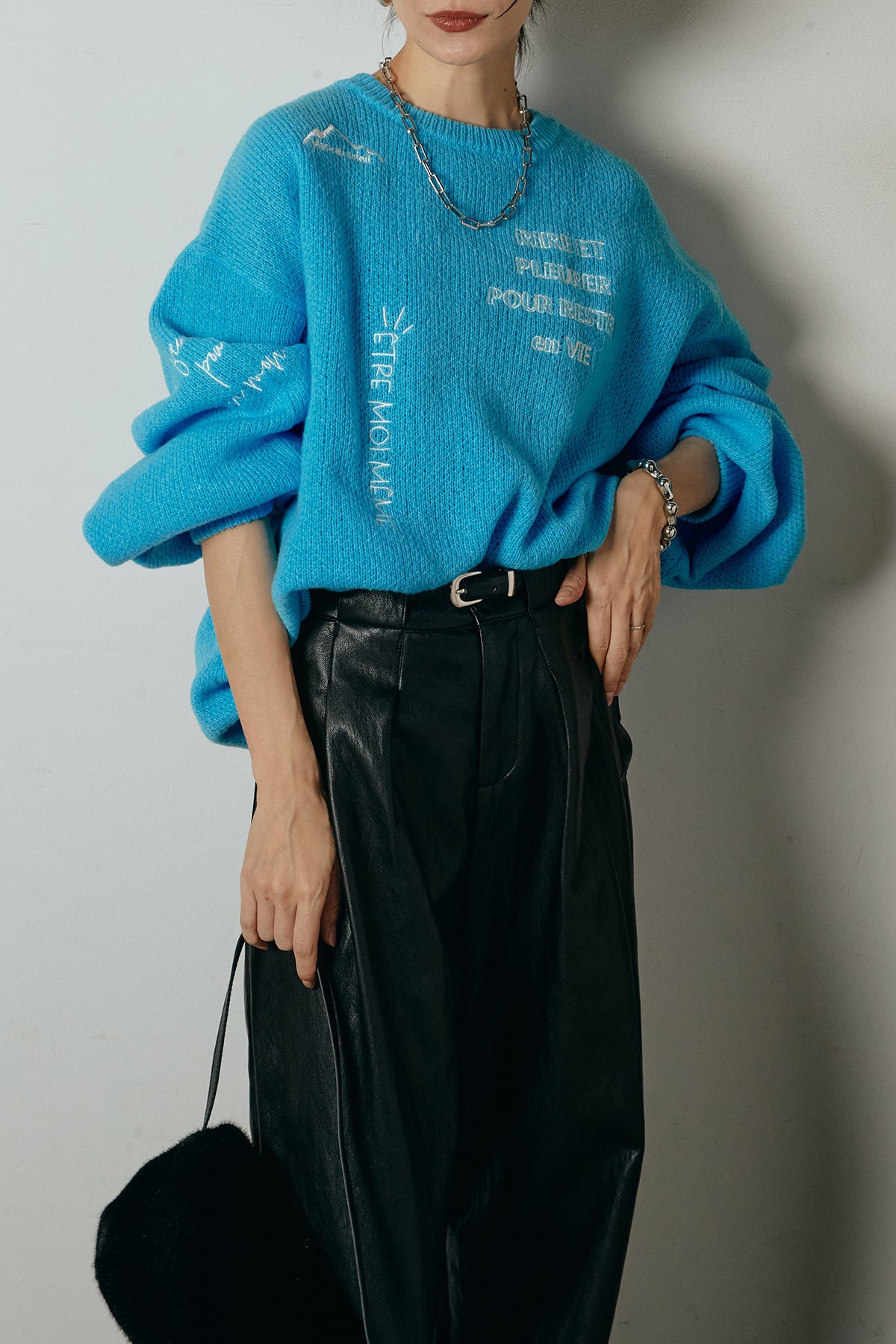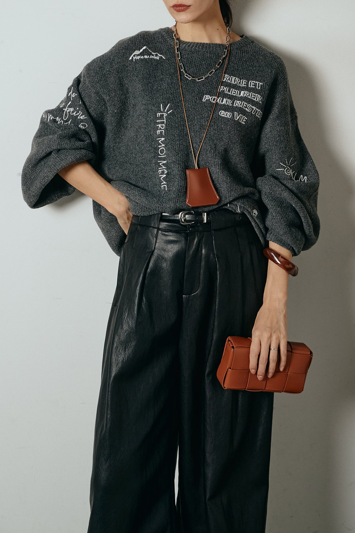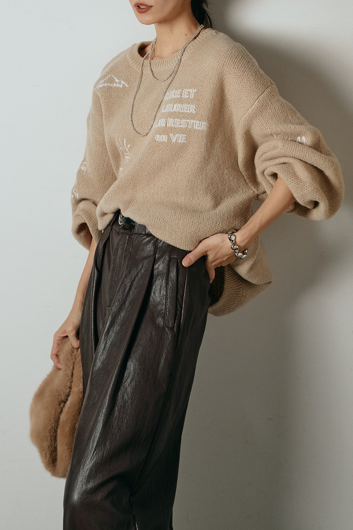 ランダムに配置した刺繍ロゴが目を引く、デザイン性の高いニットトップス。シンプルなシルエットに遊び心のあるディテールを加え、着るだけでスタイリングの主役になる一枚です。程よくゆとりのあるフォルムでリラックス感がありながら、コーディネートに自然なアクセントをプラス。パンツにもスカートにも合わせやすく、デイリーに活躍するアイテムです。