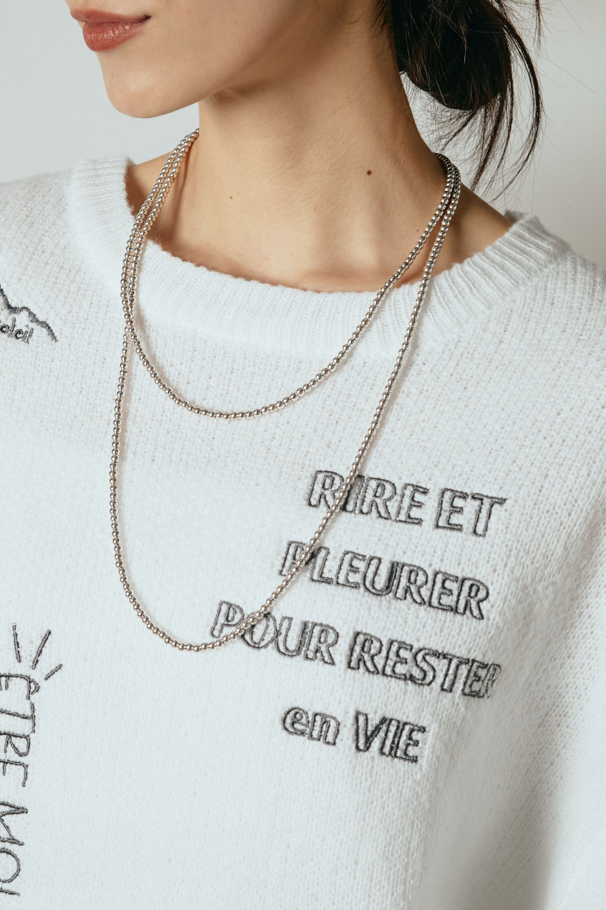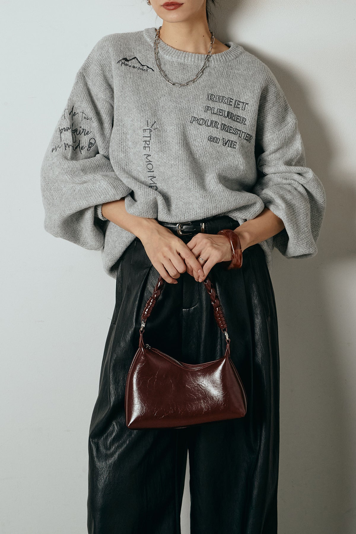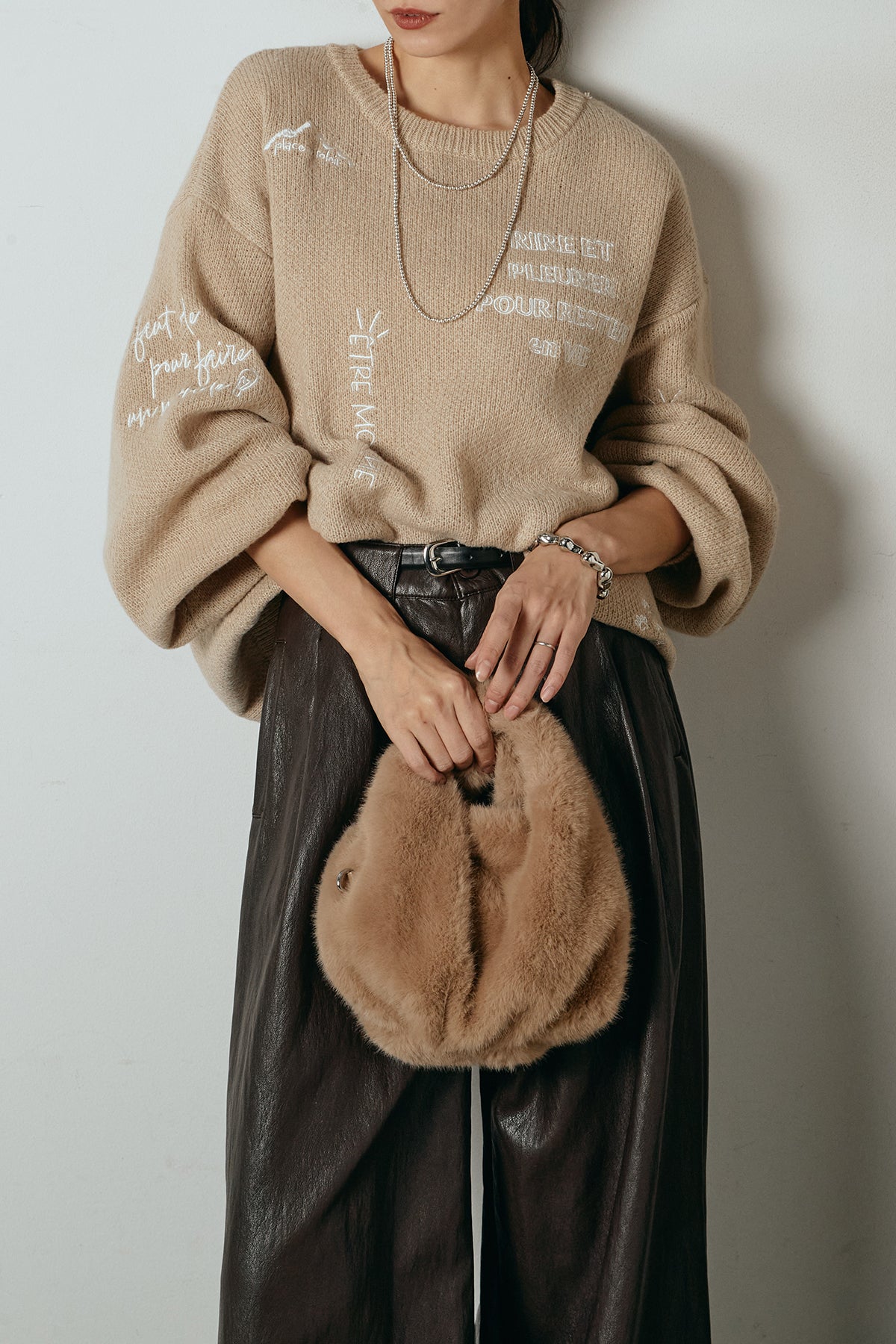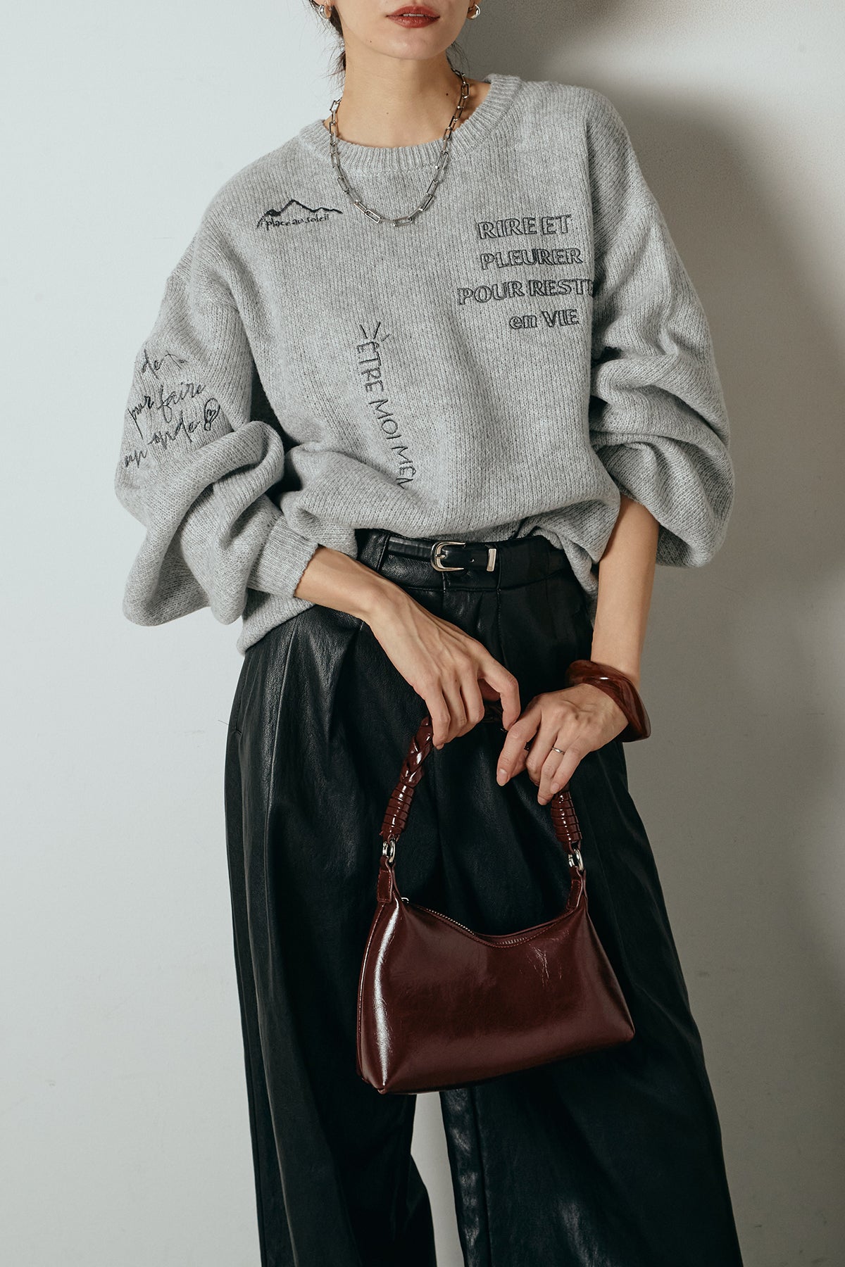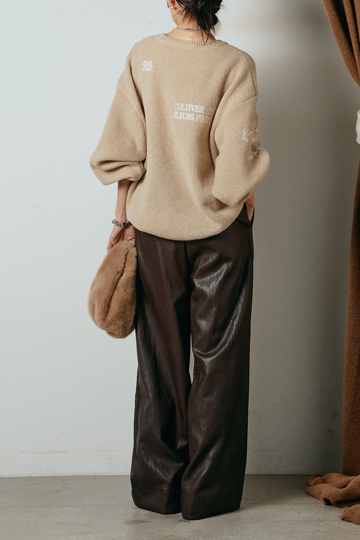 ランダムに配置した刺繍ロゴが目を引く、デザイン性の高いニットトップス。シンプルなシルエットに遊び心のあるディテールを加え、着るだけでスタイリングの主役になる一枚です。程よくゆとりのあるフォルムでリラックス感がありながら、コーディネートに自然なアクセントをプラス。パンツにもスカートにも合わせやすく、デイリーに活躍するアイテムです。