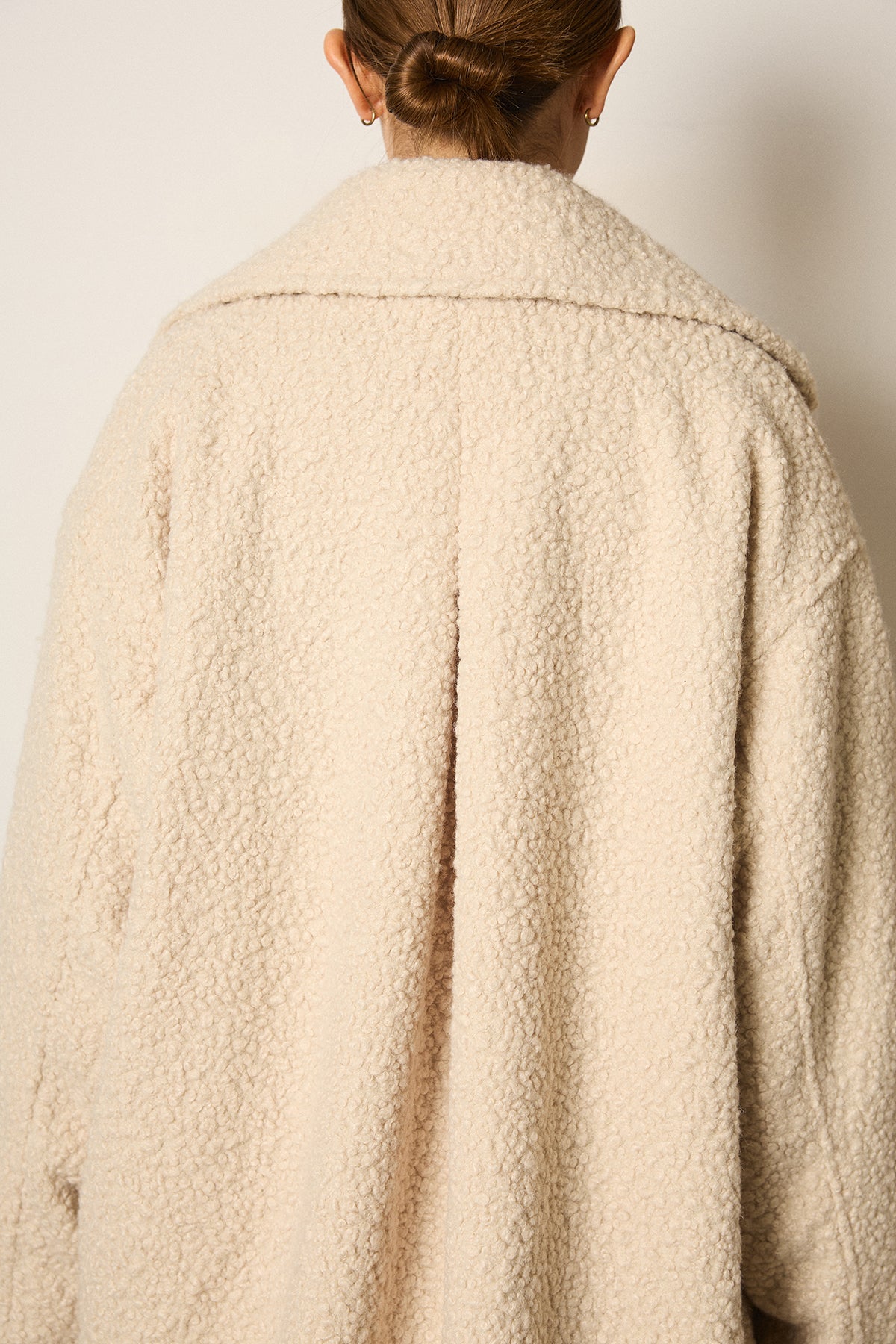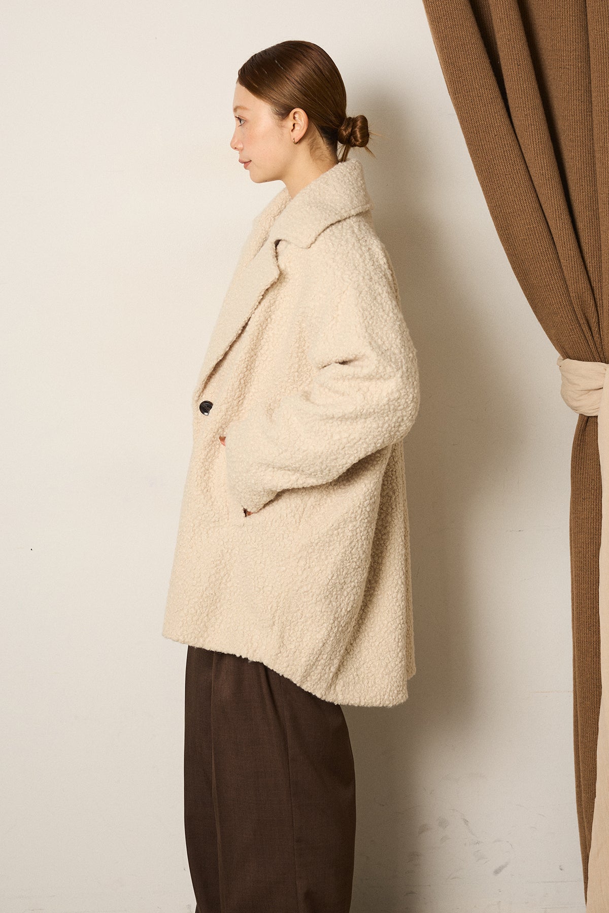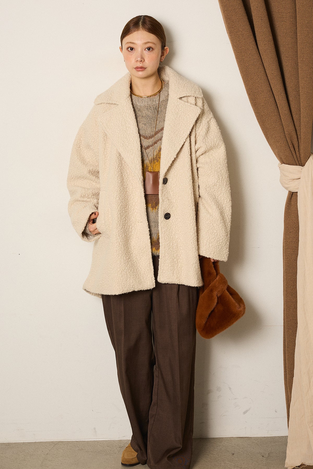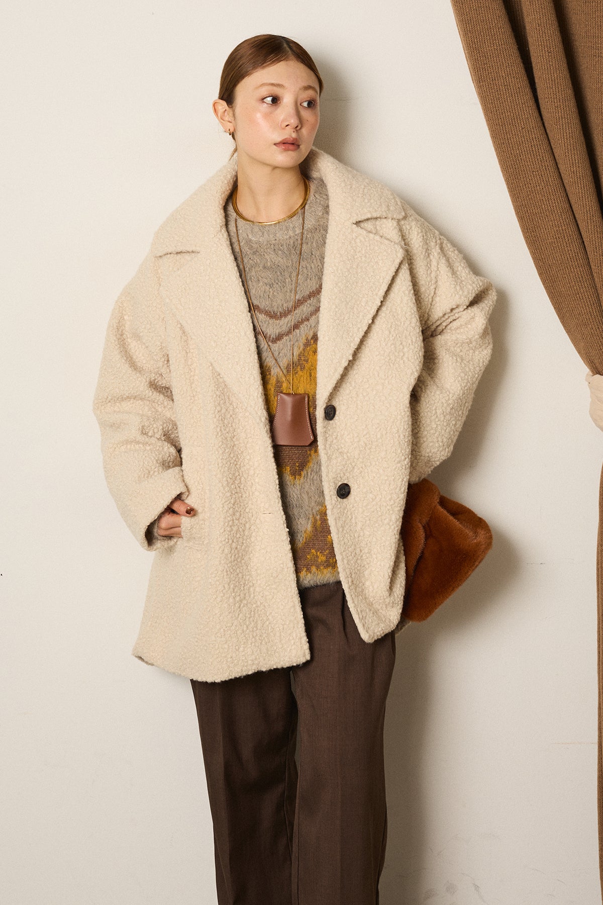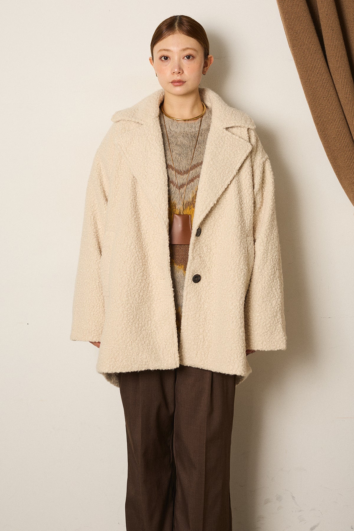 表情のあるループツイード素材を用いたタックジャケット。立体感のある生地が程よい存在感を与えつつ、柔らかな着心地も魅力です。肩まわりや身幅にゆとりを持たせたシルエットで、インナーを選ばず重ねやすい仕上がりに。フロントのタックがさりげないアクセントとなり、羽織るだけで全体のバランスが整います。デイリーからきちんと感のあるスタイルまで幅広く取り入れやすい一着です。
